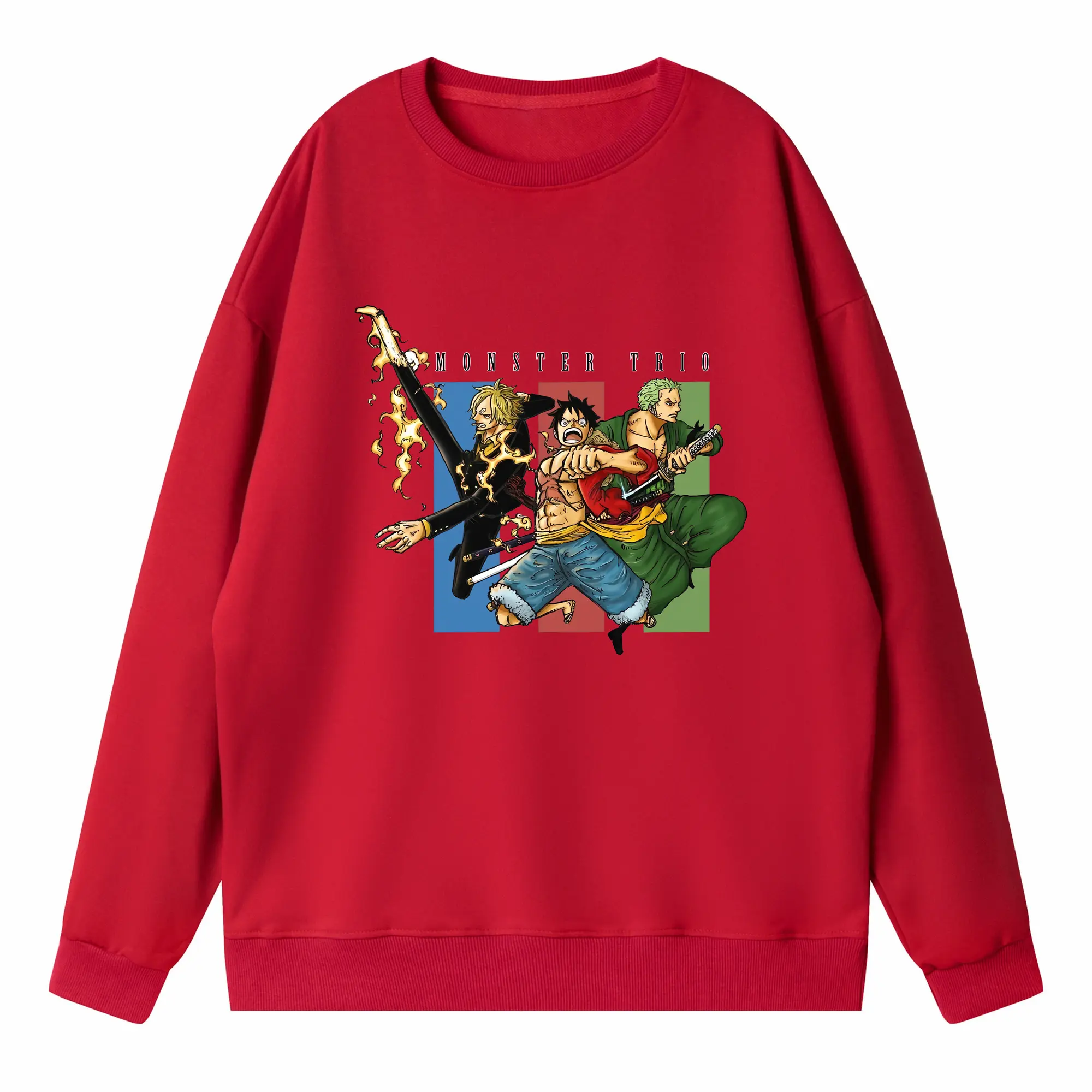 ワンピース グッズ モンキー・D・ルフィ - 高品質 クルーネック スウェット ・ コットン59% ポリエステル41% ・ ユニセックス 長袖 トレーナー ・ カジュアル デイリー スポーツ 散歩用