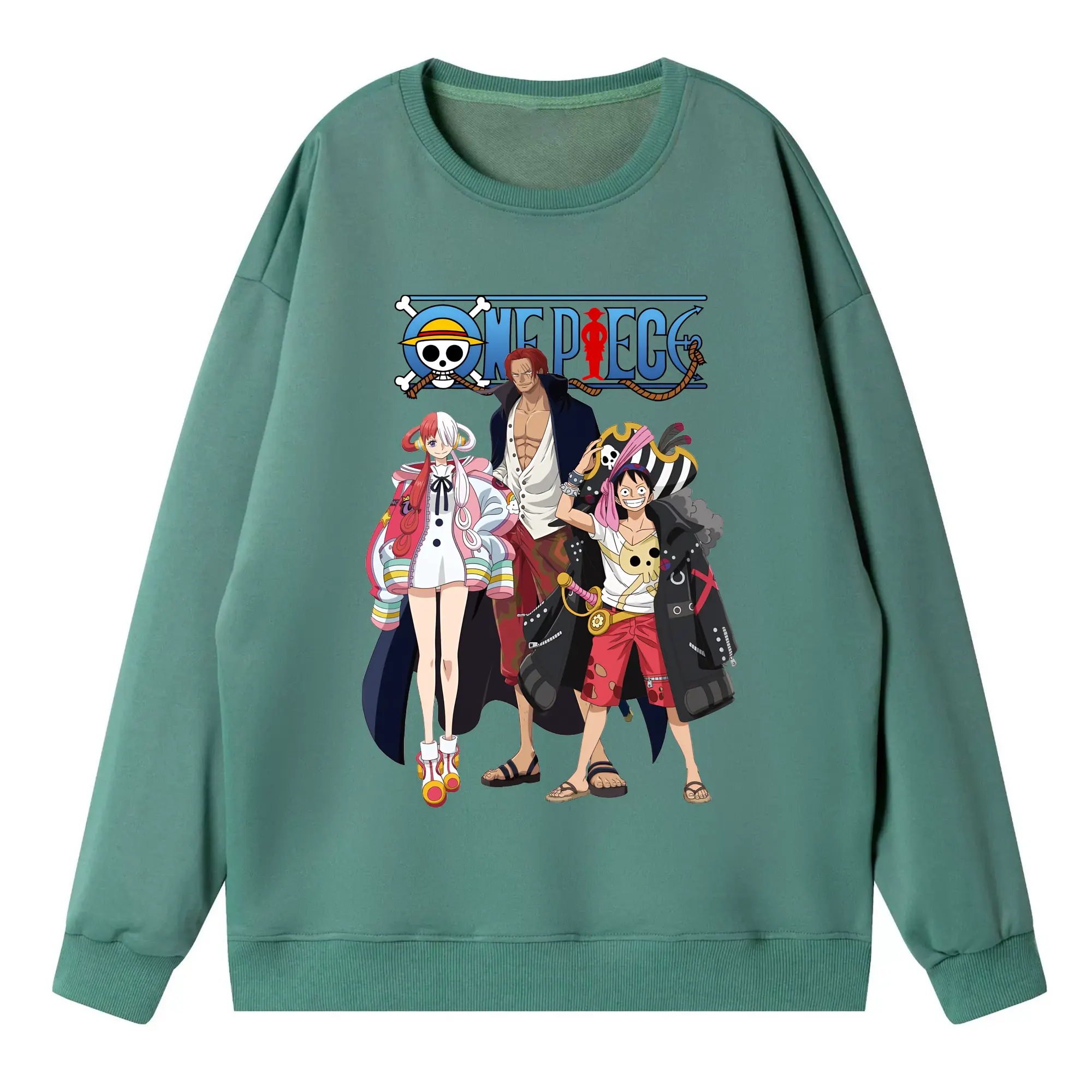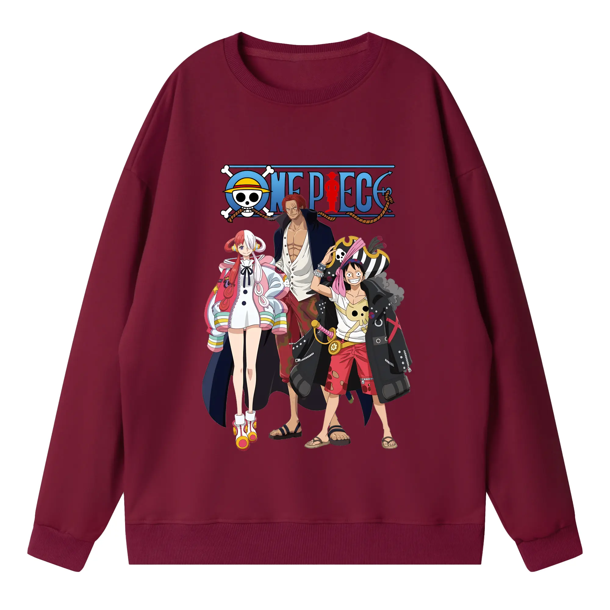 ワンピース グッズ モンキー・D・ルフィ - 高品質 クルーネック スウェット ・ コットン59% ポリエステル41% ・ ユニセックス 長袖 トレーナー ・ カジュアル デイリー スポーツ 散歩用