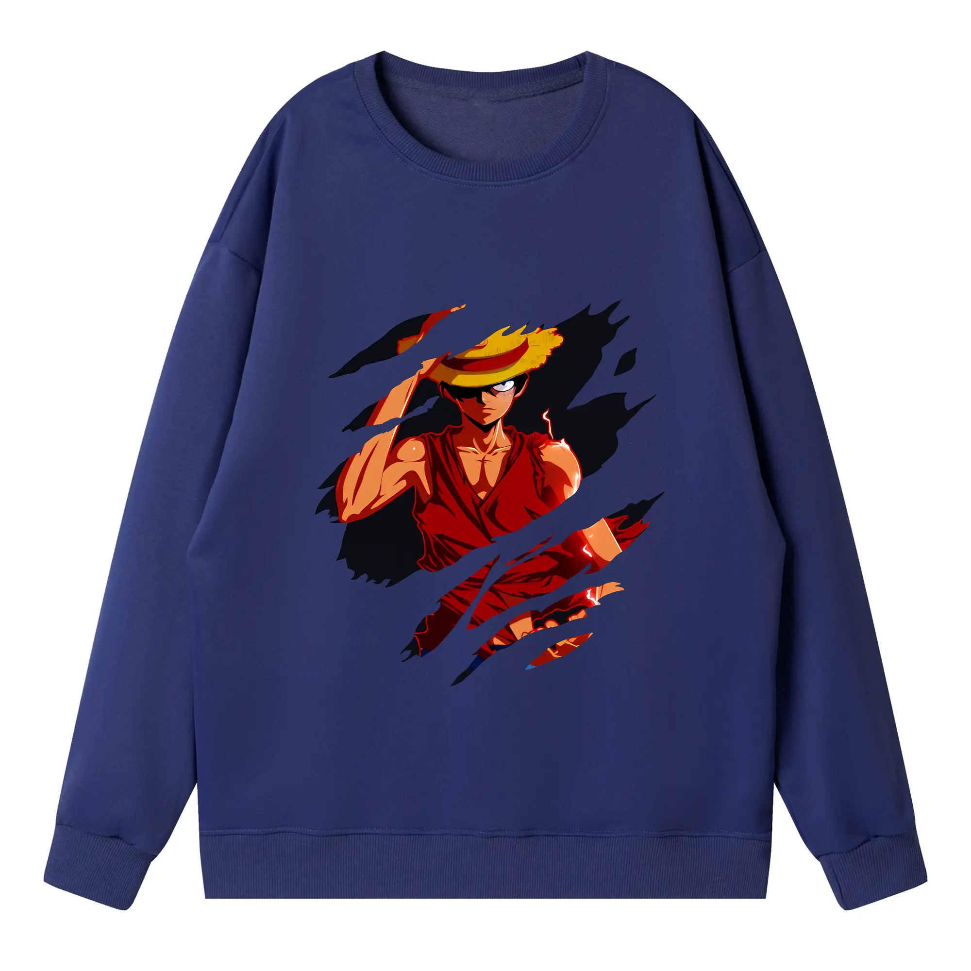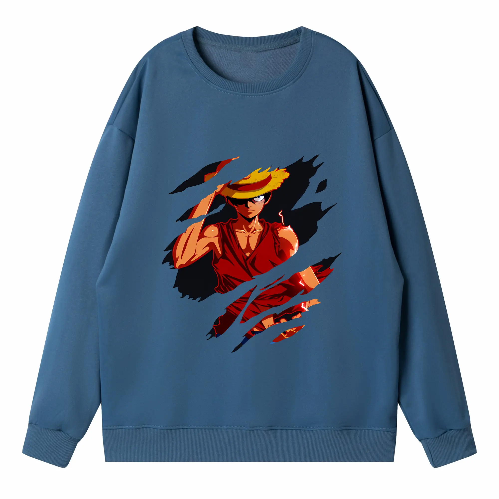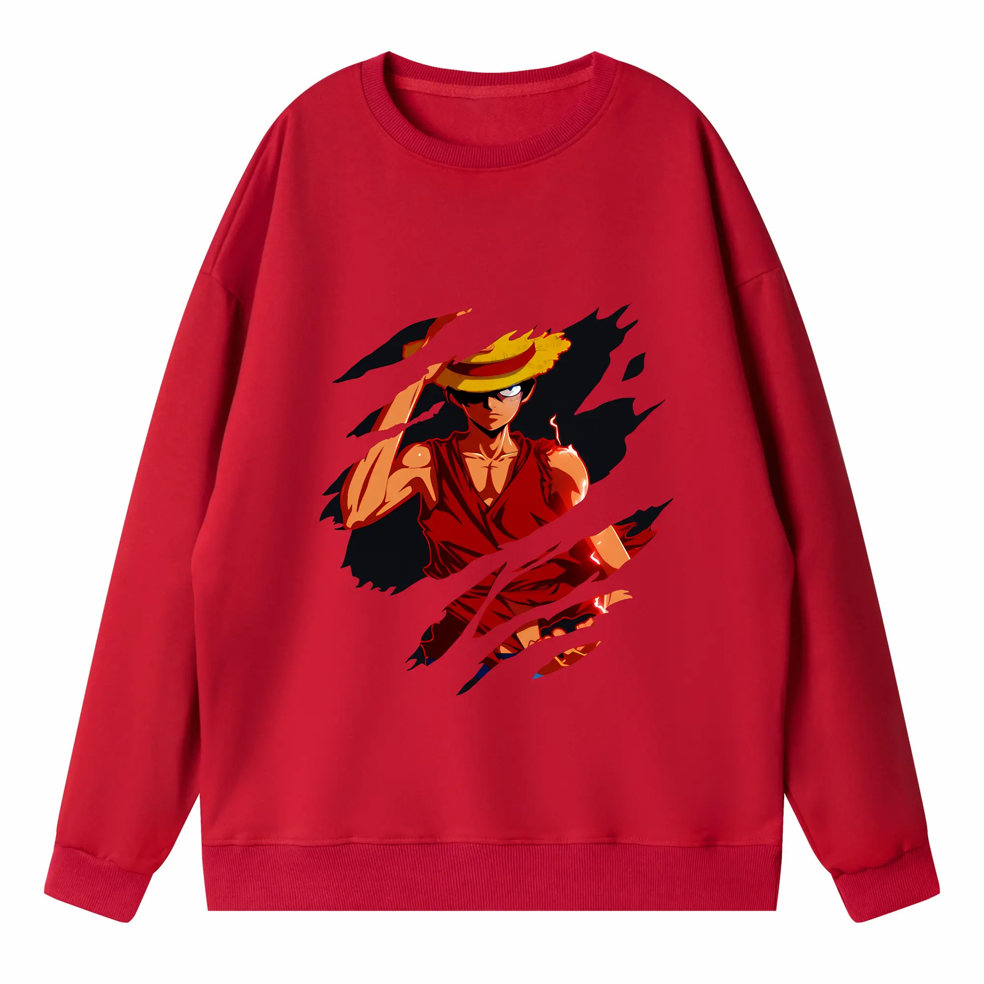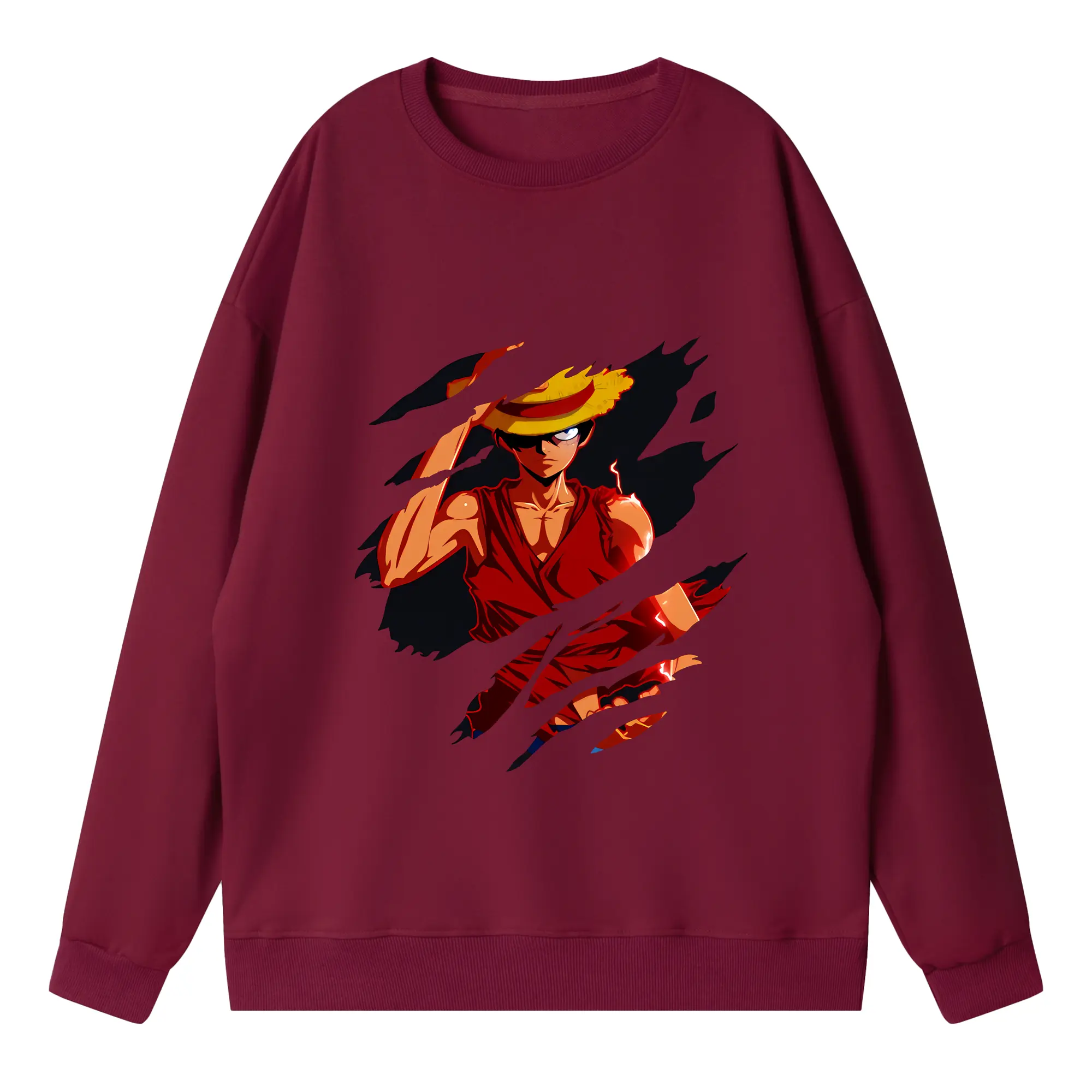 ワンピース グッズ モンキー・D・ルフィ - 高品質 クルーネック スウェット ・ コットン59% ポリエステル41% ・ ユニセックス 長袖 トレーナー ・ カジュアル デイリー スポーツ 散歩用