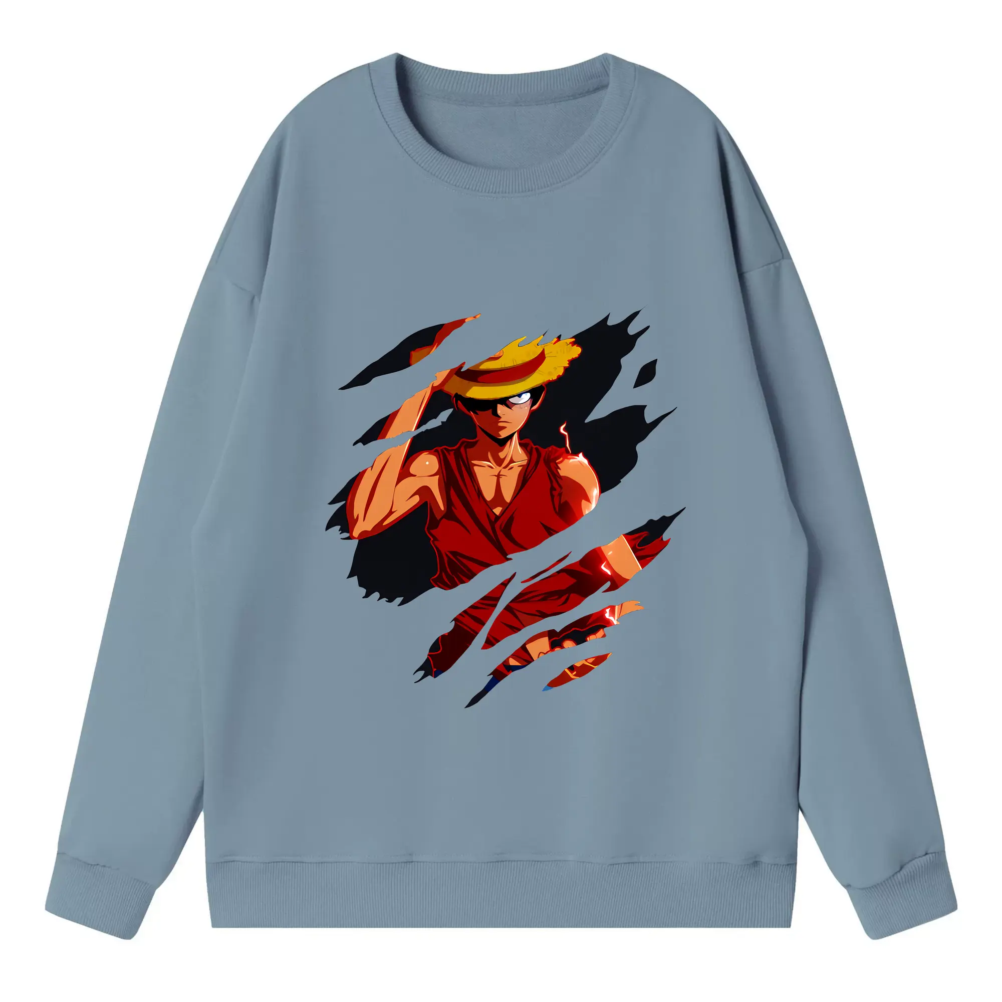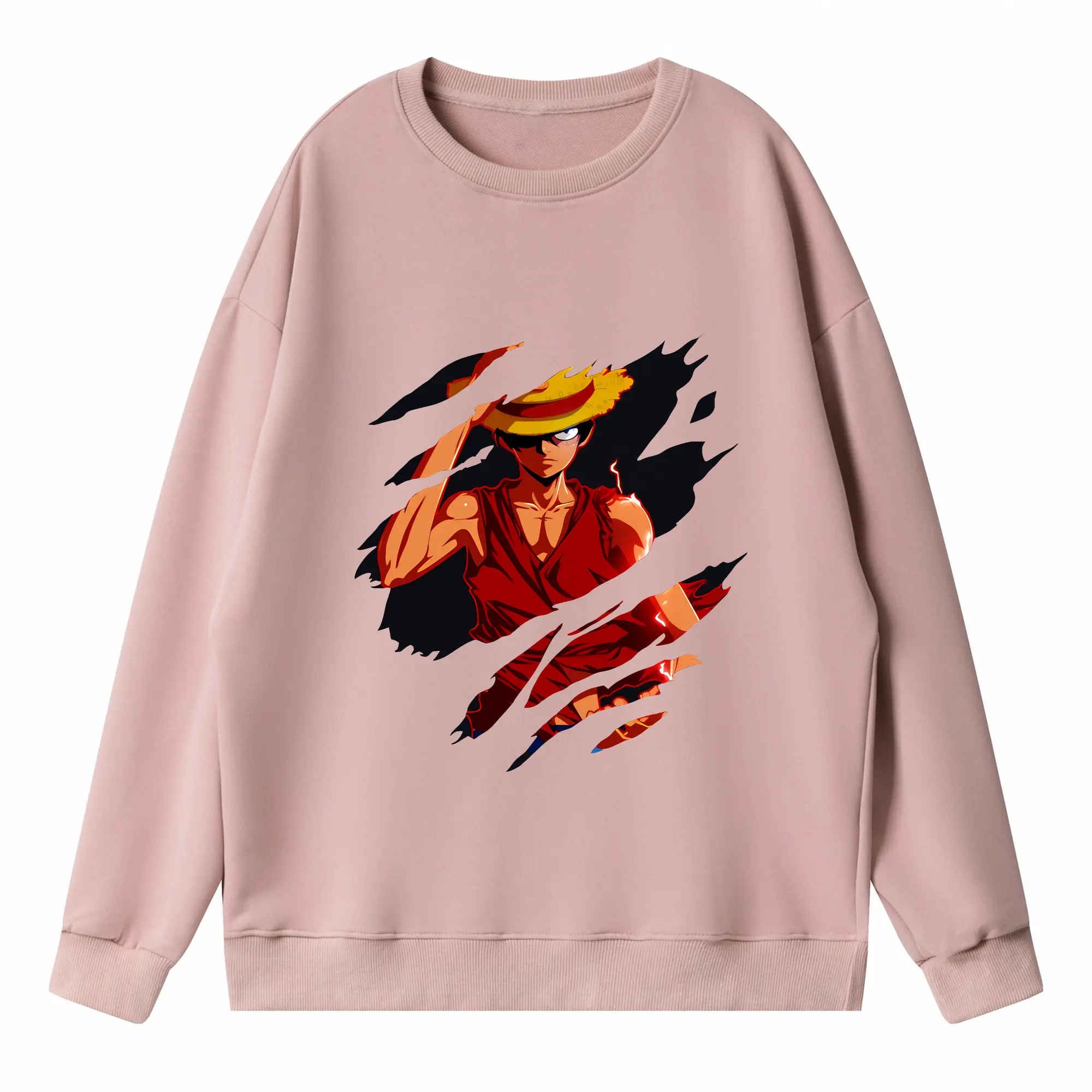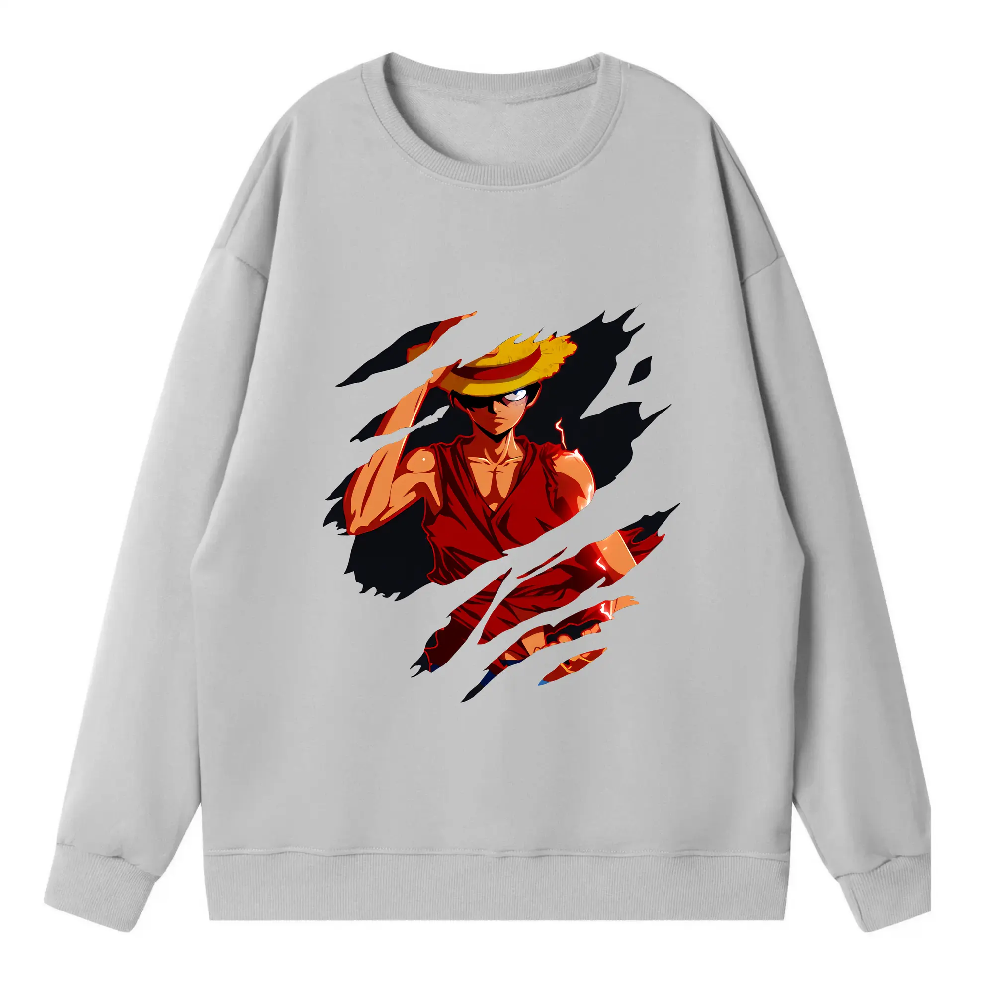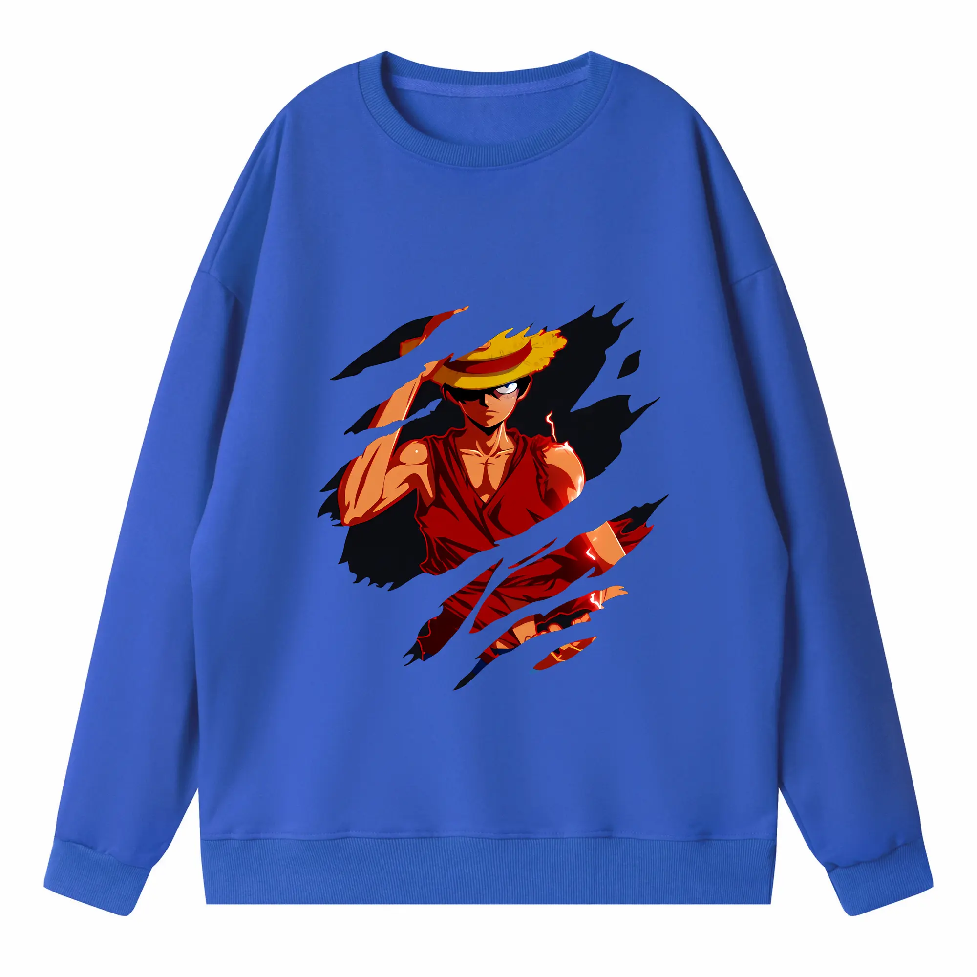 ワンピース グッズ モンキー・D・ルフィ - 高品質 クルーネック スウェット ・ コットン59% ポリエステル41% ・ ユニセックス 長袖 トレーナー ・ カジュアル デイリー スポーツ 散歩用