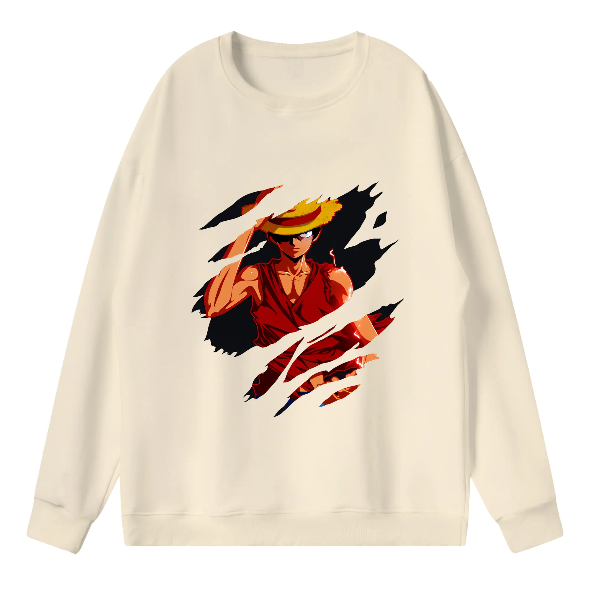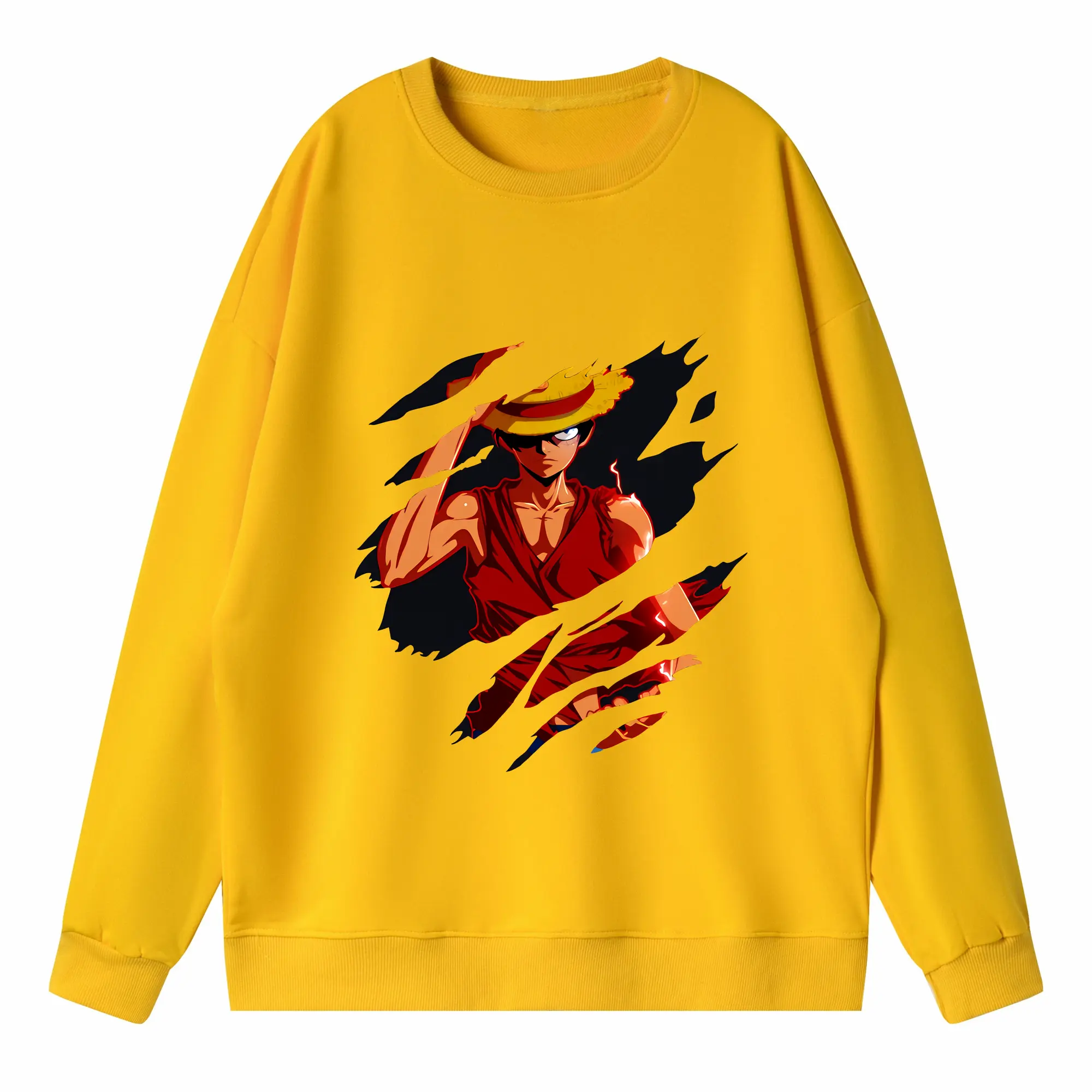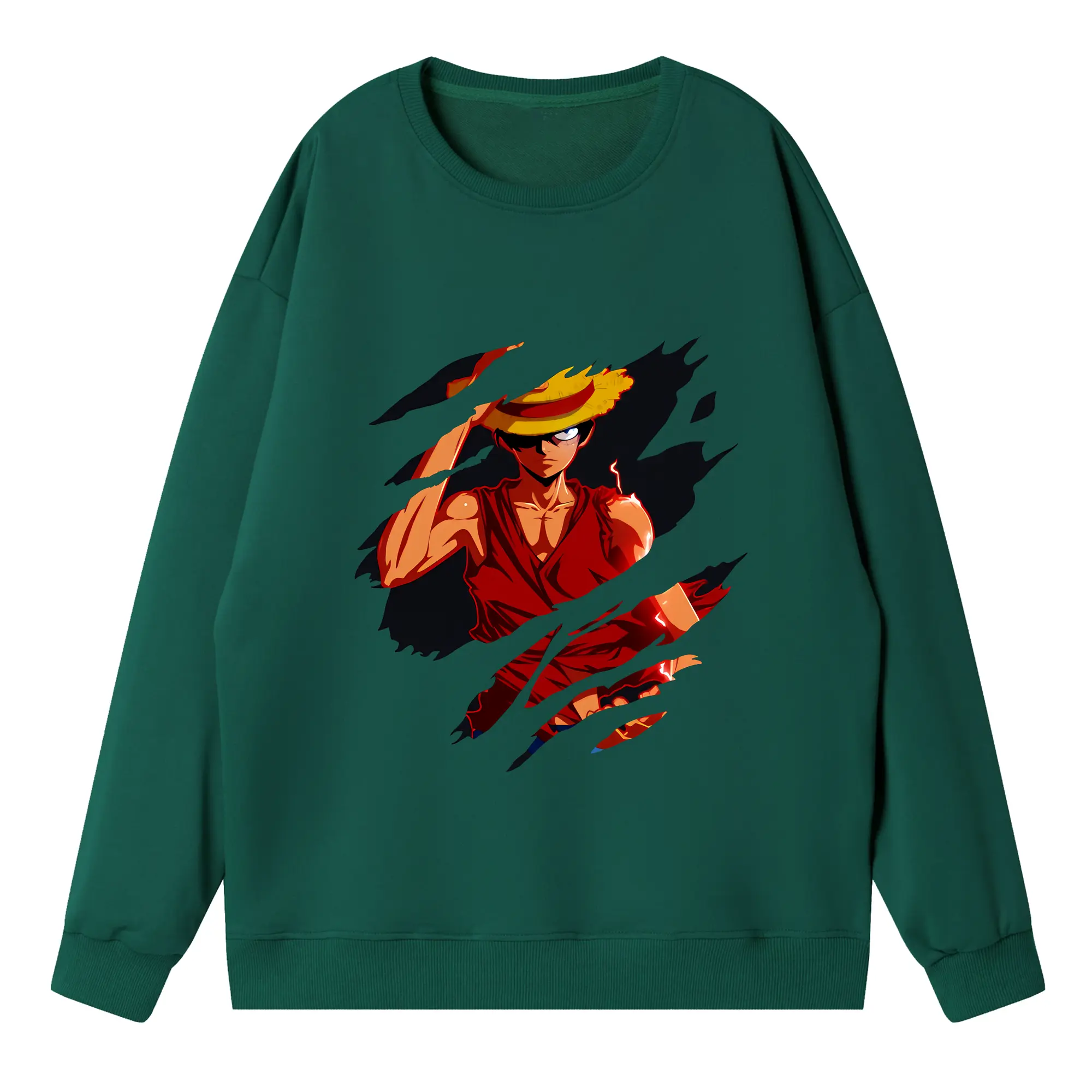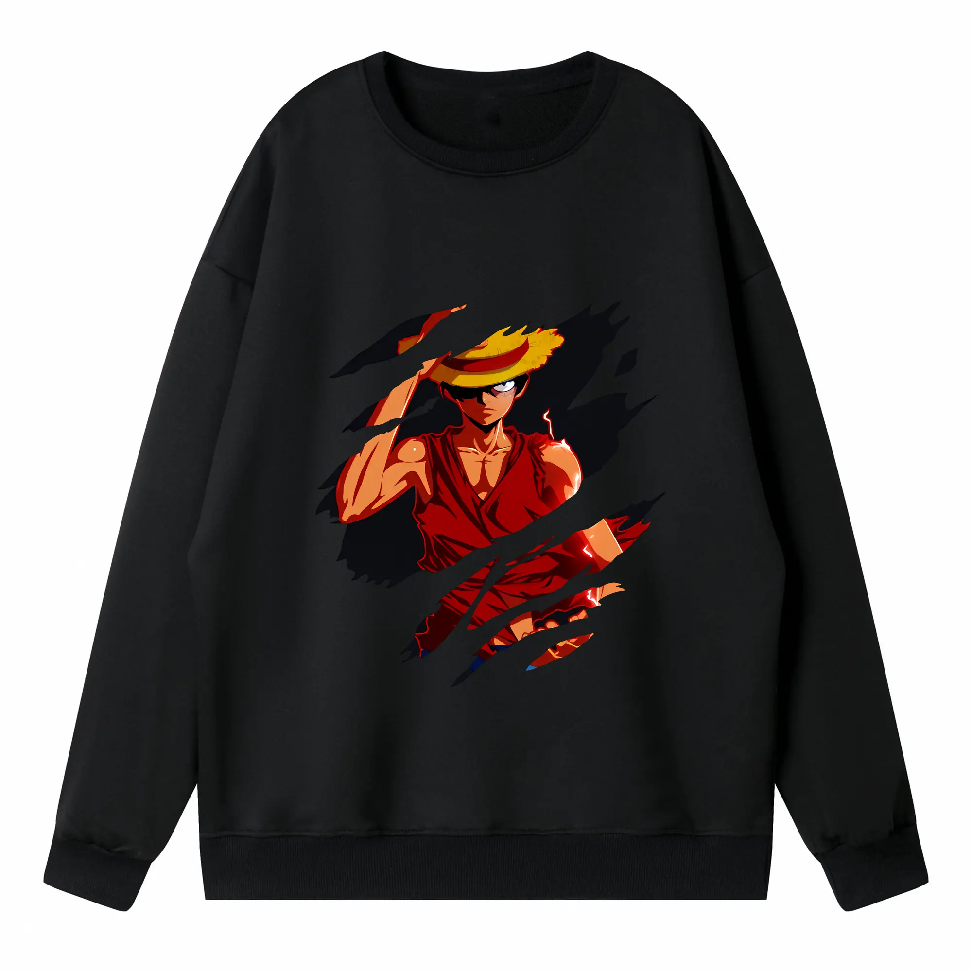ワンピース グッズ モンキー・D・ルフィ - 高品質 クルーネック スウェット ・ コットン59% ポリエステル41% ・ ユニセックス 長袖 トレーナー ・ カジュアル デイリー スポーツ 散歩用