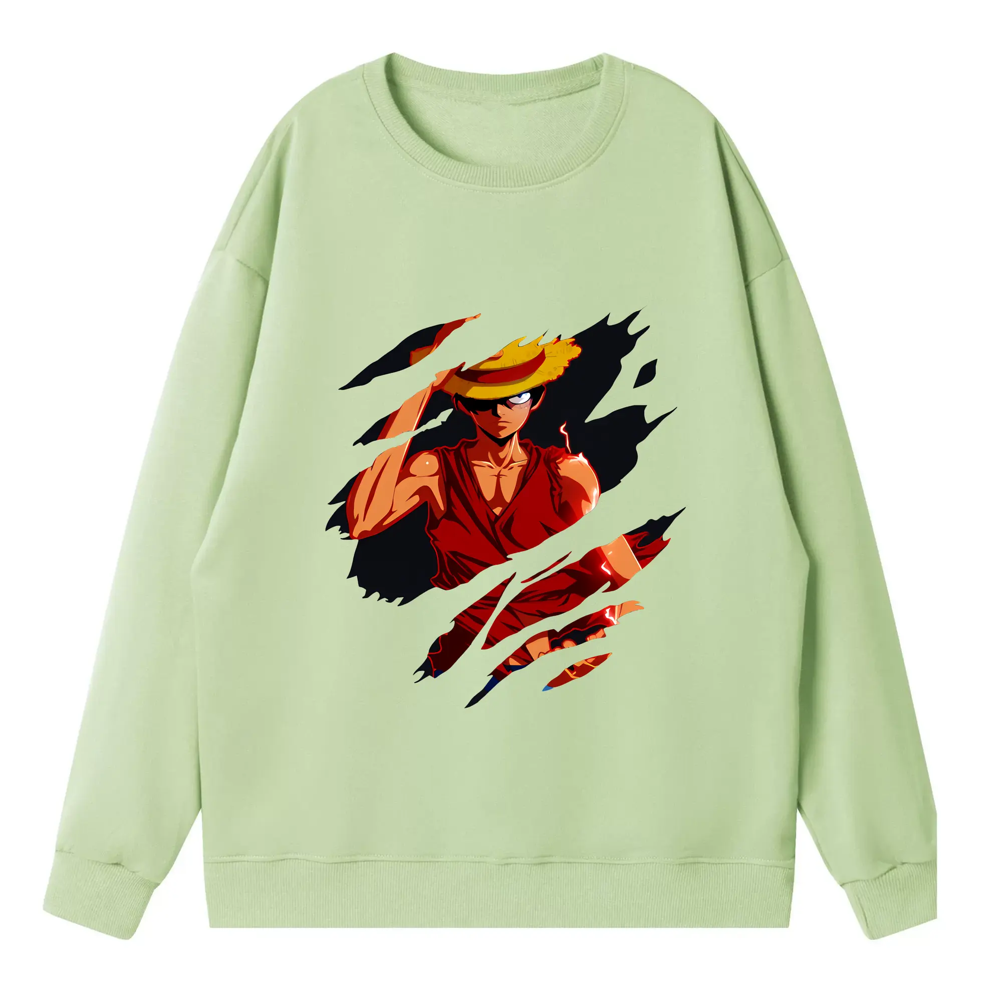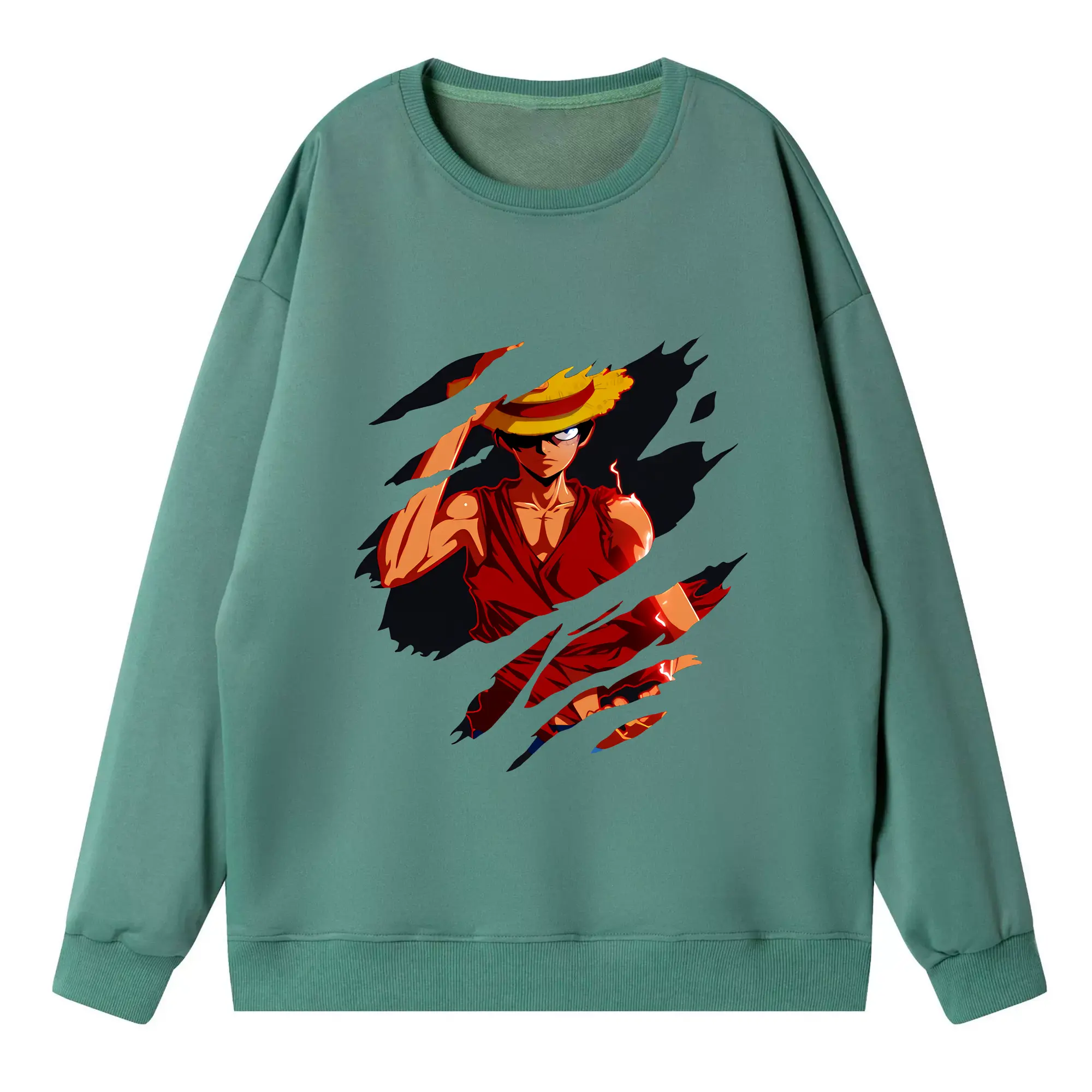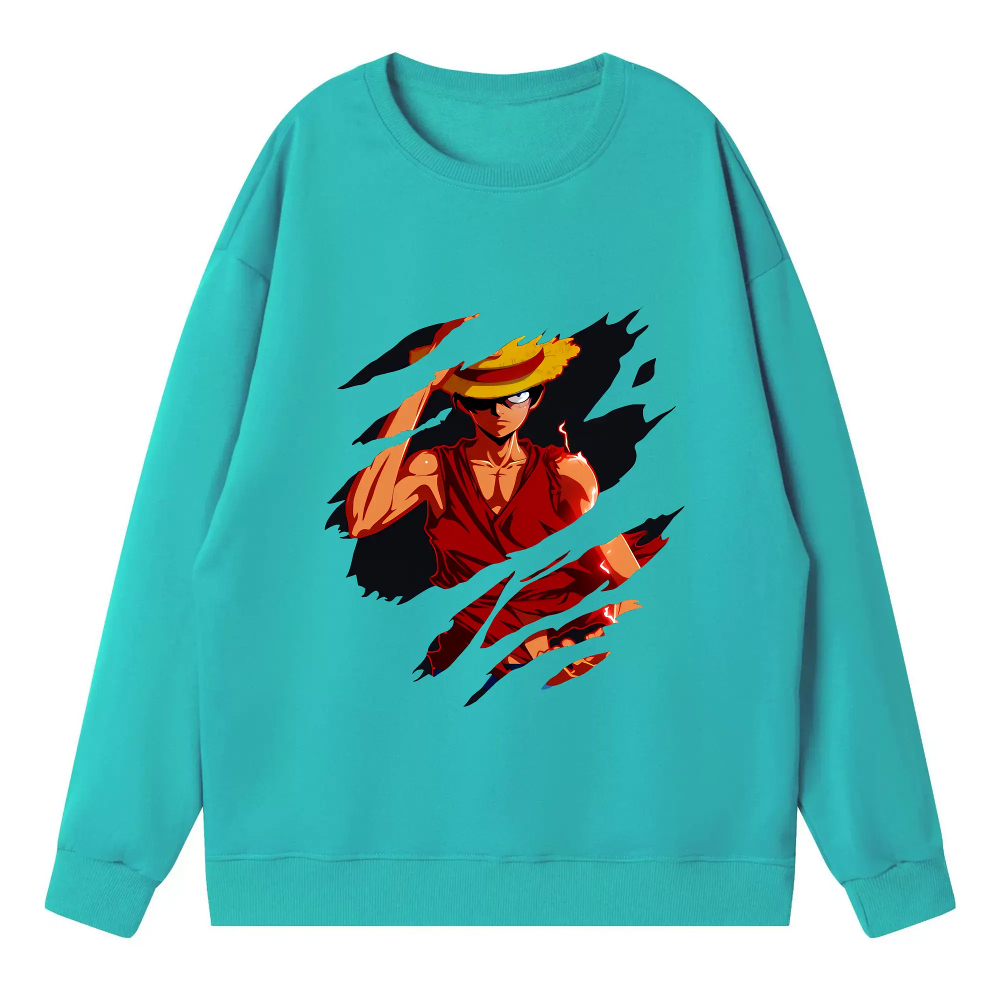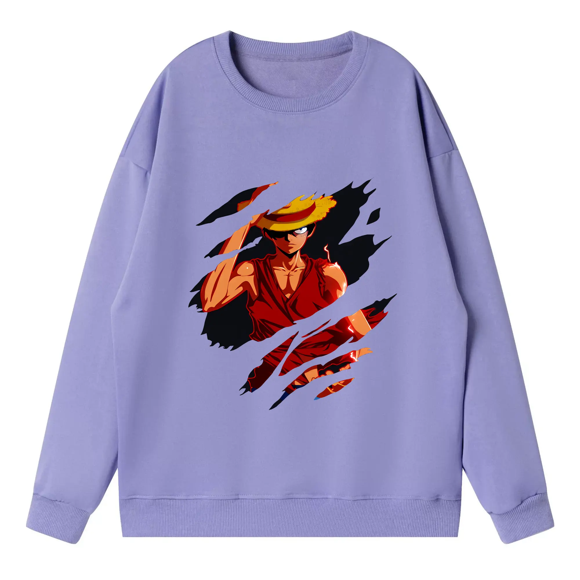 ワンピース グッズ モンキー・D・ルフィ - 高品質 クルーネック スウェット ・ コットン59% ポリエステル41% ・ ユニセックス 長袖 トレーナー ・ カジュアル デイリー スポーツ 散歩用