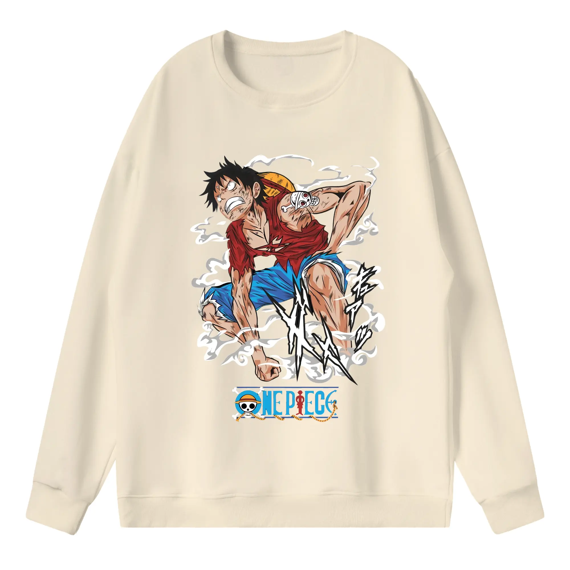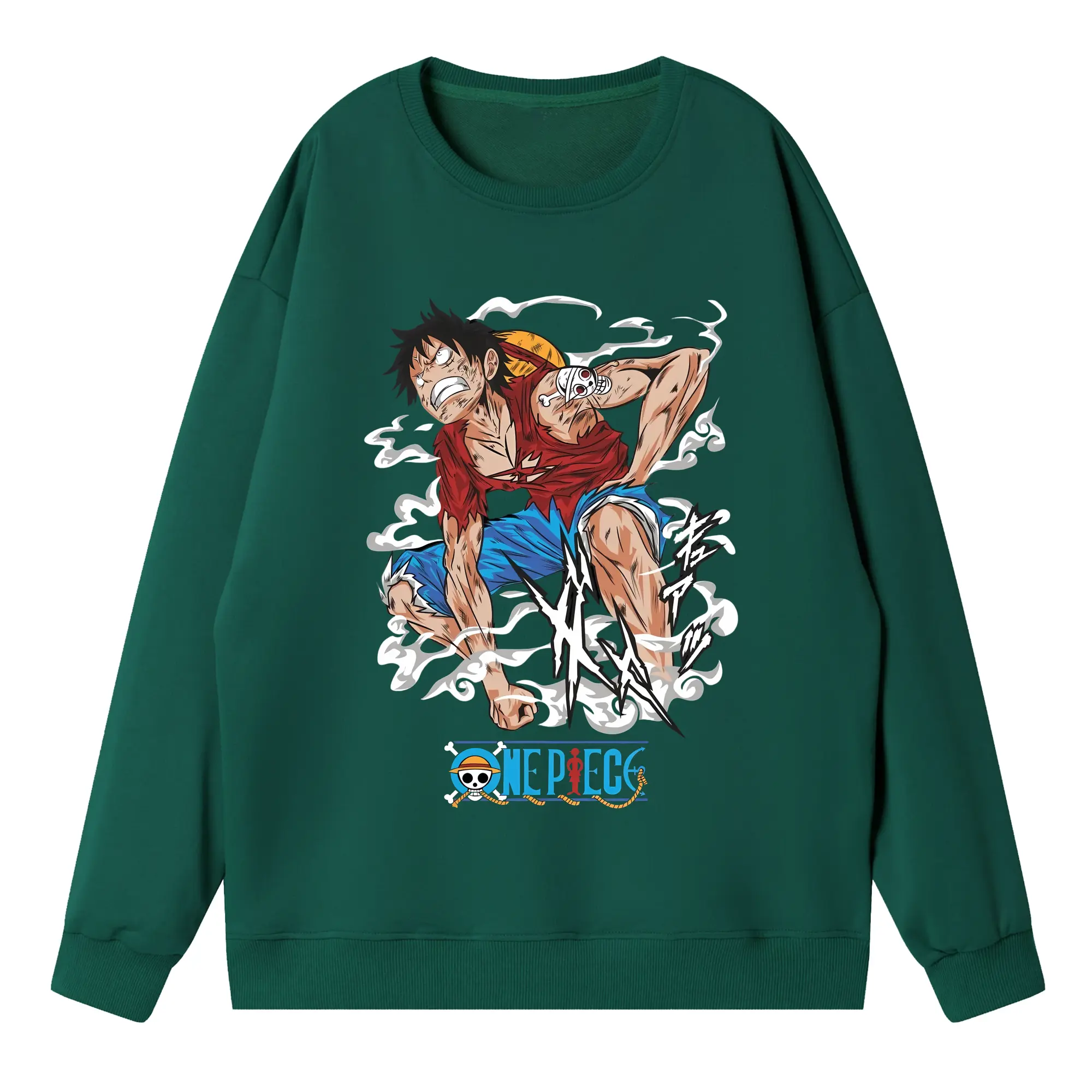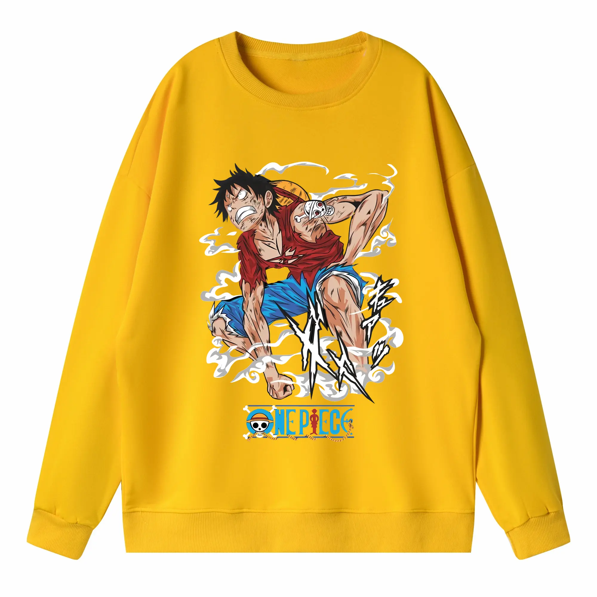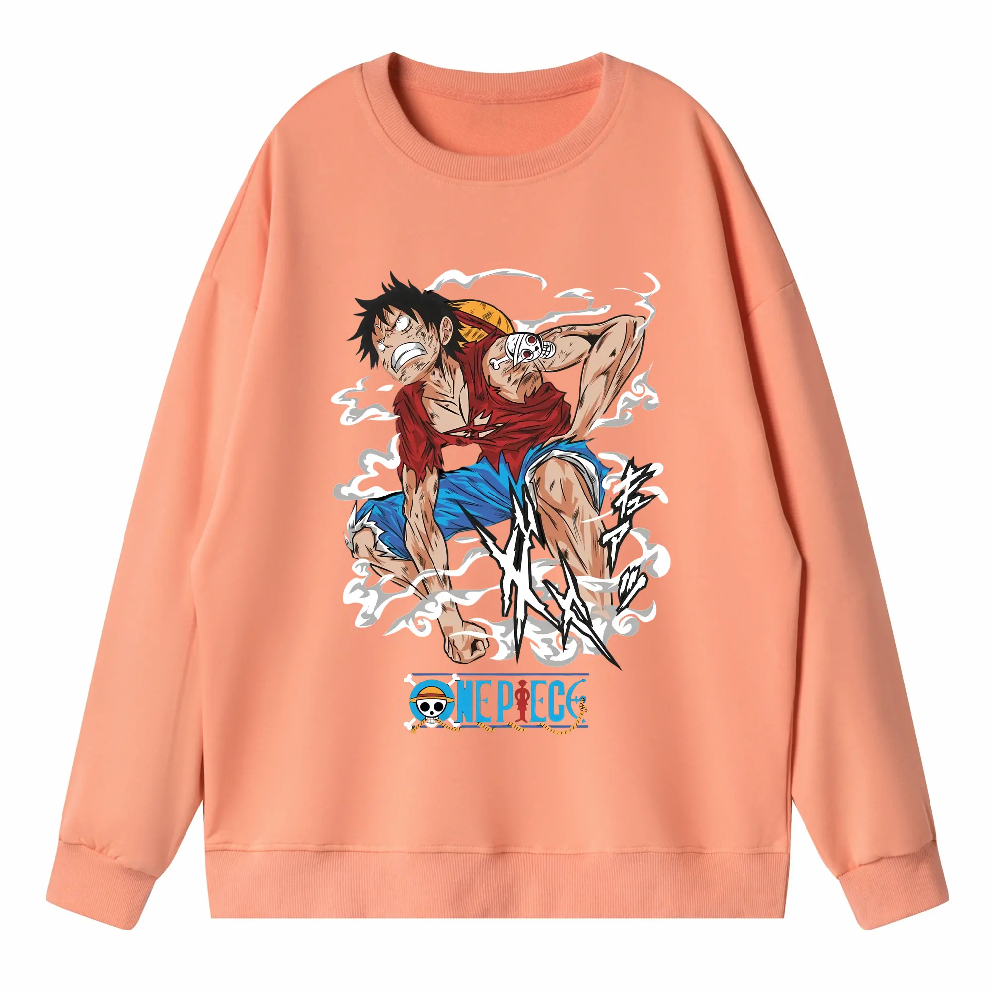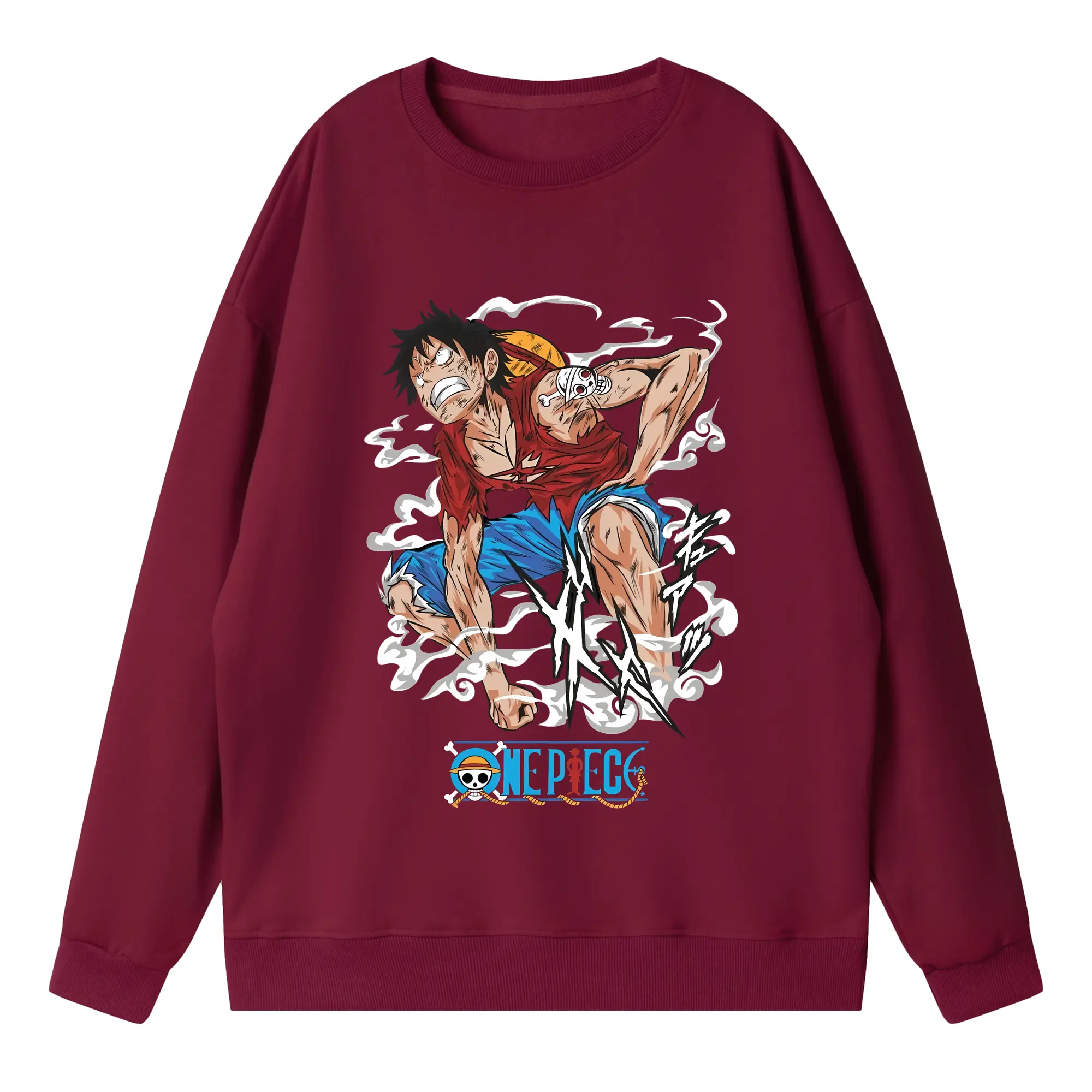ワンピース グッズ モンキー・D・ルフィ - 高品質 クルーネック スウェット ・ コットン59% ポリエステル41% ・ ユニセックス 長袖 トレーナー ・ カジュアル デイリー スポーツ 散歩用