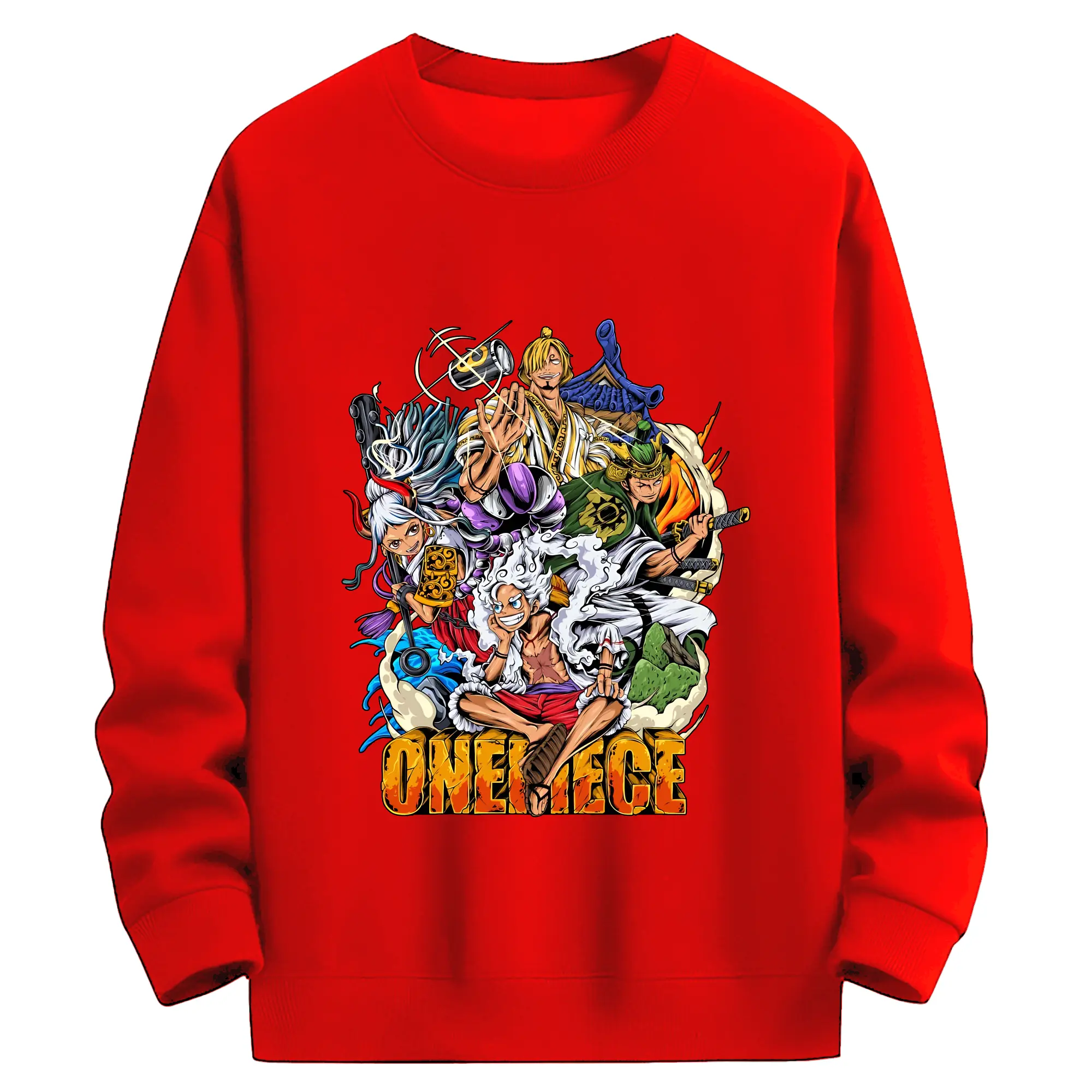 ワンピース グッズ モンキー・D・ルフィ - 薄手 クルーネック スウェット 裏毛260g · ポリエステル 春秋向け カジュアル 男女兼用 · トレーナー デイリー スポーツ 散歩に最適