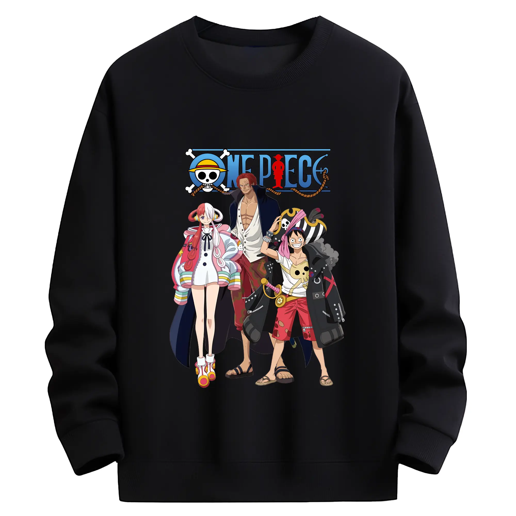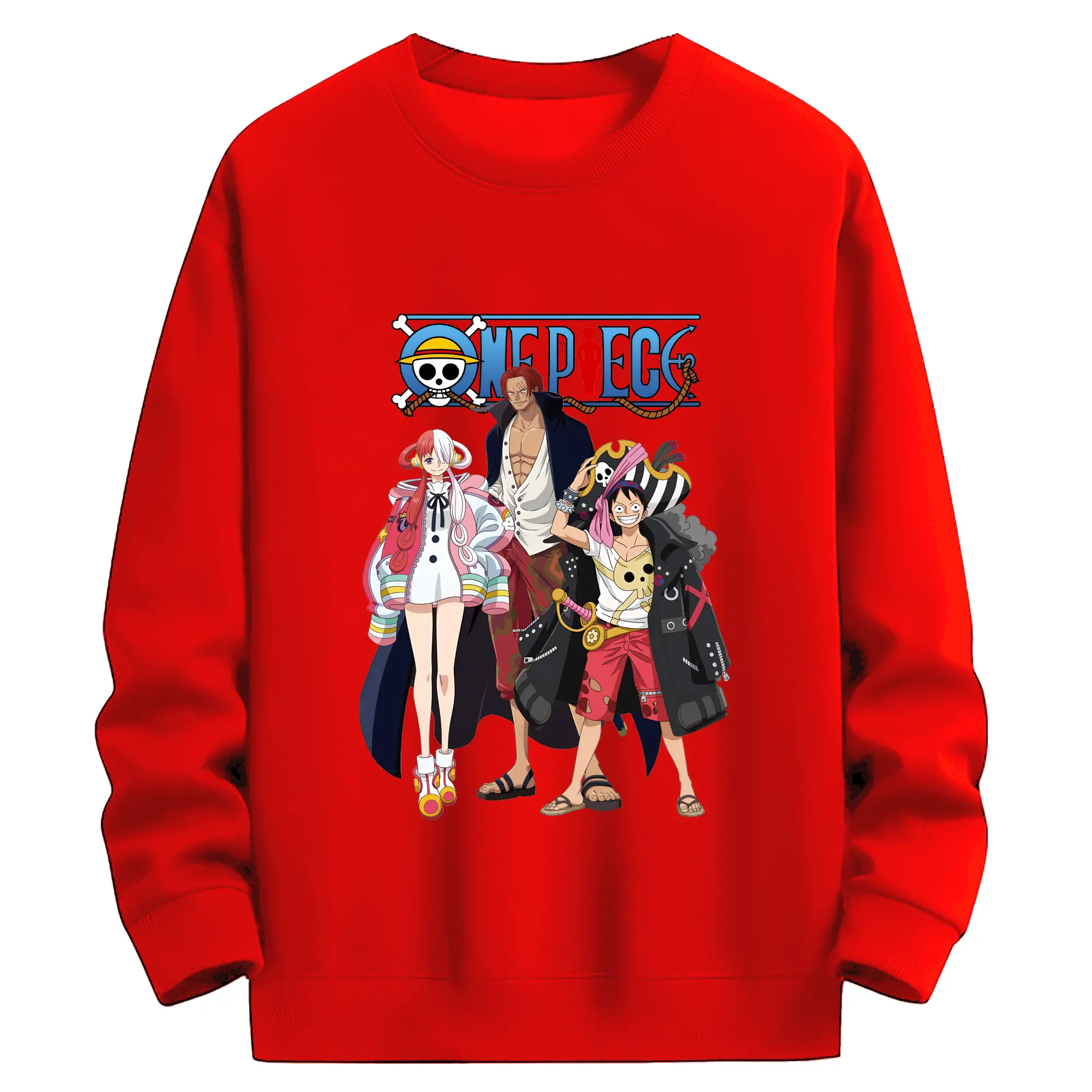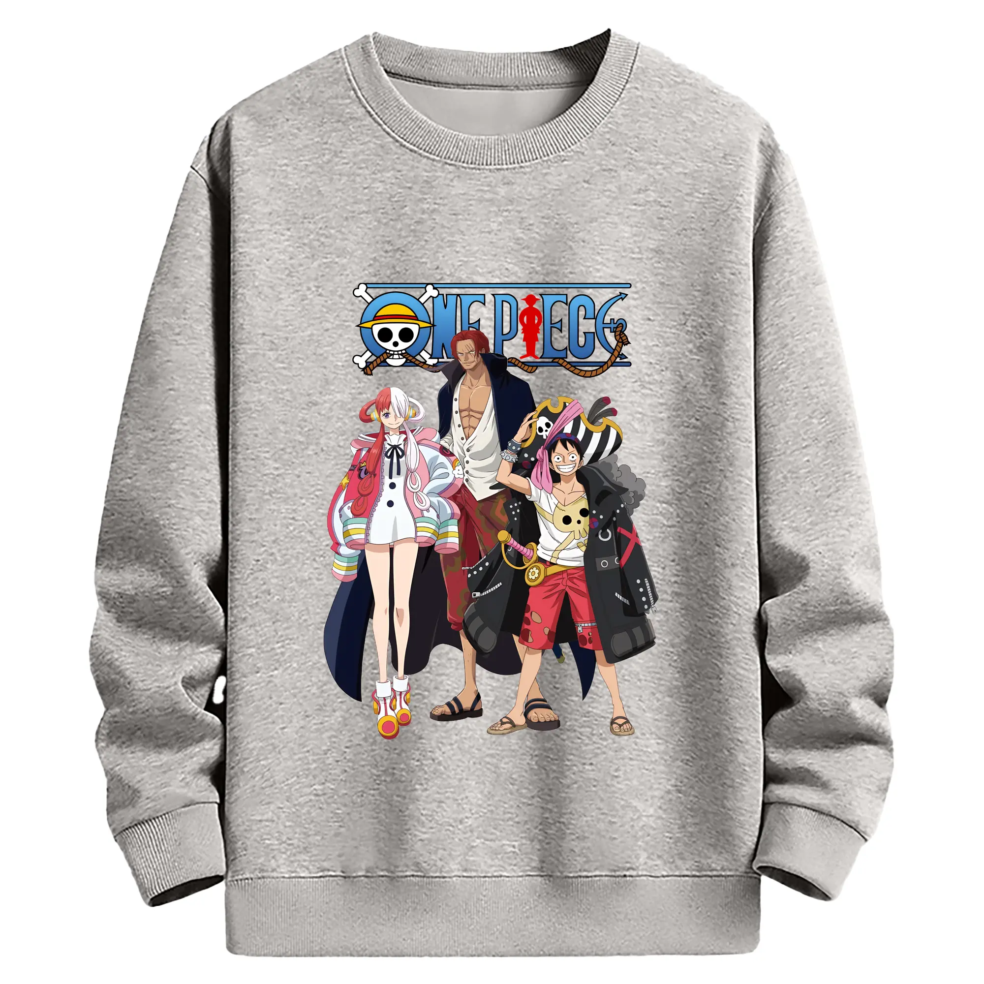 ワンピース グッズ モンキー・D・ルフィ - 薄手 クルーネック スウェット 裏毛260g · ポリエステル 春秋向け カジュアル 男女兼用 · トレーナー デイリー スポーツ 散歩に最適