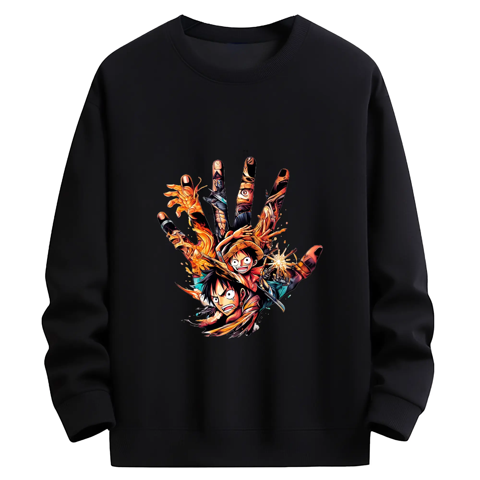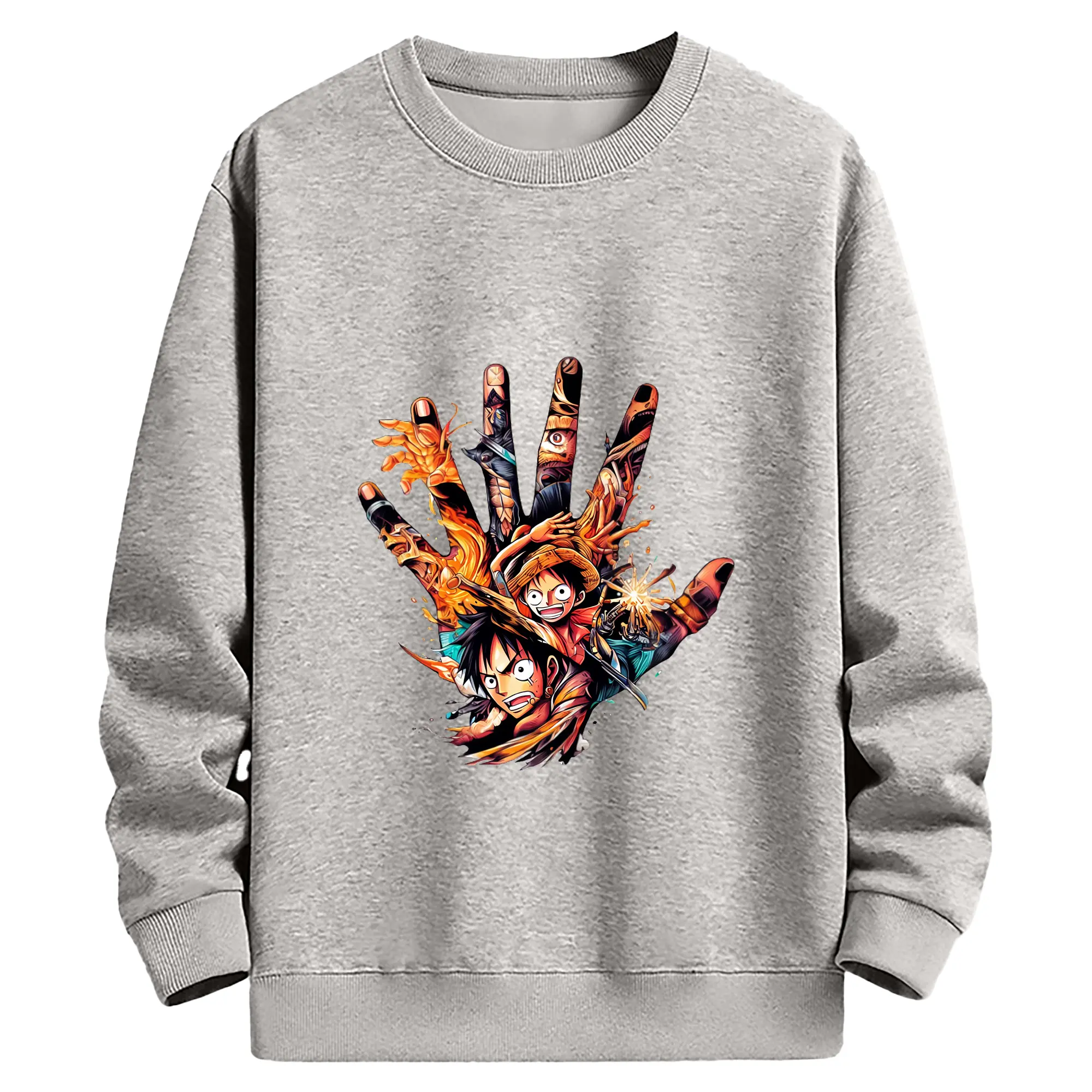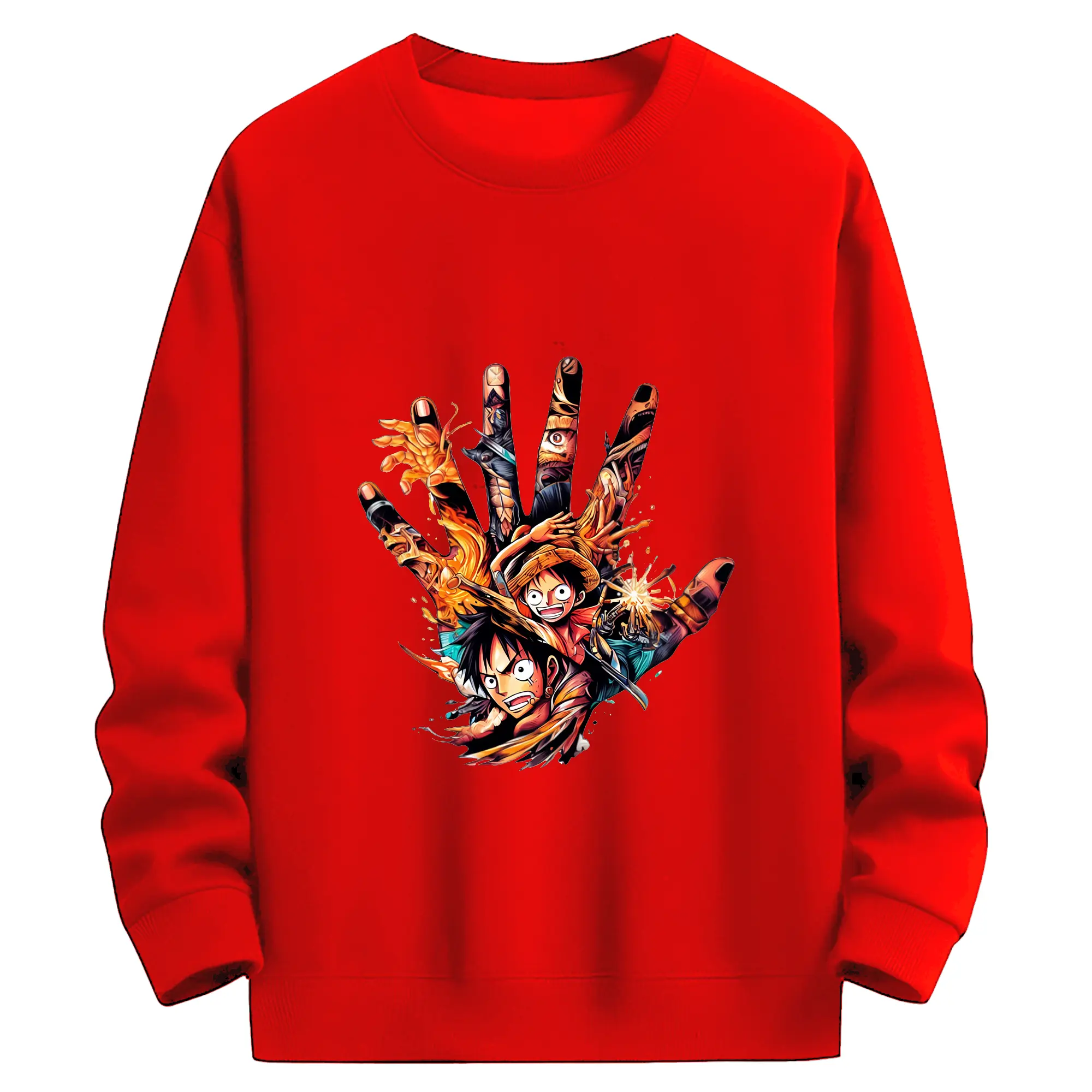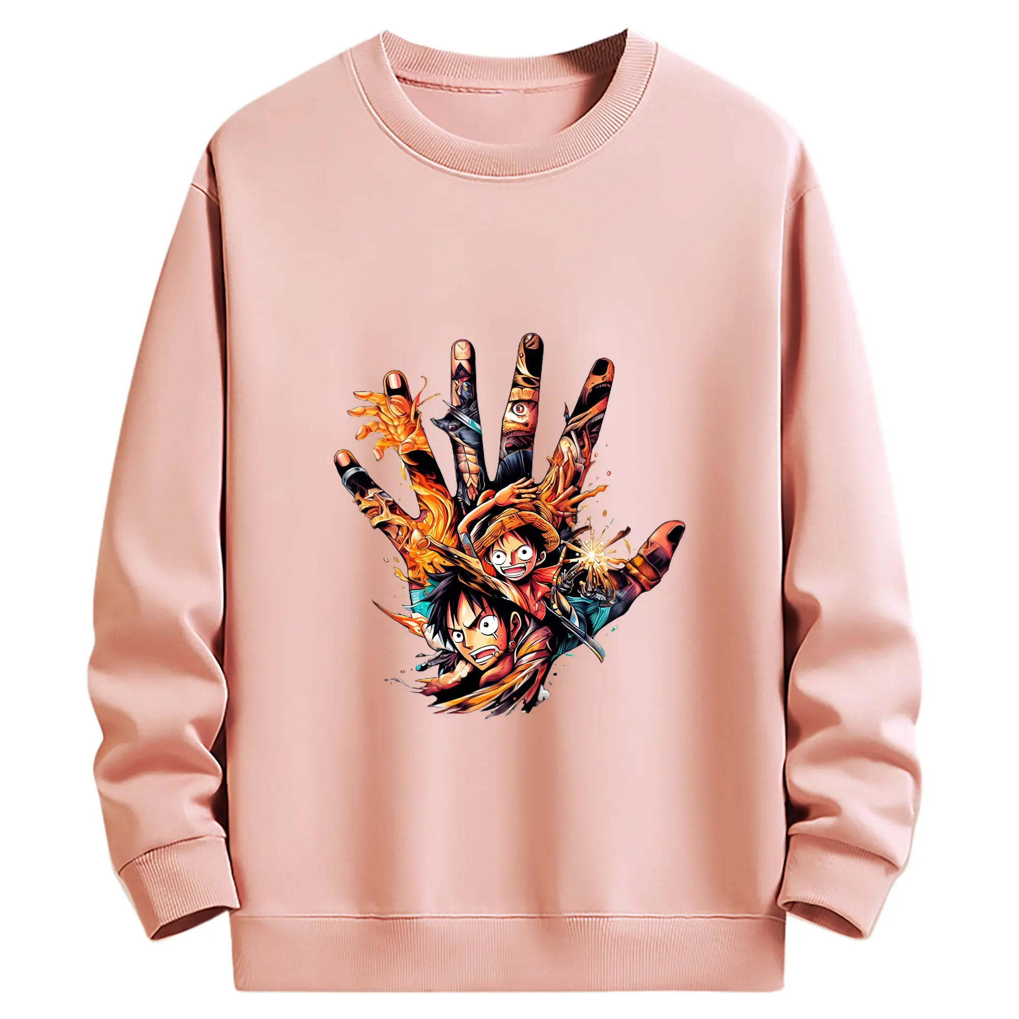 ワンピース グッズ モンキー・D・ルフィ - 薄手 クルーネック スウェット 裏毛260g · ポリエステル 春秋向け カジュアル 男女兼用 · トレーナー デイリー スポーツ 散歩に最適