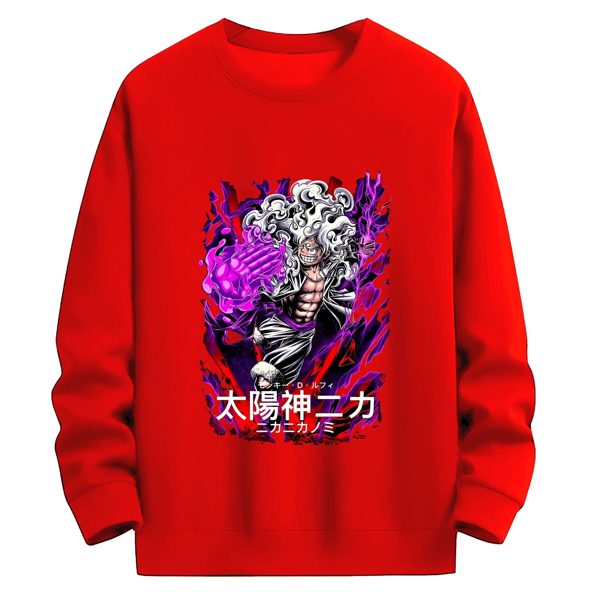 ワンピース グッズ モンキー・D・ルフィ - 薄手 クルーネック スウェット 裏毛260g · ポリエステル 春秋向け カジュアル 男女兼用 · トレーナー デイリー スポーツ 散歩に最適