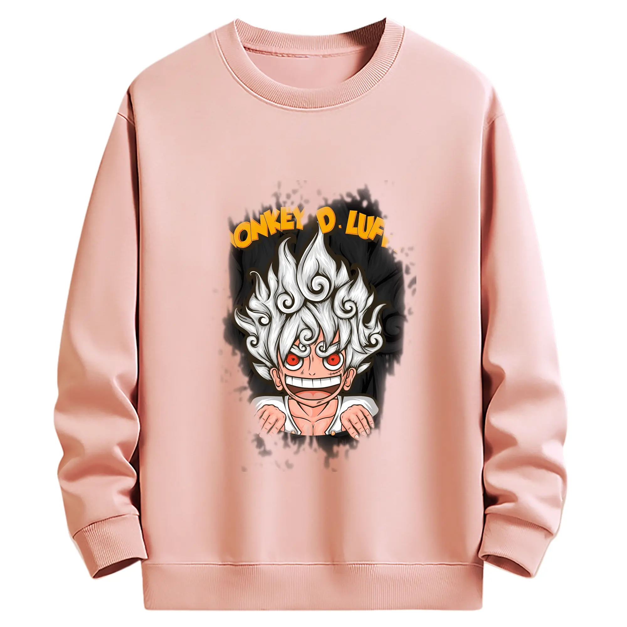 ワンピース グッズ モンキー・D・ルフィ - 薄手 クルーネック スウェット 裏毛260g · ポリエステル 春秋向け カジュアル 男女兼用 · トレーナー デイリー スポーツ 散歩に最適