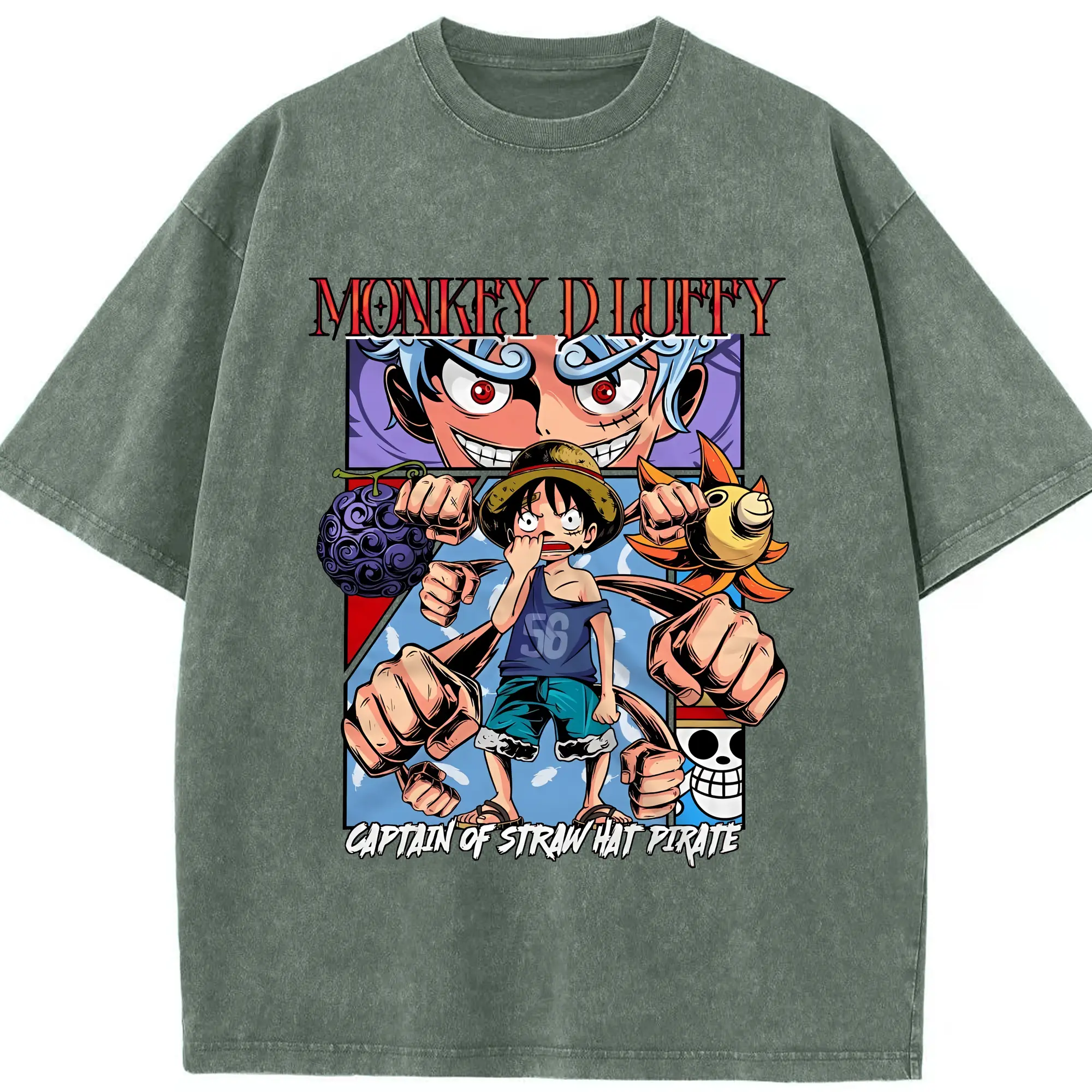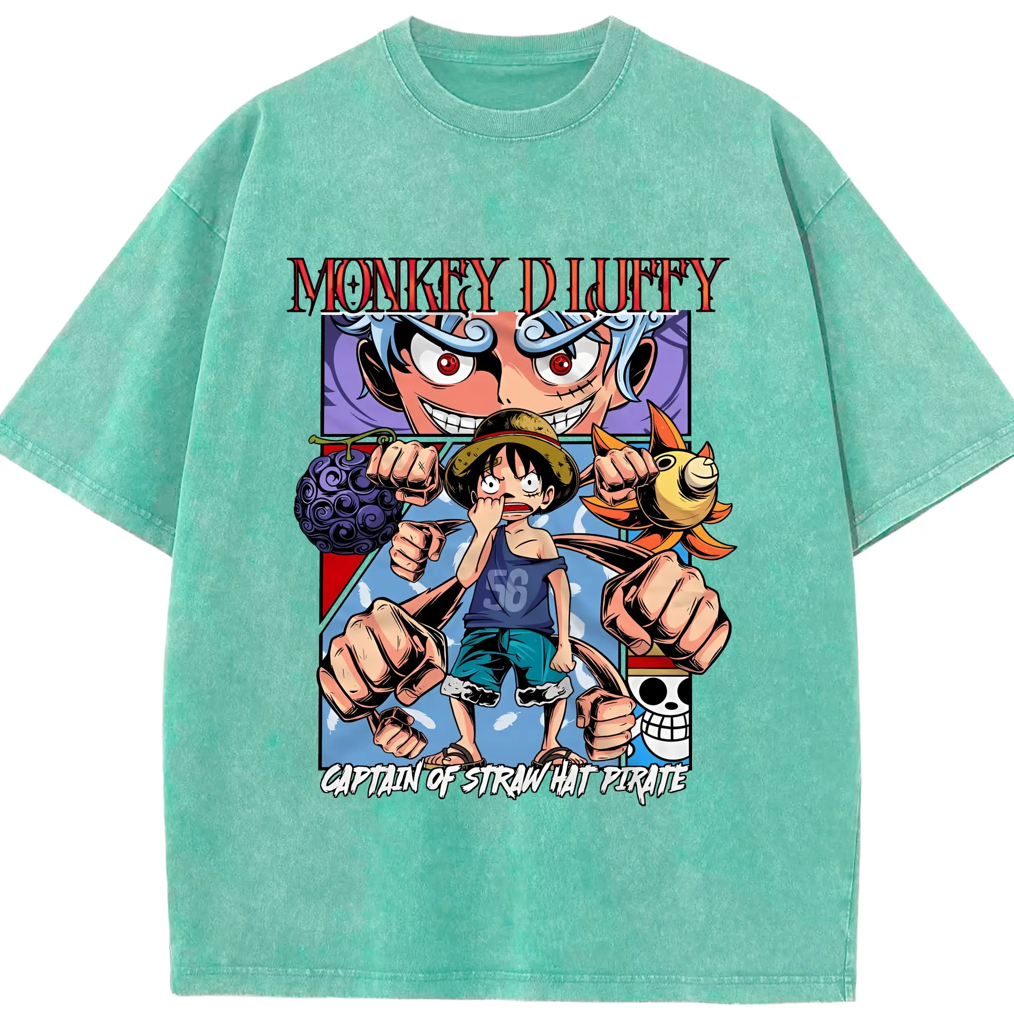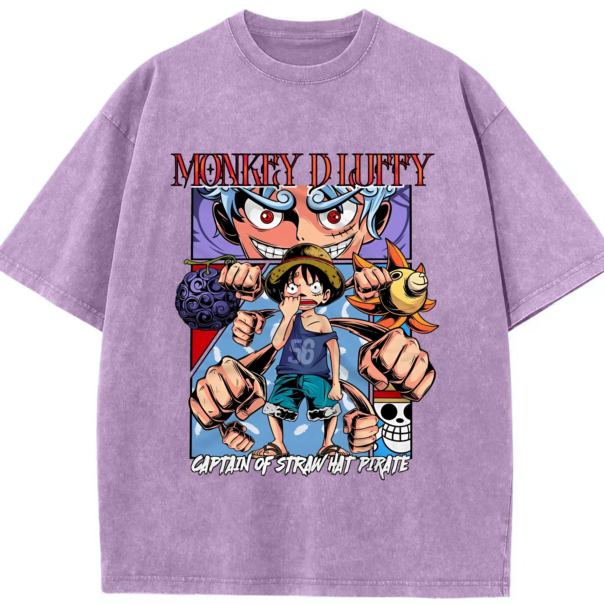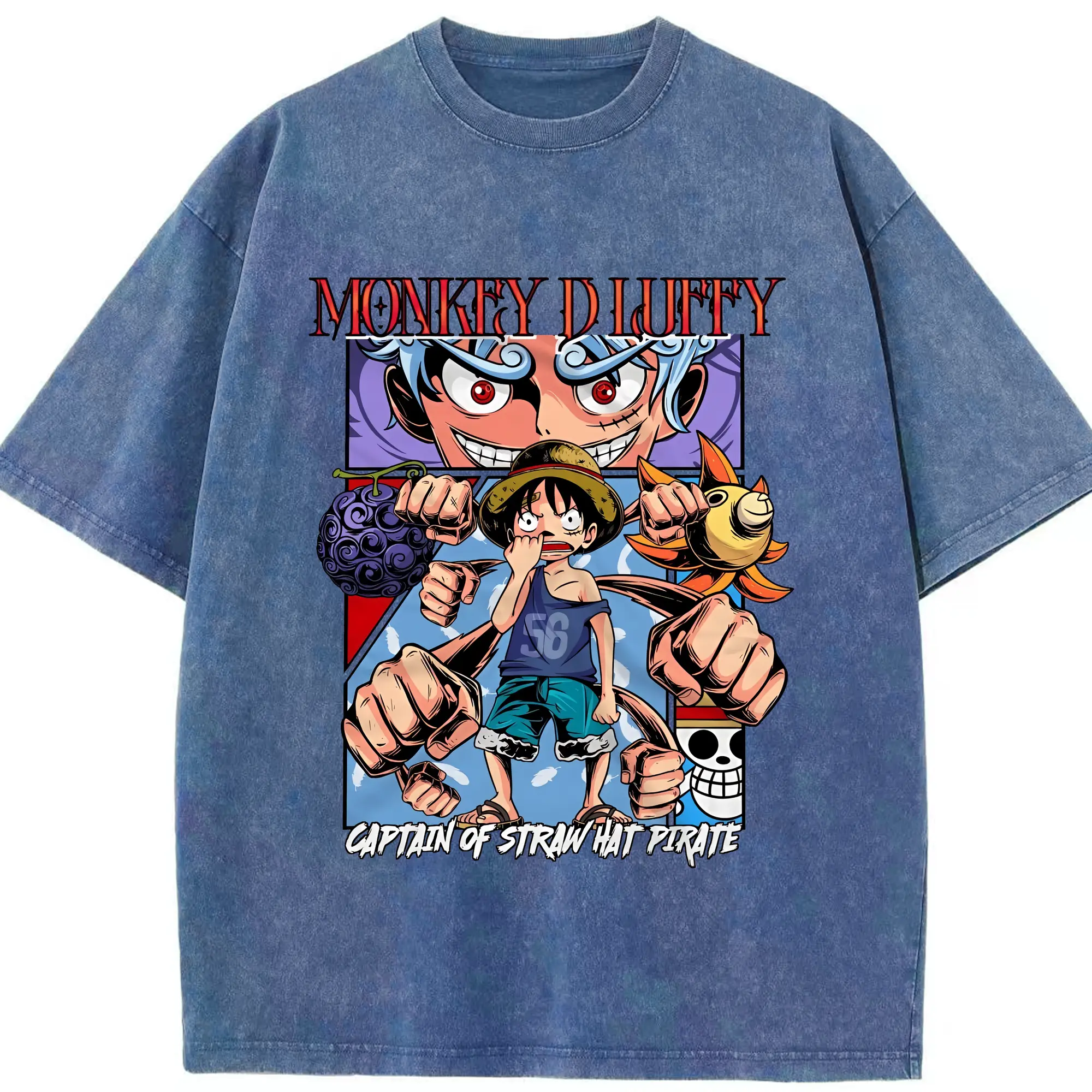 ワンピース グッズ モンキー・D・ルフィ - 綿100% ヴィンテージ風 半袖Tシャツ ・ 背面プリント ・ 柔らか肌触り ・ 通気性 快適 ・ スポーツ カジュアル 外出用