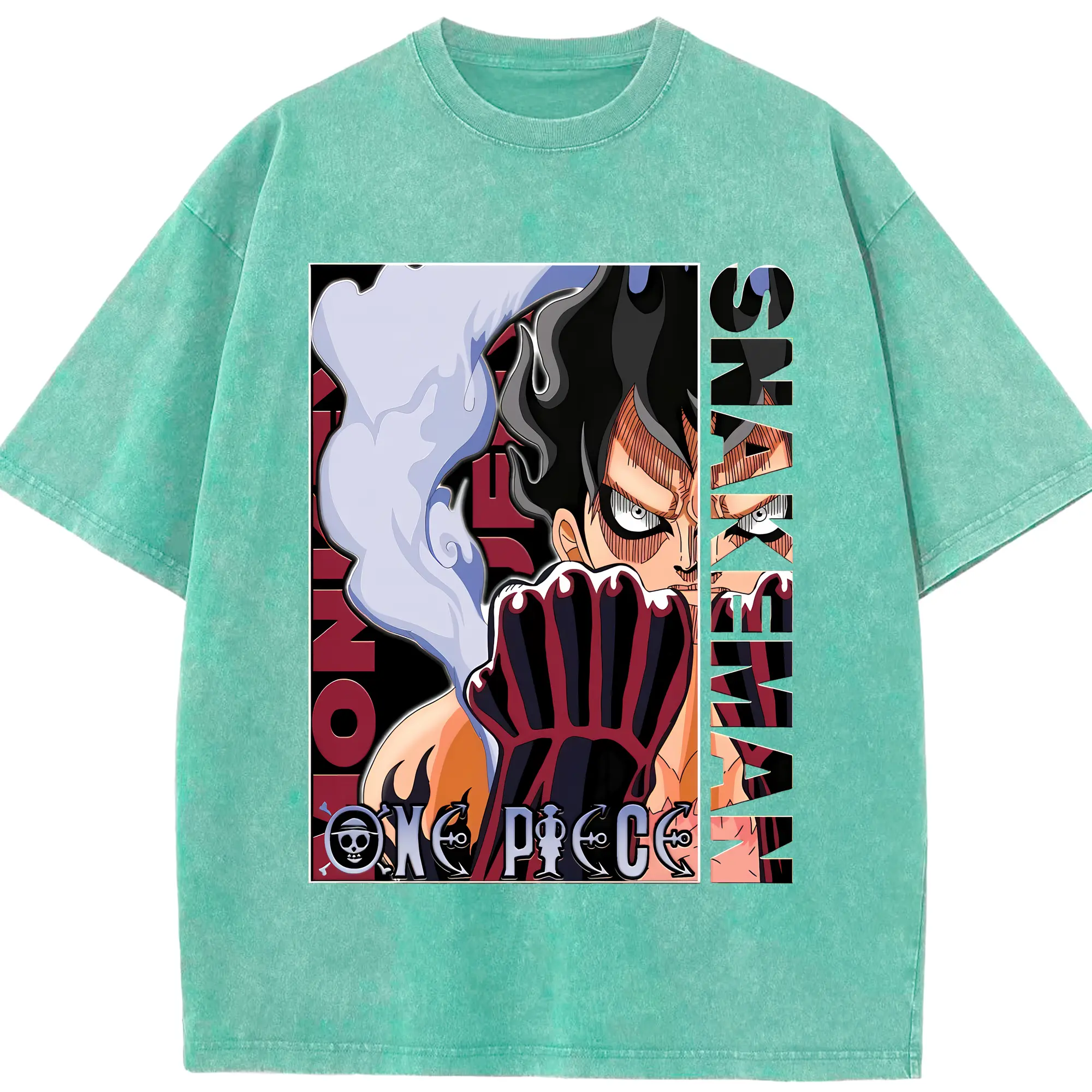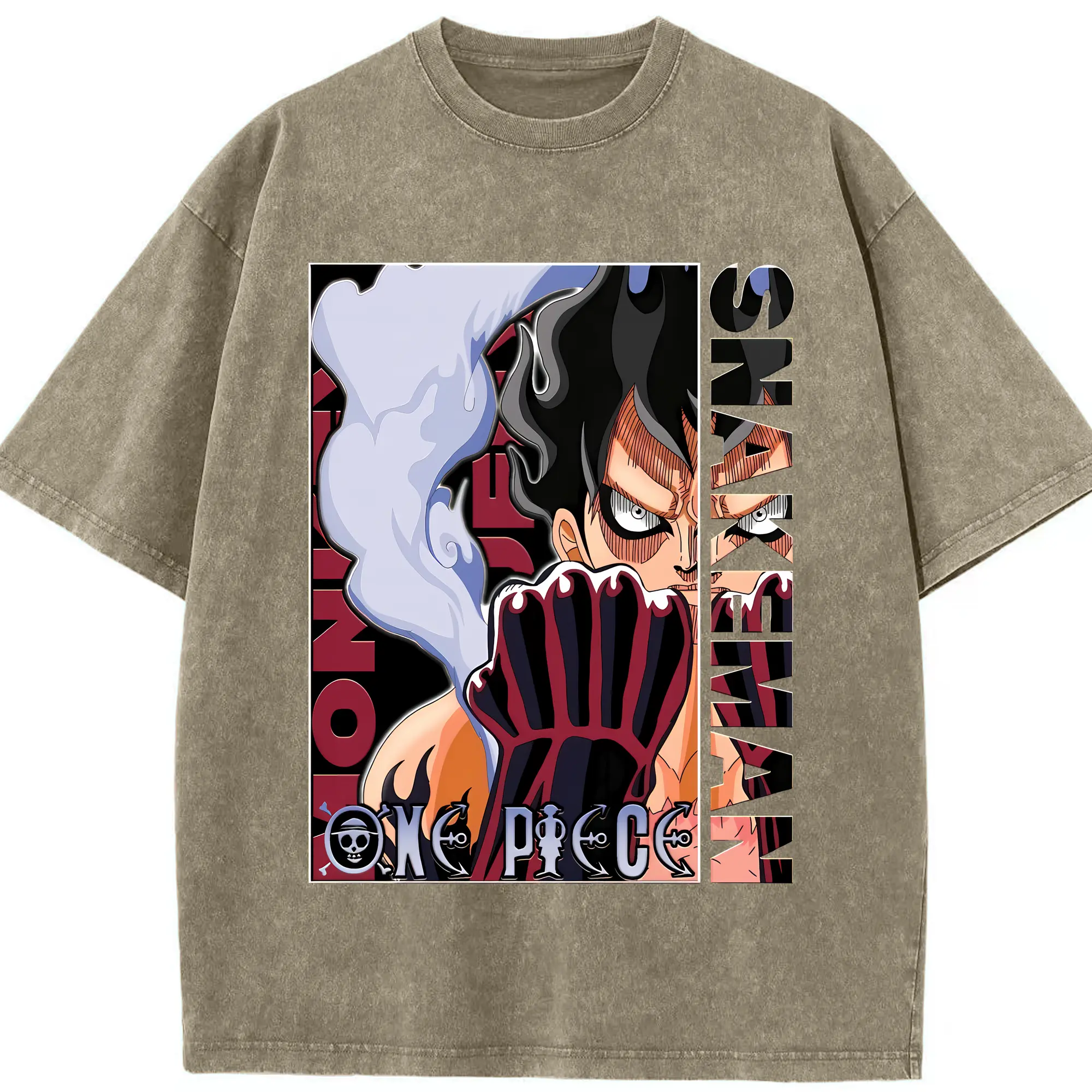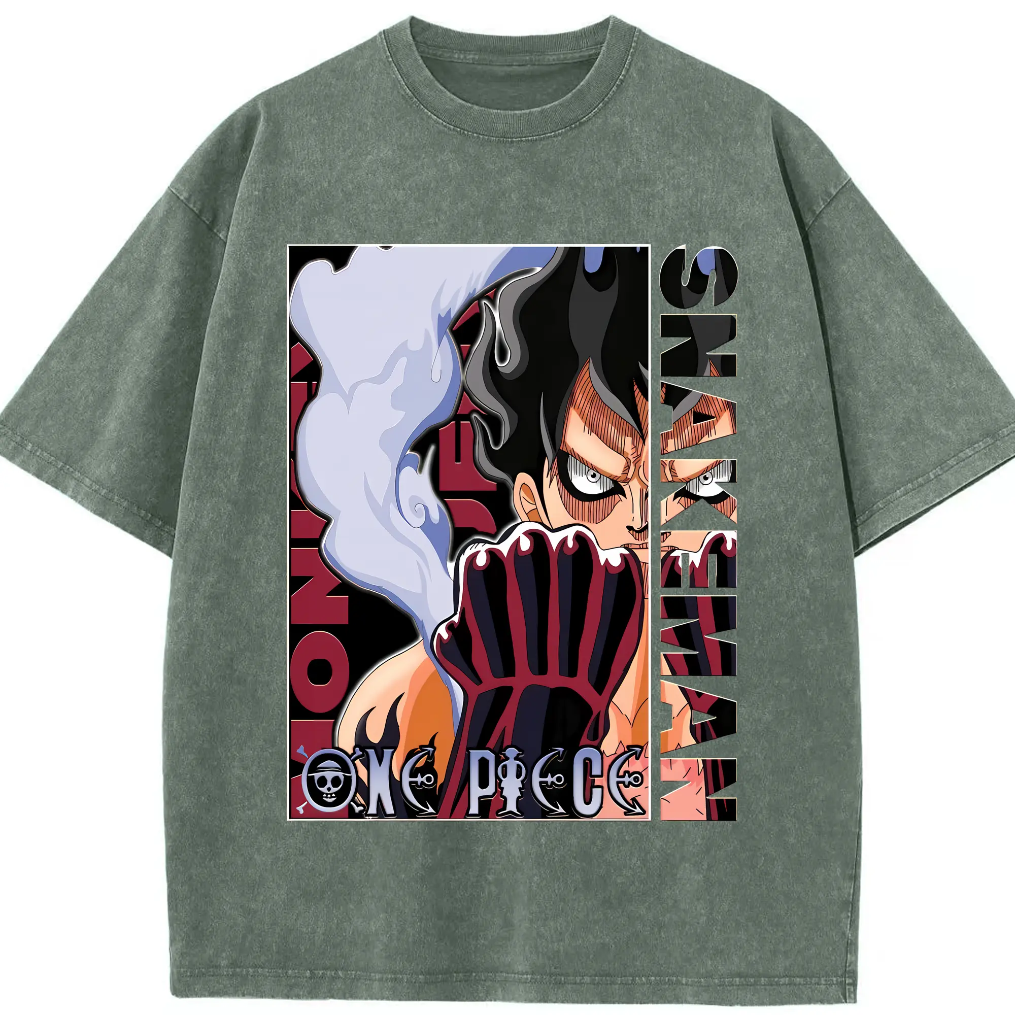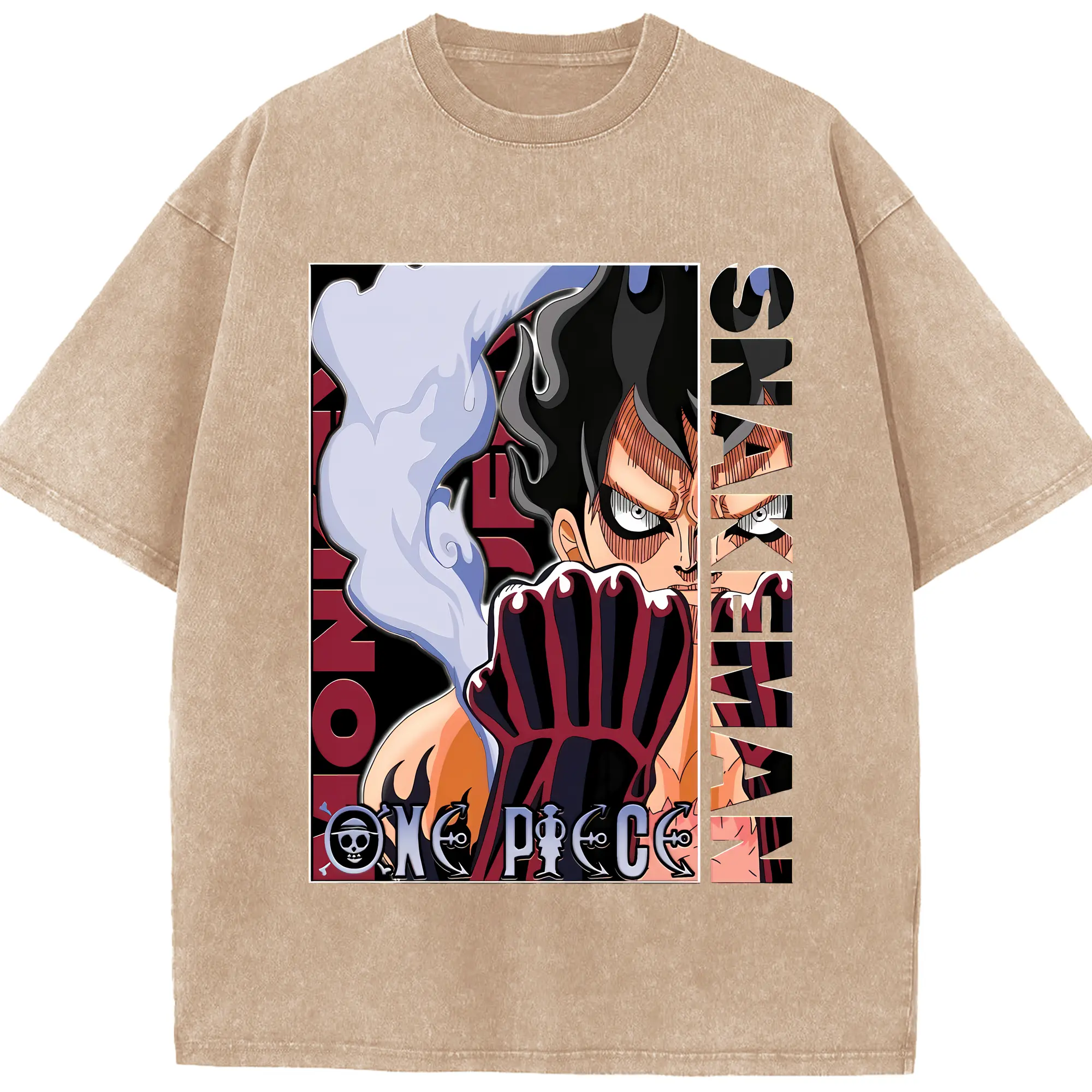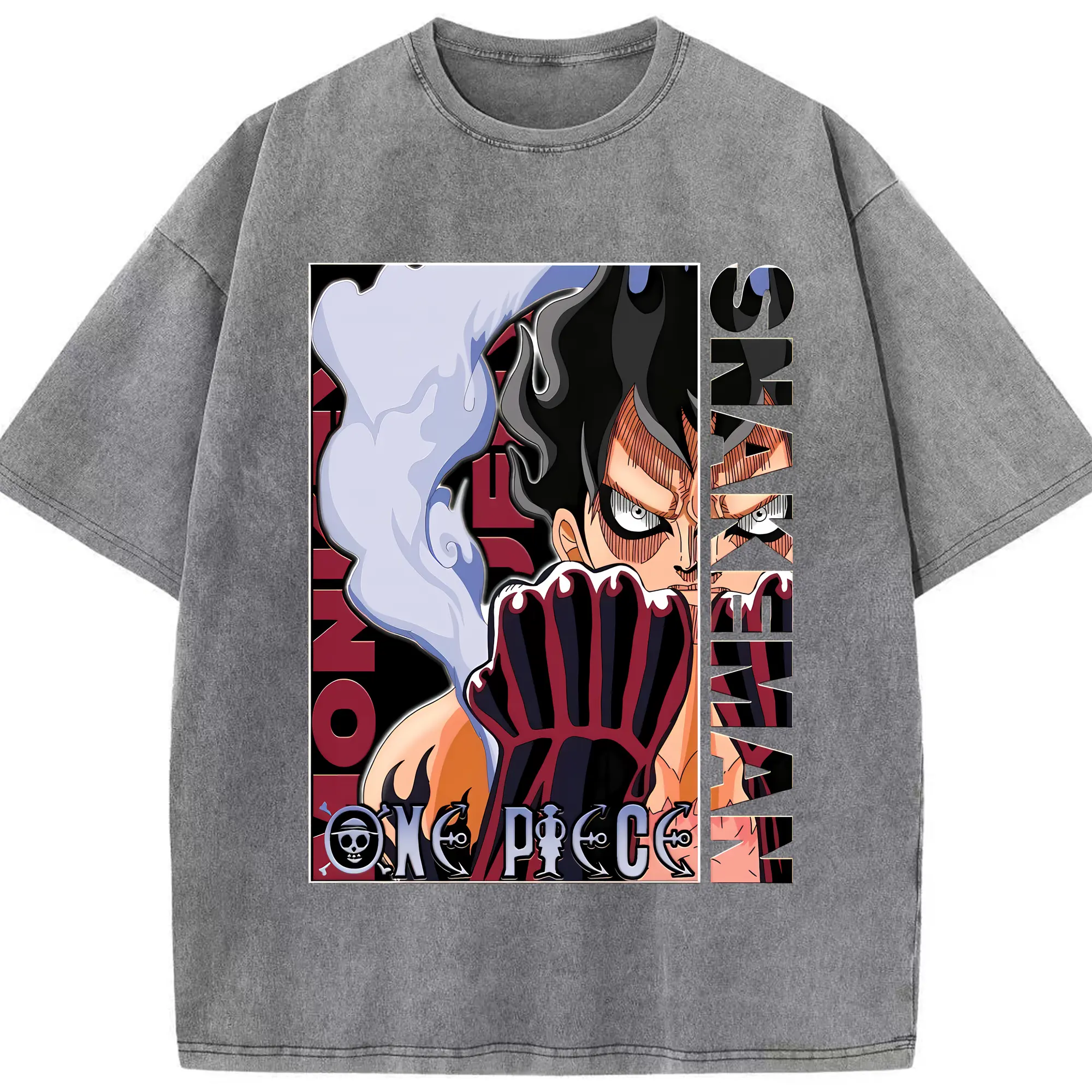 ワンピース グッズ モンキー・D・ルフィ - 綿100% ヴィンテージ風 半袖Tシャツ ・ 背面プリント ・ 柔らか肌触り ・ 通気性 快適 ・ スポーツ カジュアル 外出用