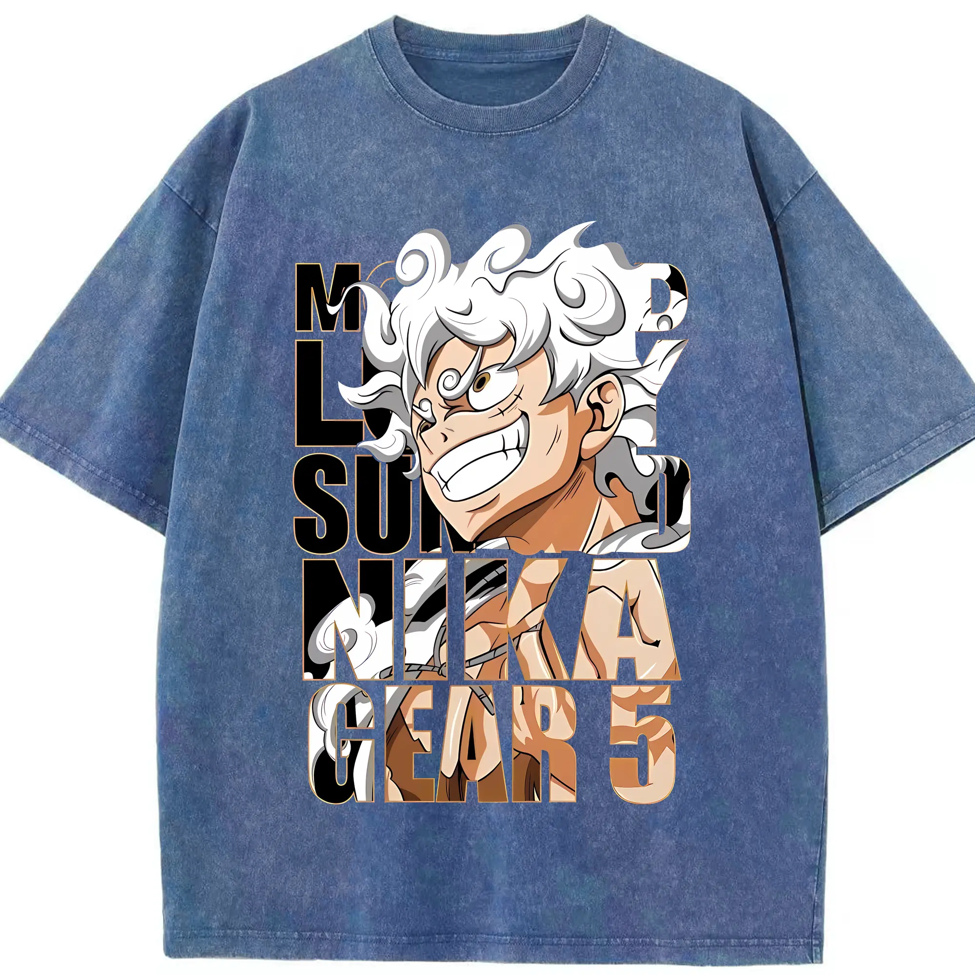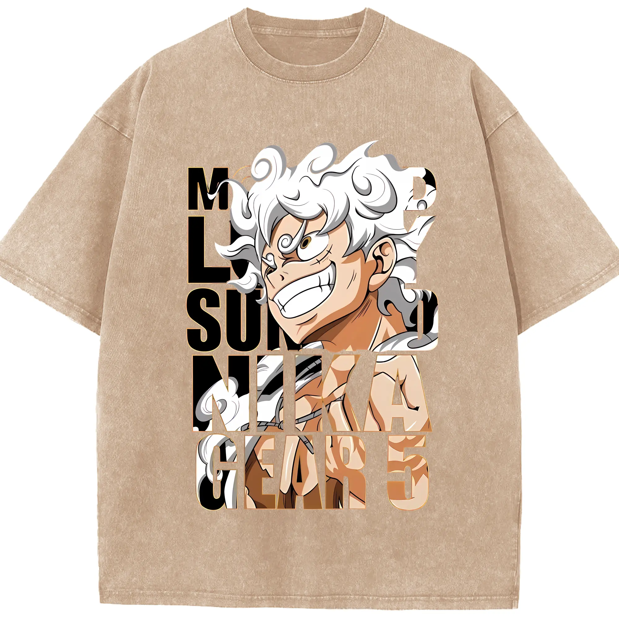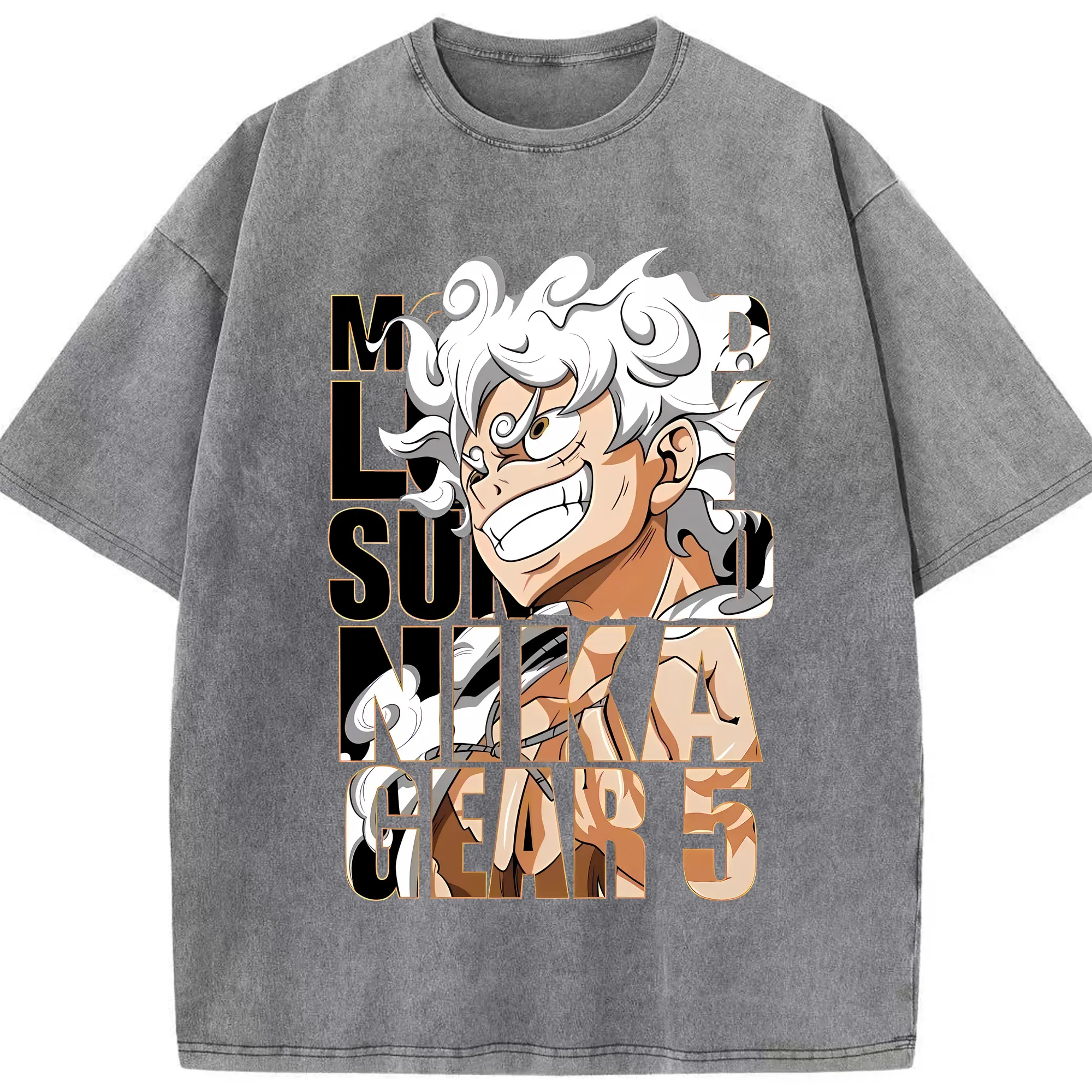 ワンピース グッズ モンキー・D・ルフィ - 綿100% ヴィンテージ風 半袖Tシャツ ・ 背面プリント ・ 柔らか肌触り ・ 通気性 快適 ・ スポーツ カジュアル 外出用