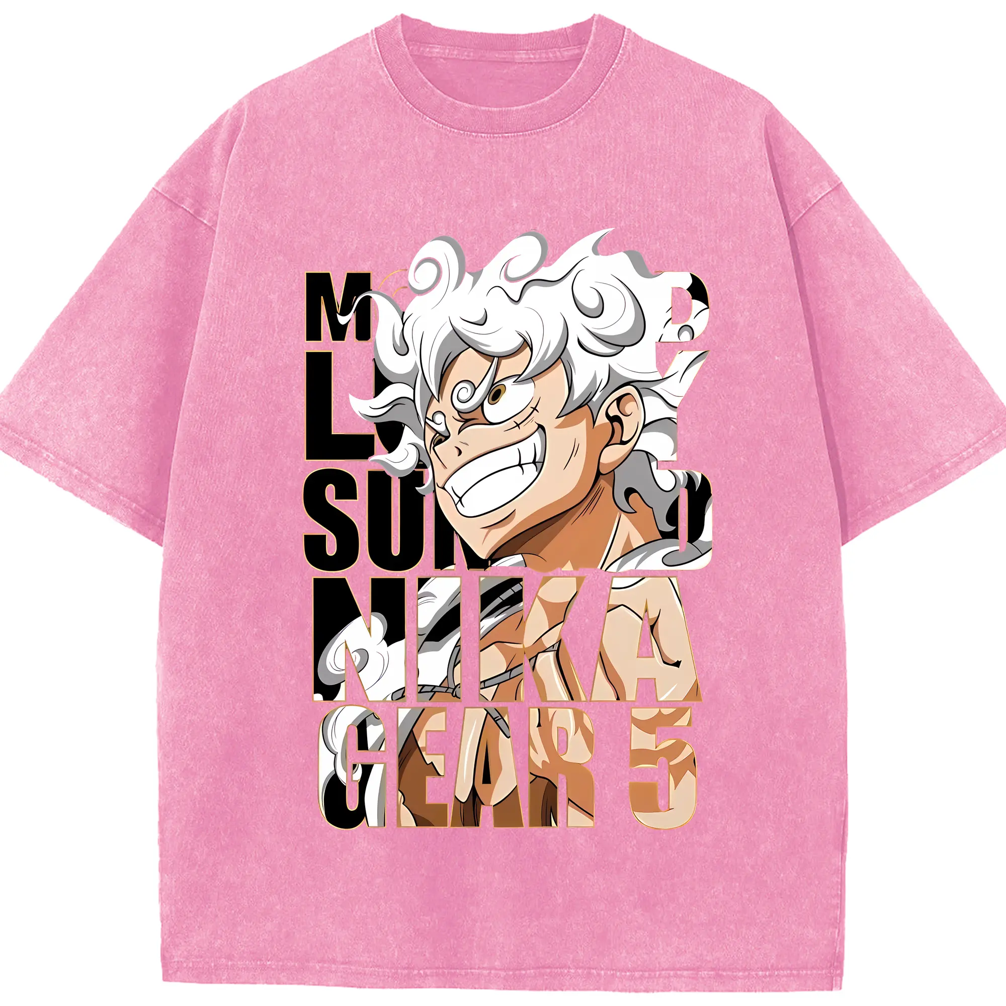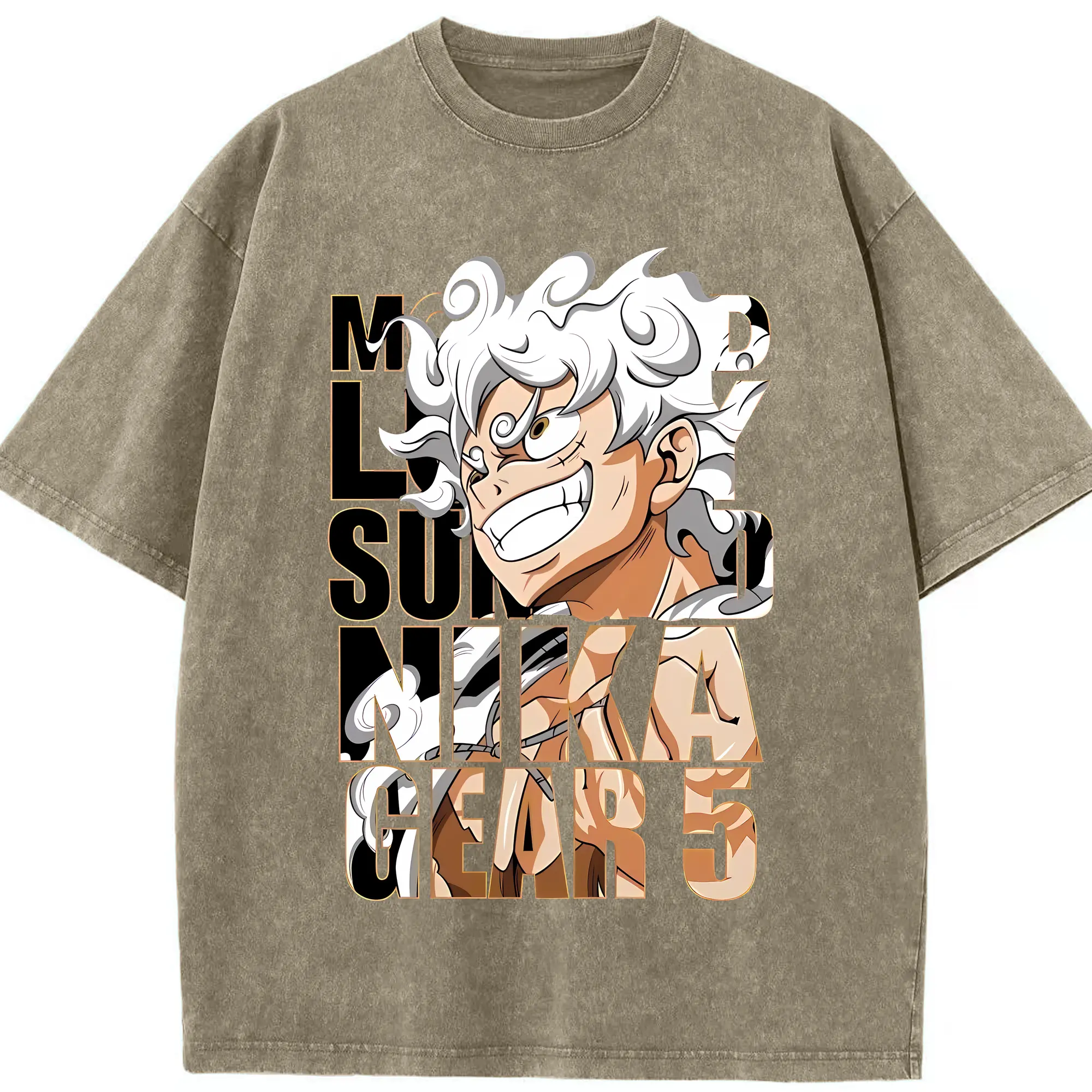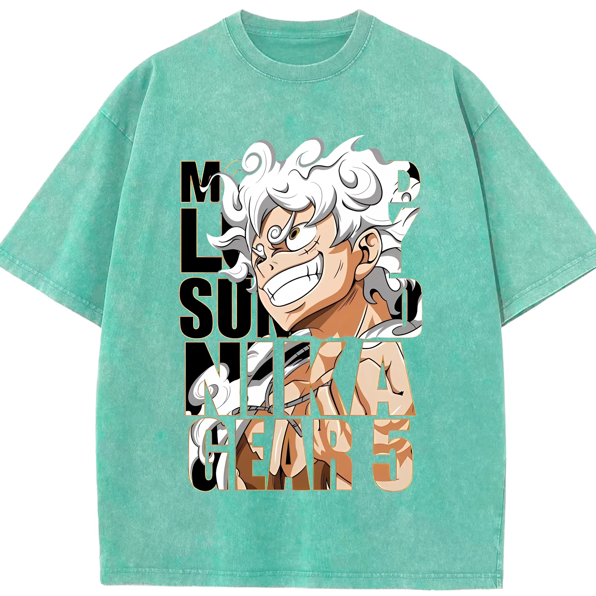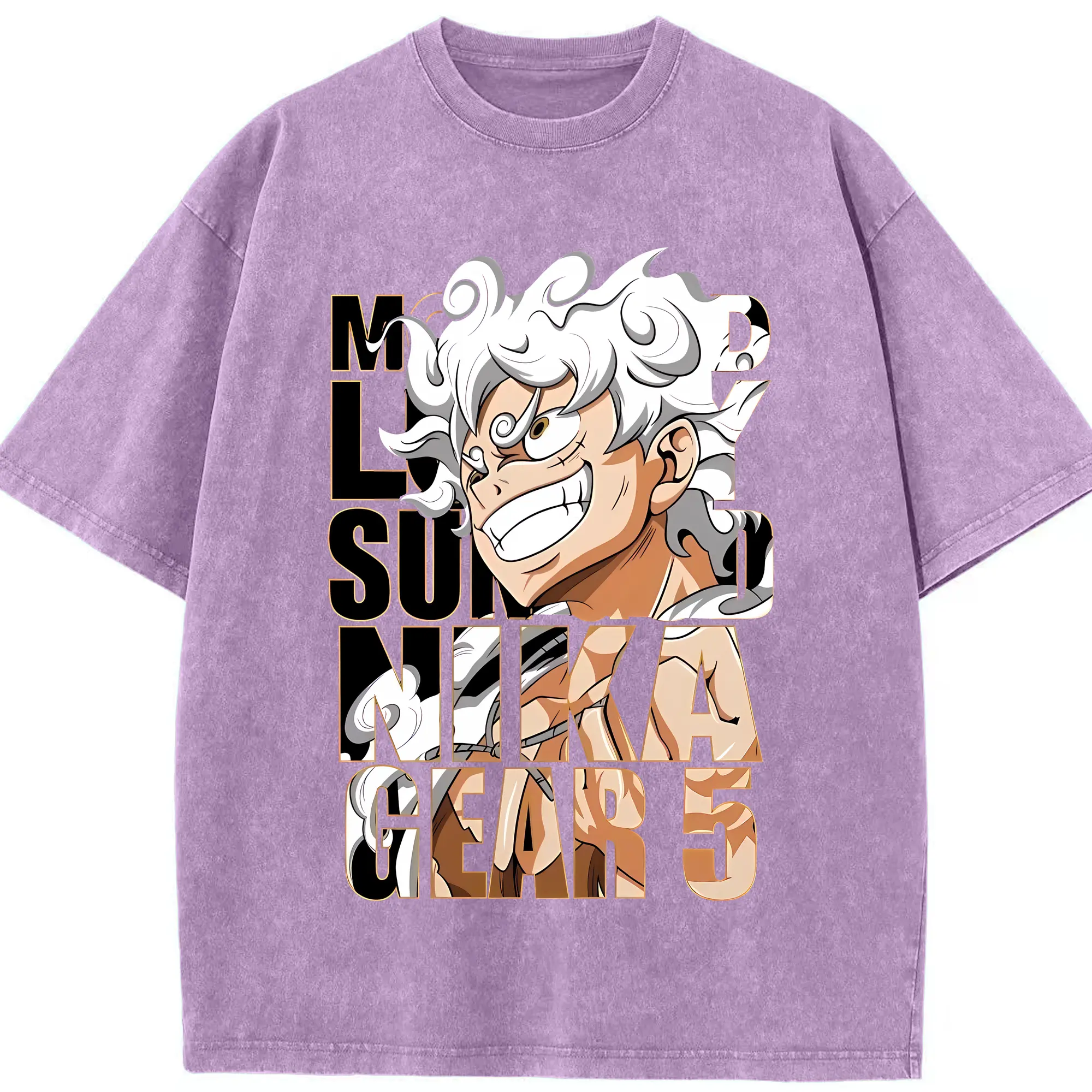 ワンピース グッズ モンキー・D・ルフィ - 綿100% ヴィンテージ風 半袖Tシャツ ・ 背面プリント ・ 柔らか肌触り ・ 通気性 快適 ・ スポーツ カジュアル 外出用