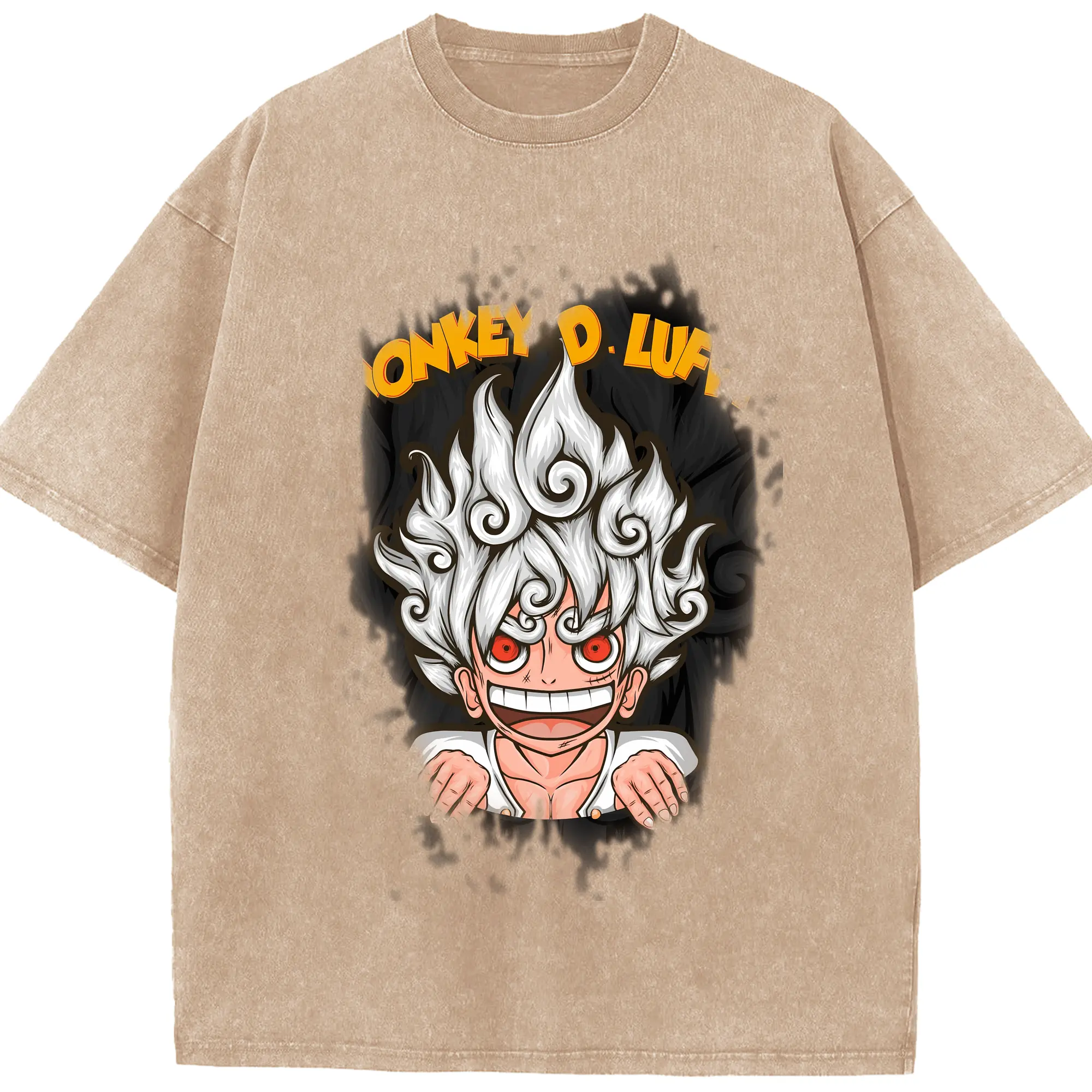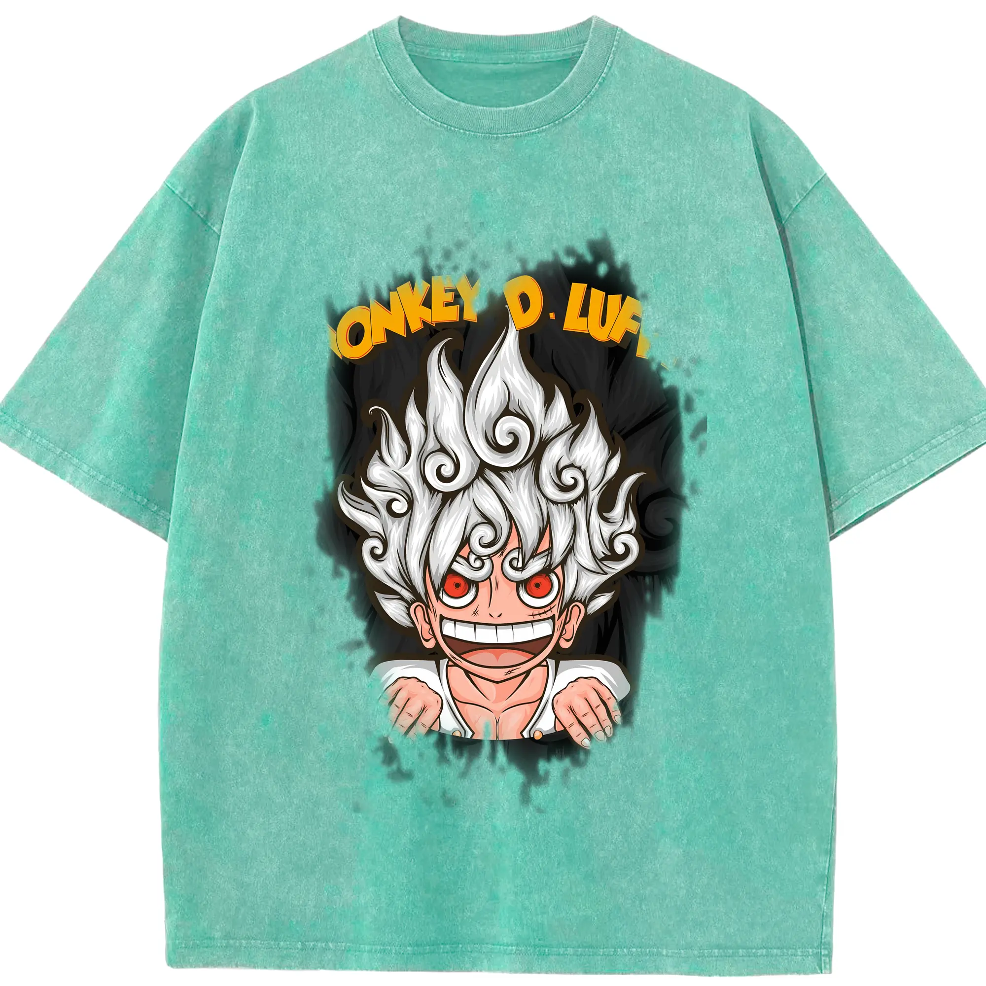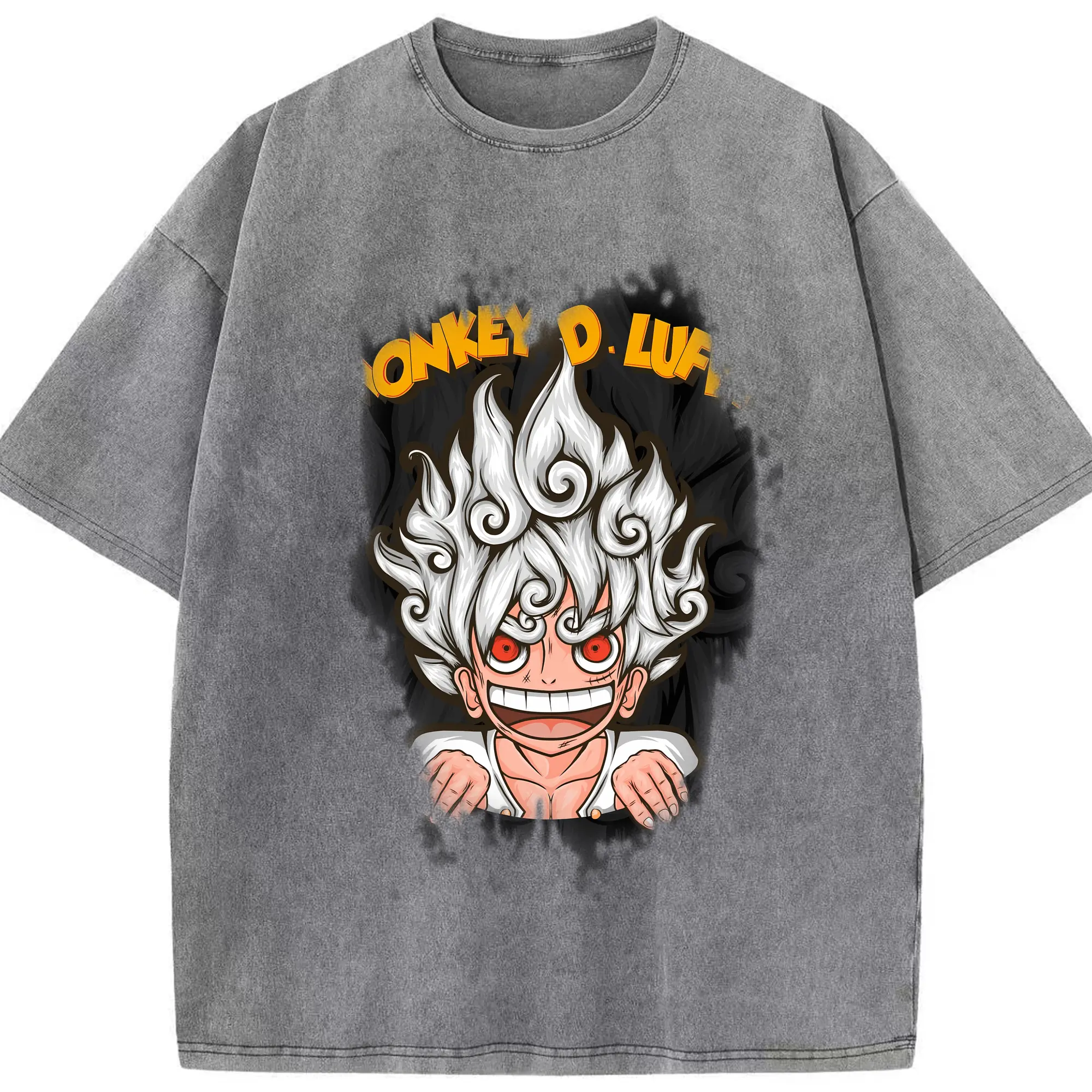 ワンピース グッズ モンキー・D・ルフィ - 綿100% ヴィンテージ風 半袖Tシャツ ・ 背面プリント ・ 柔らか肌触り ・ 通気性 快適 ・ スポーツ カジュアル 外出用