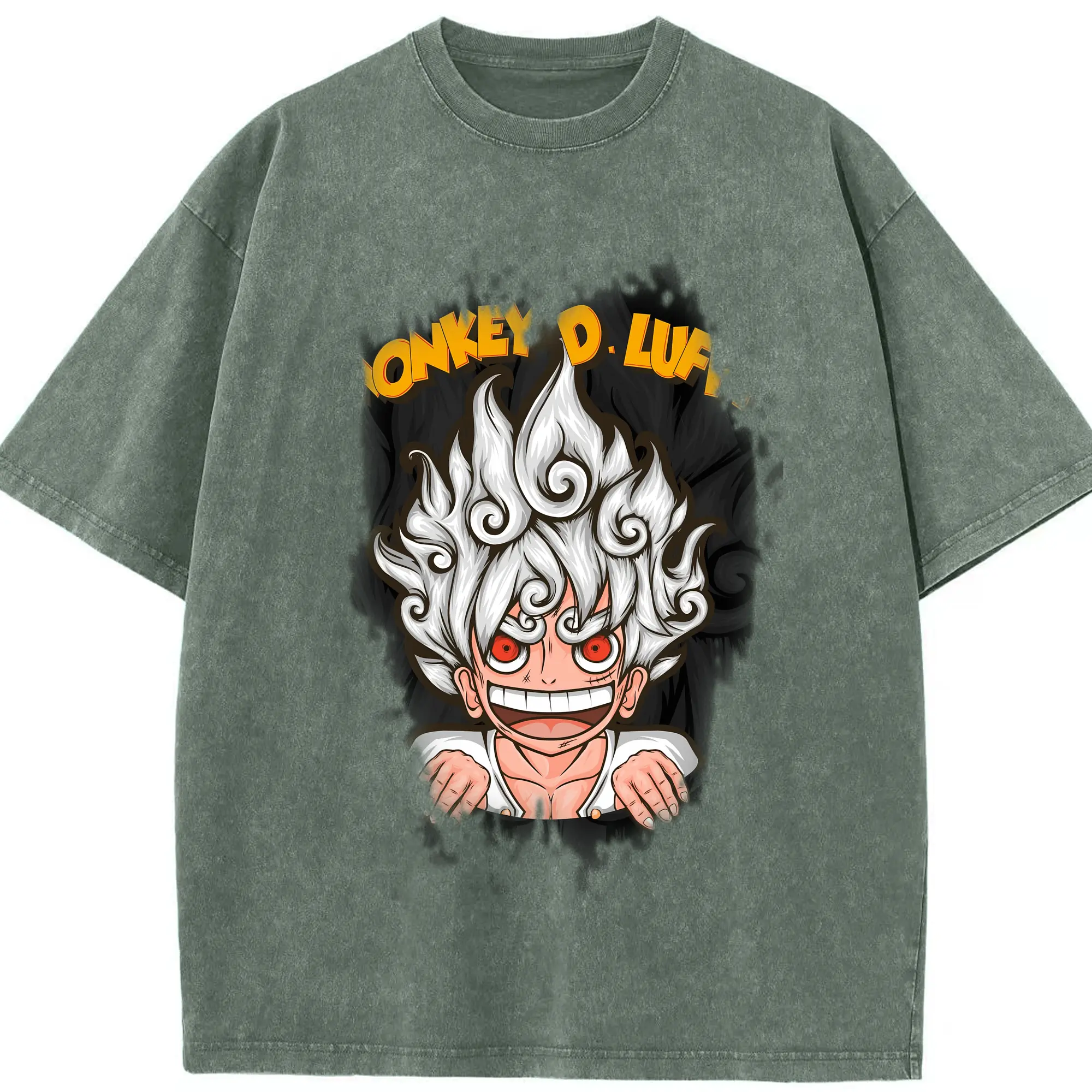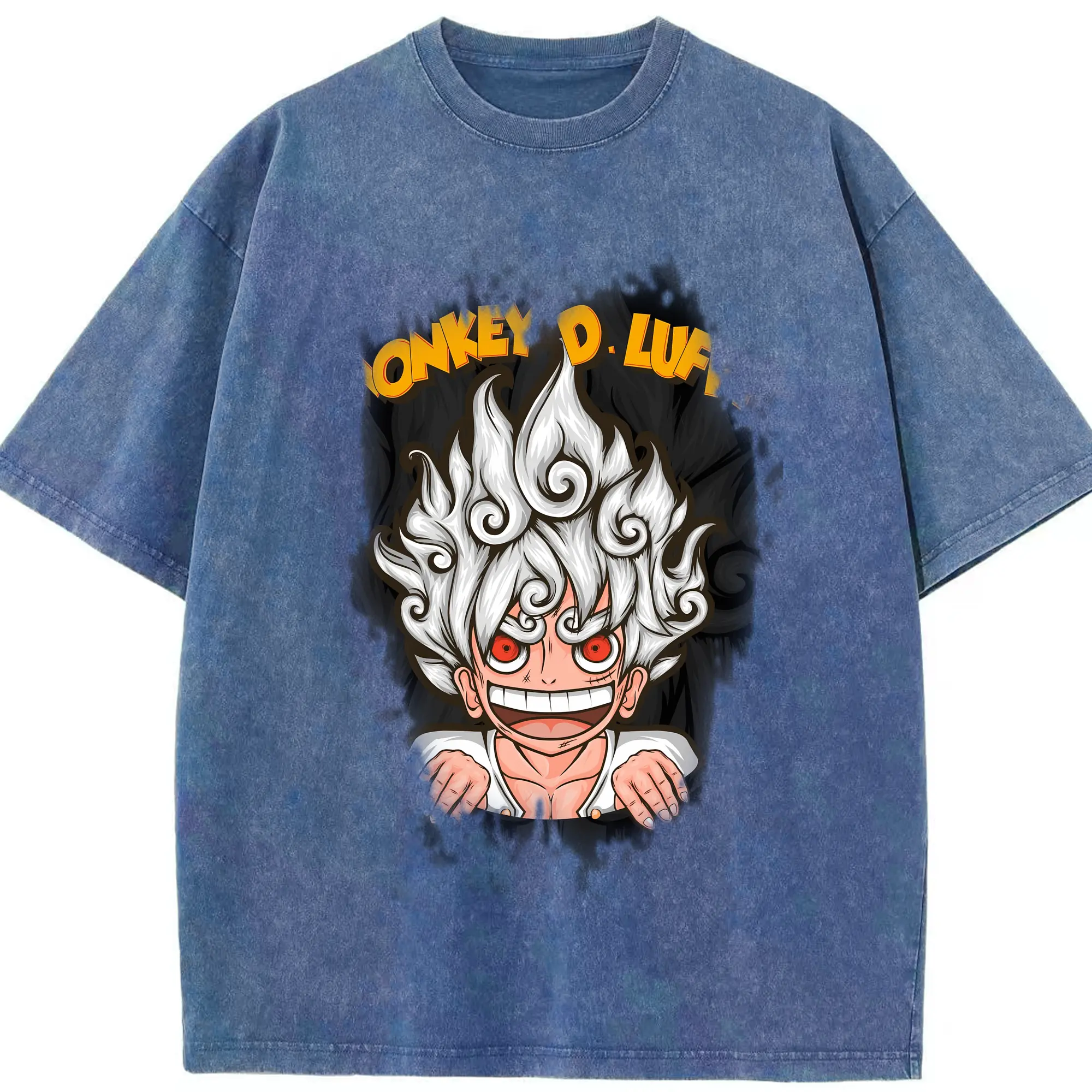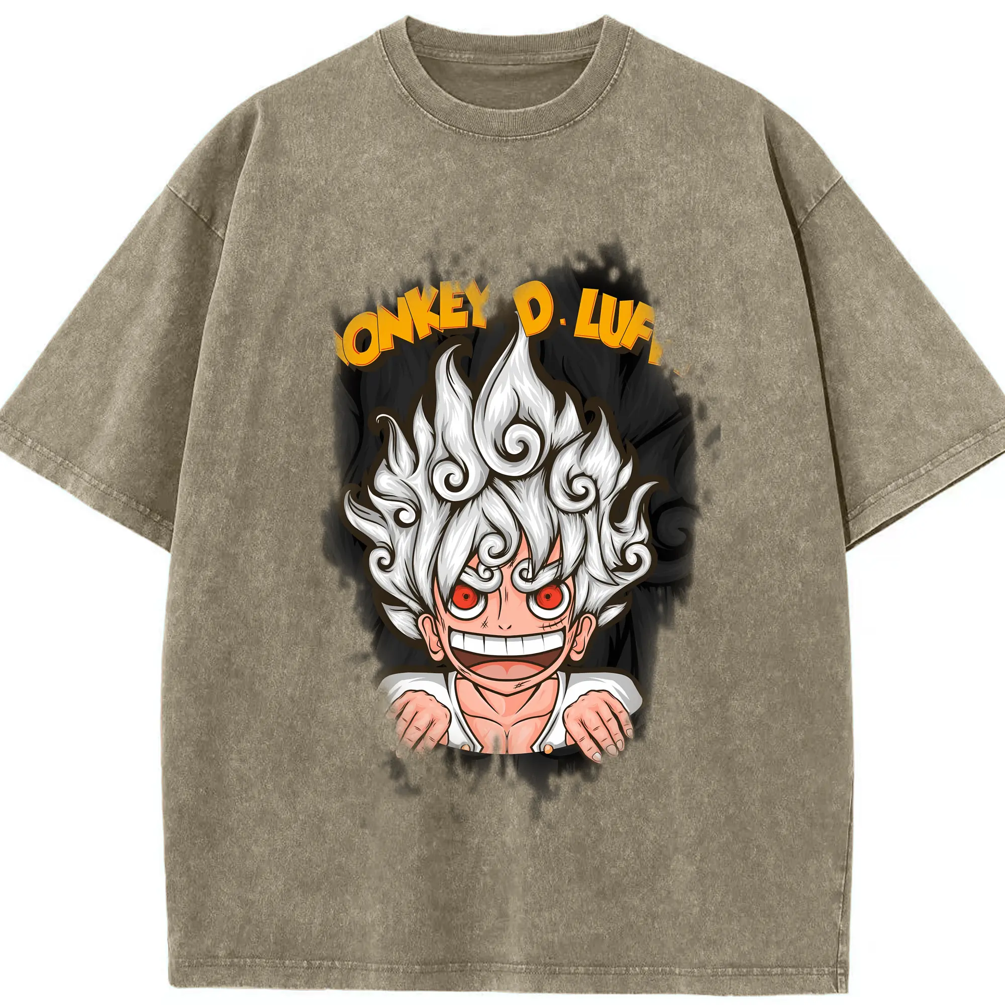 ワンピース グッズ モンキー・D・ルフィ - 綿100% ヴィンテージ風 半袖Tシャツ ・ 背面プリント ・ 柔らか肌触り ・ 通気性 快適 ・ スポーツ カジュアル 外出用