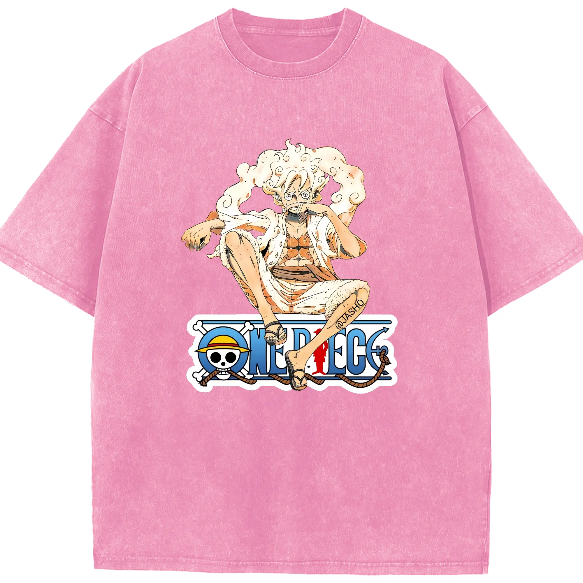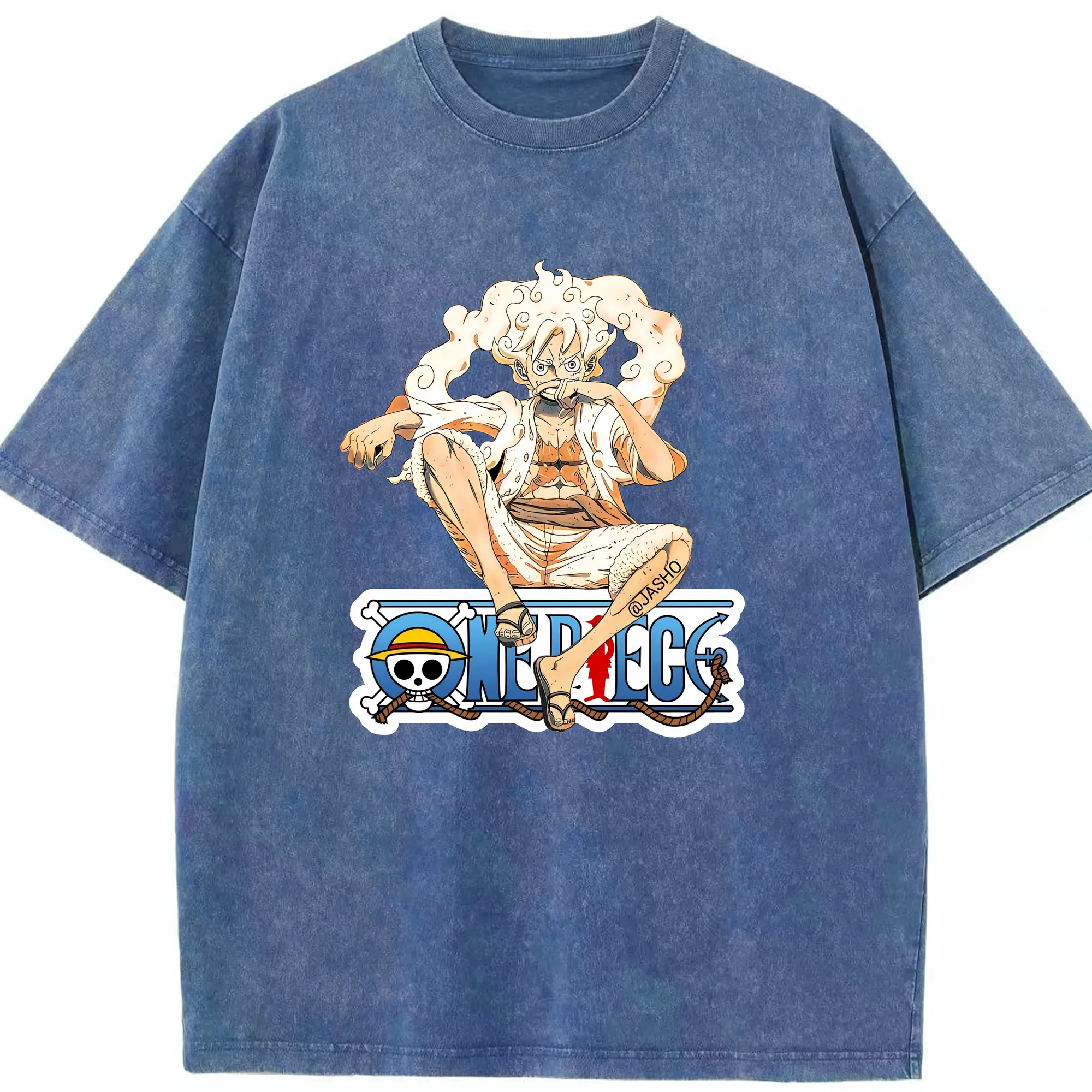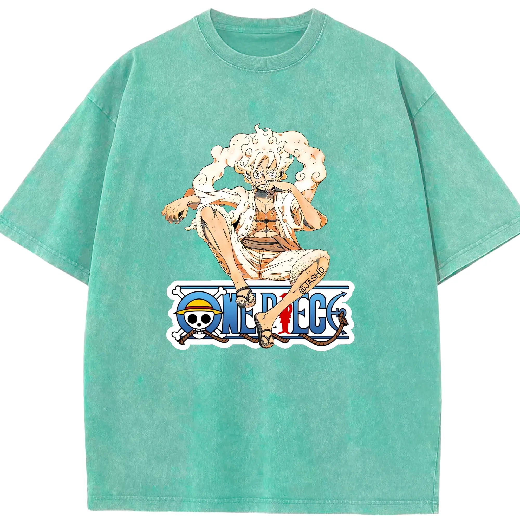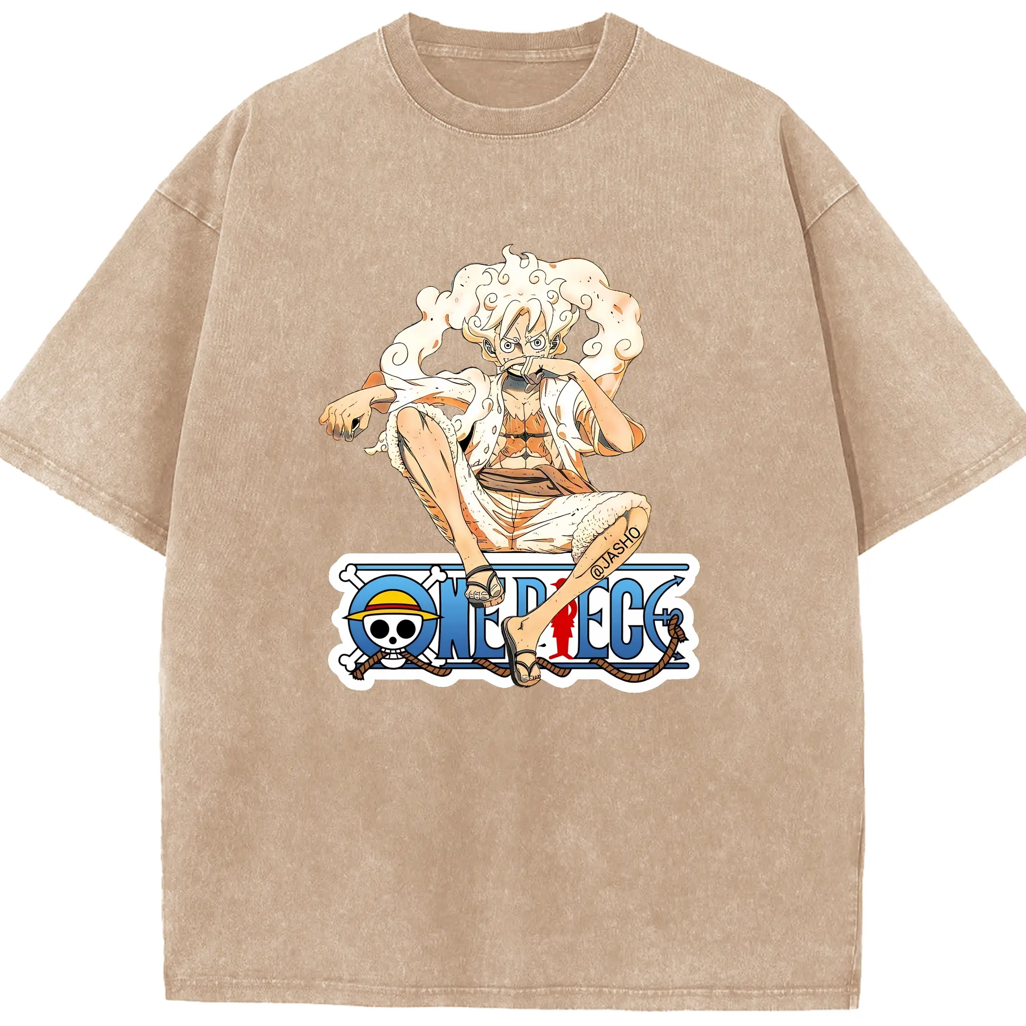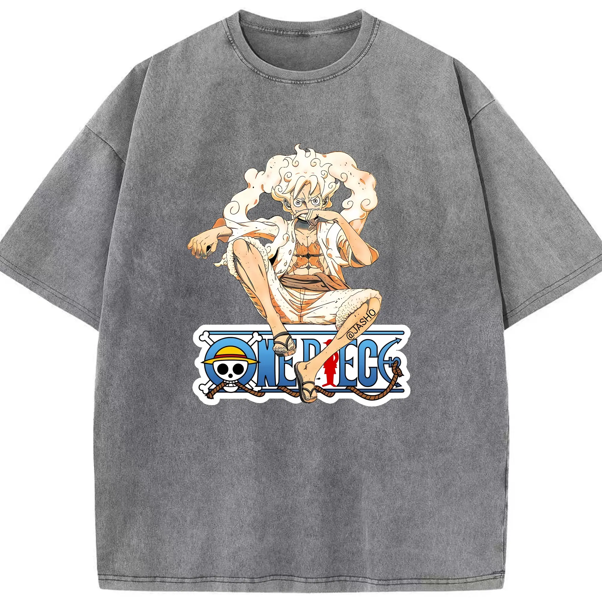 ワンピース グッズ モンキー・D・ルフィ - 綿100% ヴィンテージ風 半袖Tシャツ ・ 背面プリント ・ 柔らか肌触り ・ 通気性 快適 ・ スポーツ カジュアル 外出用