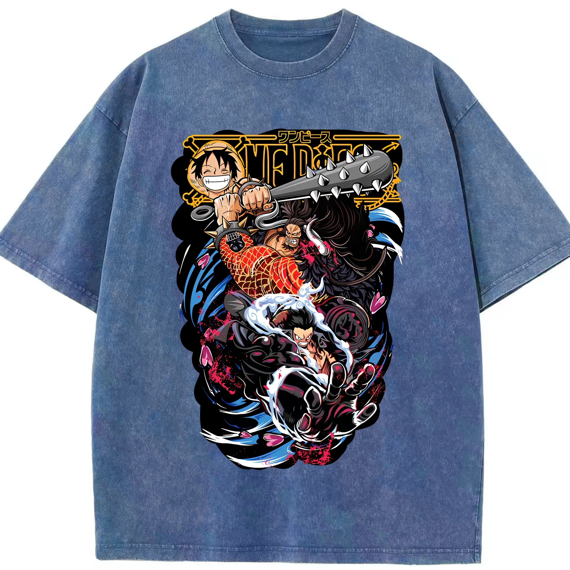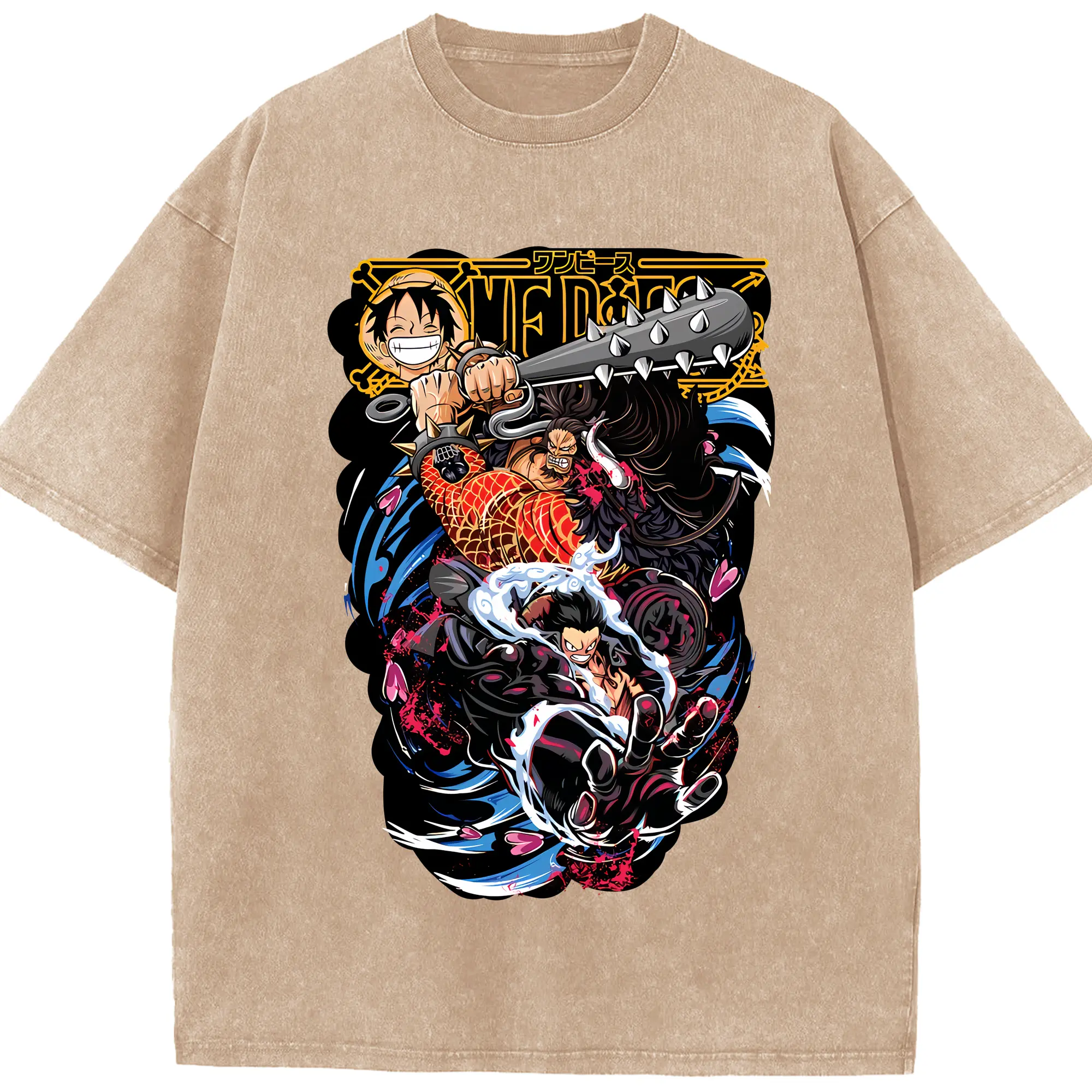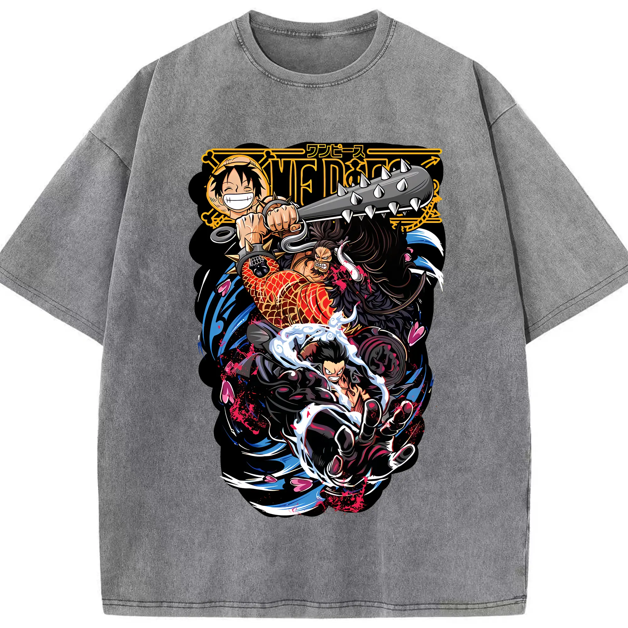 ワンピース グッズ モンキー・D・ルフィ - 綿100% ヴィンテージ風 半袖Tシャツ ・ 背面プリント ・ 柔らか肌触り ・ 通気性 快適 ・ スポーツ カジュアル 外出用