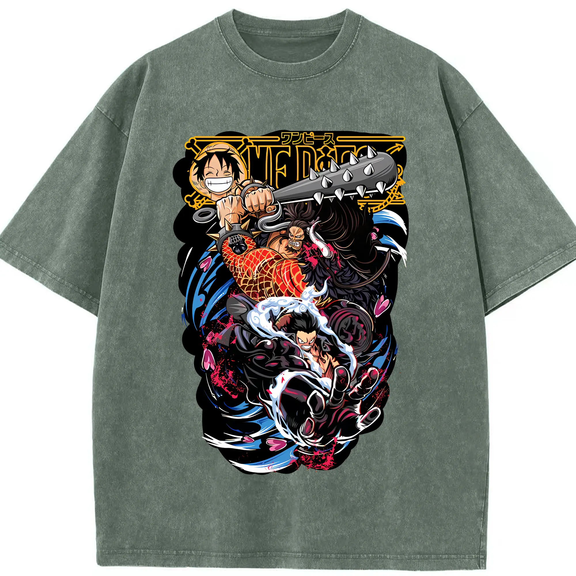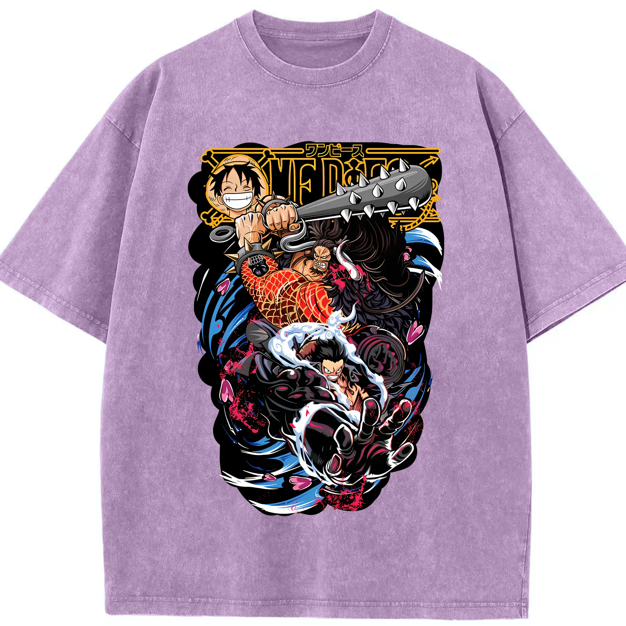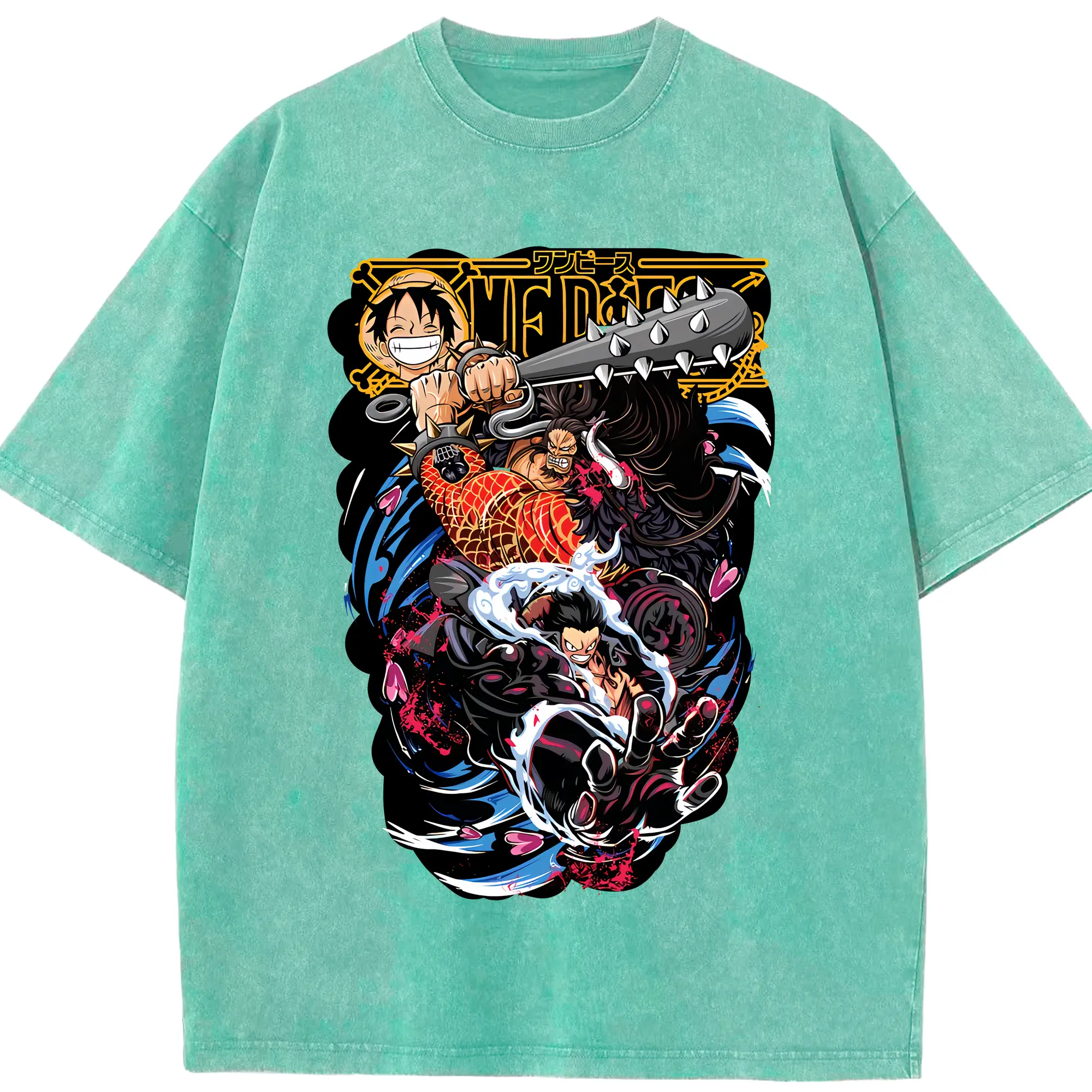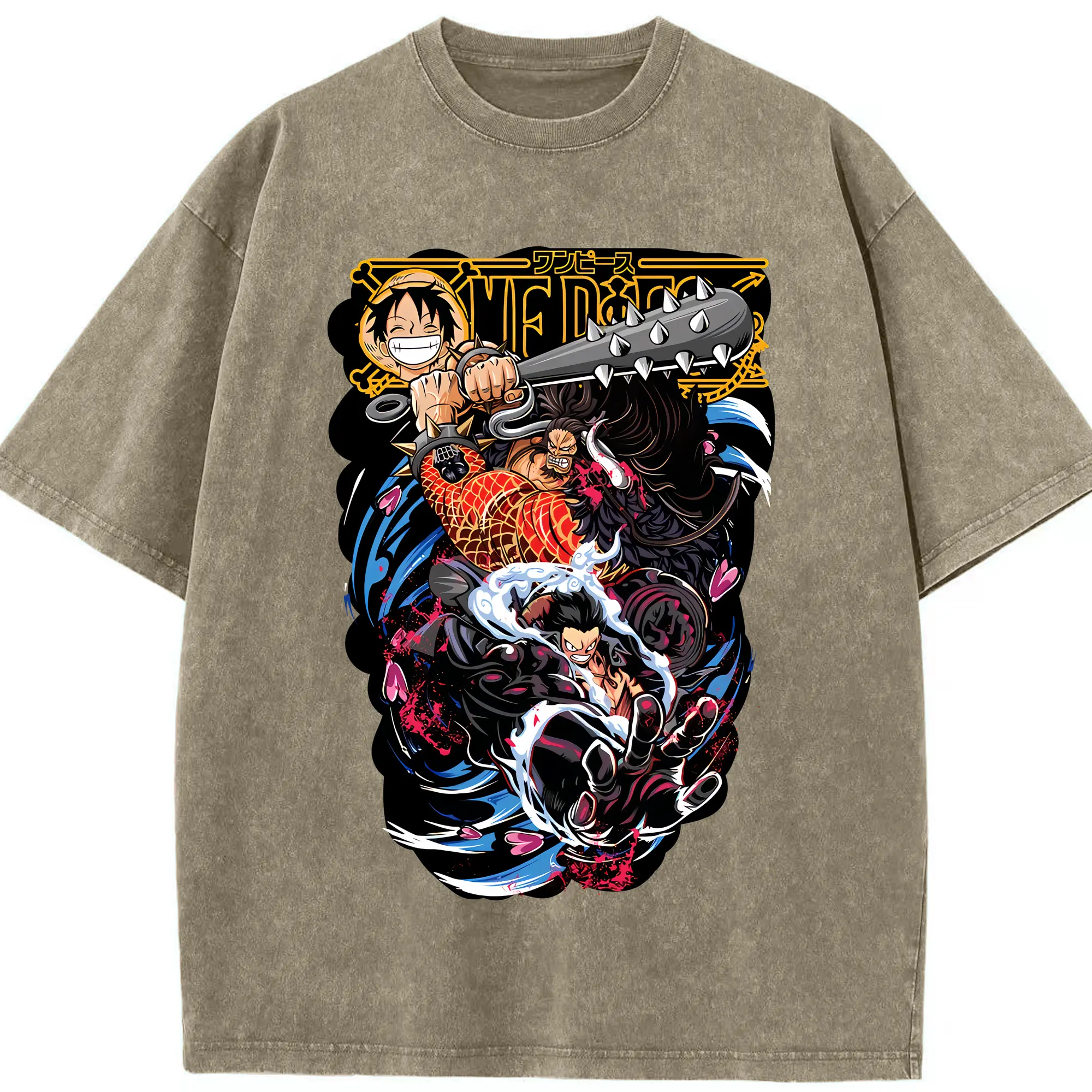 ワンピース グッズ モンキー・D・ルフィ - 綿100% ヴィンテージ風 半袖Tシャツ ・ 背面プリント ・ 柔らか肌触り ・ 通気性 快適 ・ スポーツ カジュアル 外出用