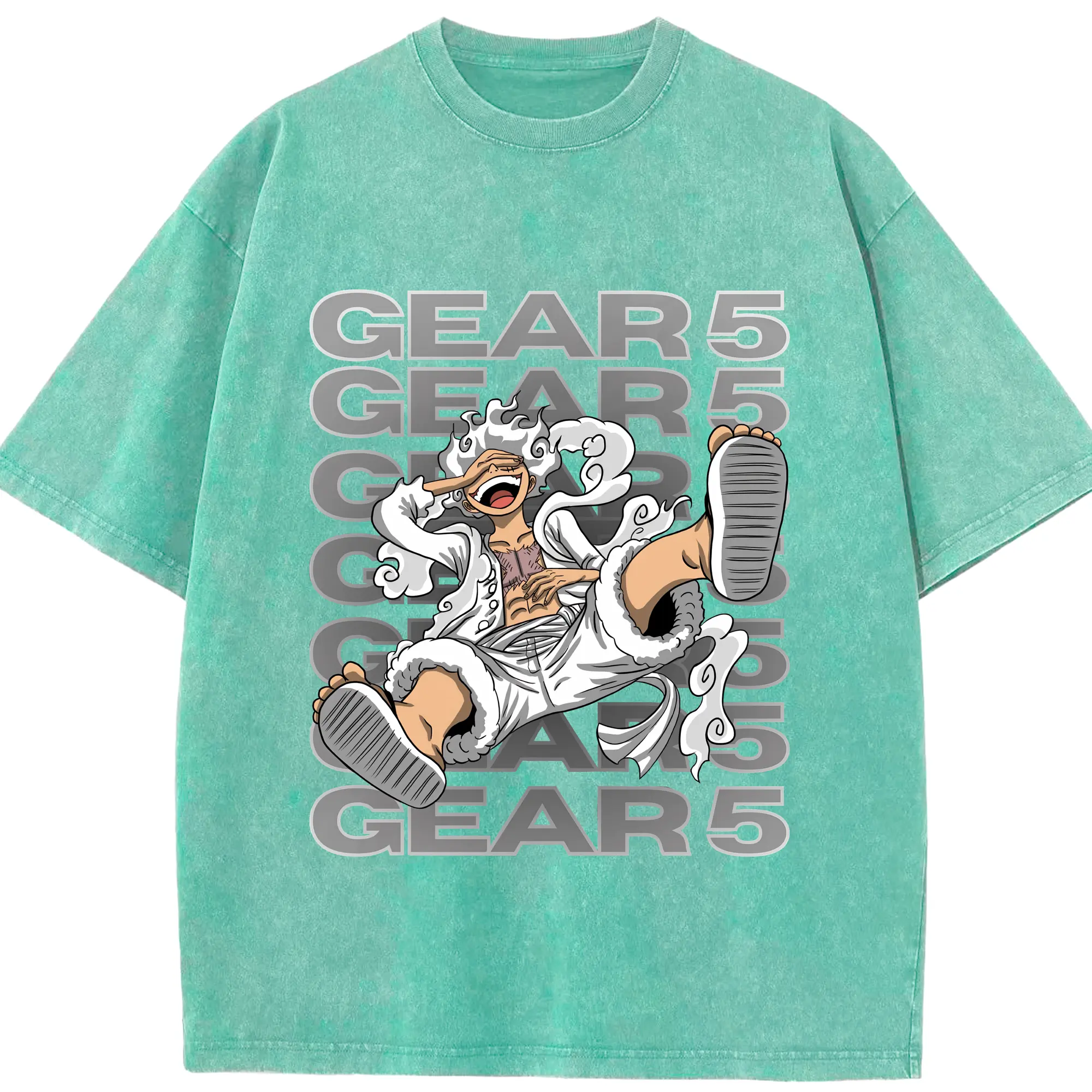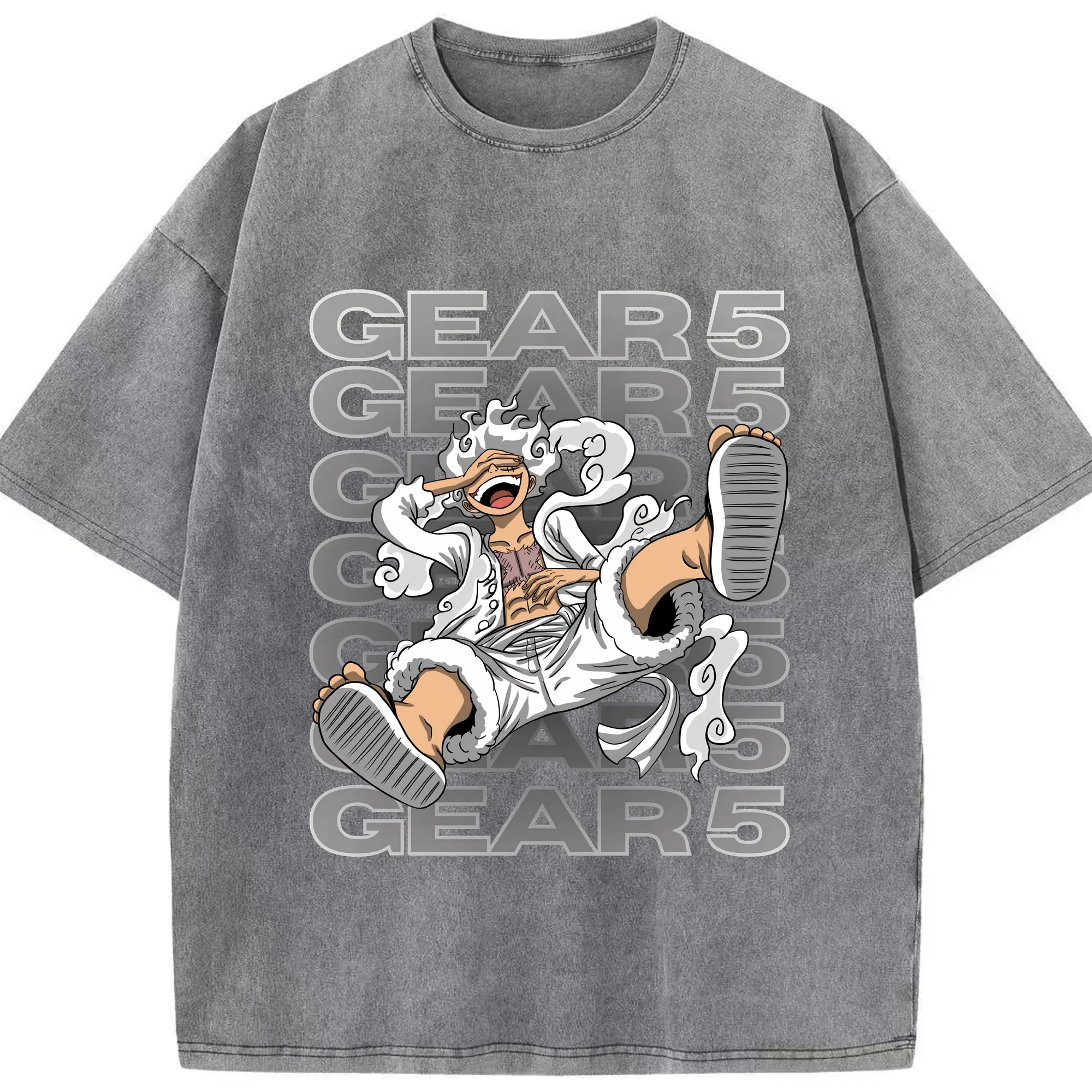 ワンピース グッズ モンキー・D・ルフィ - 綿100% ヴィンテージ風 半袖Tシャツ ・ 背面プリント ・ 柔らか肌触り ・ 通気性 快適 ・ スポーツ カジュアル 外出用