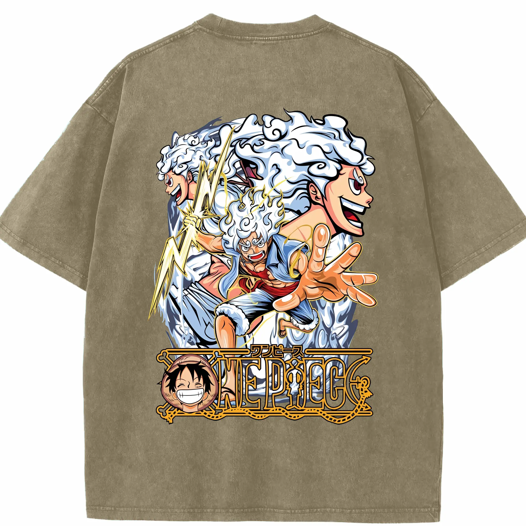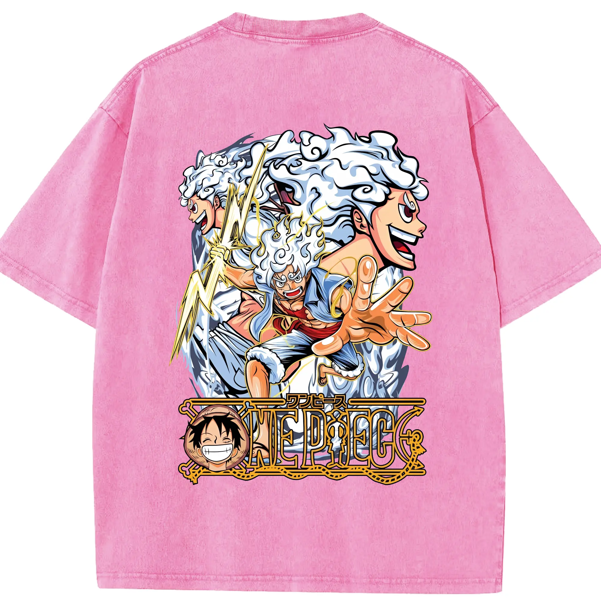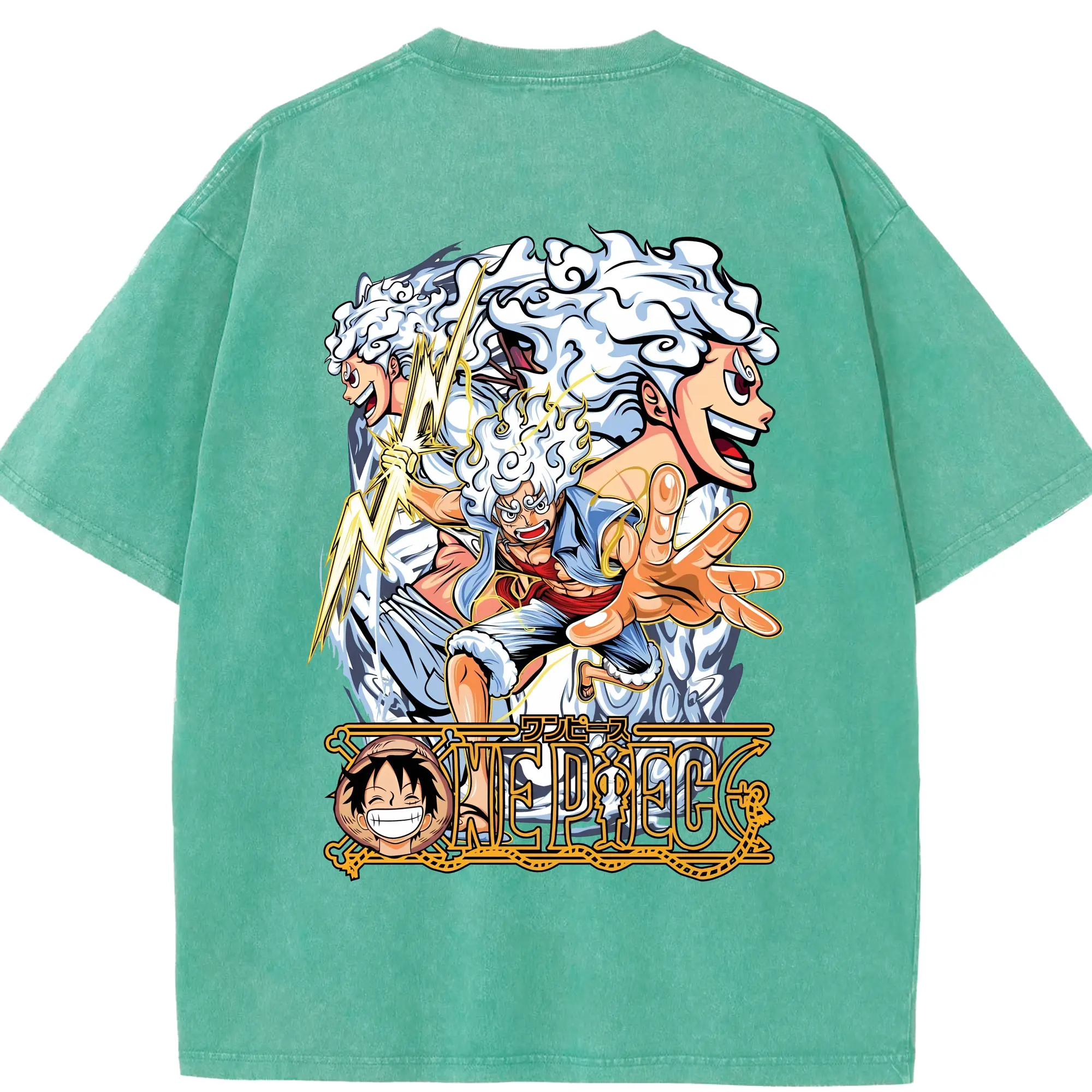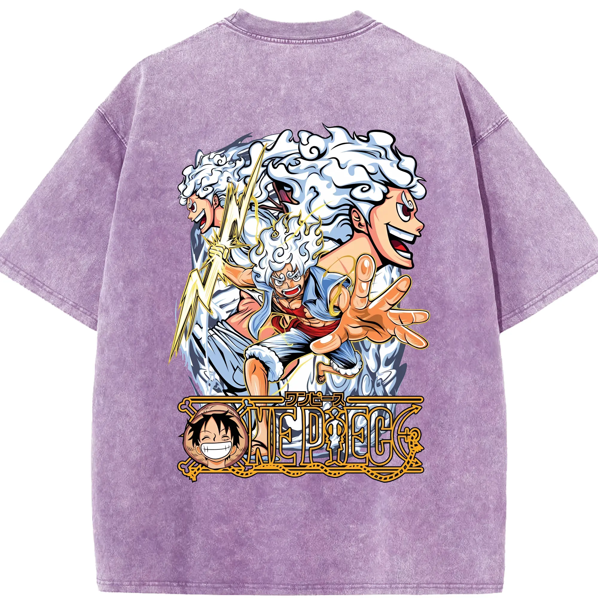 ワンピース グッズ モンキー・D・ルフィ - 綿100% ヴィンテージ風 半袖Tシャツ ・ フロントプリント ・ 柔らか肌触り ・ 通気性 快適 ・ スポーツ カジュアル 外出用