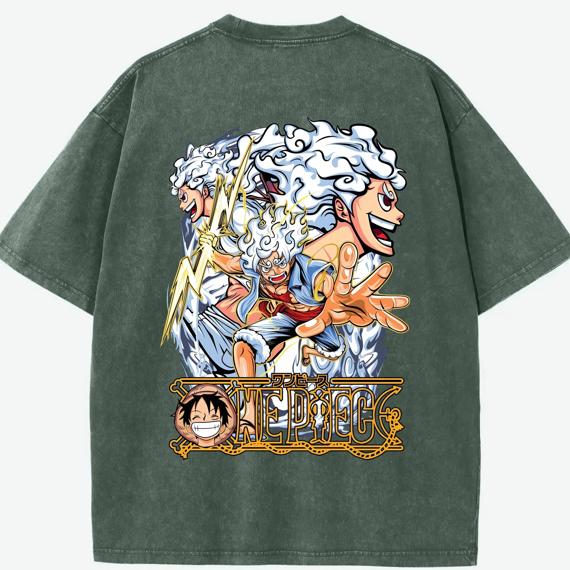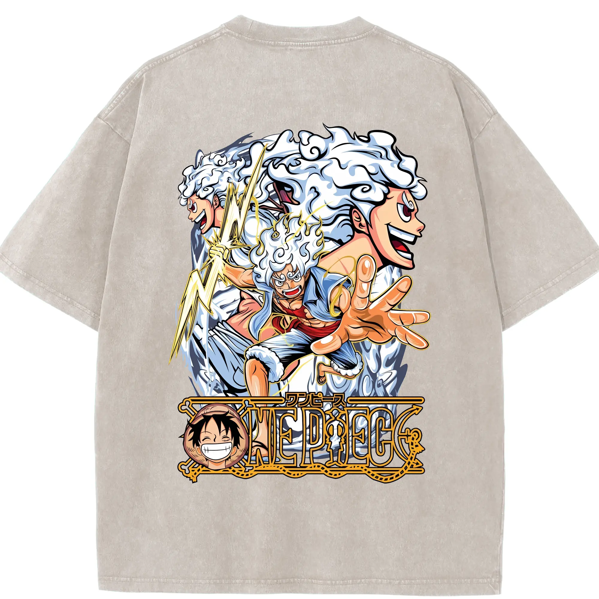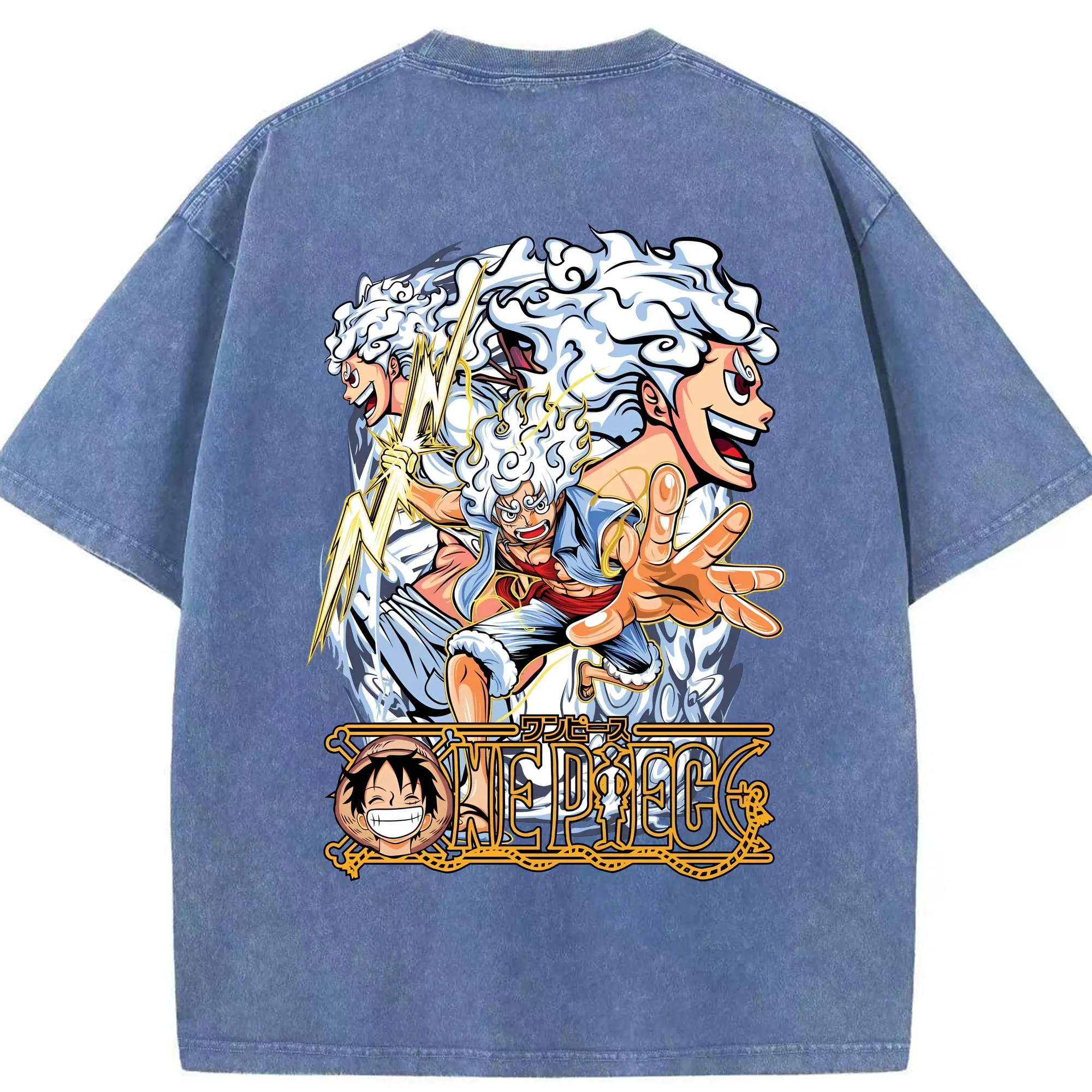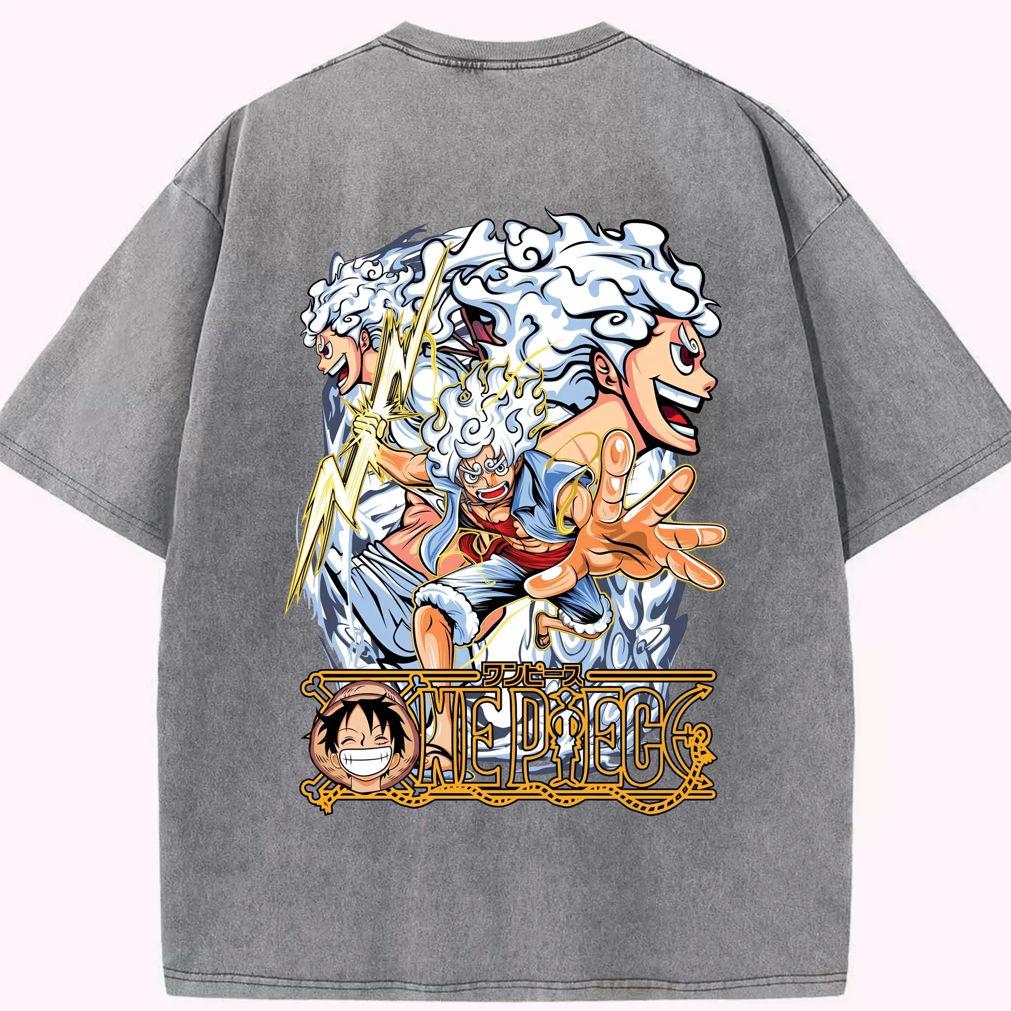 ワンピース グッズ モンキー・D・ルフィ - 綿100% ヴィンテージ風 半袖Tシャツ ・ フロントプリント ・ 柔らか肌触り ・ 通気性 快適 ・ スポーツ カジュアル 外出用