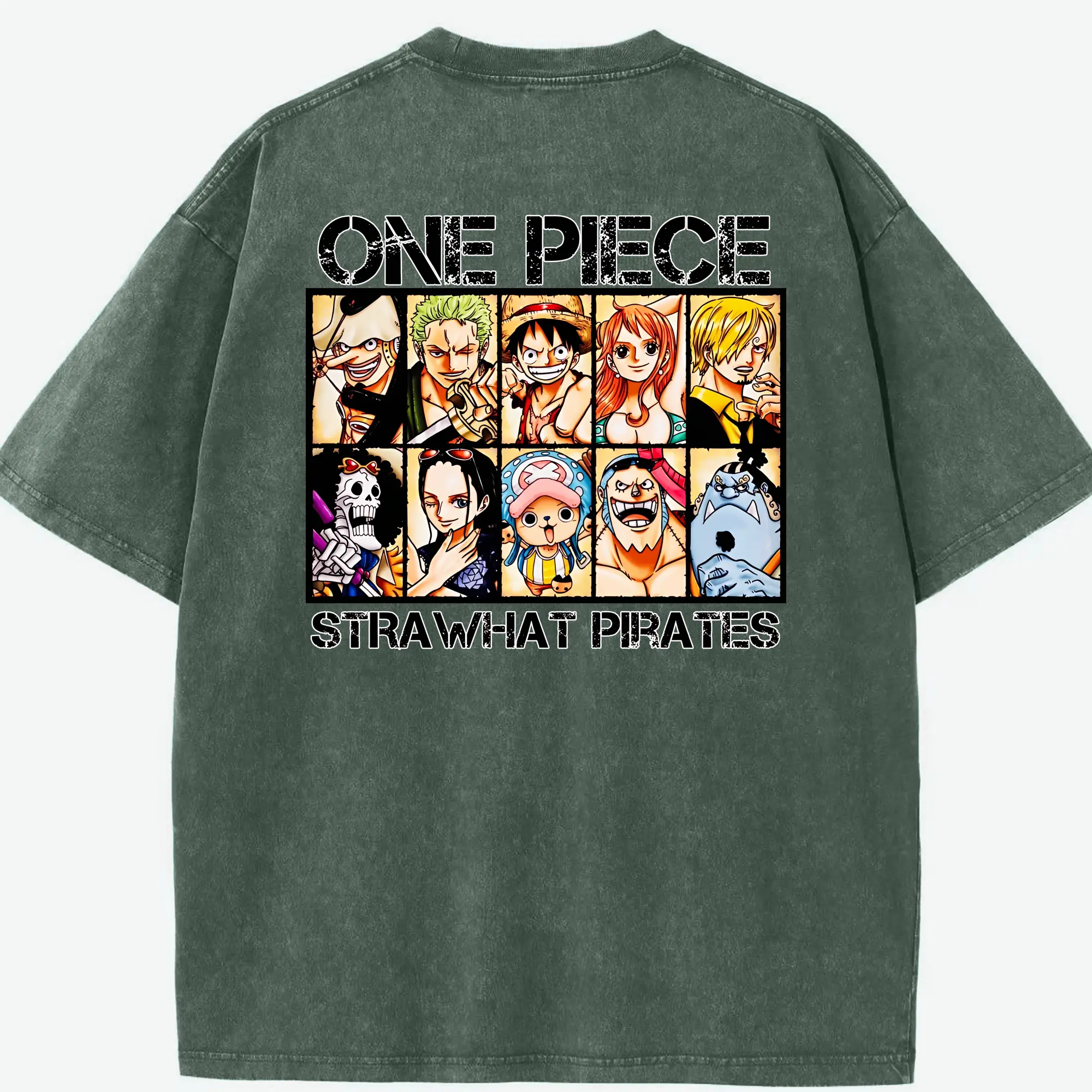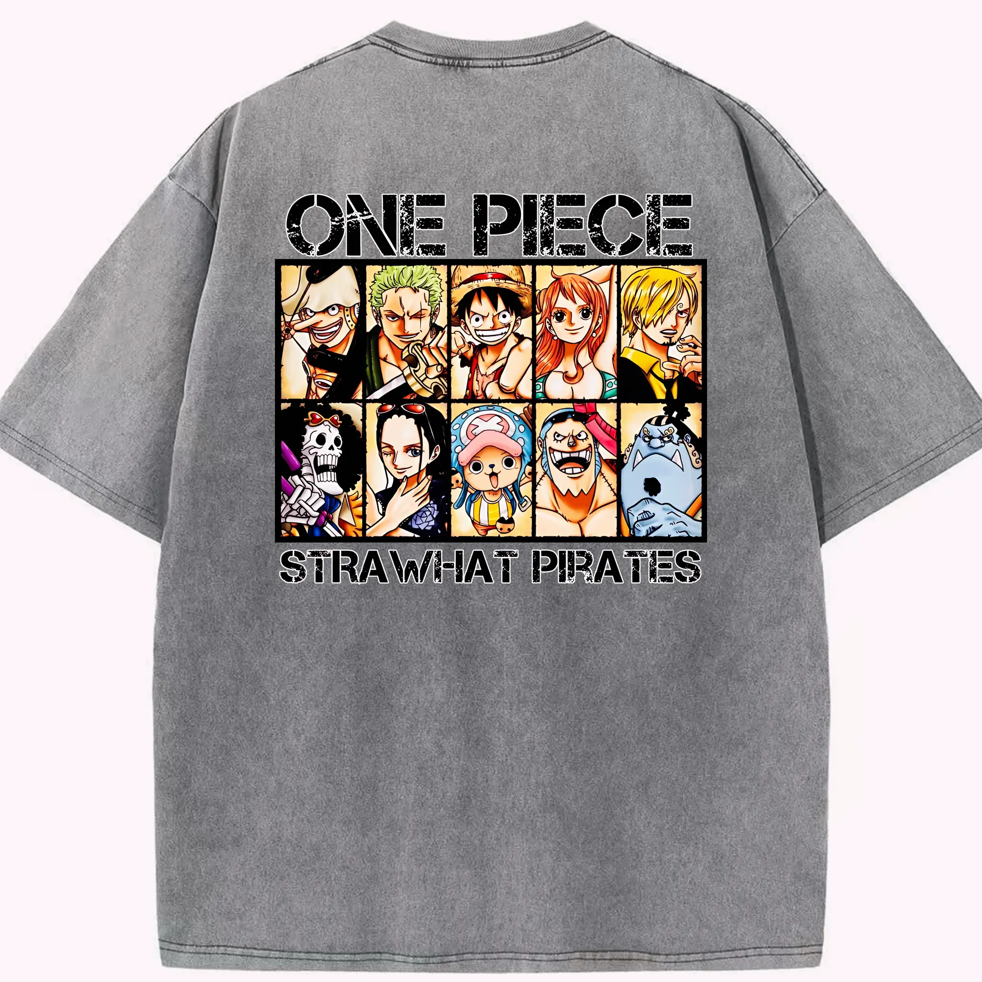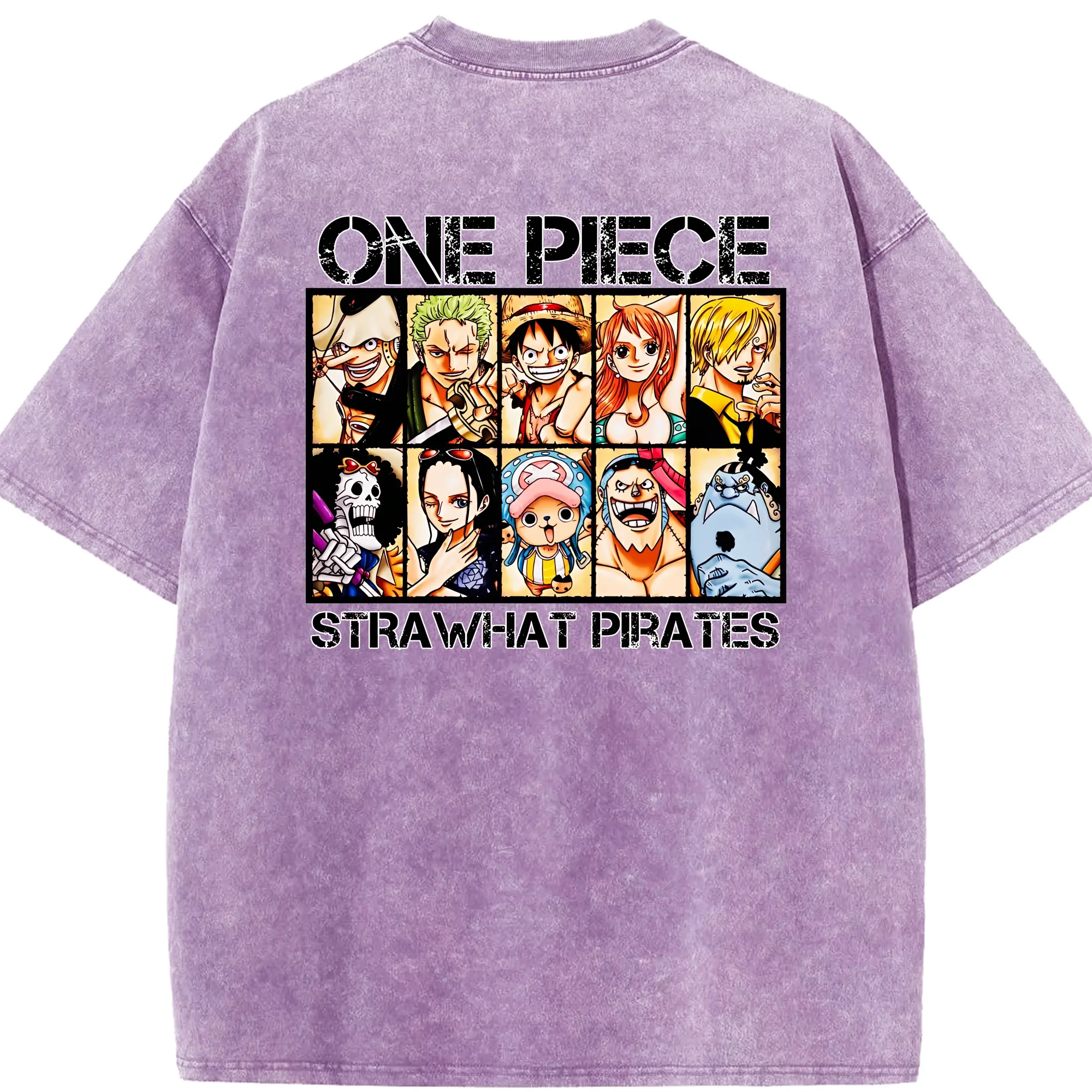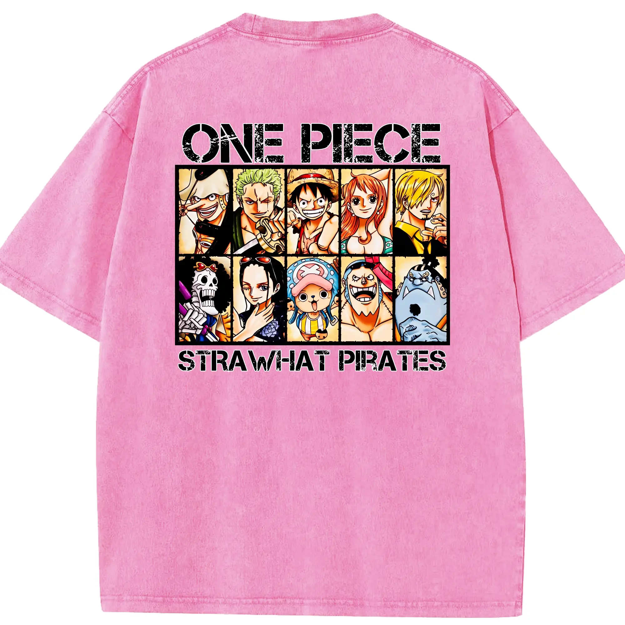 ワンピース グッズ モンキー・D・ルフィ - 綿100% ヴィンテージ風 半袖Tシャツ ・ フロントプリント ・ 柔らか肌触り ・ 通気性 快適 ・ スポーツ カジュアル 外出用