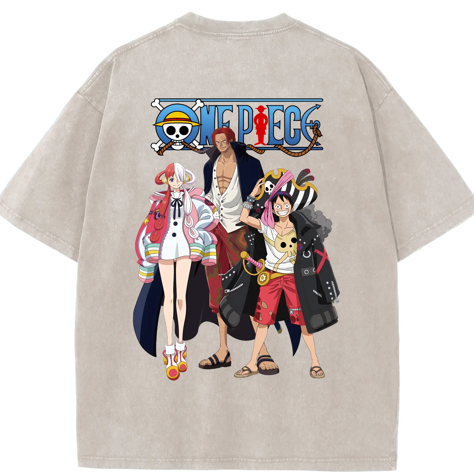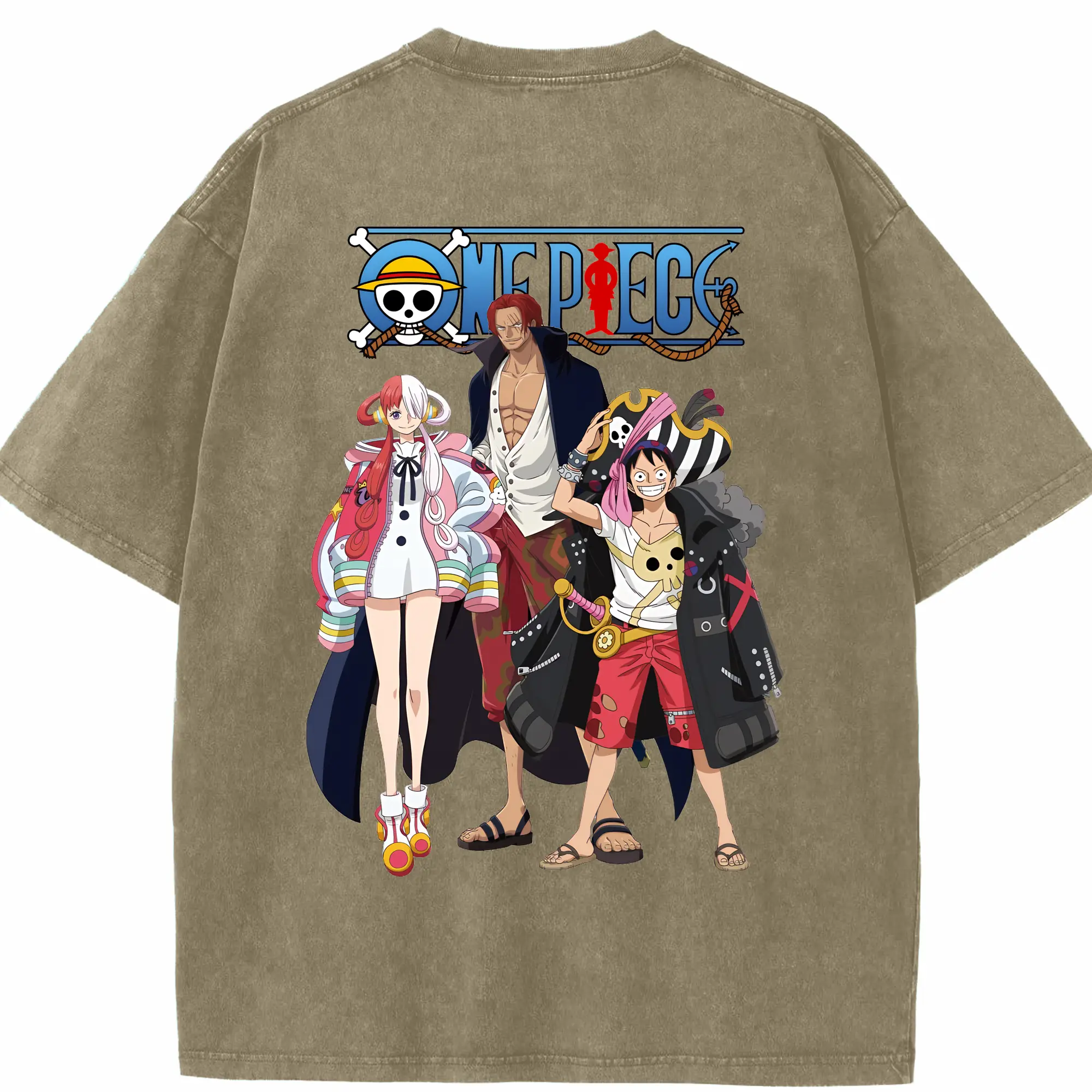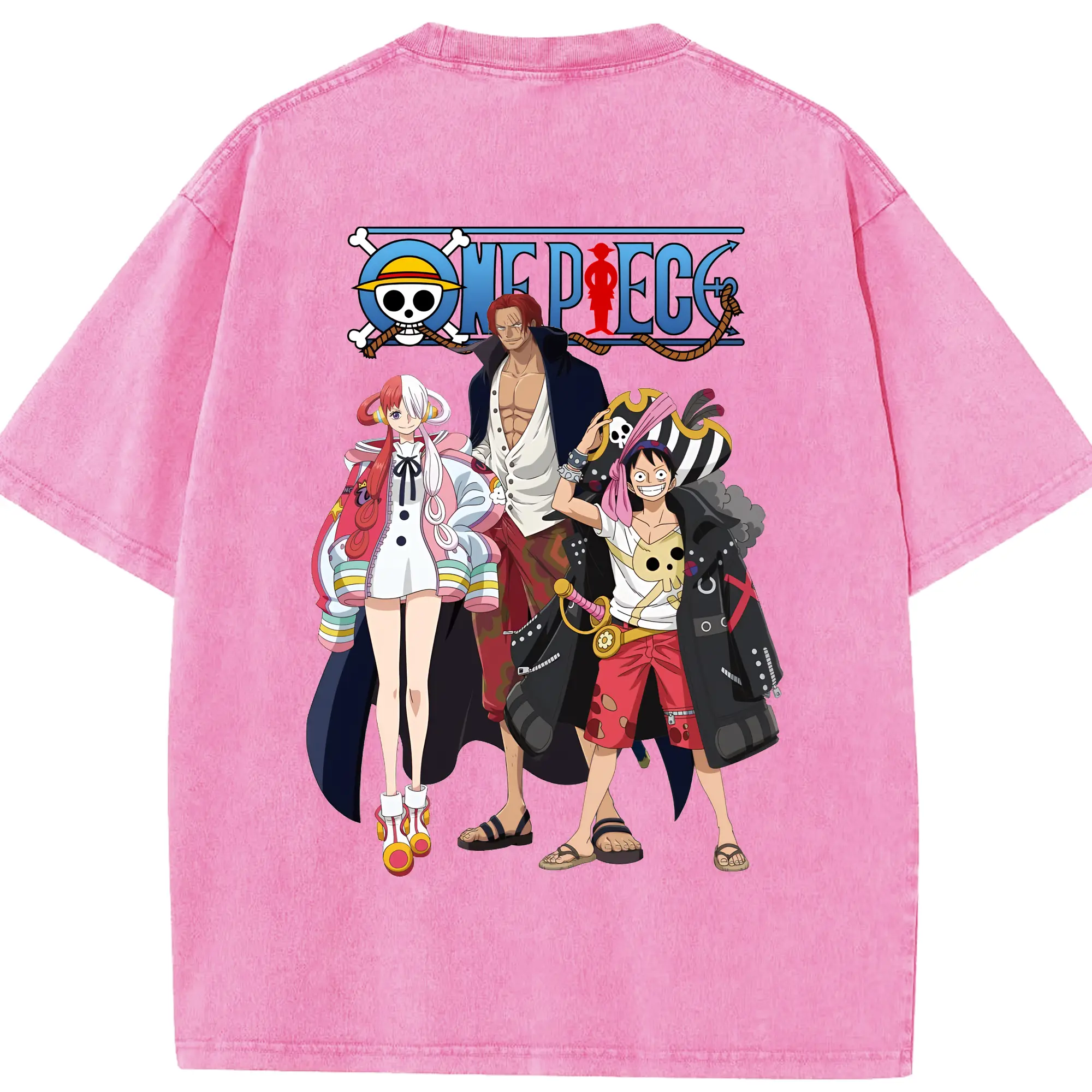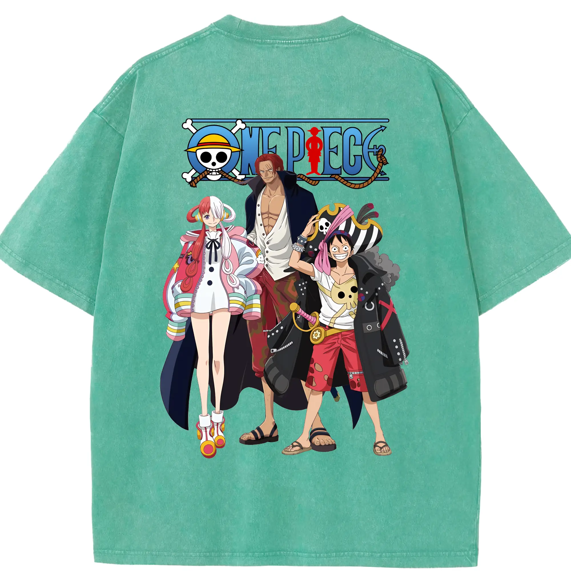 ワンピース グッズ モンキー・D・ルフィ - 綿100% ヴィンテージ風 半袖Tシャツ ・ フロントプリント ・ 柔らか肌触り ・ 通気性 快適 ・ スポーツ カジュアル 外出用