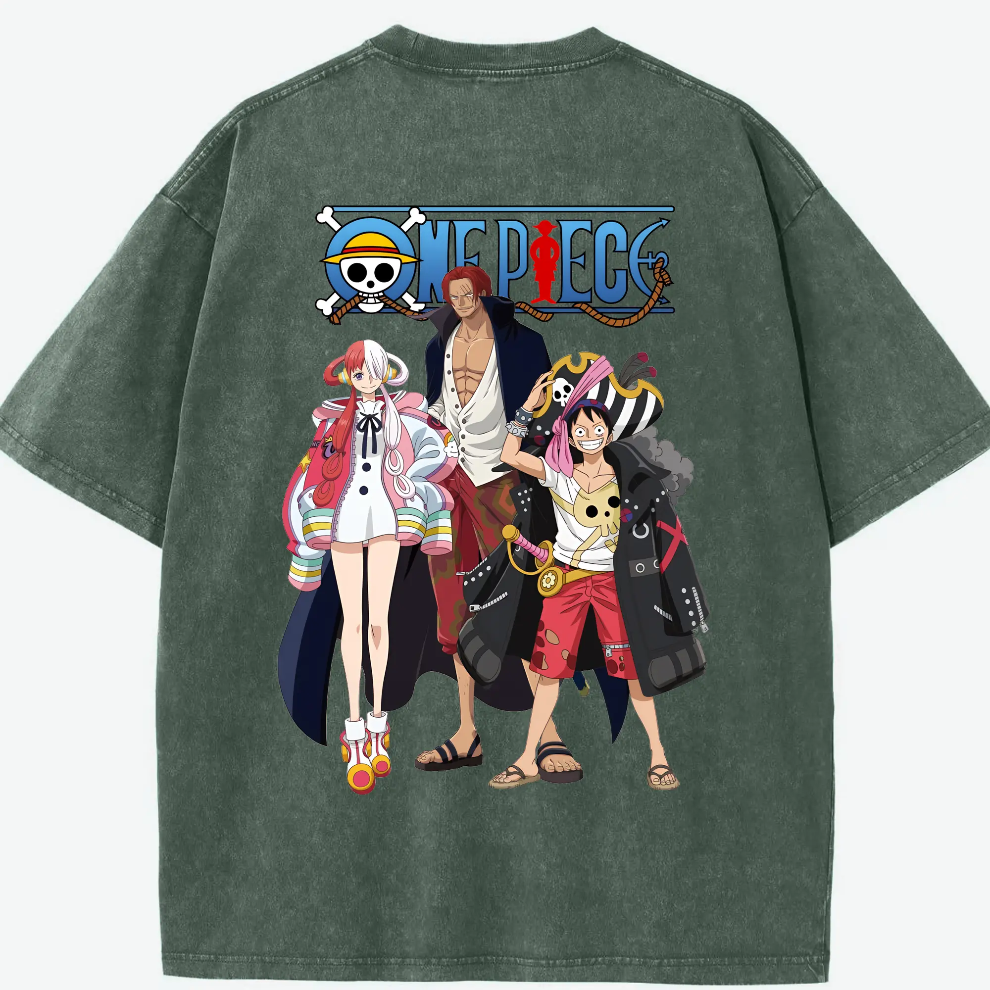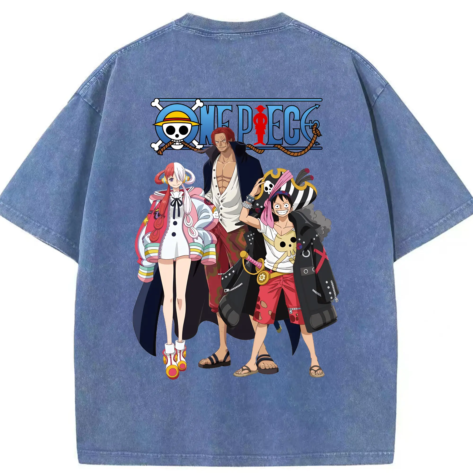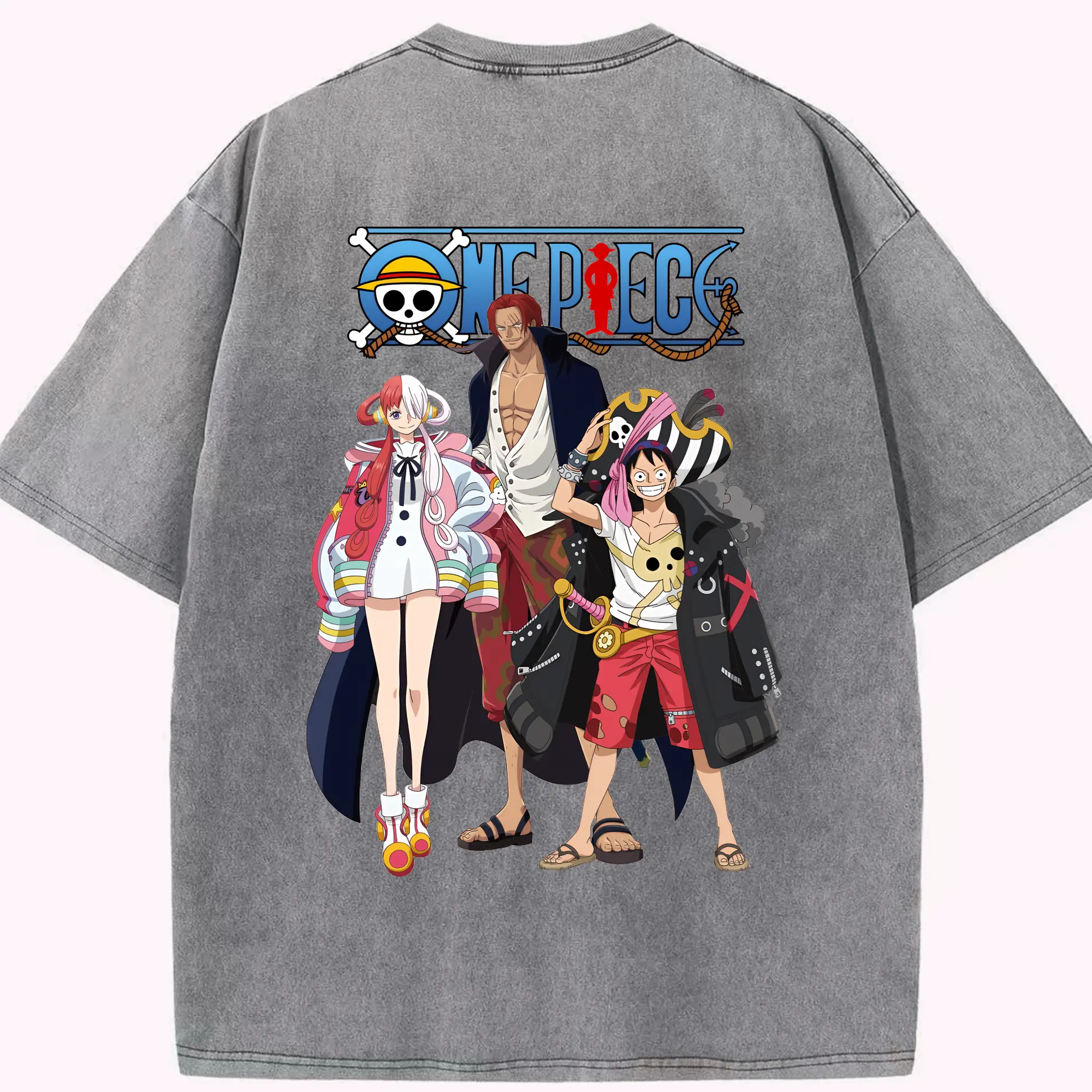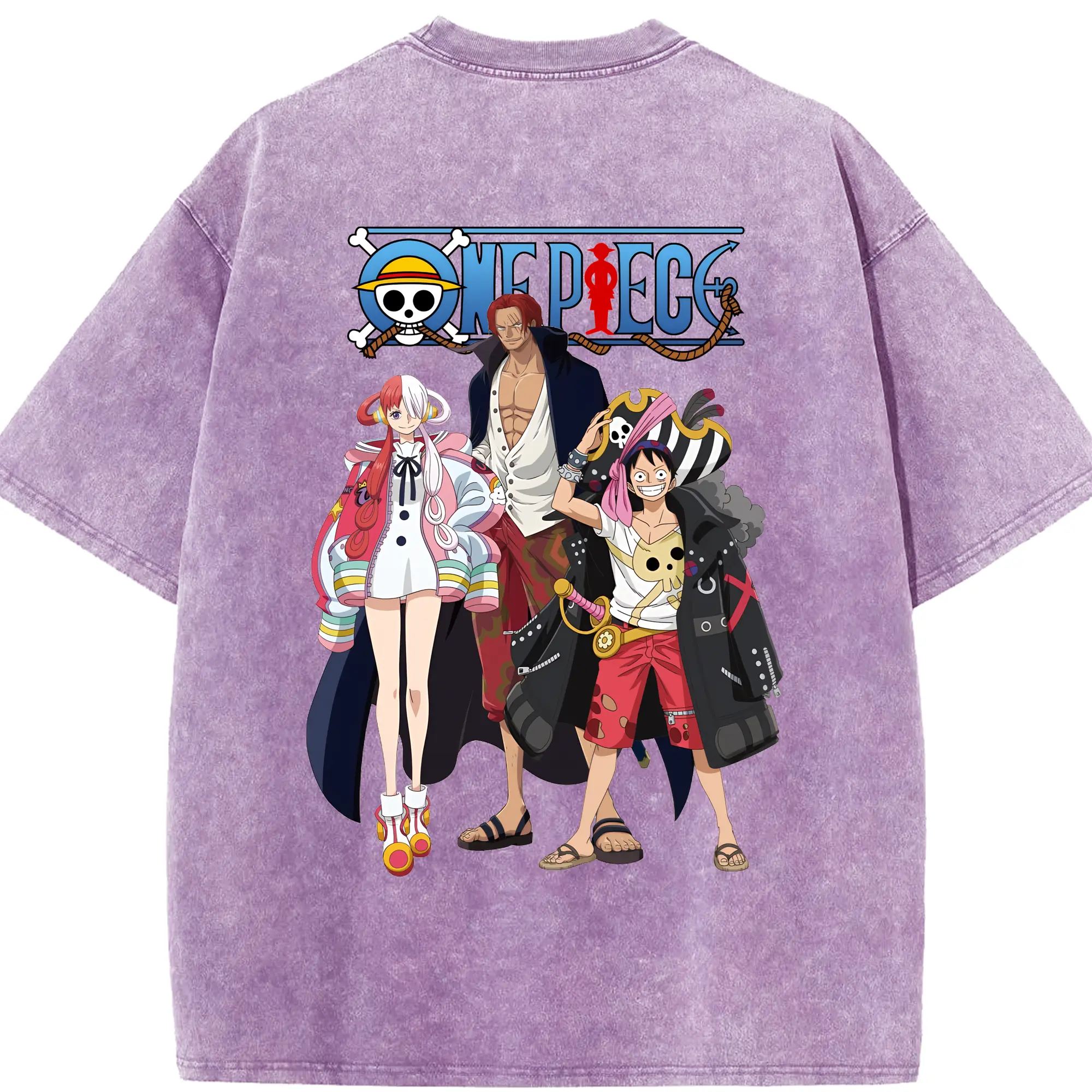 ワンピース グッズ モンキー・D・ルフィ - 綿100% ヴィンテージ風 半袖Tシャツ ・ フロントプリント ・ 柔らか肌触り ・ 通気性 快適 ・ スポーツ カジュアル 外出用
