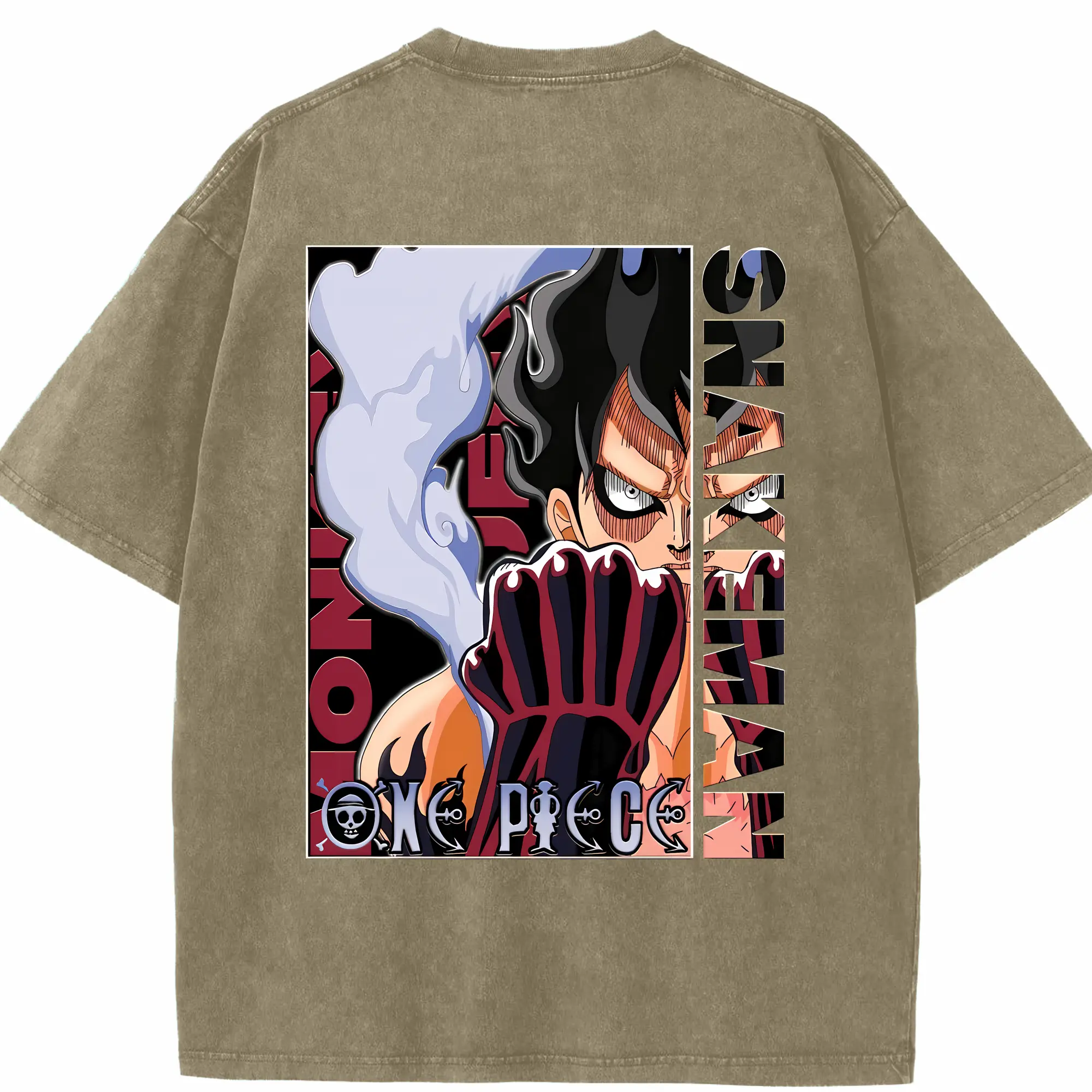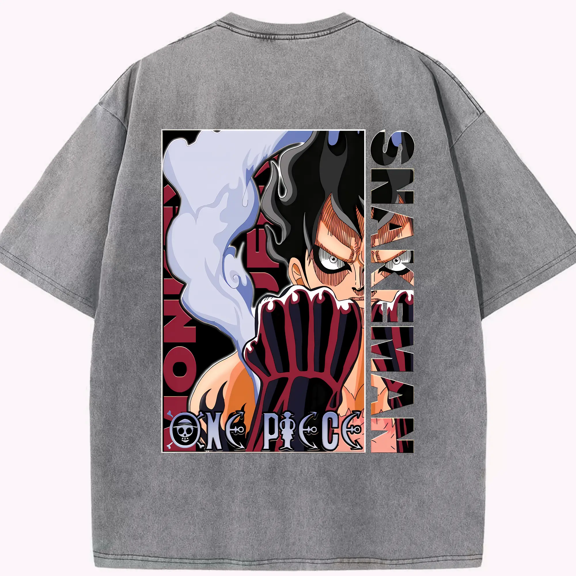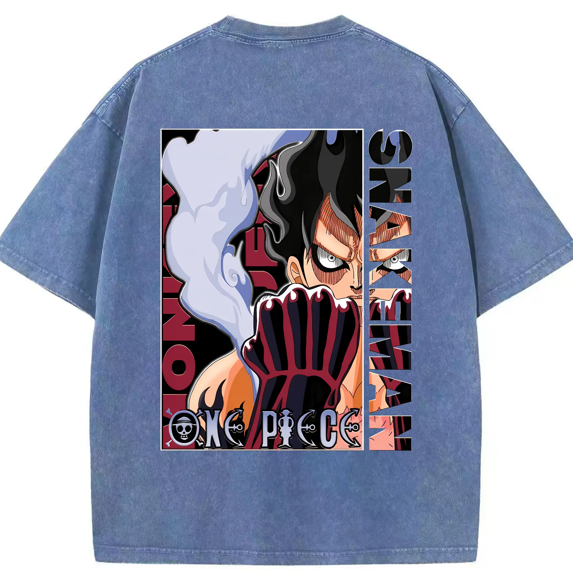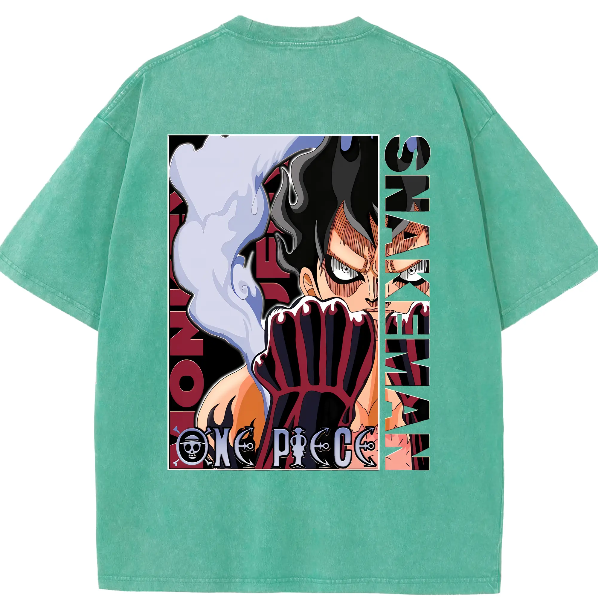 ワンピース グッズ モンキー・D・ルフィ - 綿100% ヴィンテージ風 半袖Tシャツ ・ フロントプリント ・ 柔らか肌触り ・ 通気性 快適 ・ スポーツ カジュアル 外出用
