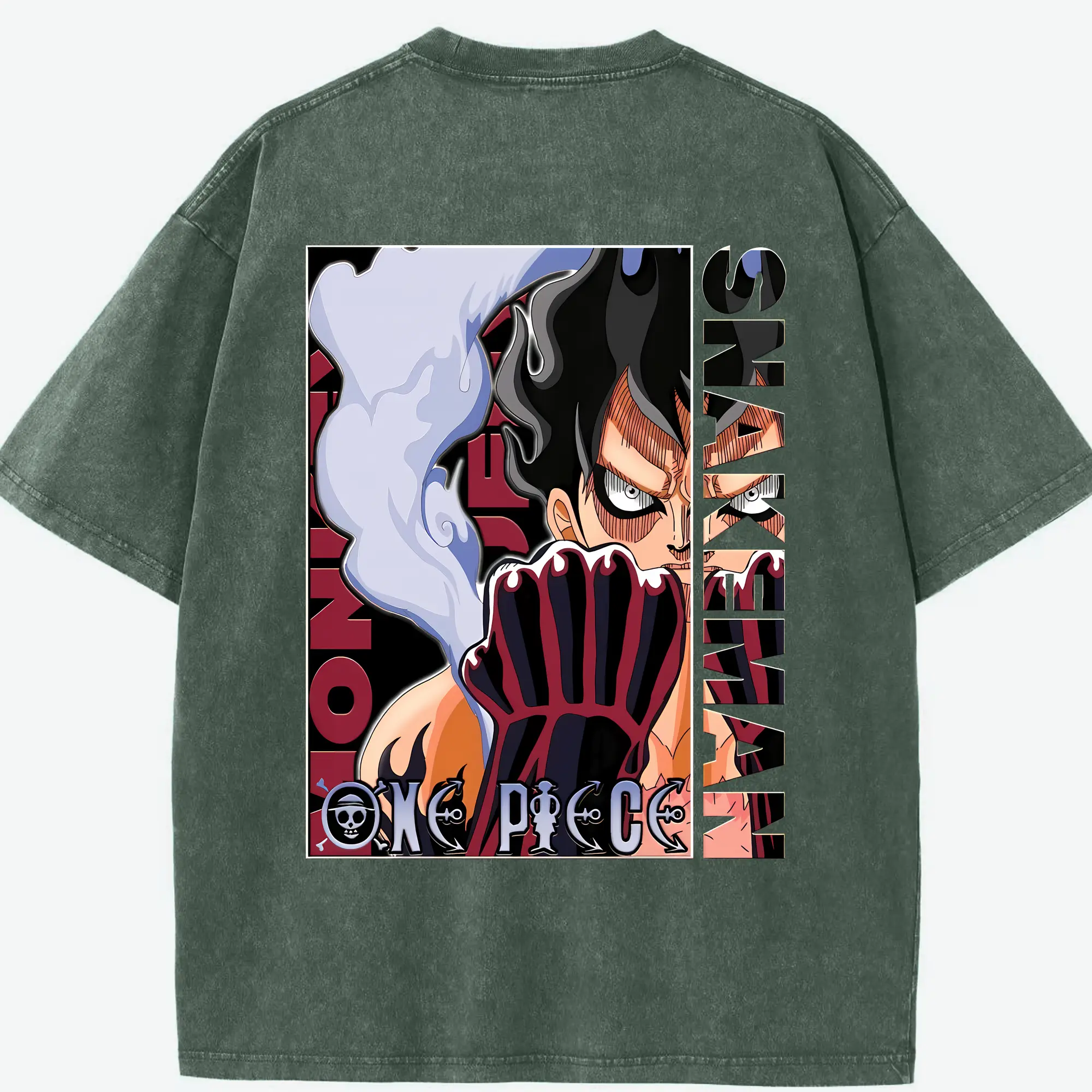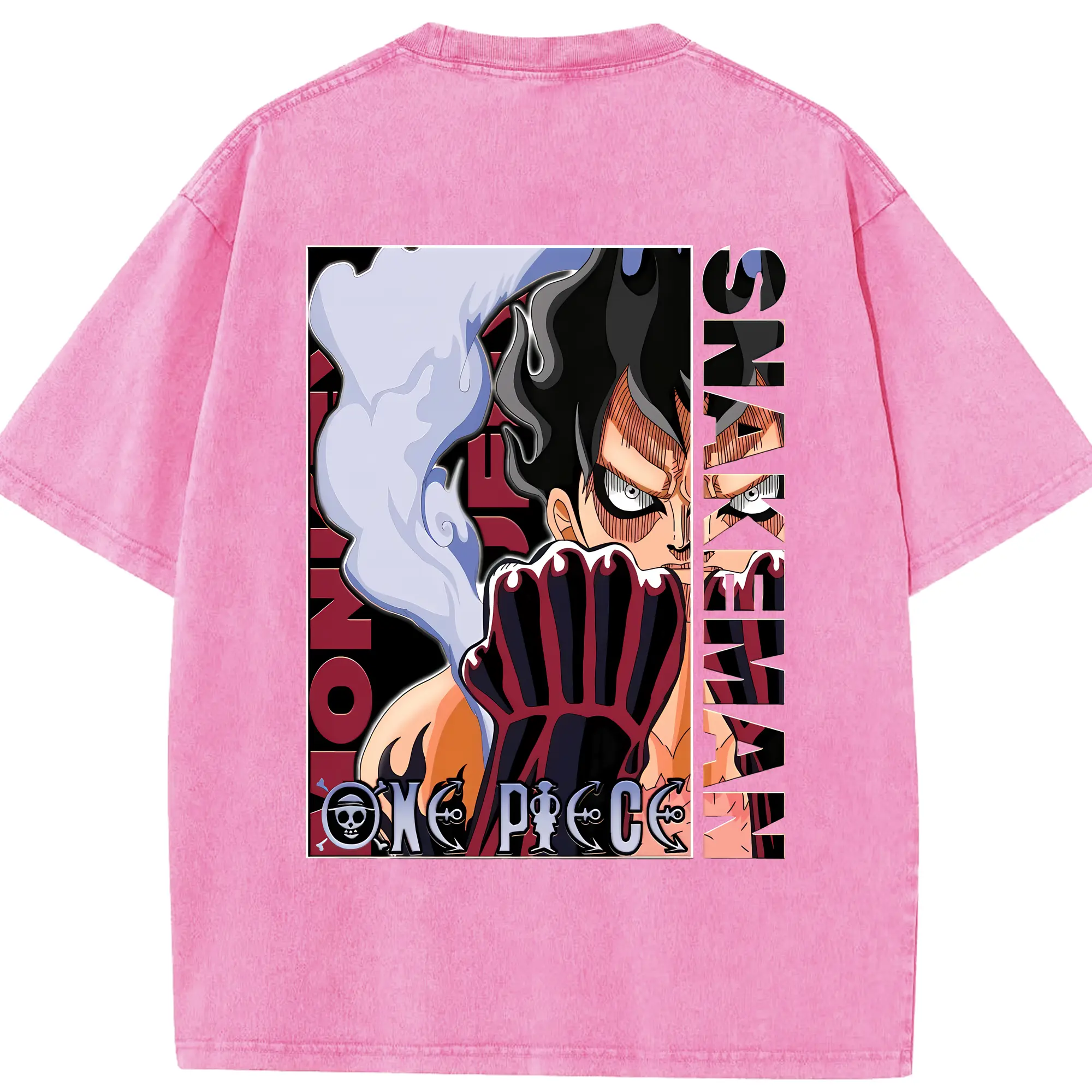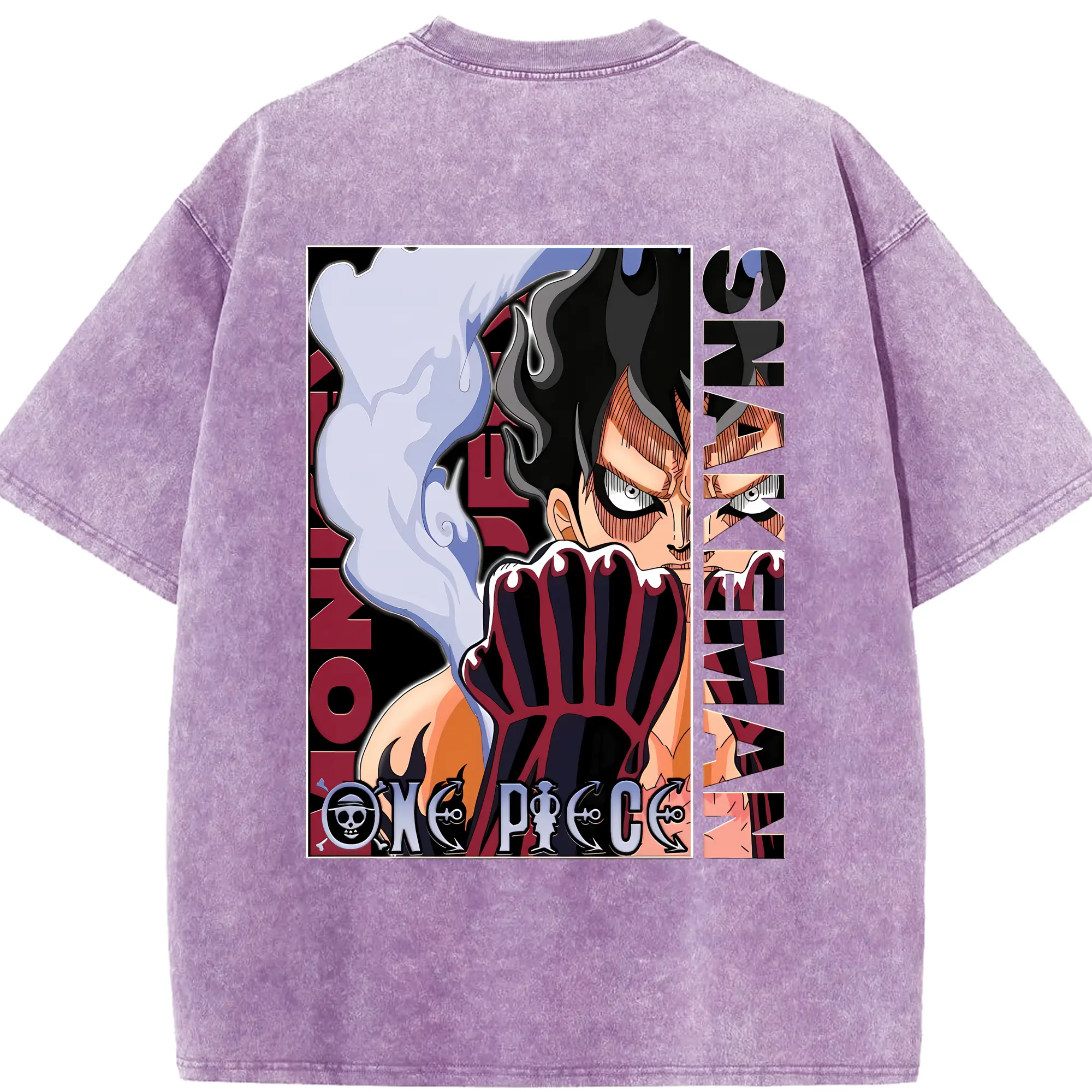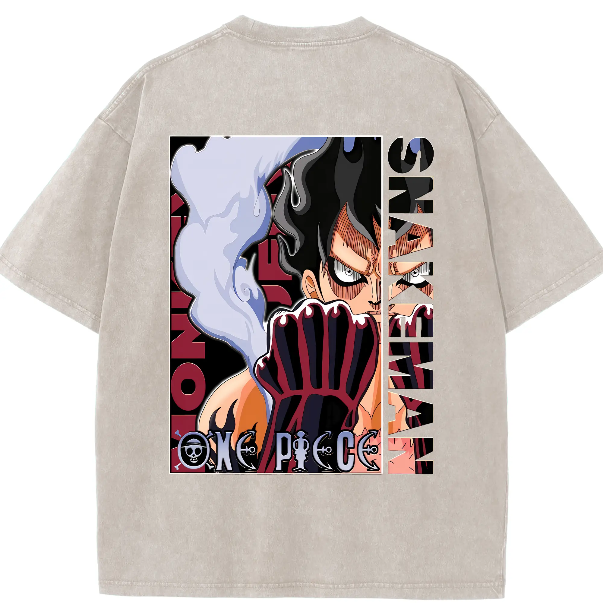 ワンピース グッズ モンキー・D・ルフィ - 綿100% ヴィンテージ風 半袖Tシャツ ・ フロントプリント ・ 柔らか肌触り ・ 通気性 快適 ・ スポーツ カジュアル 外出用