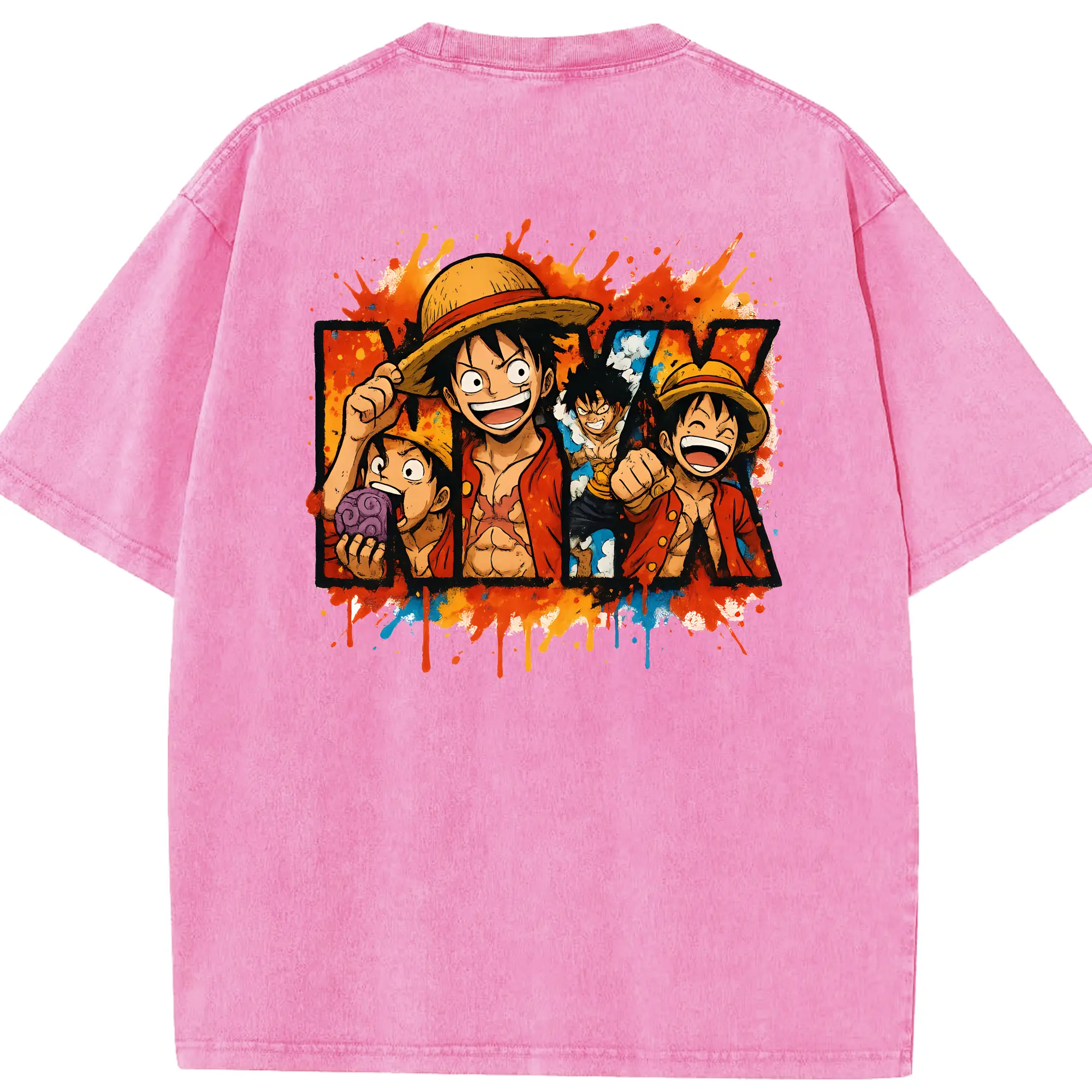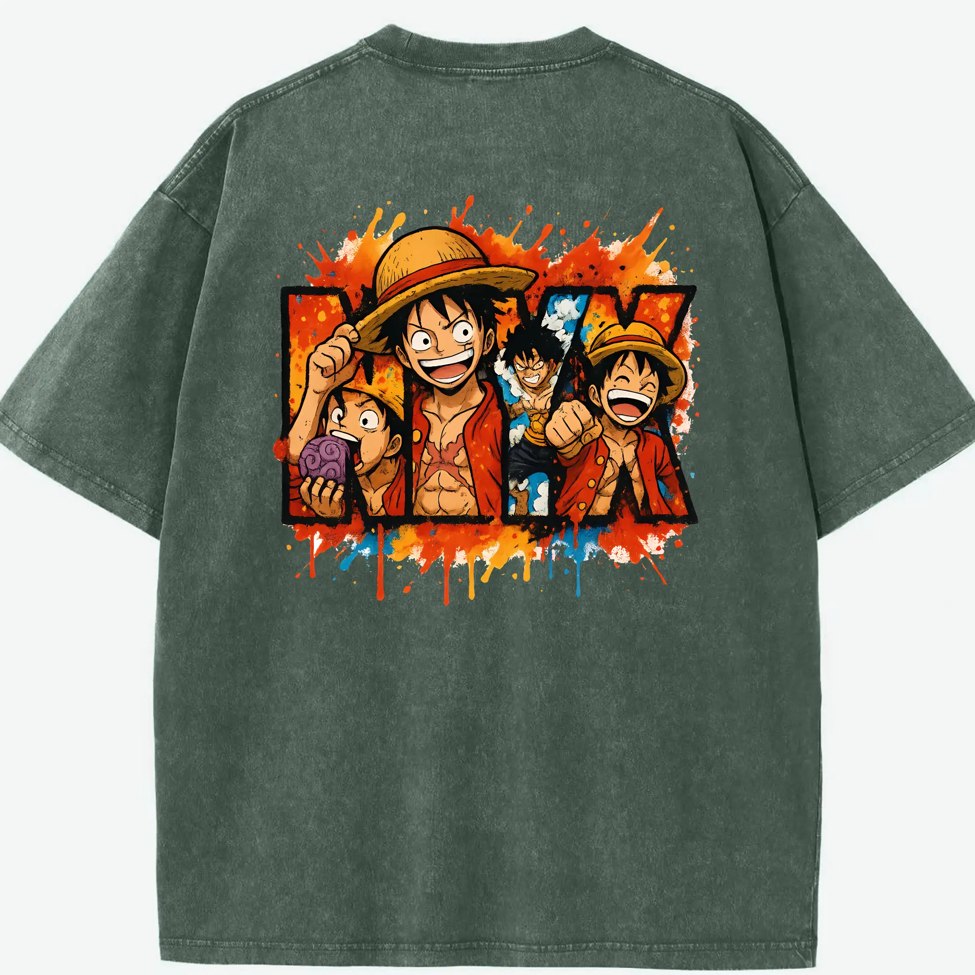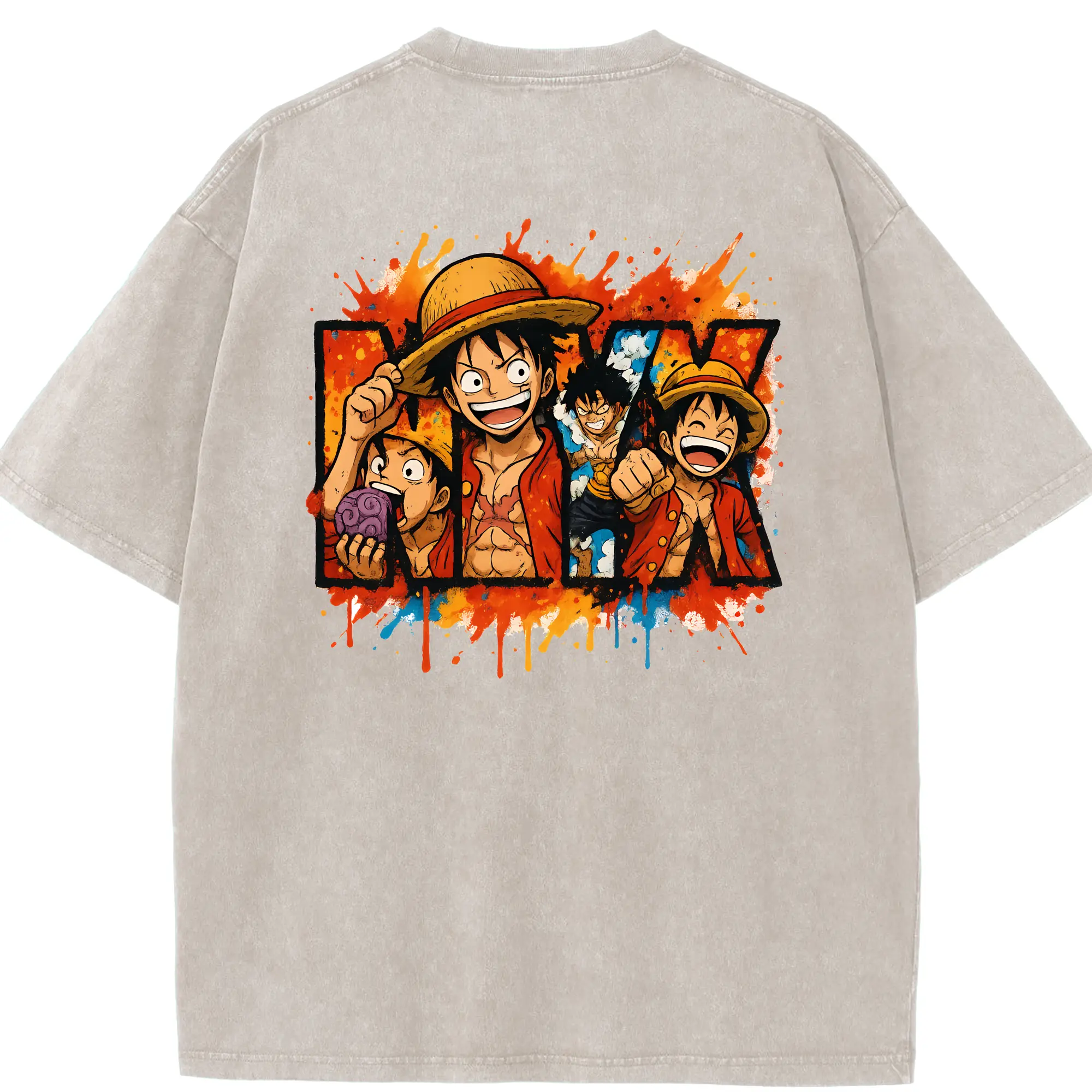 ワンピース グッズ モンキー・D・ルフィ - 綿100% ヴィンテージ風 半袖Tシャツ ・ 背面プリント ・ 柔らか肌触り ・ 通気性 快適 ・ スポーツ カジュアル 外出用