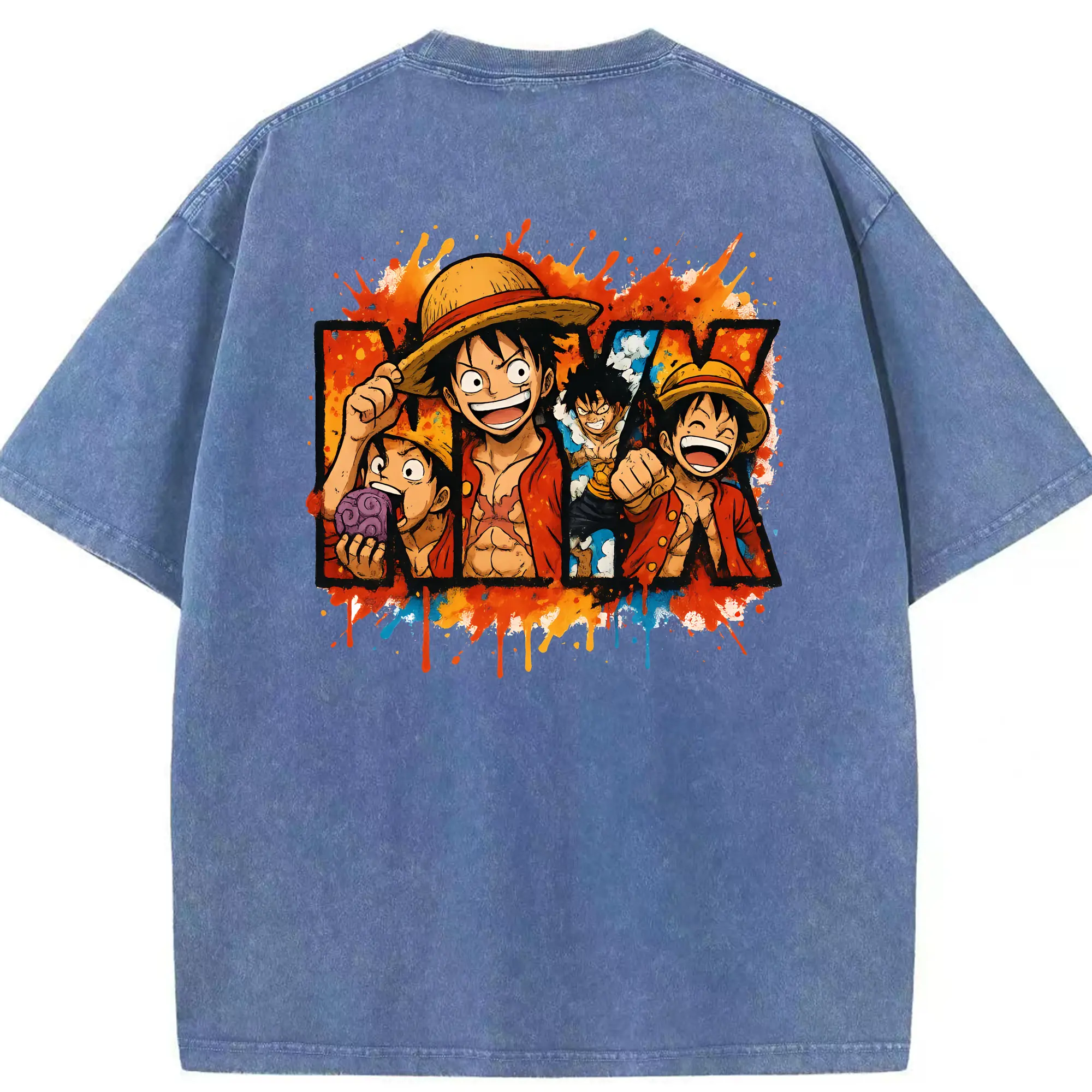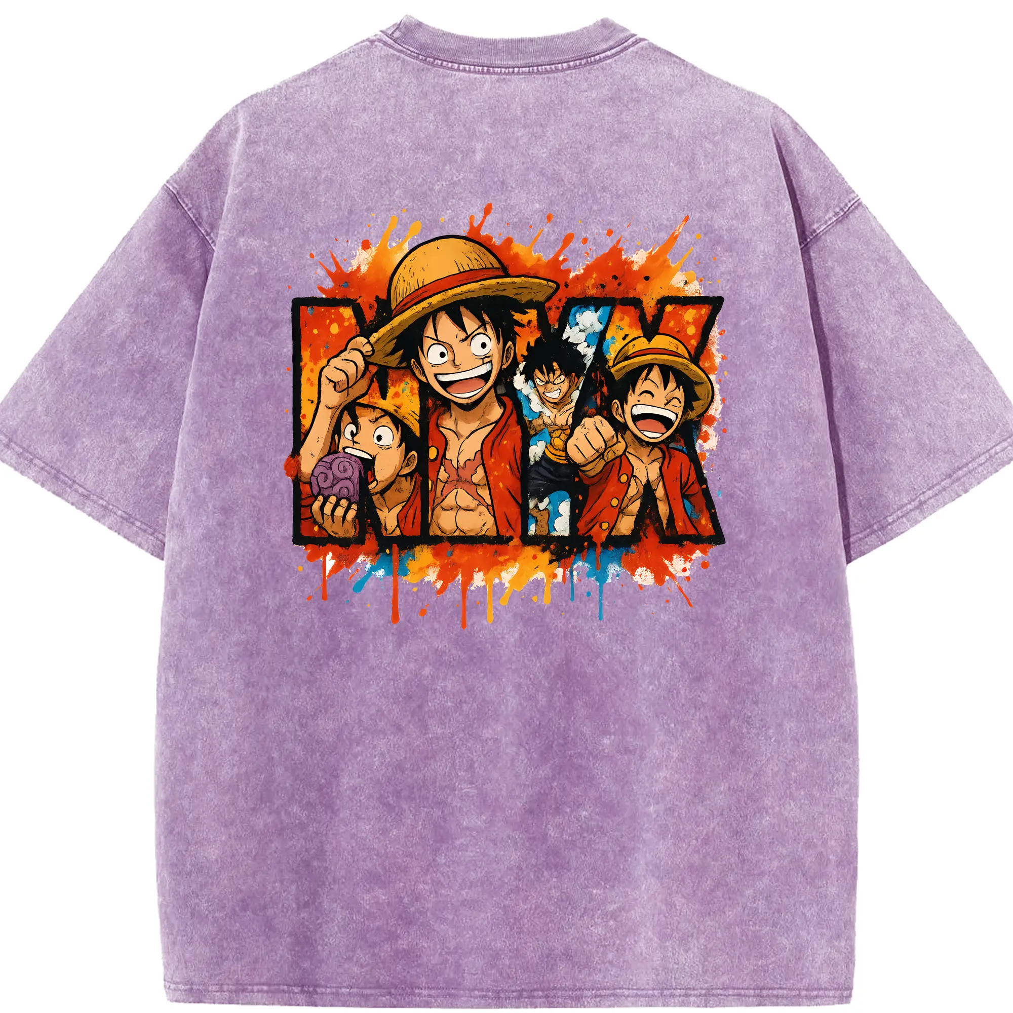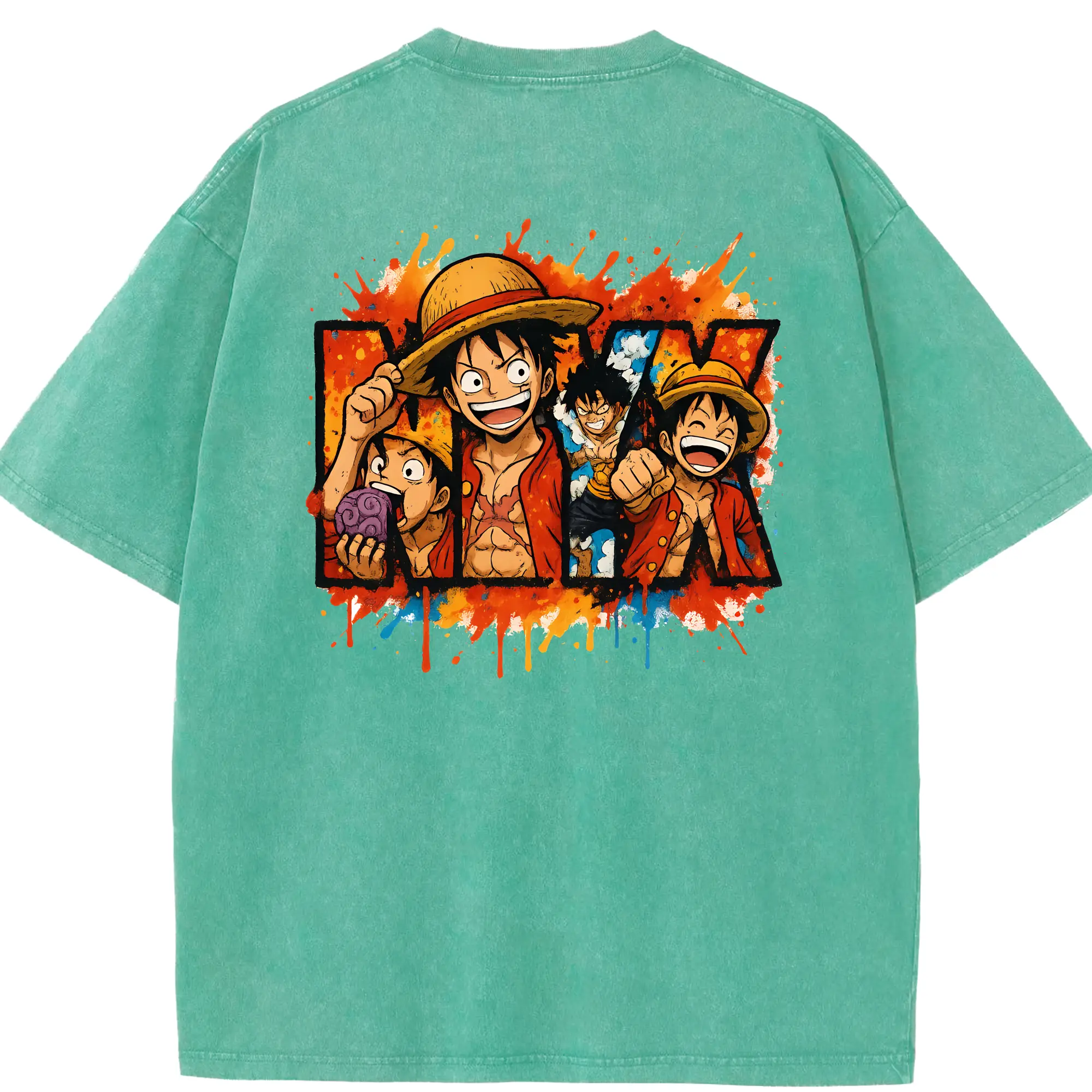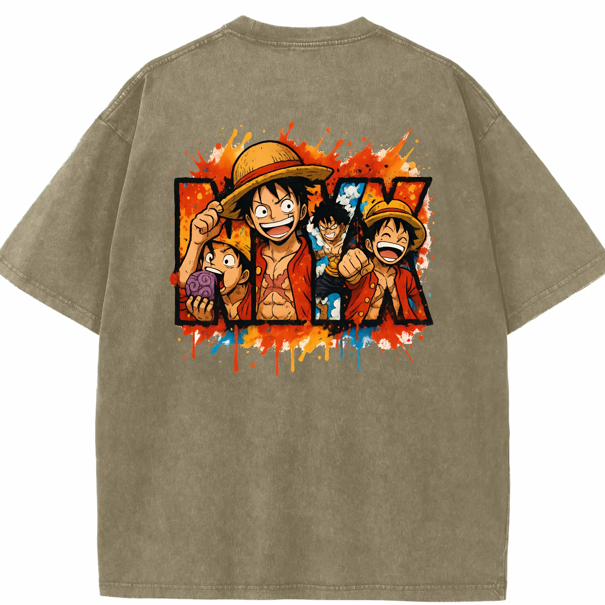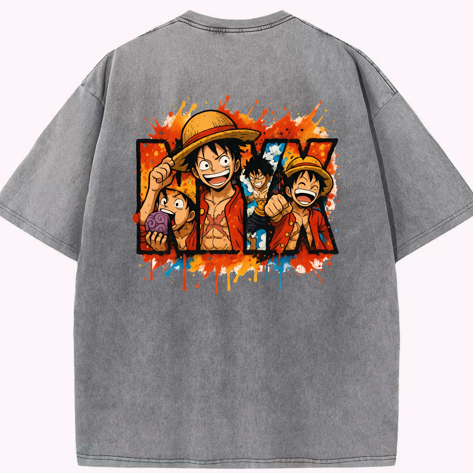 ワンピース グッズ モンキー・D・ルフィ - 綿100% ヴィンテージ風 半袖Tシャツ ・ フロントプリント ・ 柔らか肌触り ・ 通気性 快適 ・ スポーツ カジュアル 外出用
