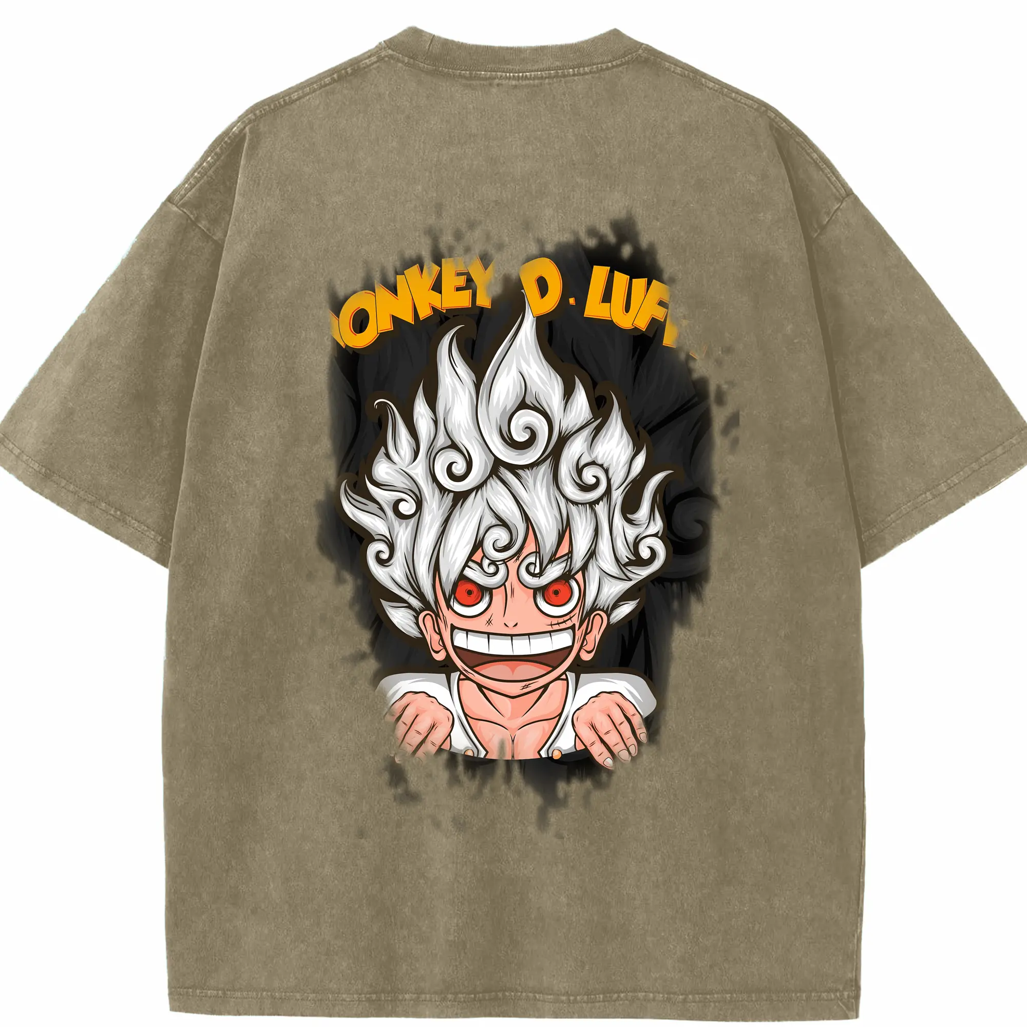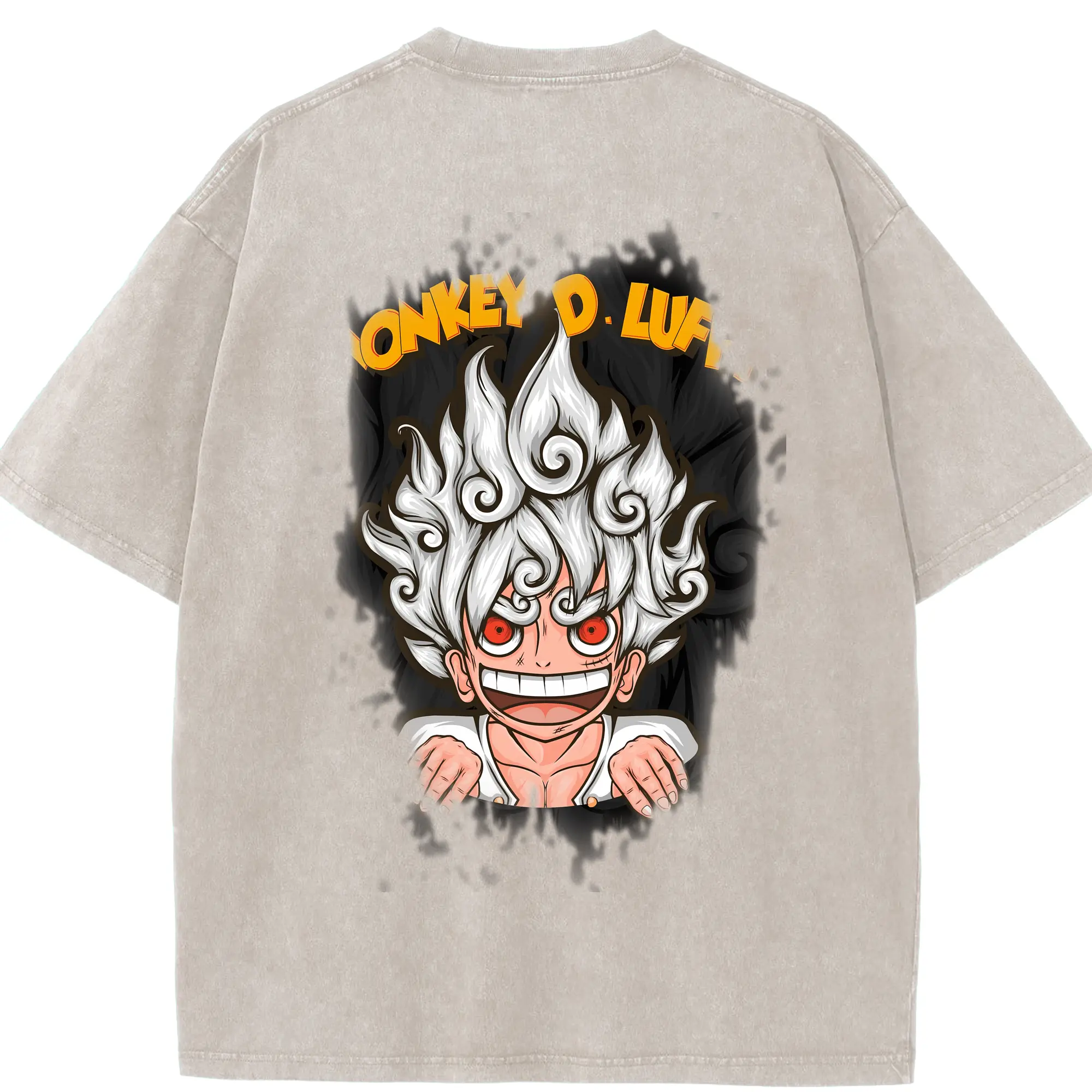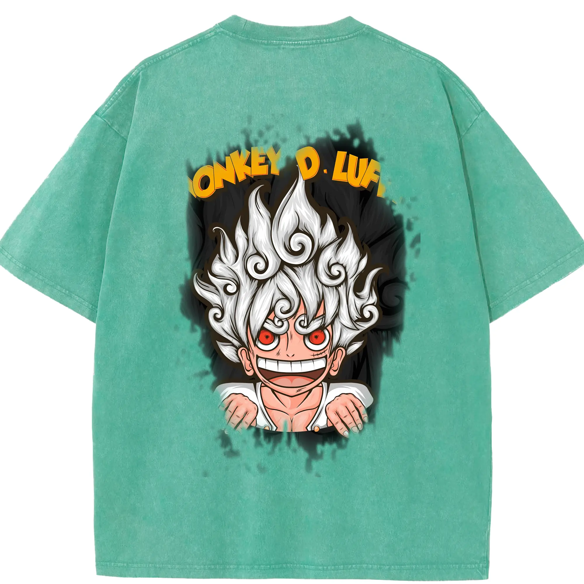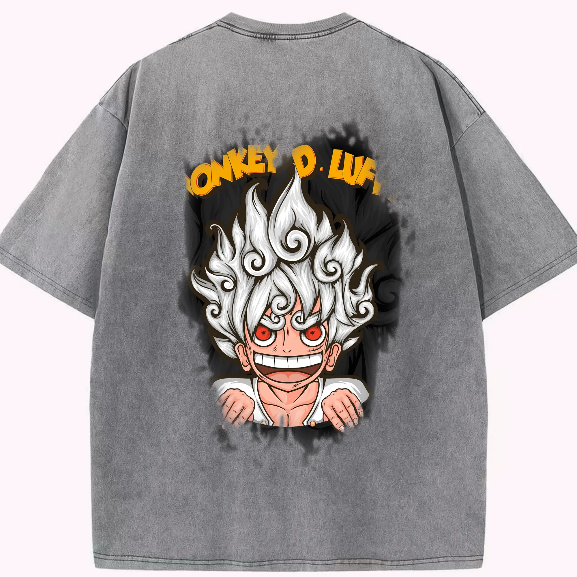 ワンピース グッズ モンキー・D・ルフィ - 綿100% ヴィンテージ風 半袖Tシャツ ・ フロントプリント ・ 柔らか肌触り ・ 通気性 快適 ・ スポーツ カジュアル 外出用