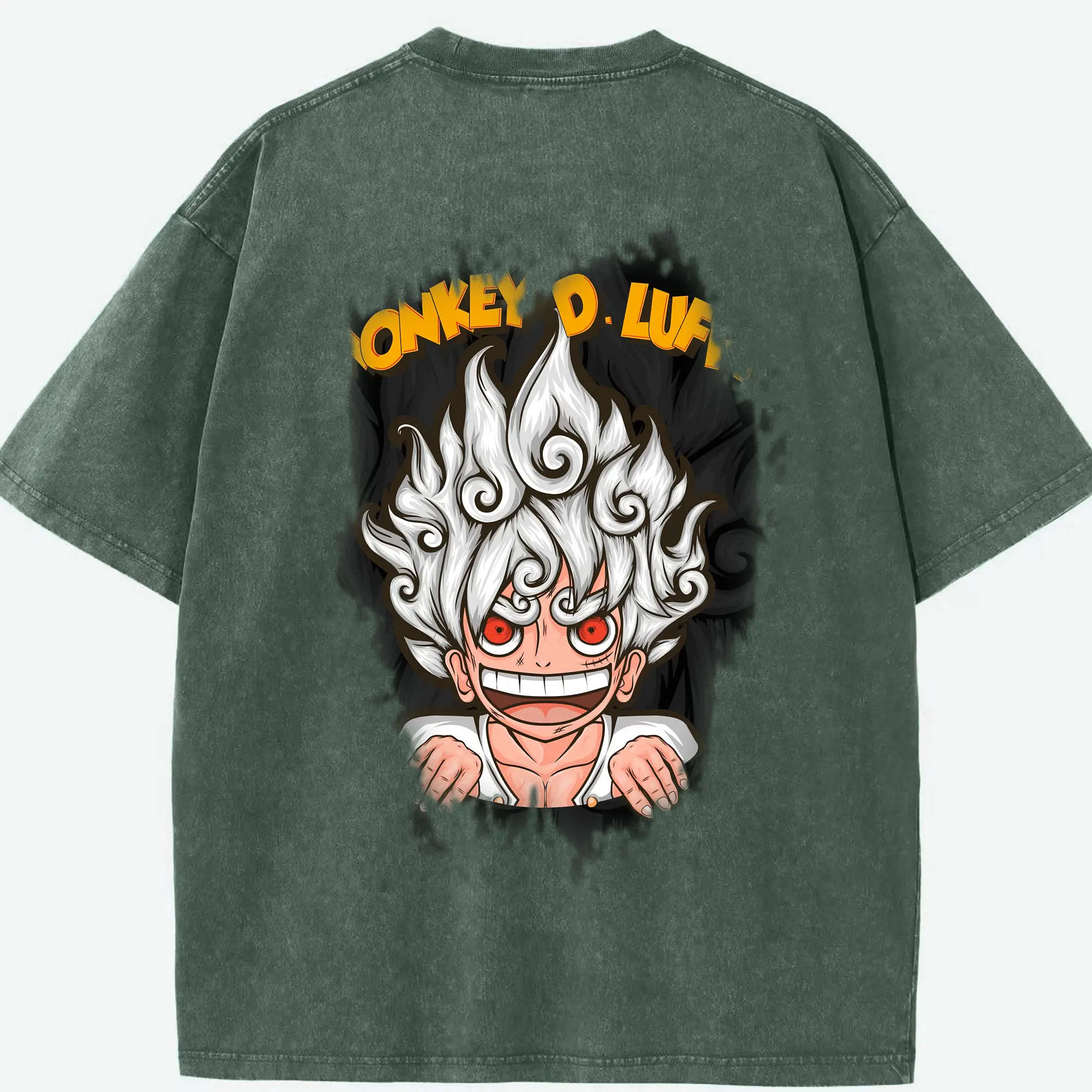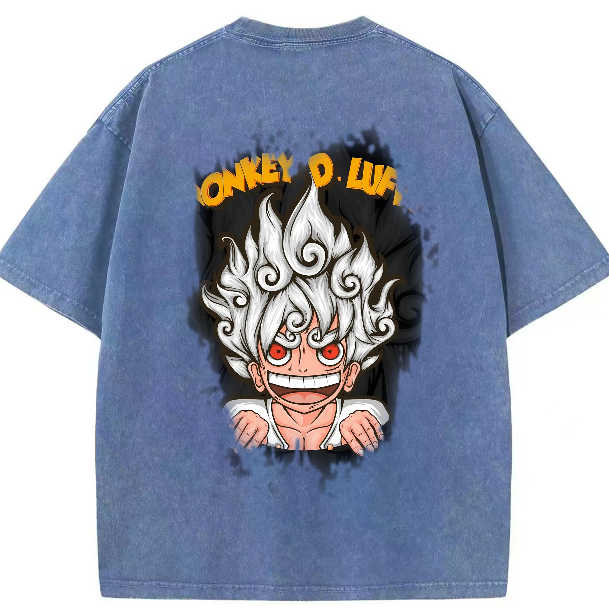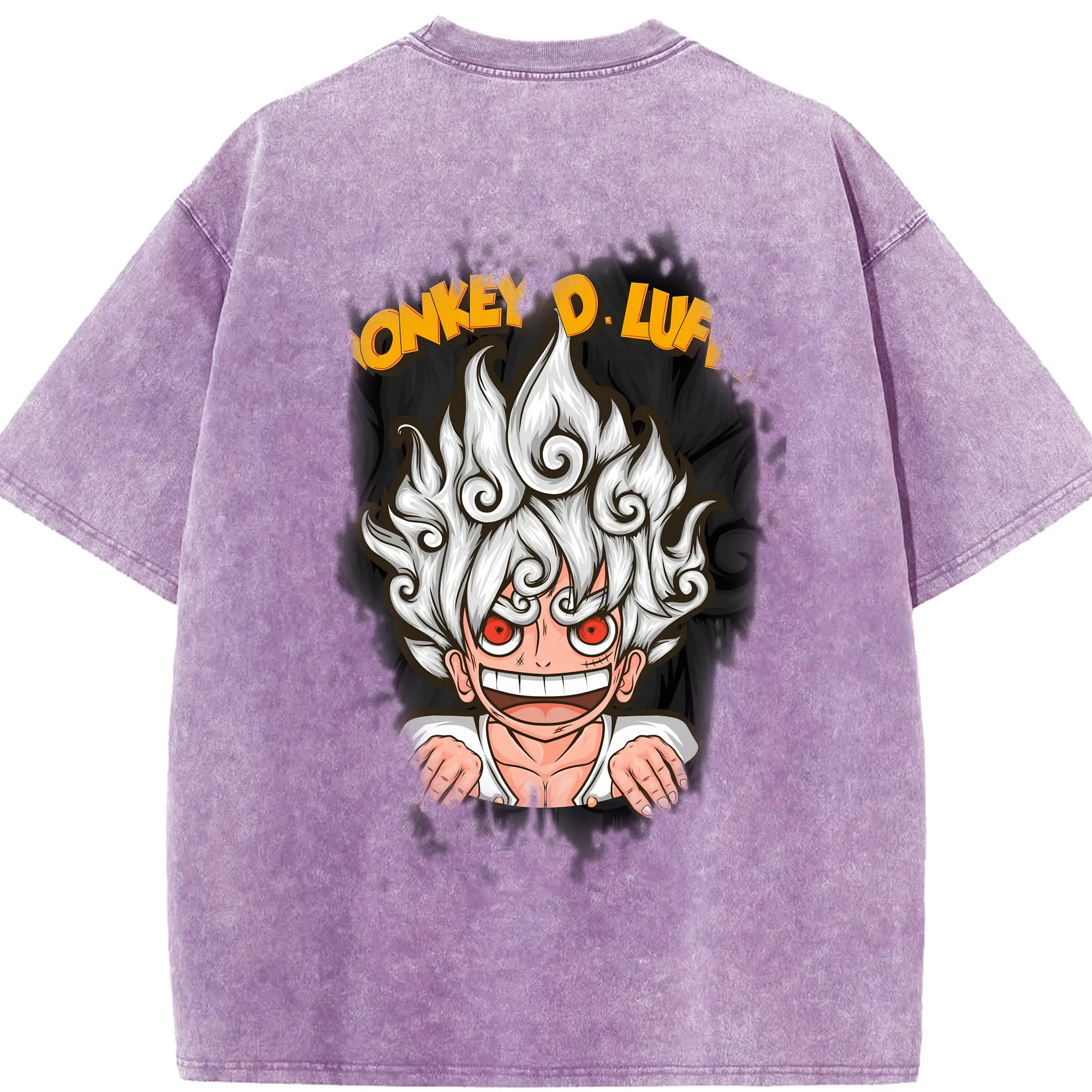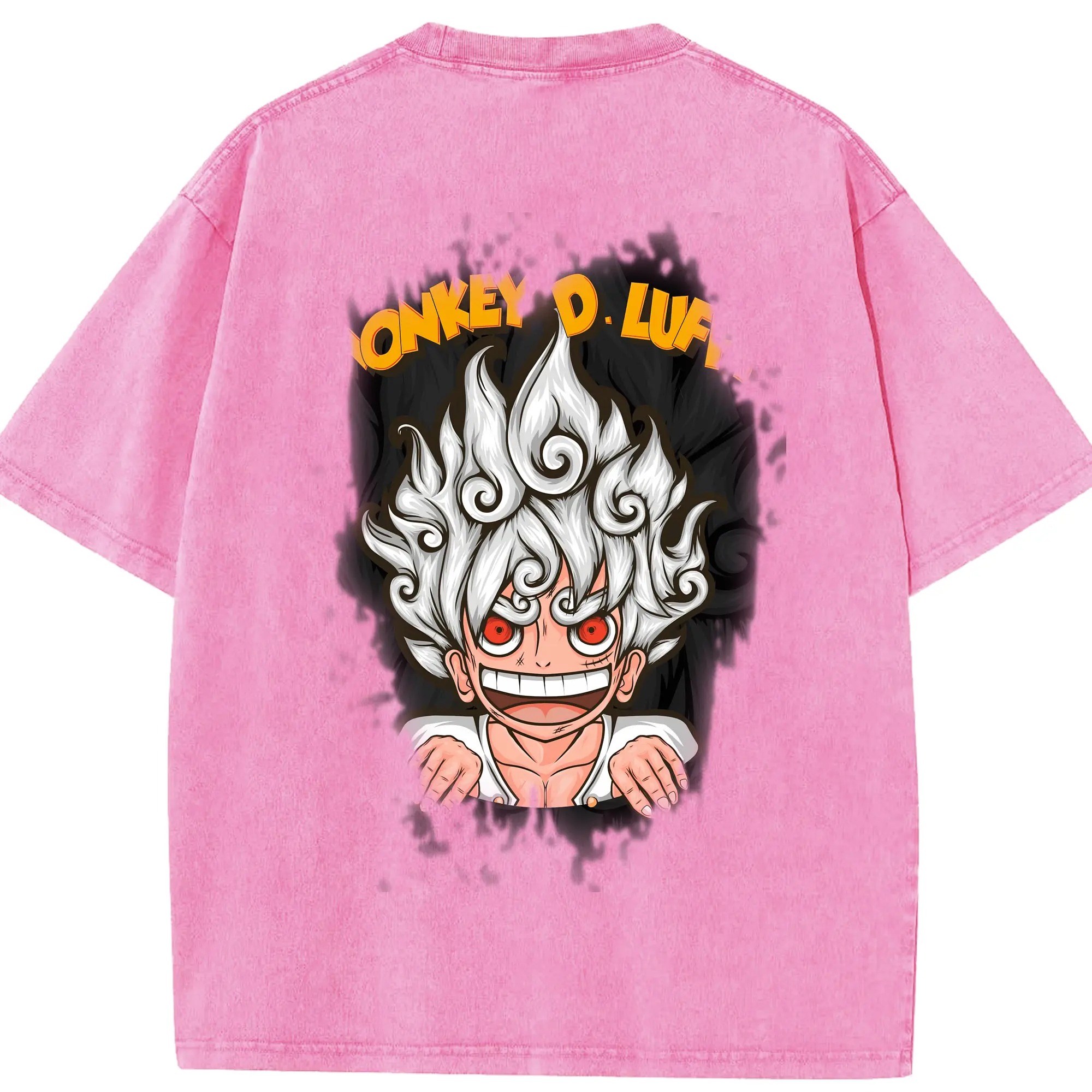 ワンピース グッズ モンキー・D・ルフィ - 綿100% ヴィンテージ風 半袖Tシャツ ・ フロントプリント ・ 柔らか肌触り ・ 通気性 快適 ・ スポーツ カジュアル 外出用
