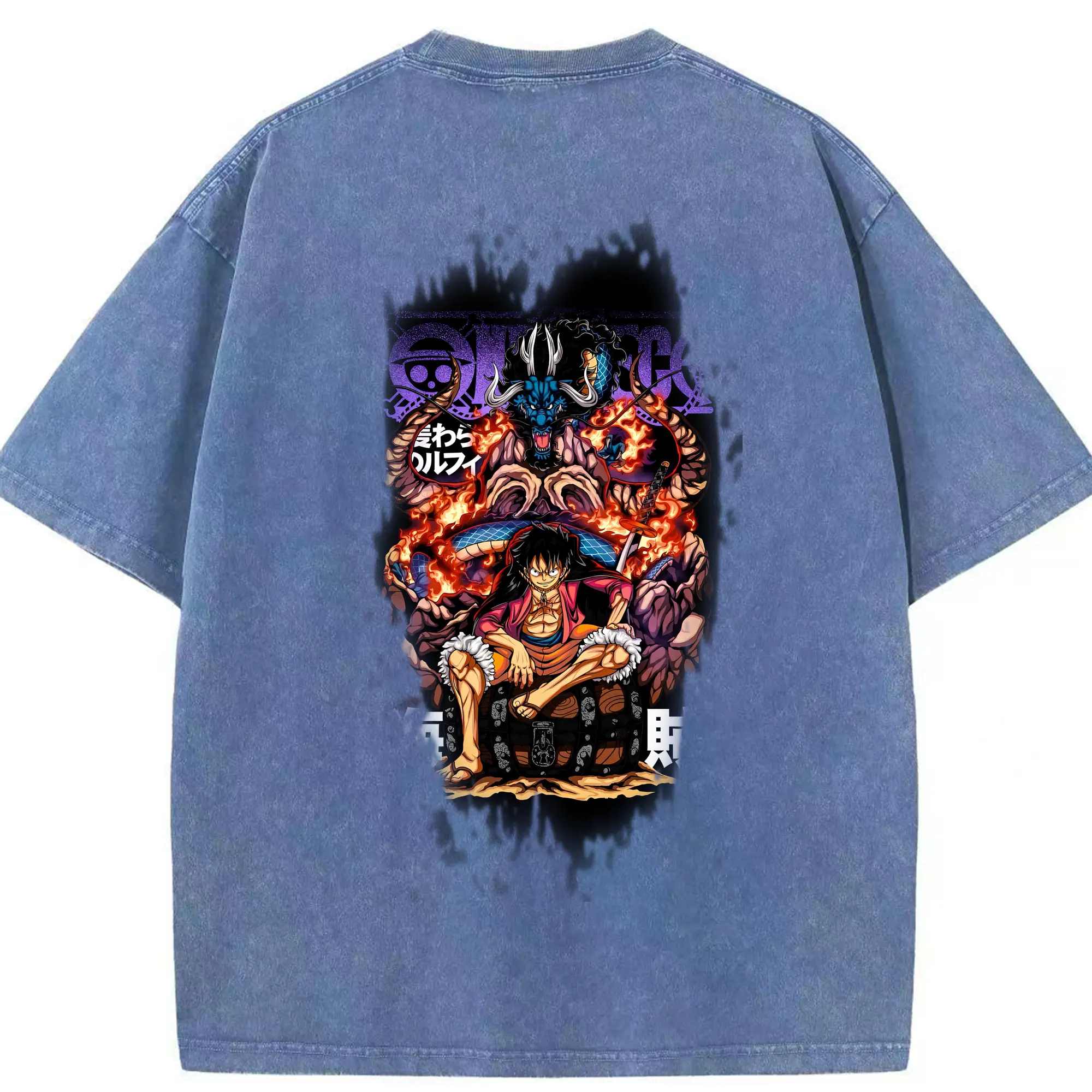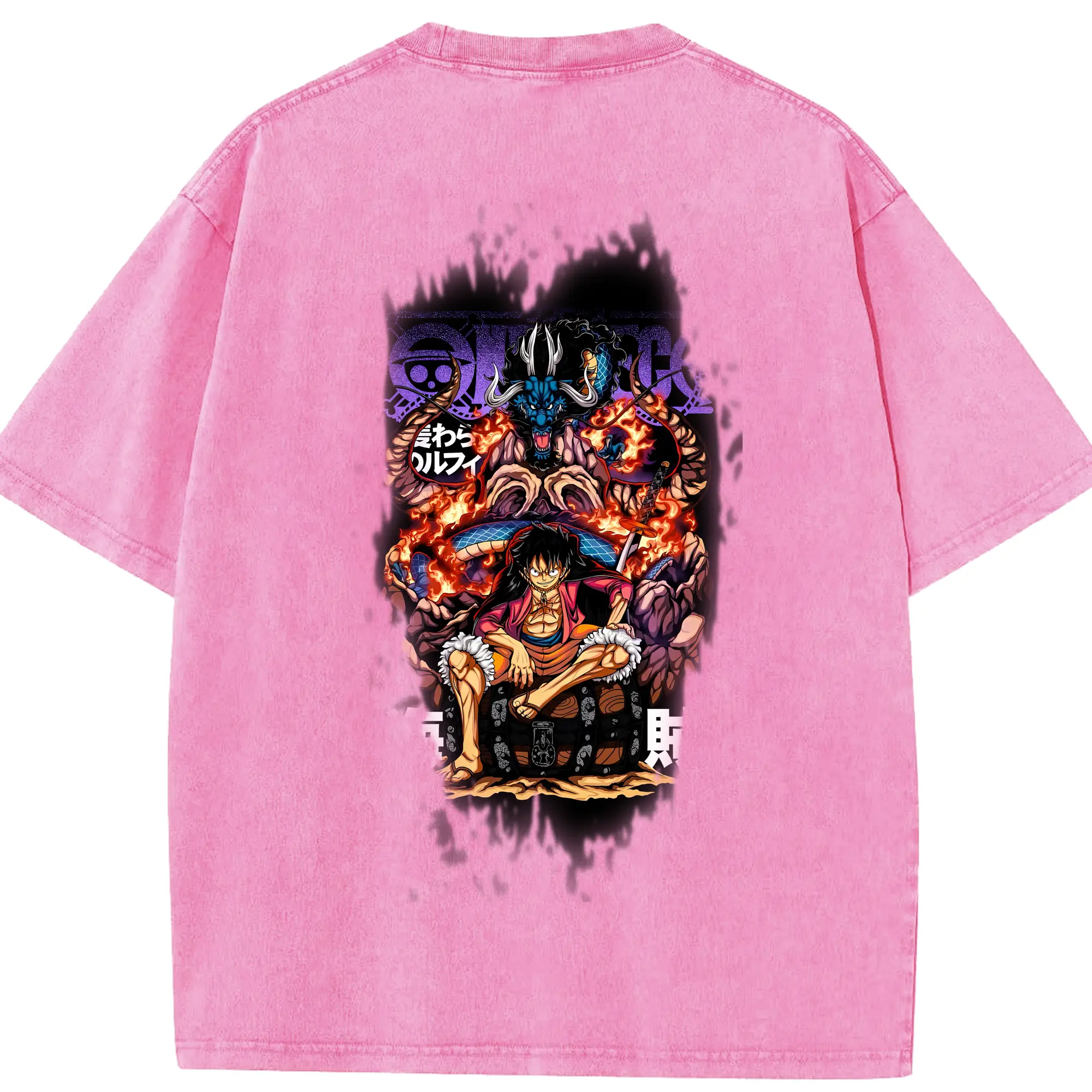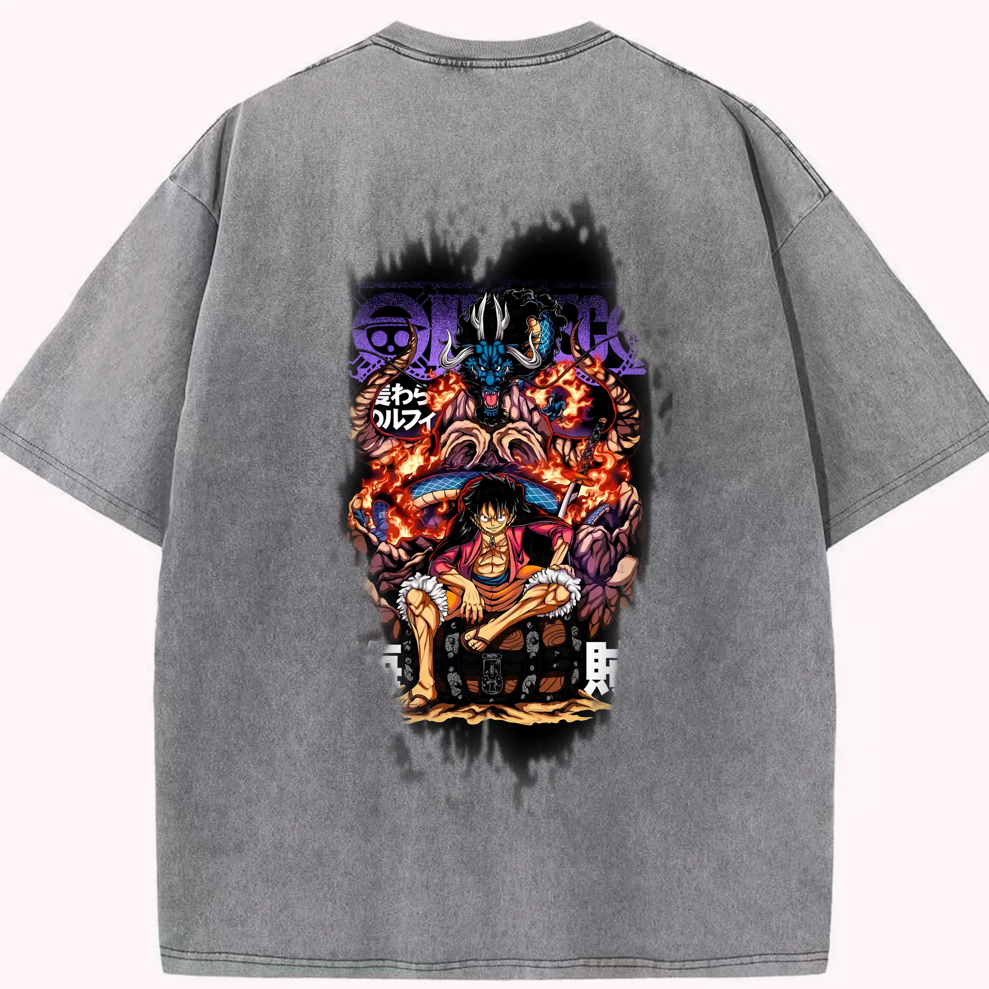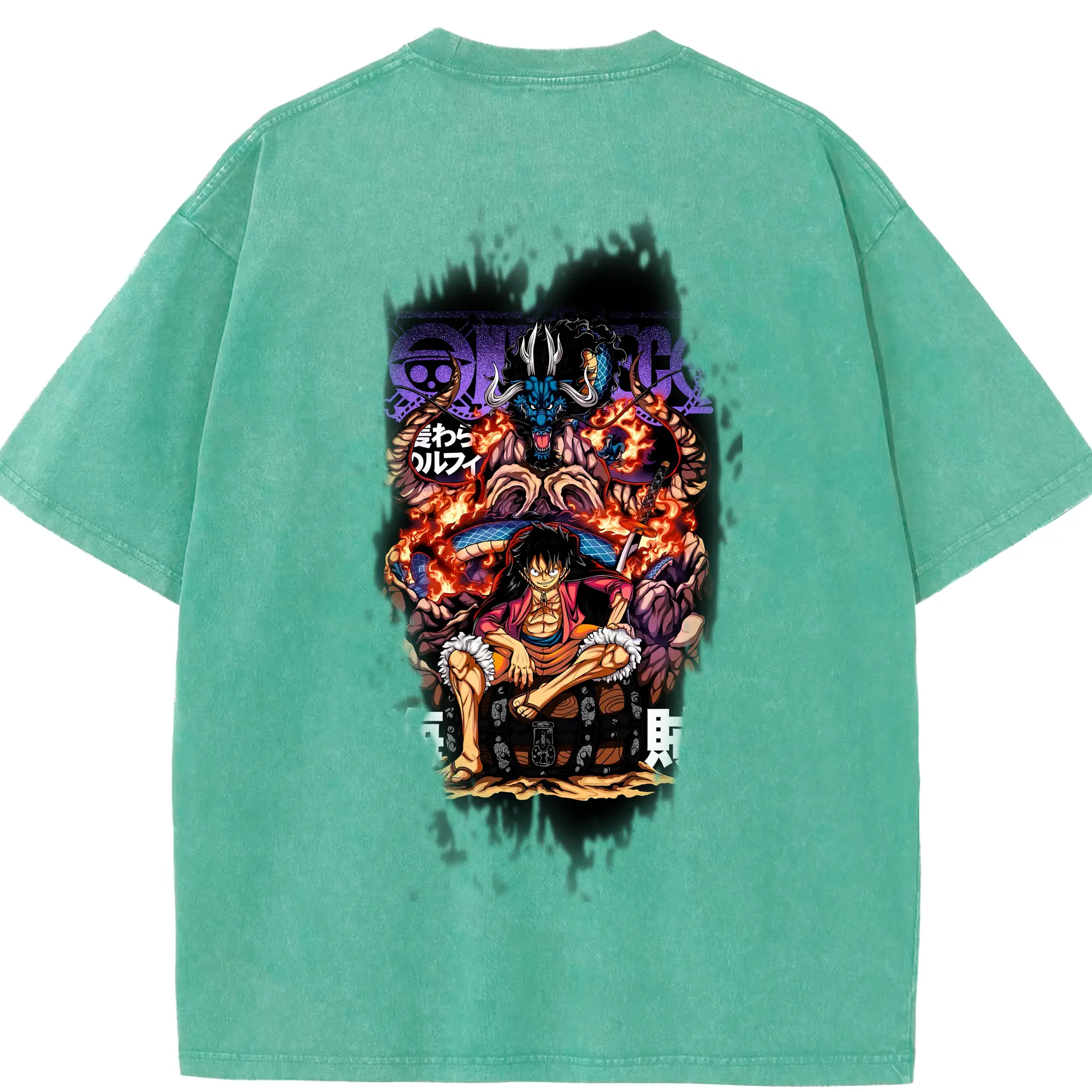 ワンピース グッズ モンキー・D・ルフィ - 綿100% ヴィンテージ風 半袖Tシャツ ・ フロントプリント ・ 柔らか肌触り ・ 通気性 快適 ・ スポーツ カジュアル 外出用