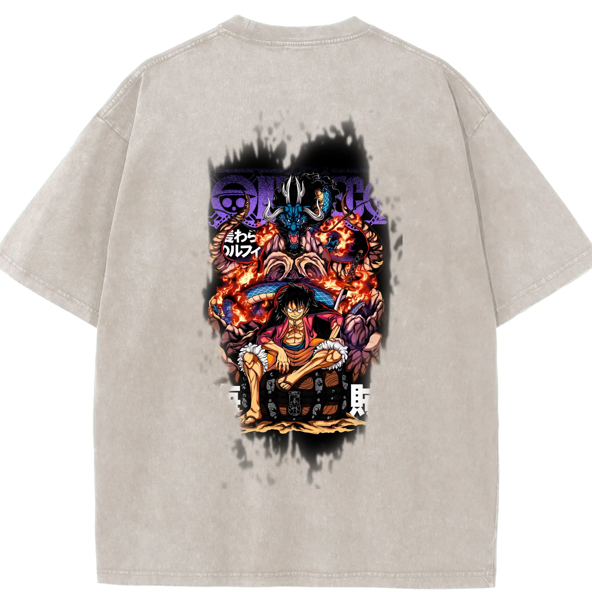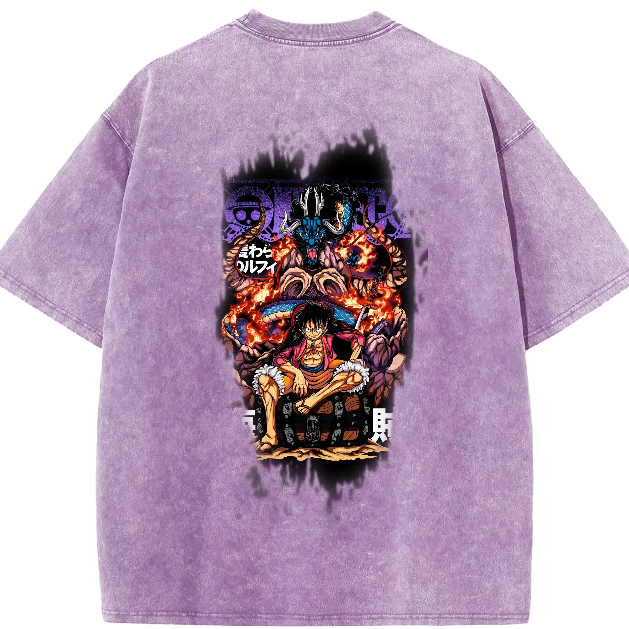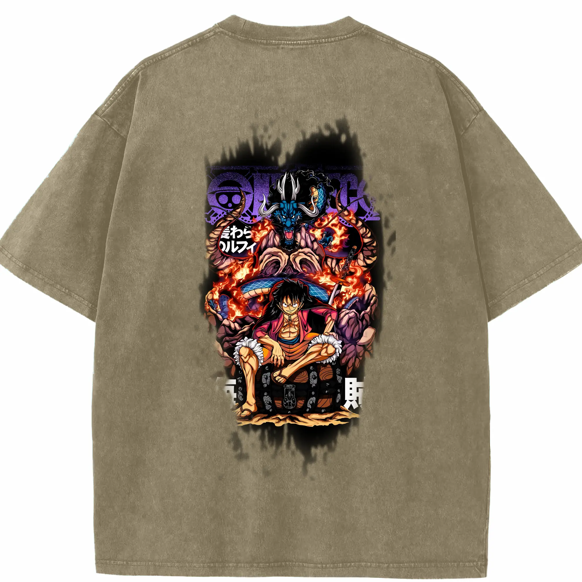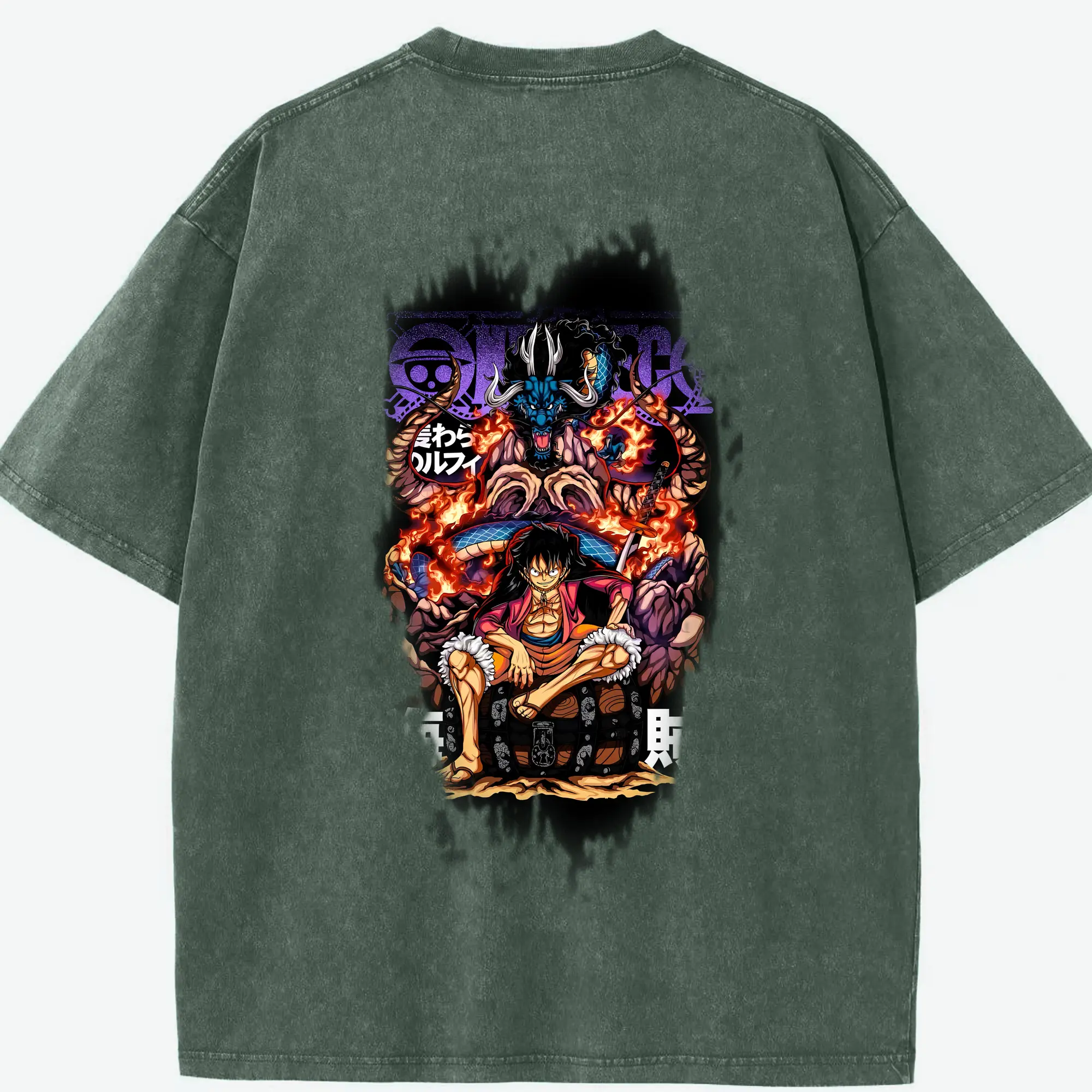 ワンピース グッズ モンキー・D・ルフィ - 綿100% ヴィンテージ風 半袖Tシャツ ・ フロントプリント ・ 柔らか肌触り ・ 通気性 快適 ・ スポーツ カジュアル 外出用