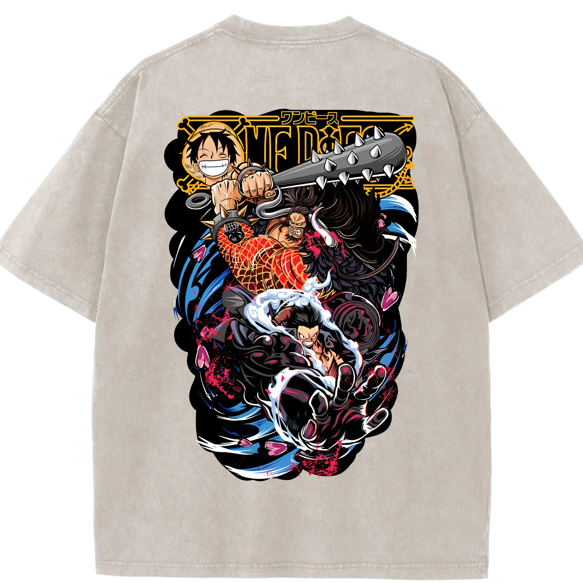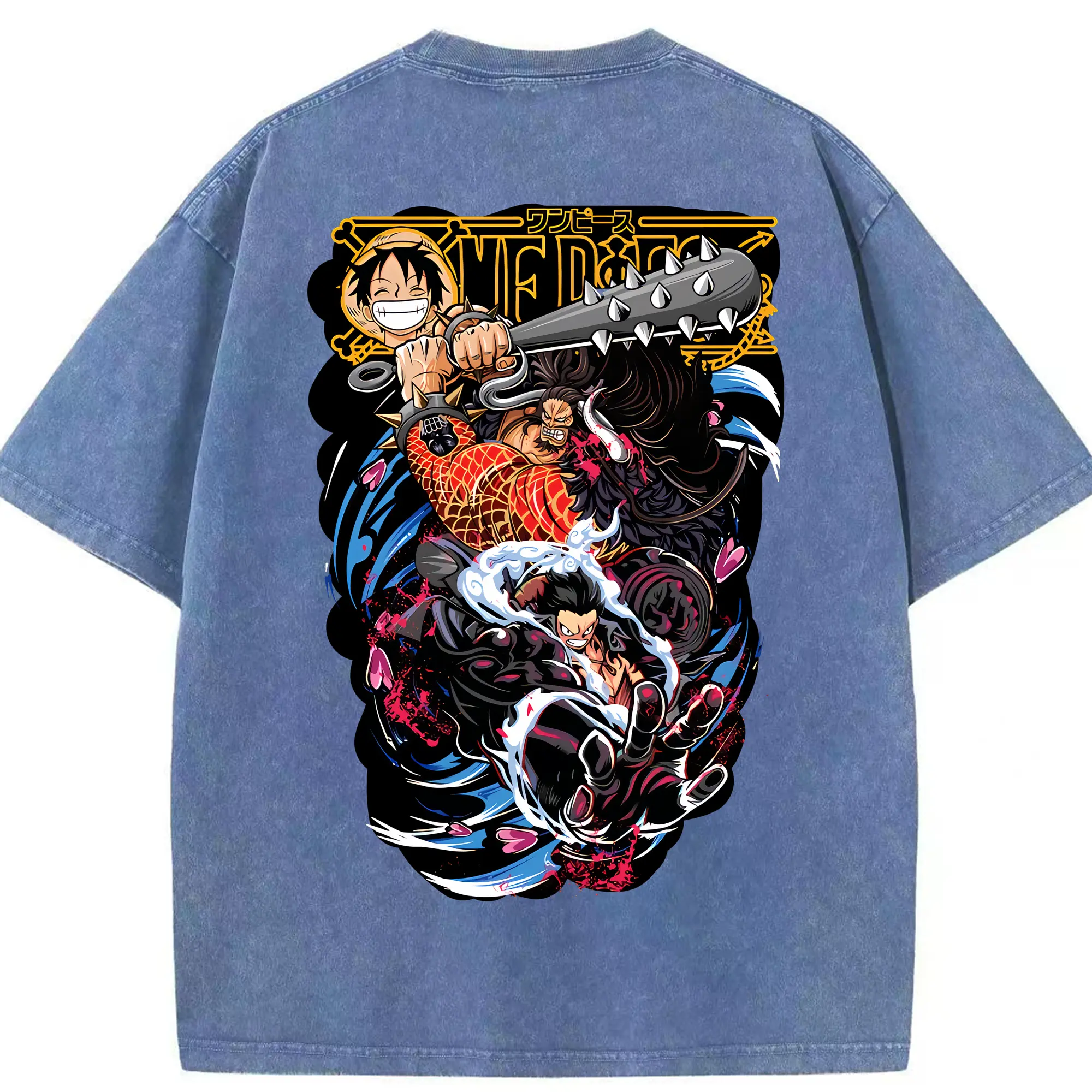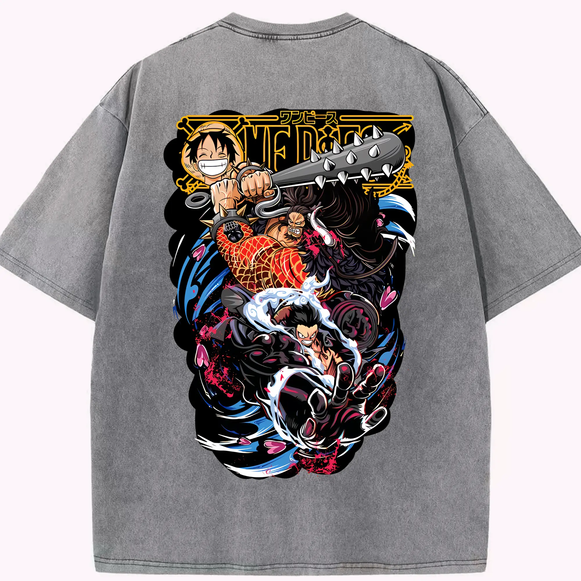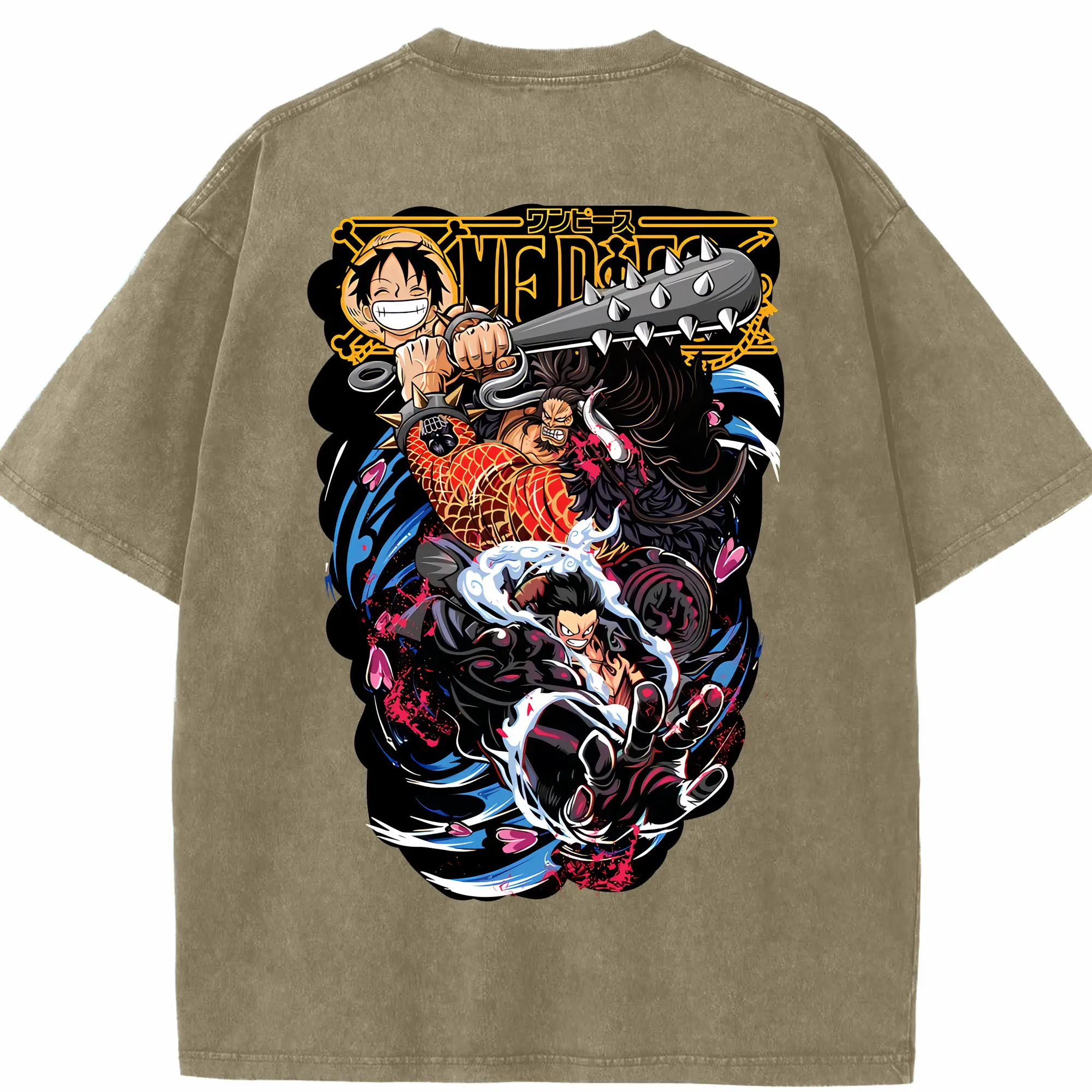 ワンピース グッズ モンキー・D・ルフィ - 綿100% ヴィンテージ風 半袖Tシャツ ・ フロントプリント ・ 柔らか肌触り ・ 通気性 快適 ・ スポーツ カジュアル 外出用