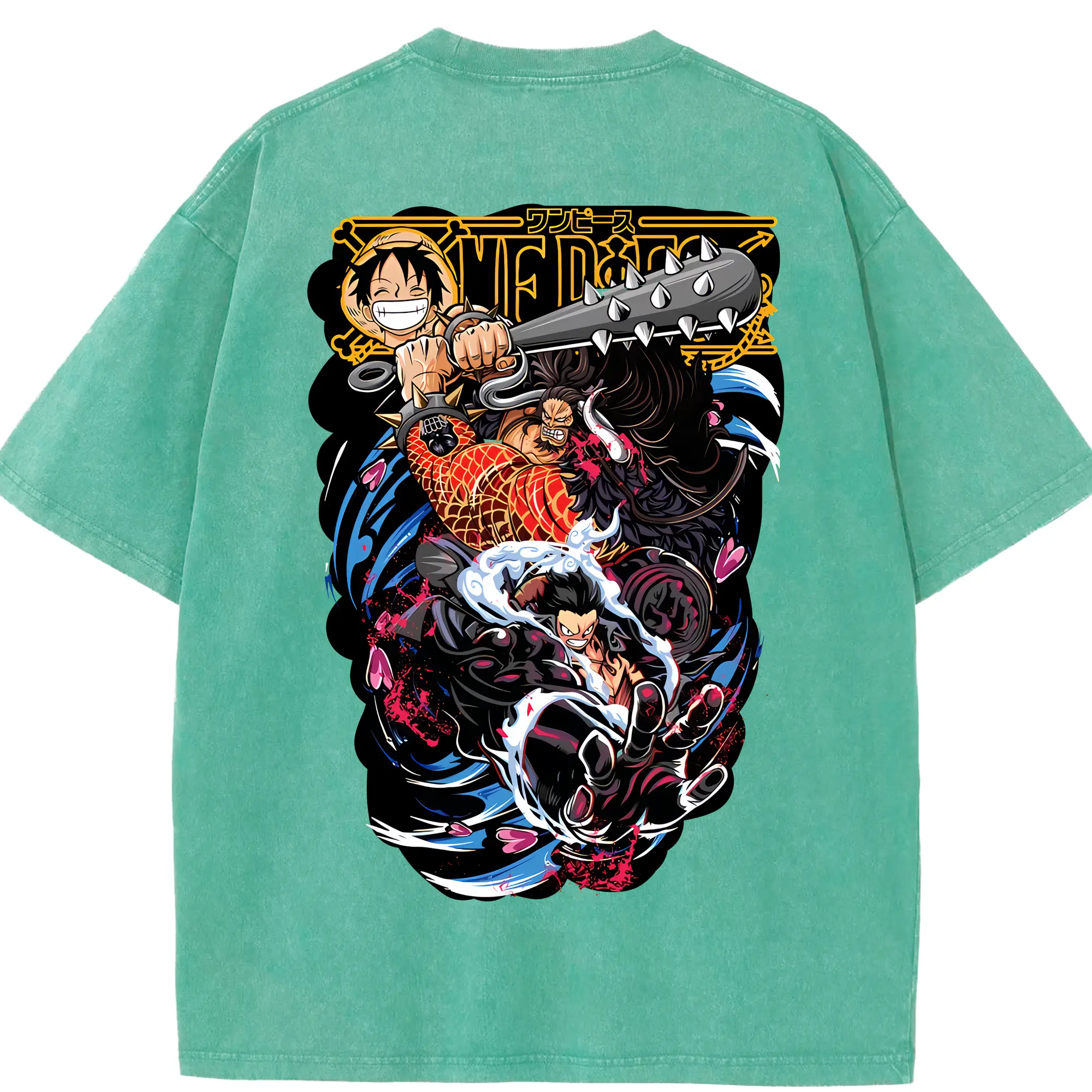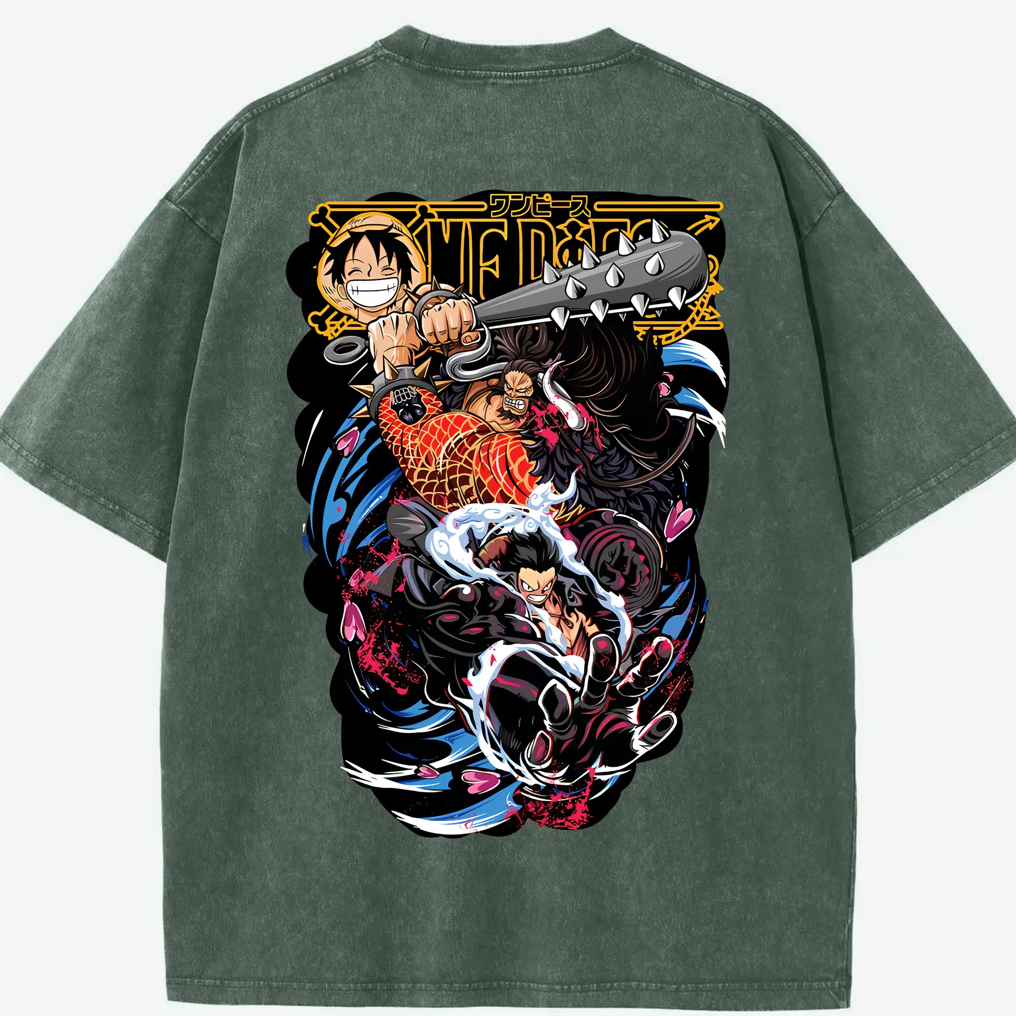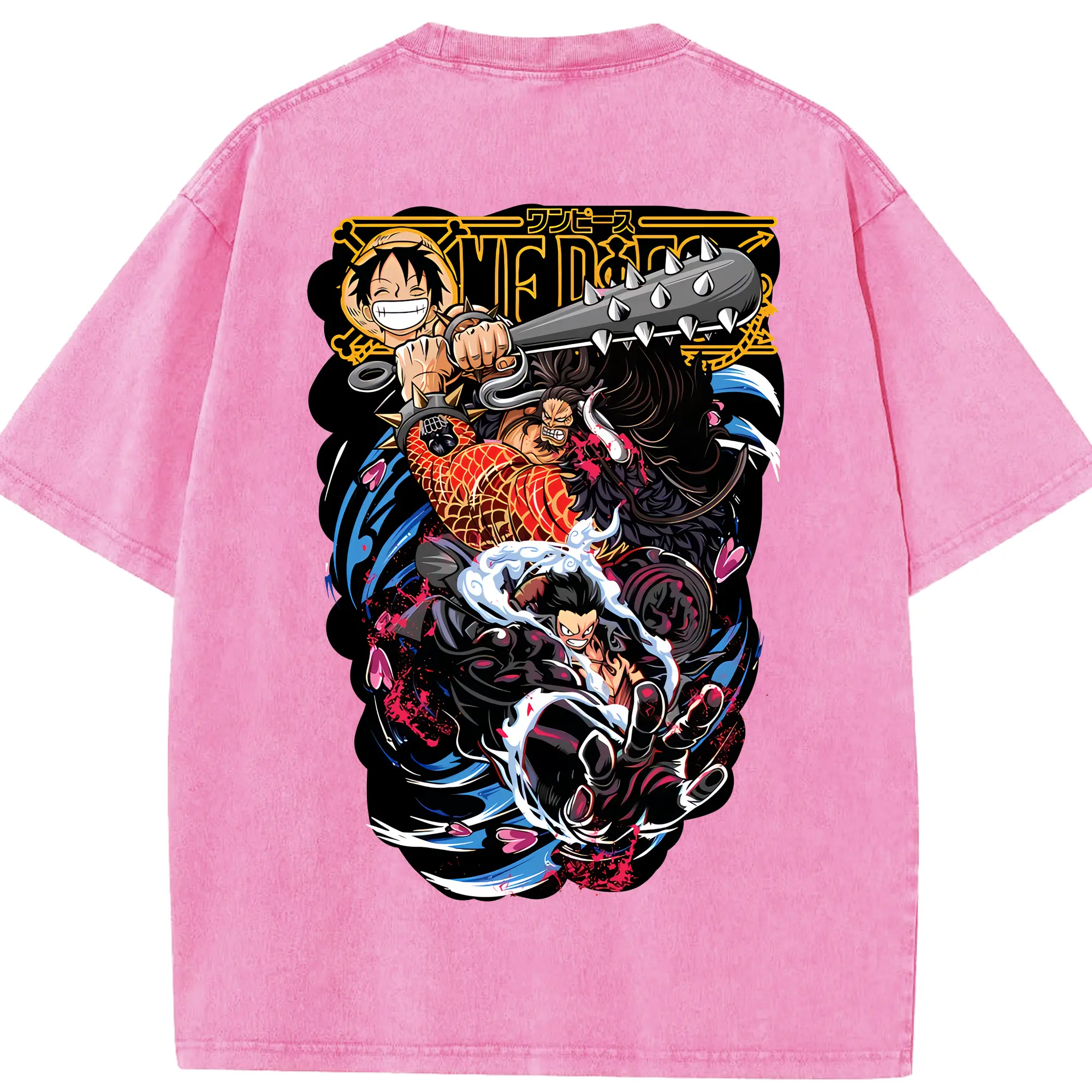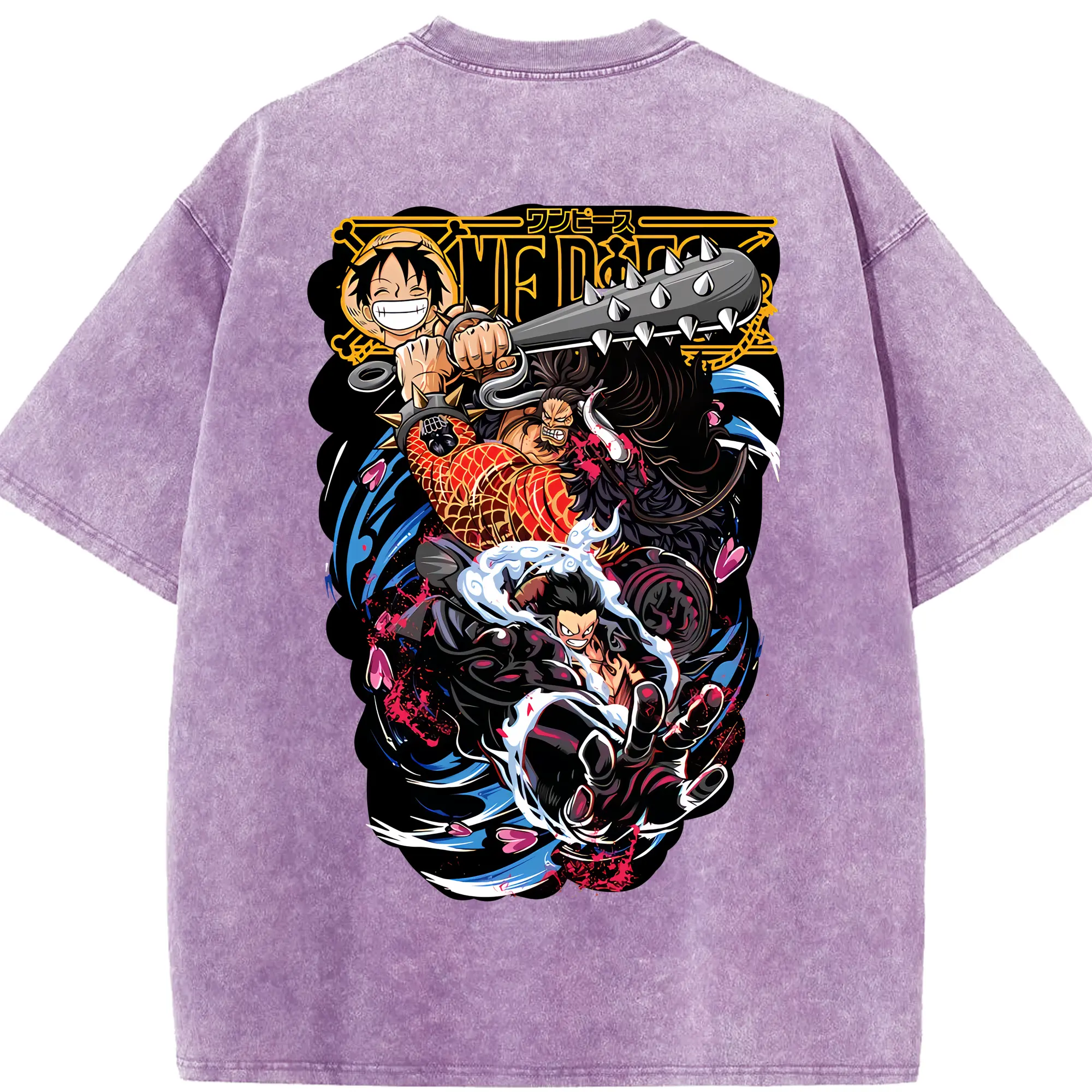 ワンピース グッズ モンキー・D・ルフィ - 綿100% ヴィンテージ風 半袖Tシャツ ・ フロントプリント ・ 柔らか肌触り ・ 通気性 快適 ・ スポーツ カジュアル 外出用