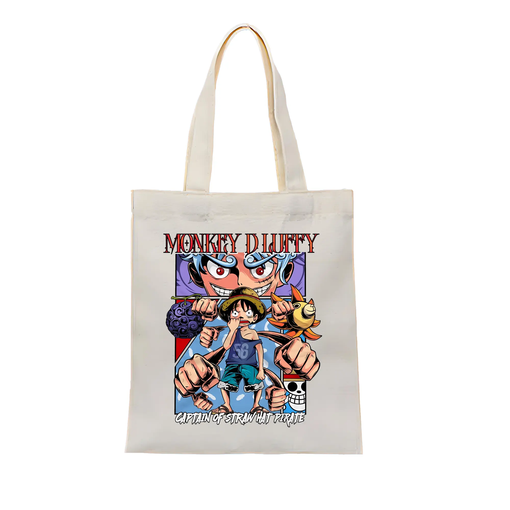 ワンピース グッズ モンキー・D・ルフィ - 縦型キャンバス手提げバッグ(トートバッグ) ・ キャンバス素材 ・ ショッピング用 ・ 軽量 丈夫 お手入れ簡単