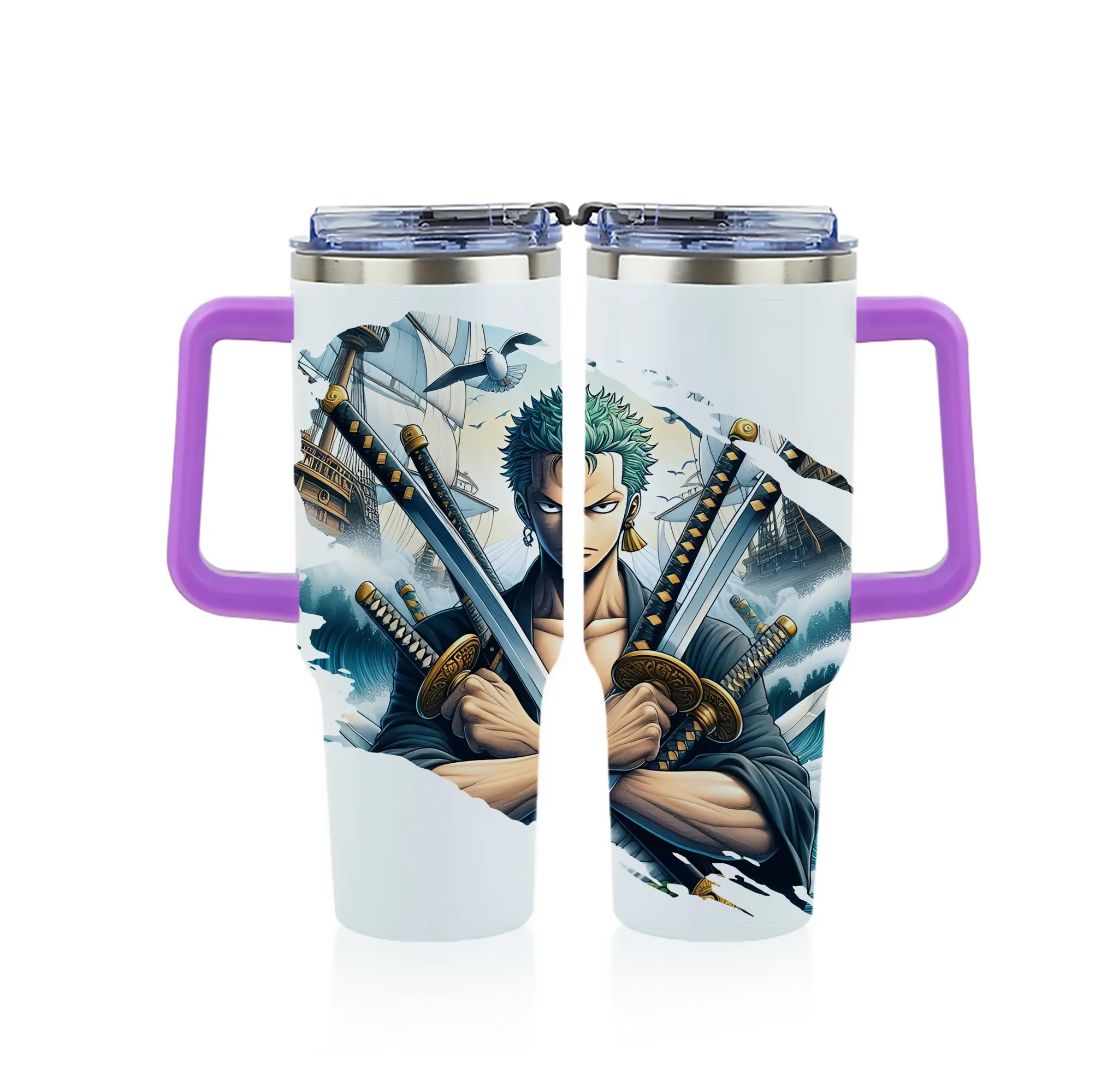 ワンピース グッズ ロロノア・ゾロ - 1200mL フルプリント車用タンブラー ・ 304ステンレス 内側 ・ 201ステンレス 外側 ・ 保温 保冷 ・ 通勤 ドライブ アウトドア用