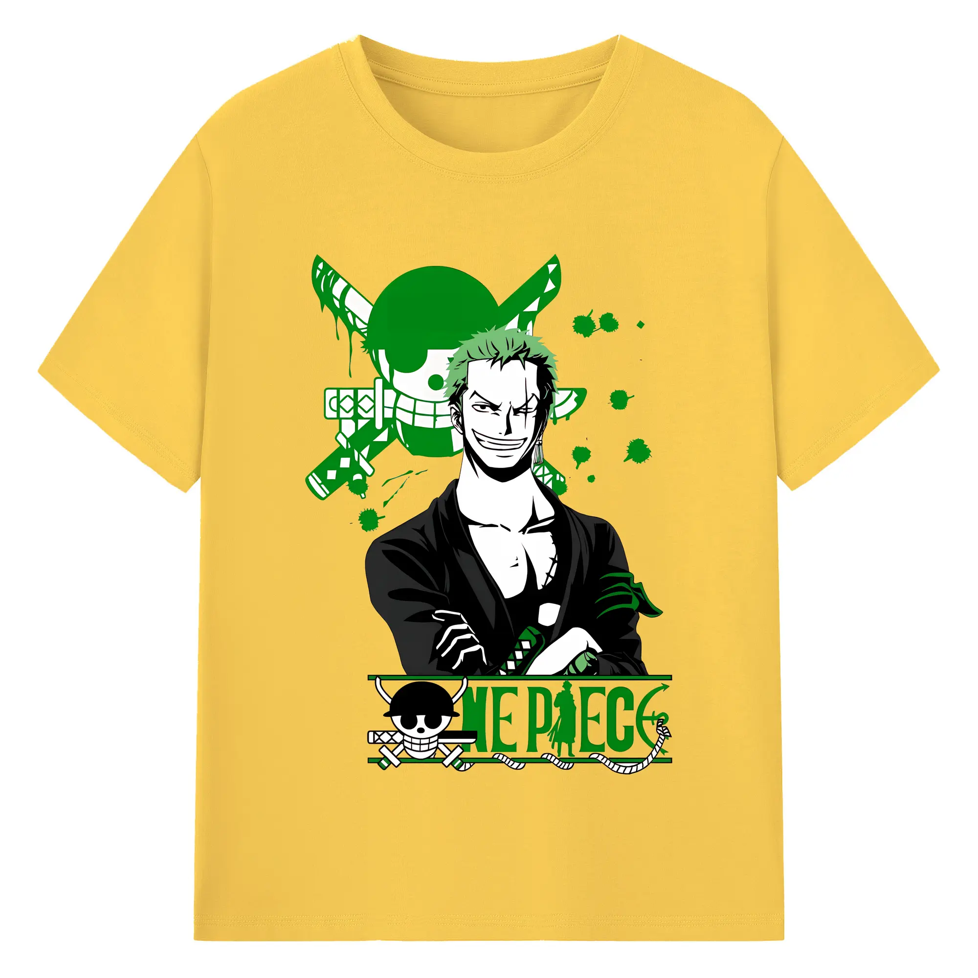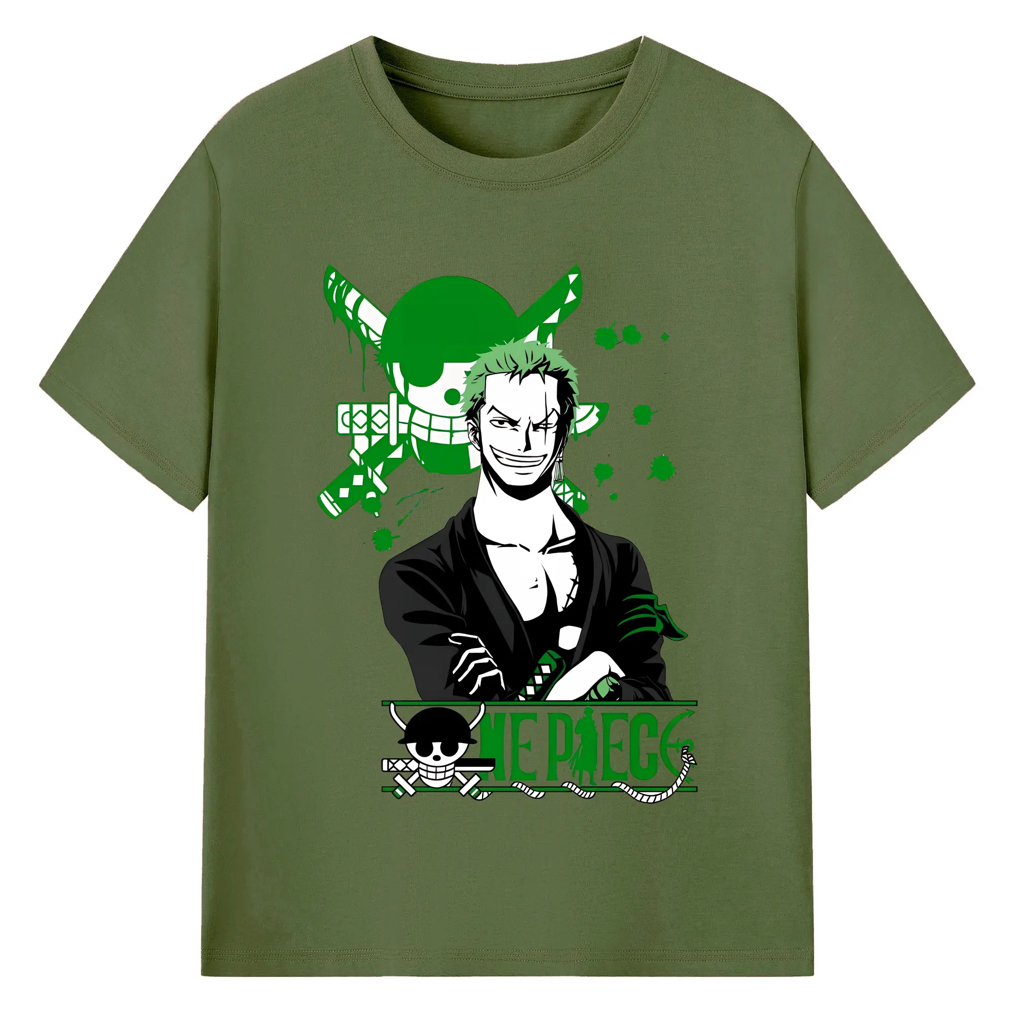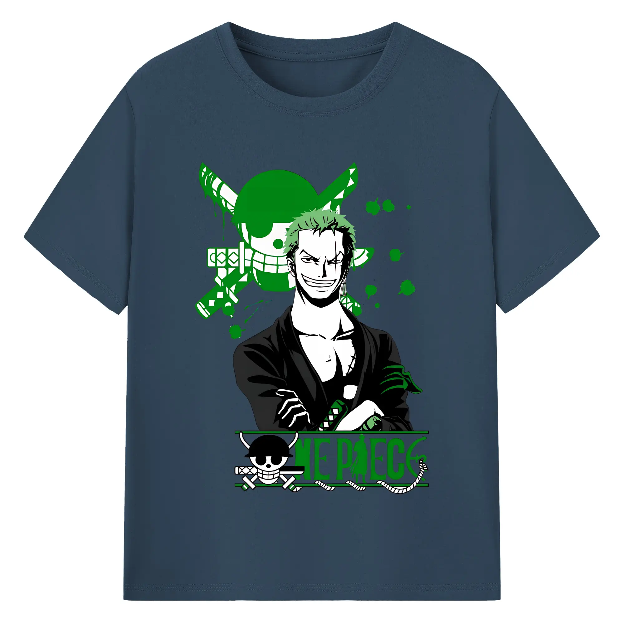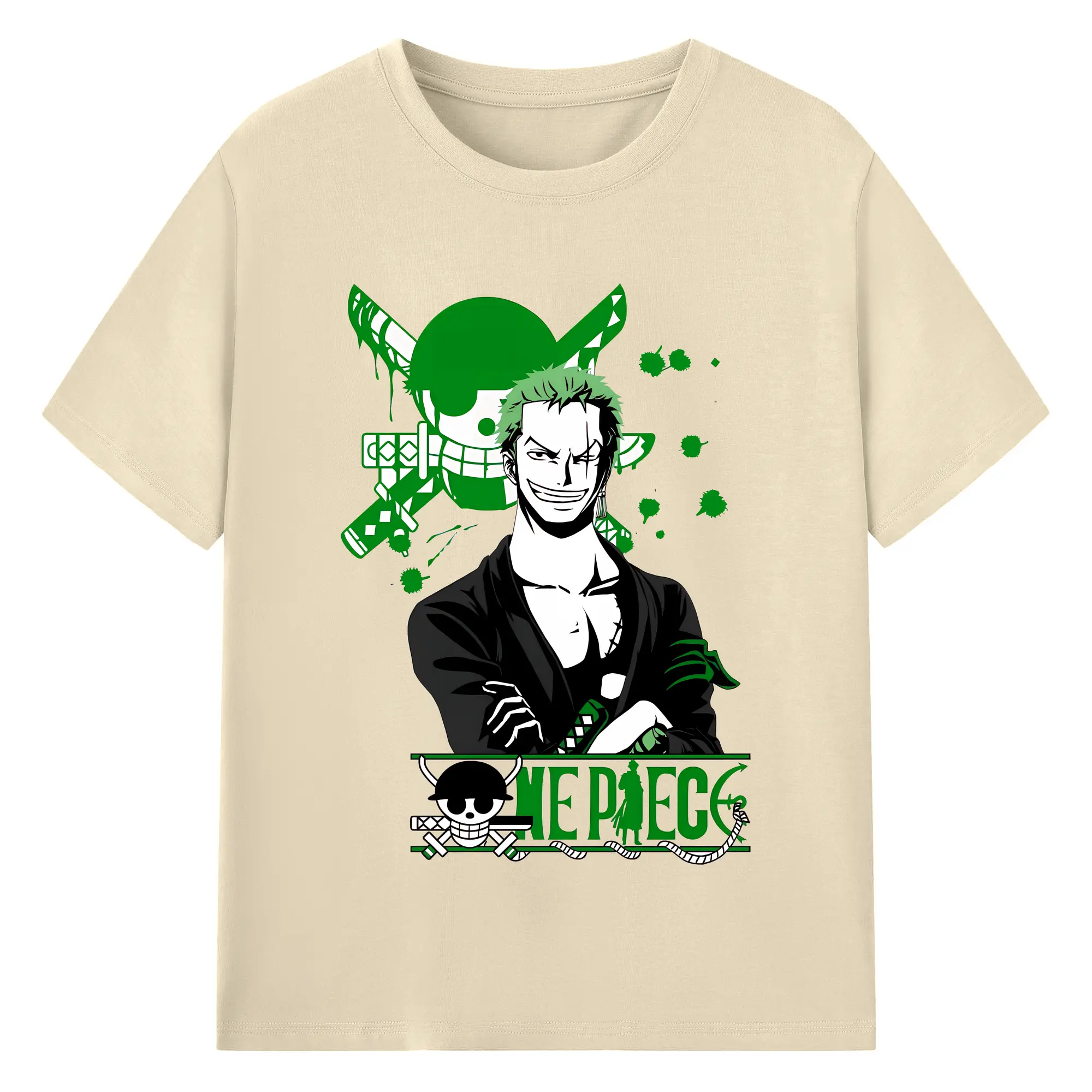 ワンピース グッズ ロロノア・ゾロ - 綿100% ヴィンテージ風 半袖Tシャツ ・ フロントプリント ・ 柔らか肌触り ・ 通気性 快適 ・ スポーツ カジュアル 外出用