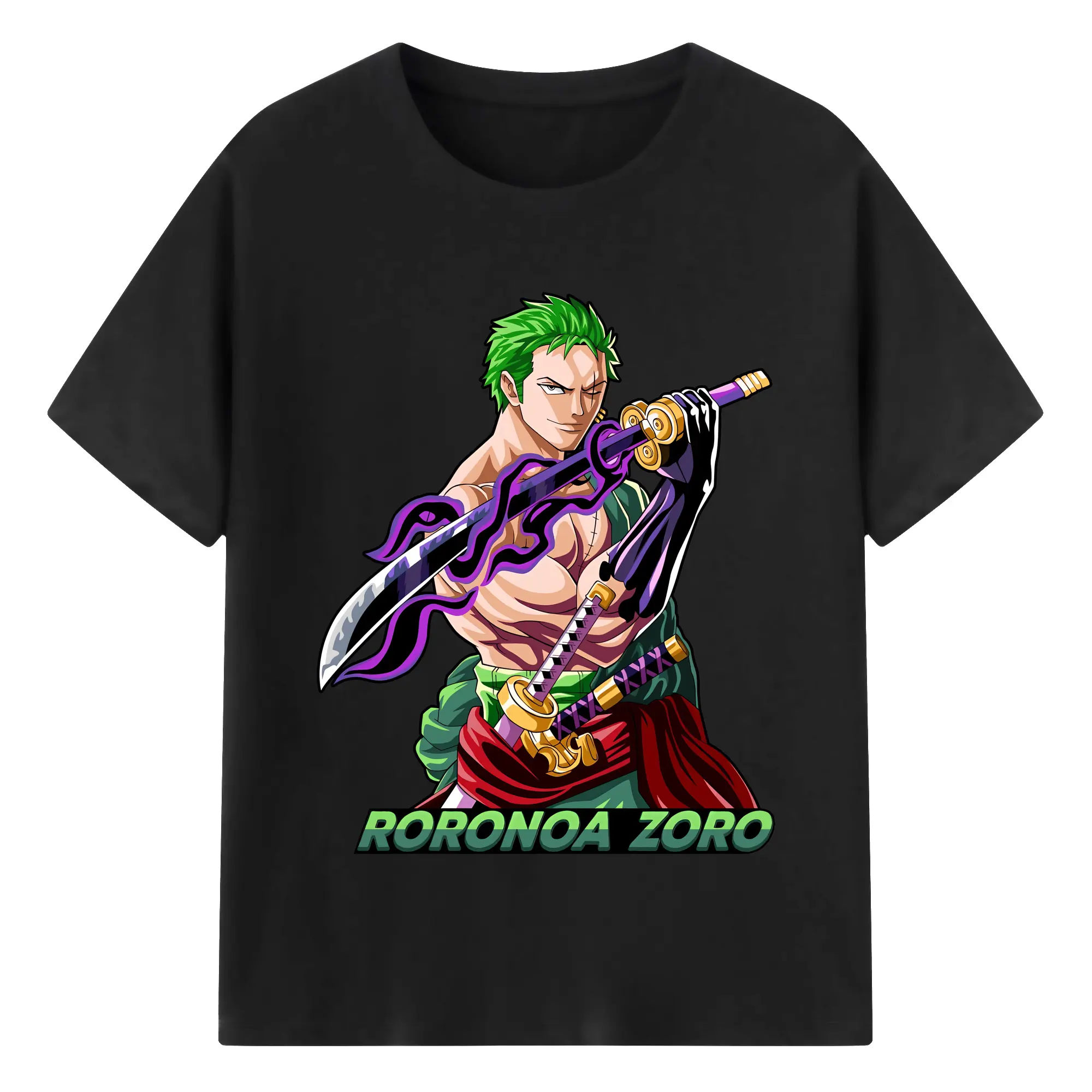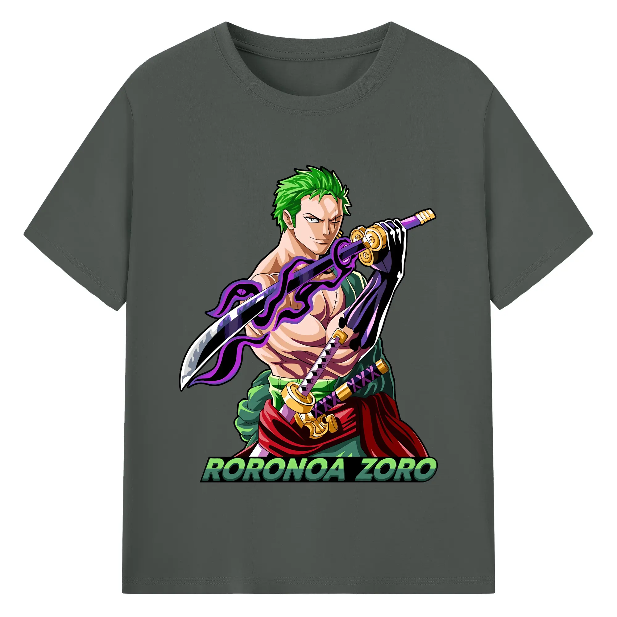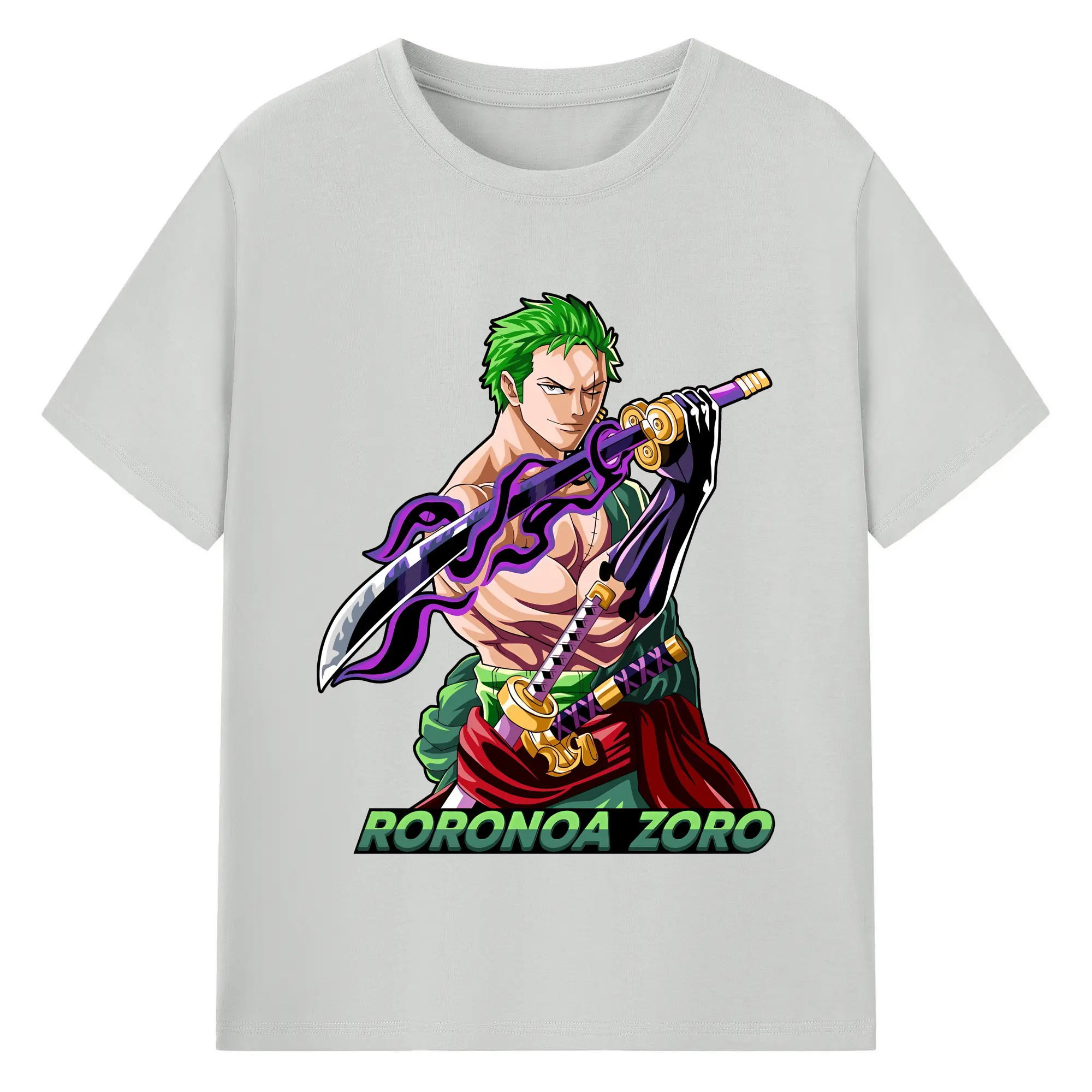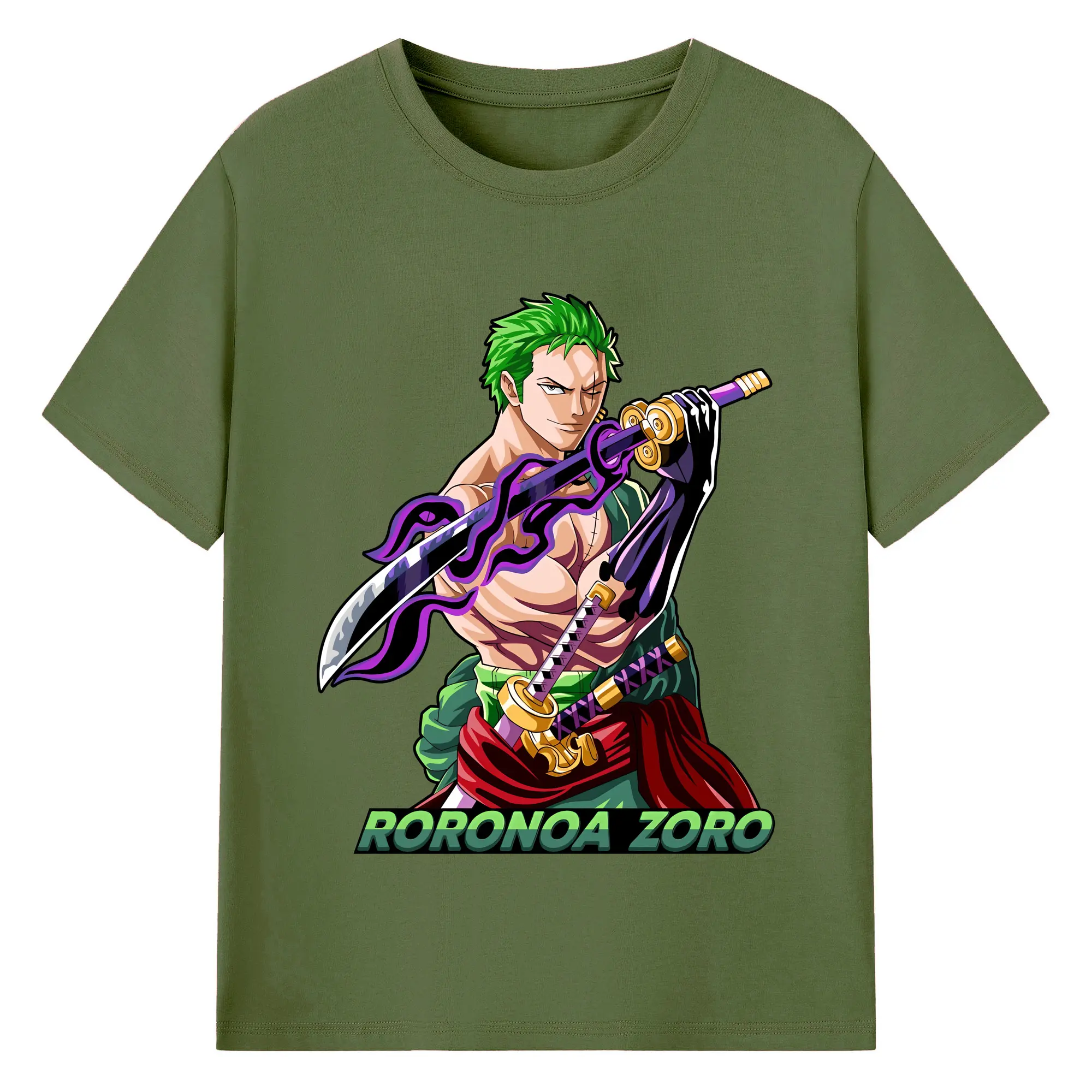 ワンピース グッズ ロロノア・ゾロ - 綿100% 半袖Tシャツ ・ バックプリント ・ 快適 通気性 ・ 日常使い 散歩 スポーツ用