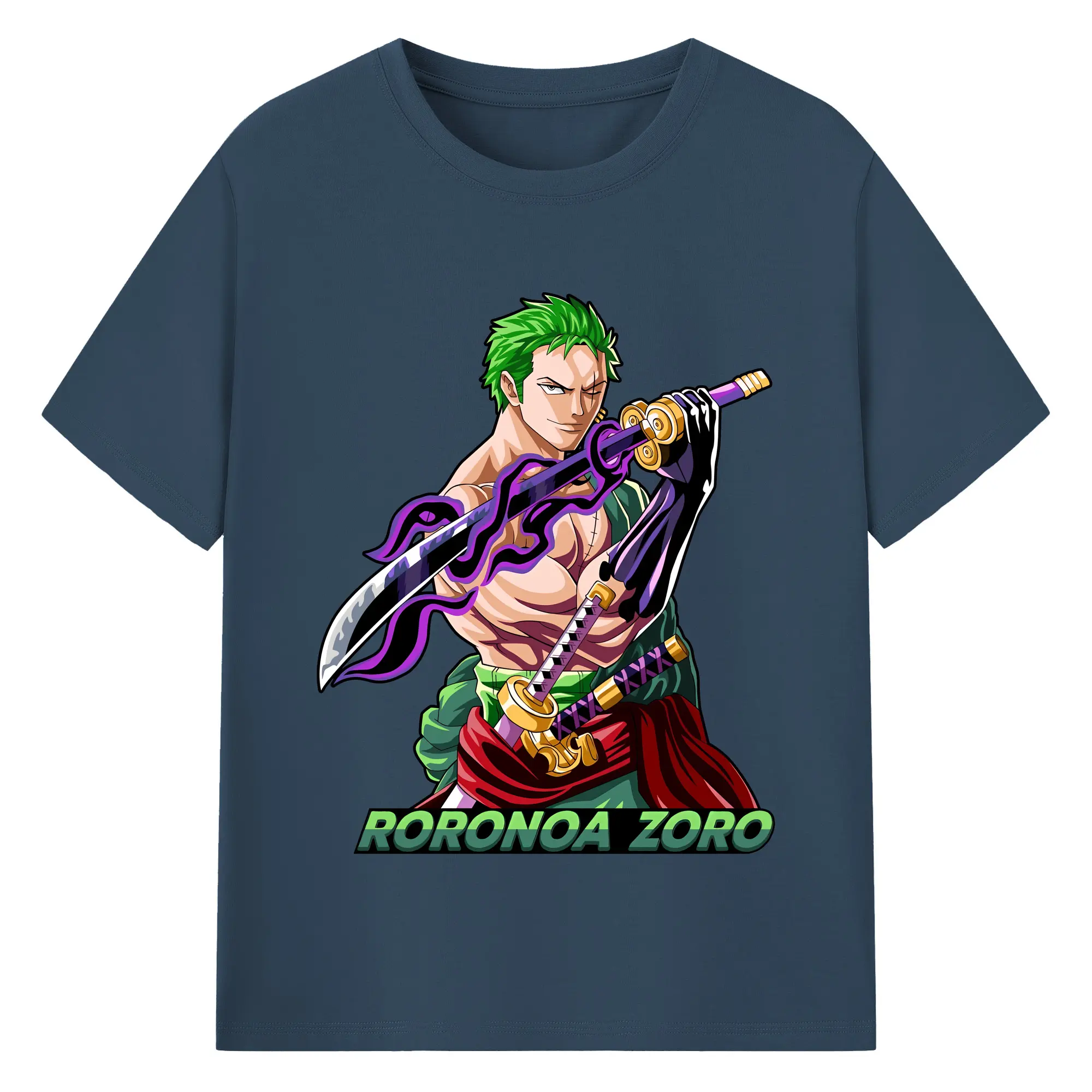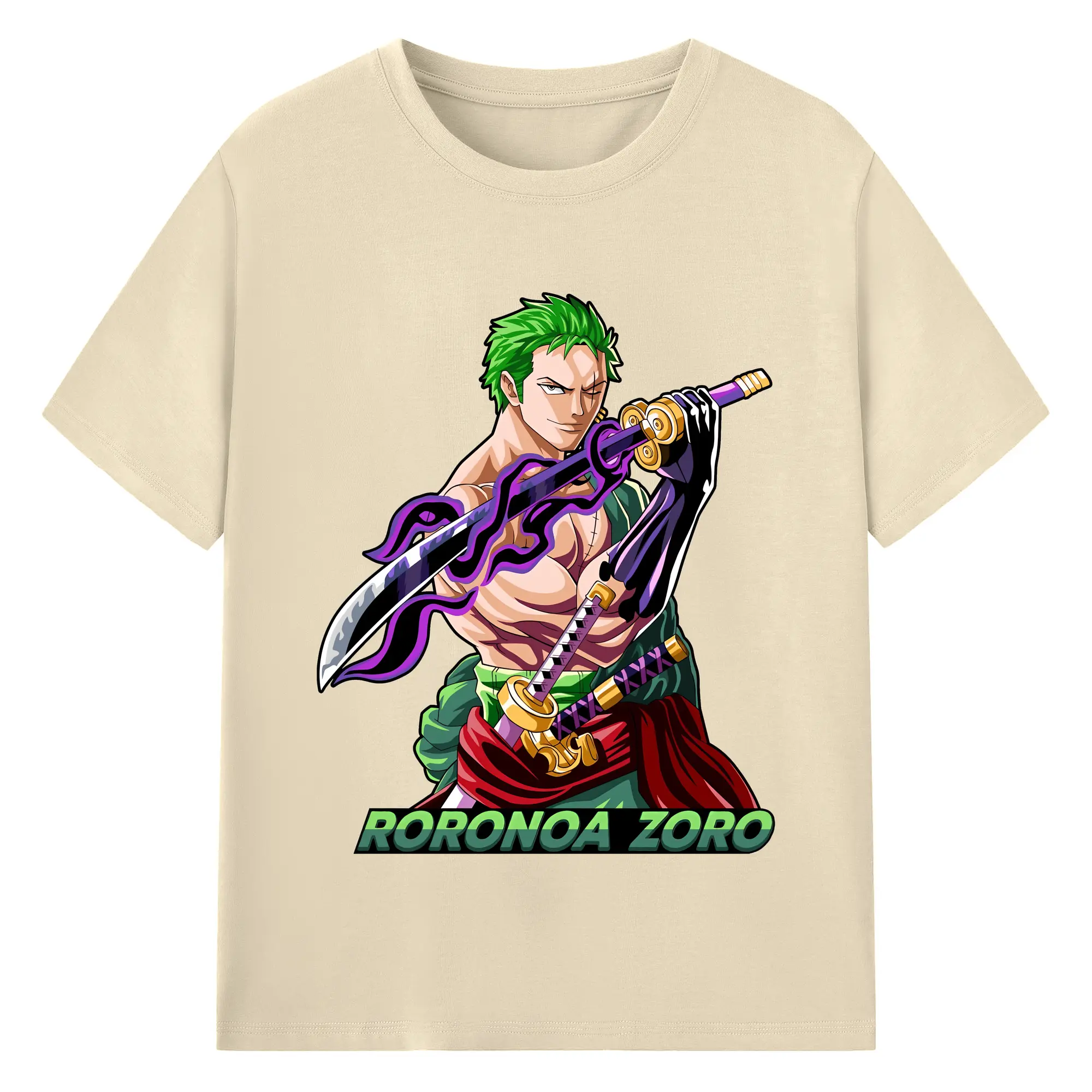 ワンピース グッズ ロロノア・ゾロ - 綿100% ヴィンテージ風 半袖Tシャツ ・ フロントプリント ・ 柔らか肌触り ・ 通気性 快適 ・ スポーツ カジュアル 外出用