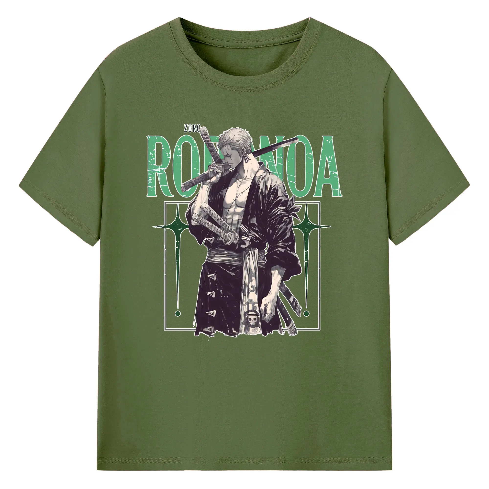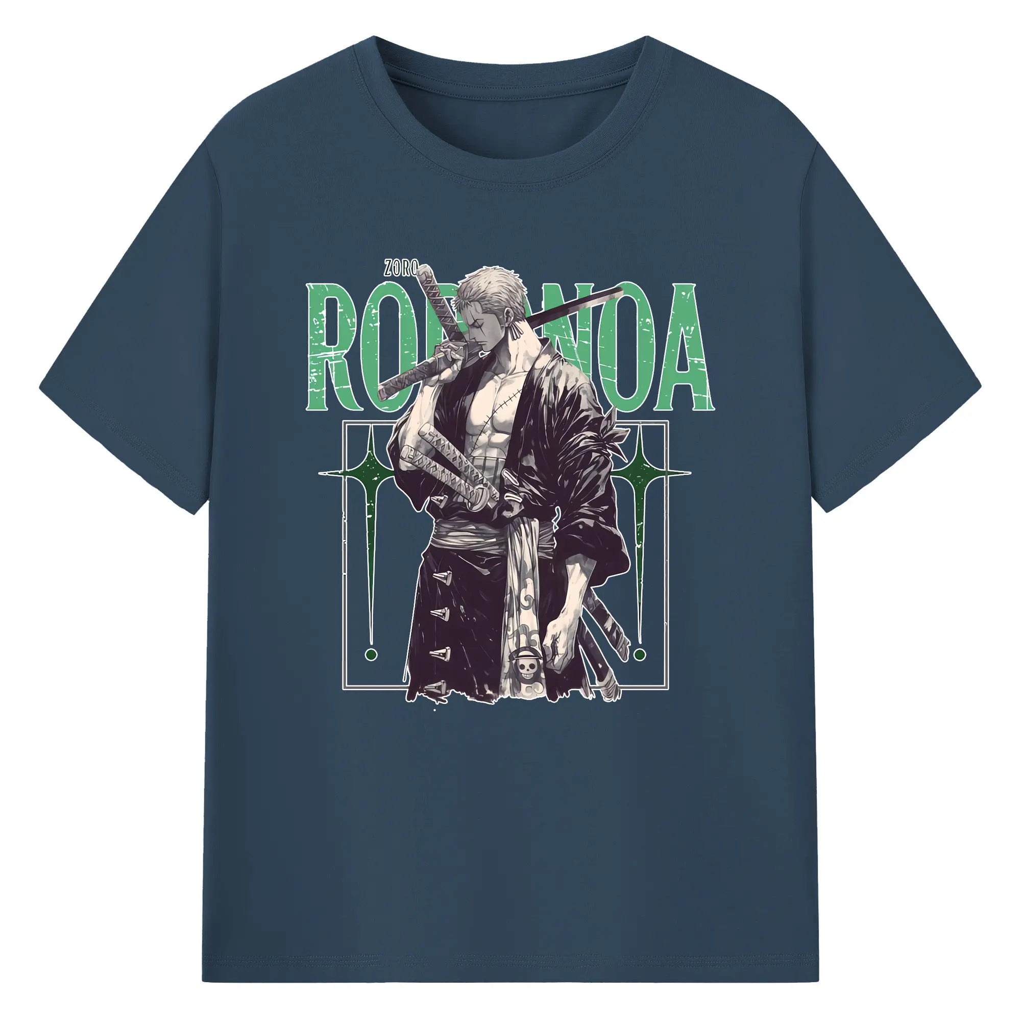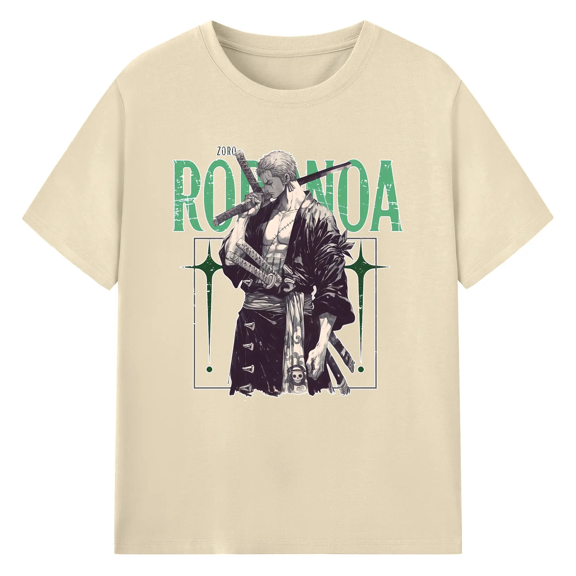 ワンピース グッズ ロロノア・ゾロ - 綿100% ヴィンテージ風 半袖Tシャツ ・ フロントプリント ・ 柔らか肌触り ・ 通気性 快適 ・ スポーツ カジュアル 外出用