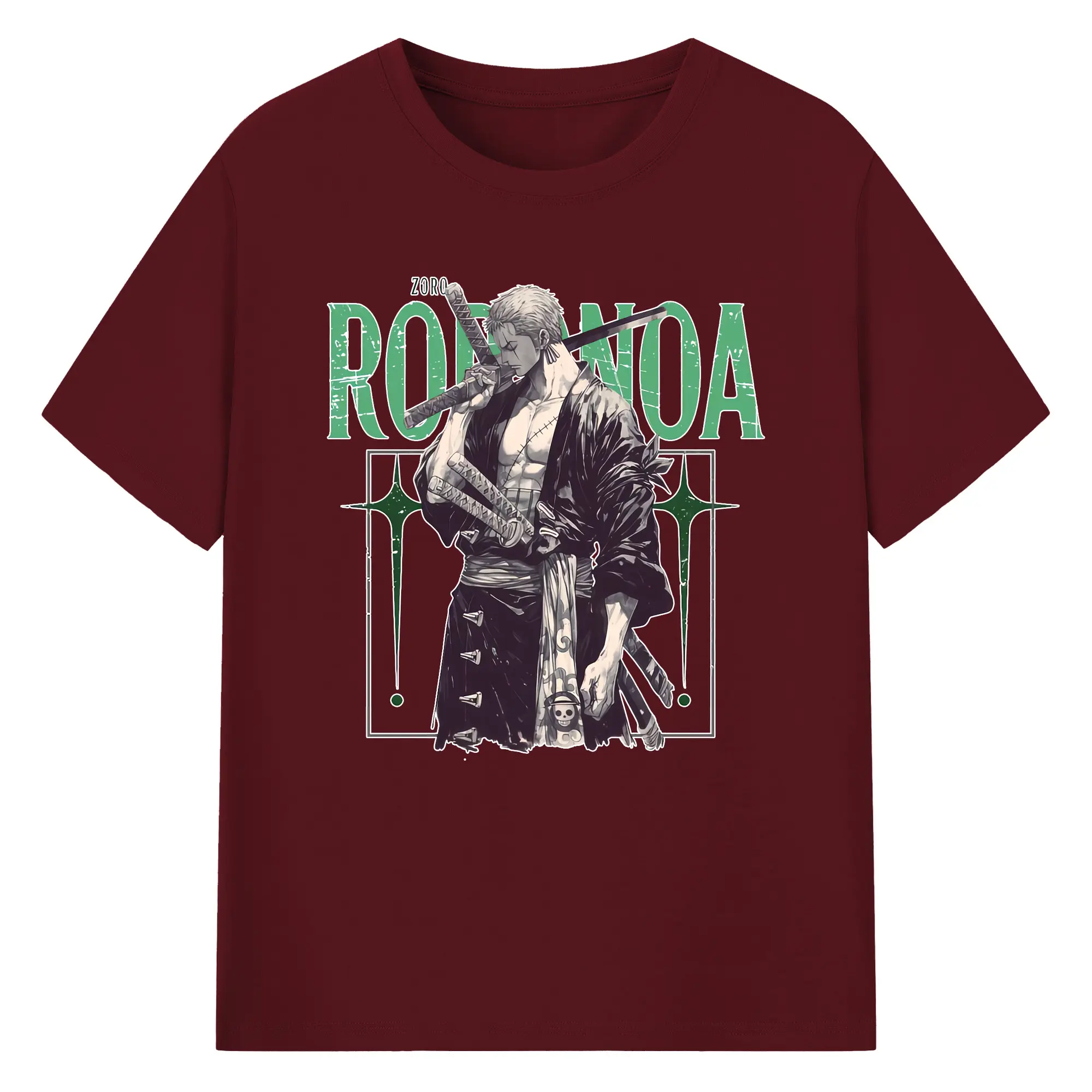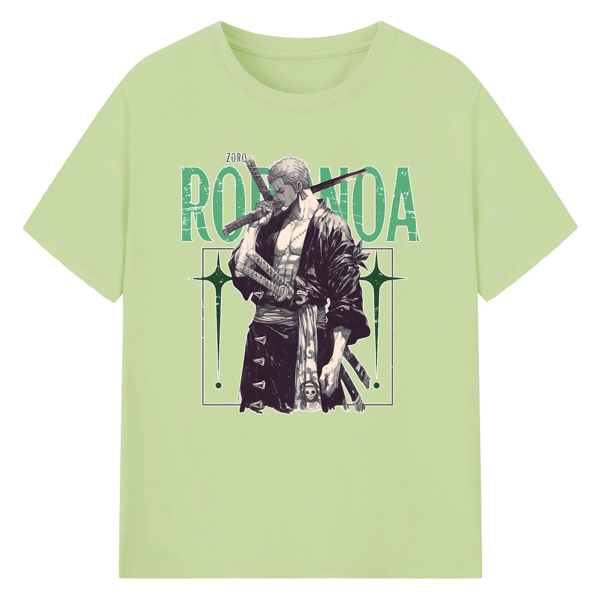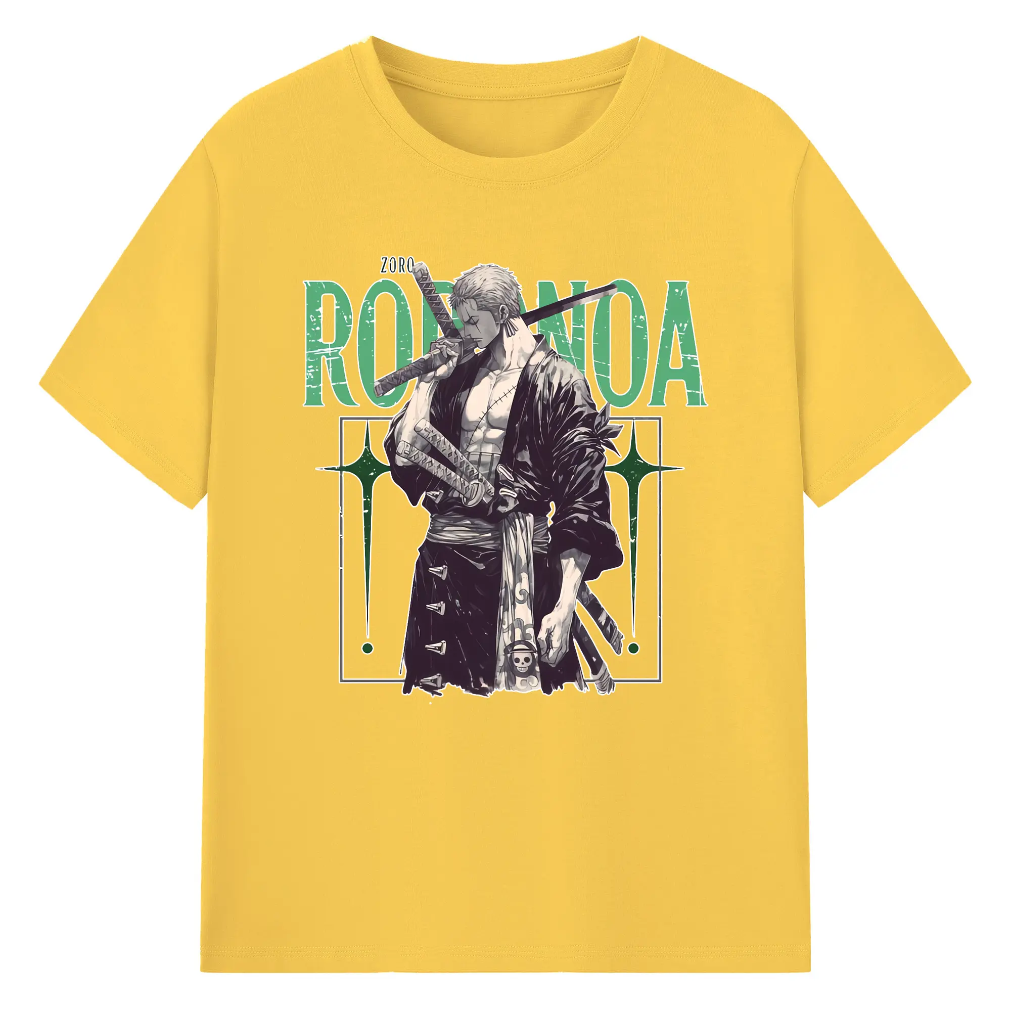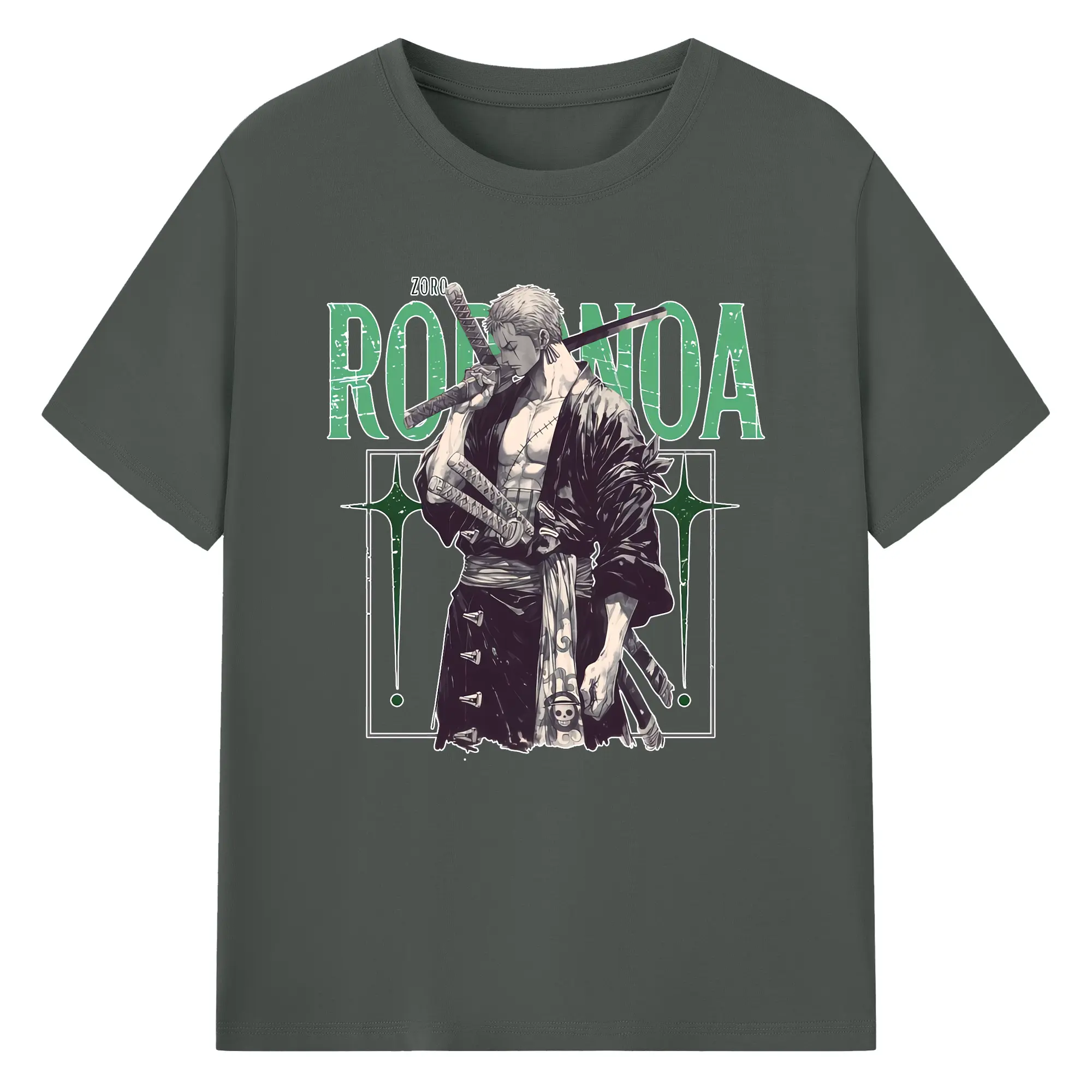 ワンピース グッズ ロロノア・ゾロ - 綿100% ヴィンテージ風 半袖Tシャツ ・ フロントプリント ・ 柔らか肌触り ・ 通気性 快適 ・ スポーツ カジュアル 外出用