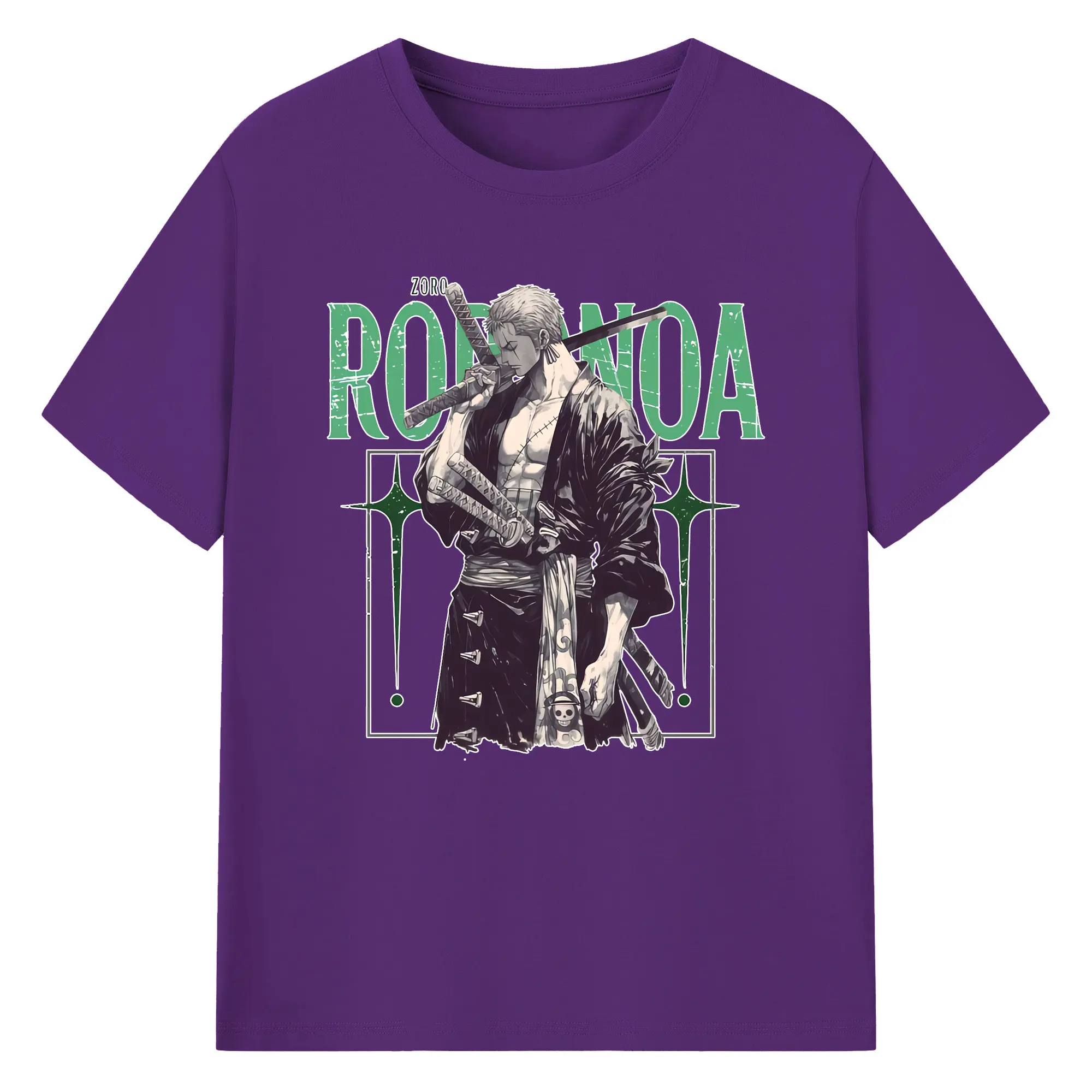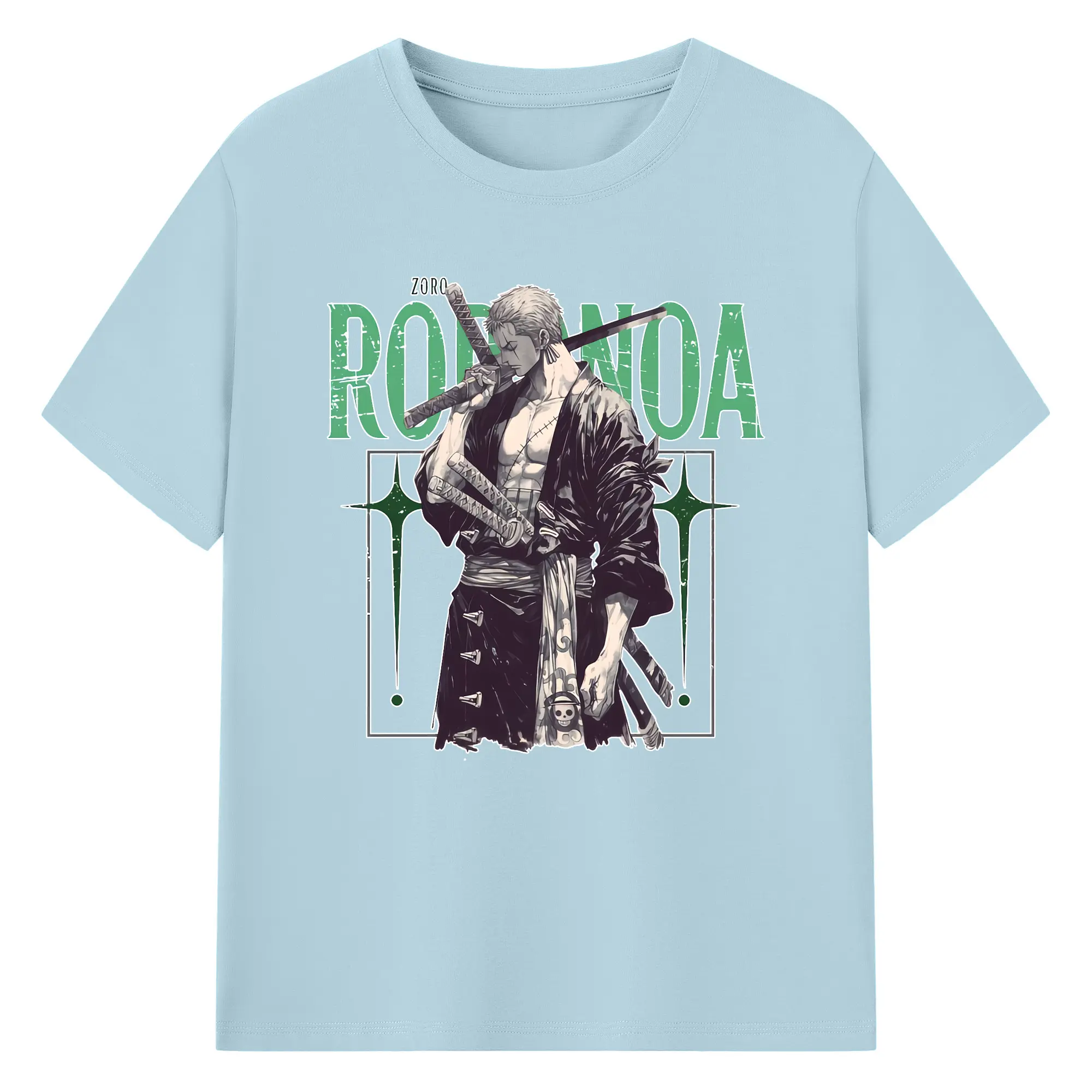 ワンピース グッズ ロロノア・ゾロ - 綿100% 半袖Tシャツ ・ バックプリント ・ 快適 通気性 ・ 日常使い 散歩 スポーツ用