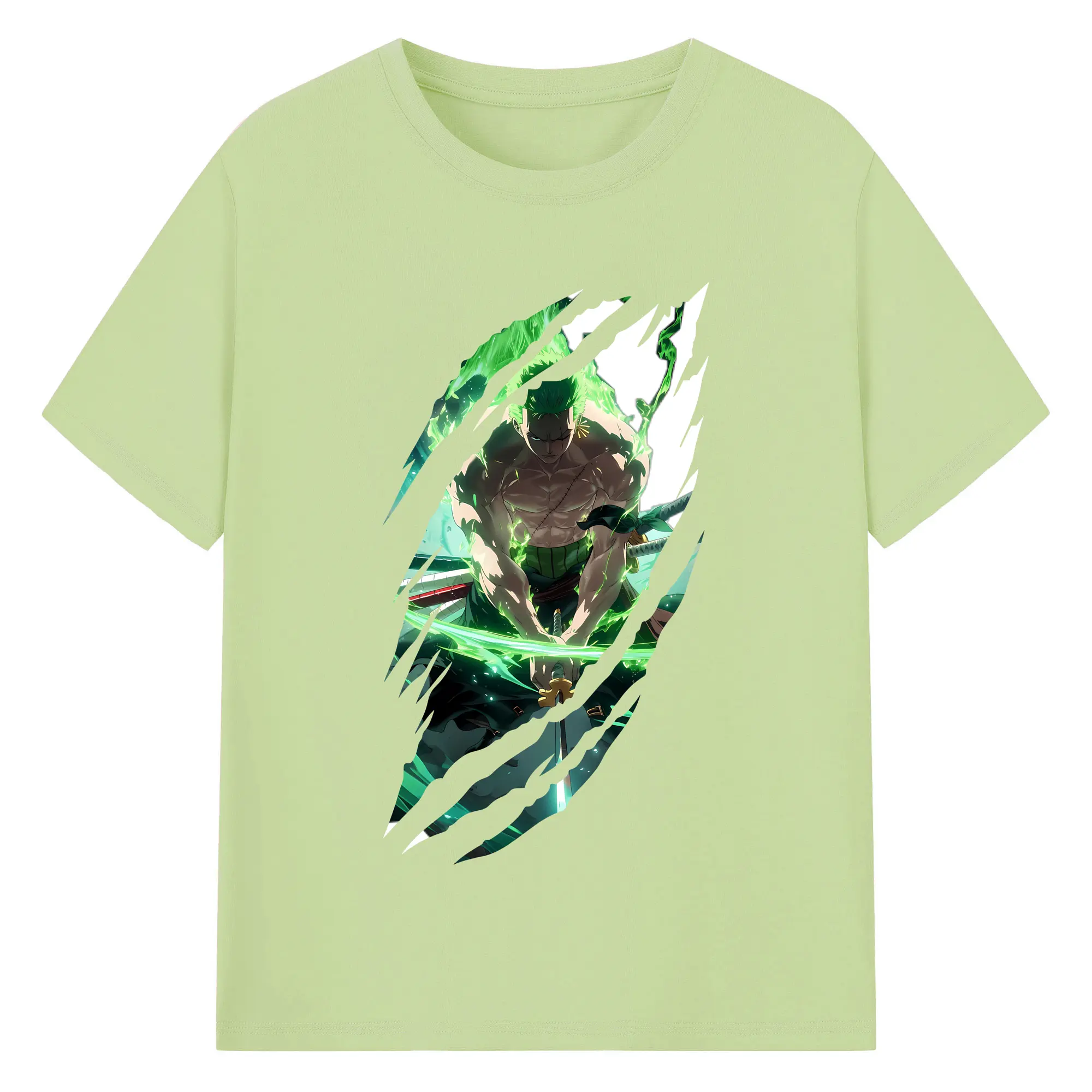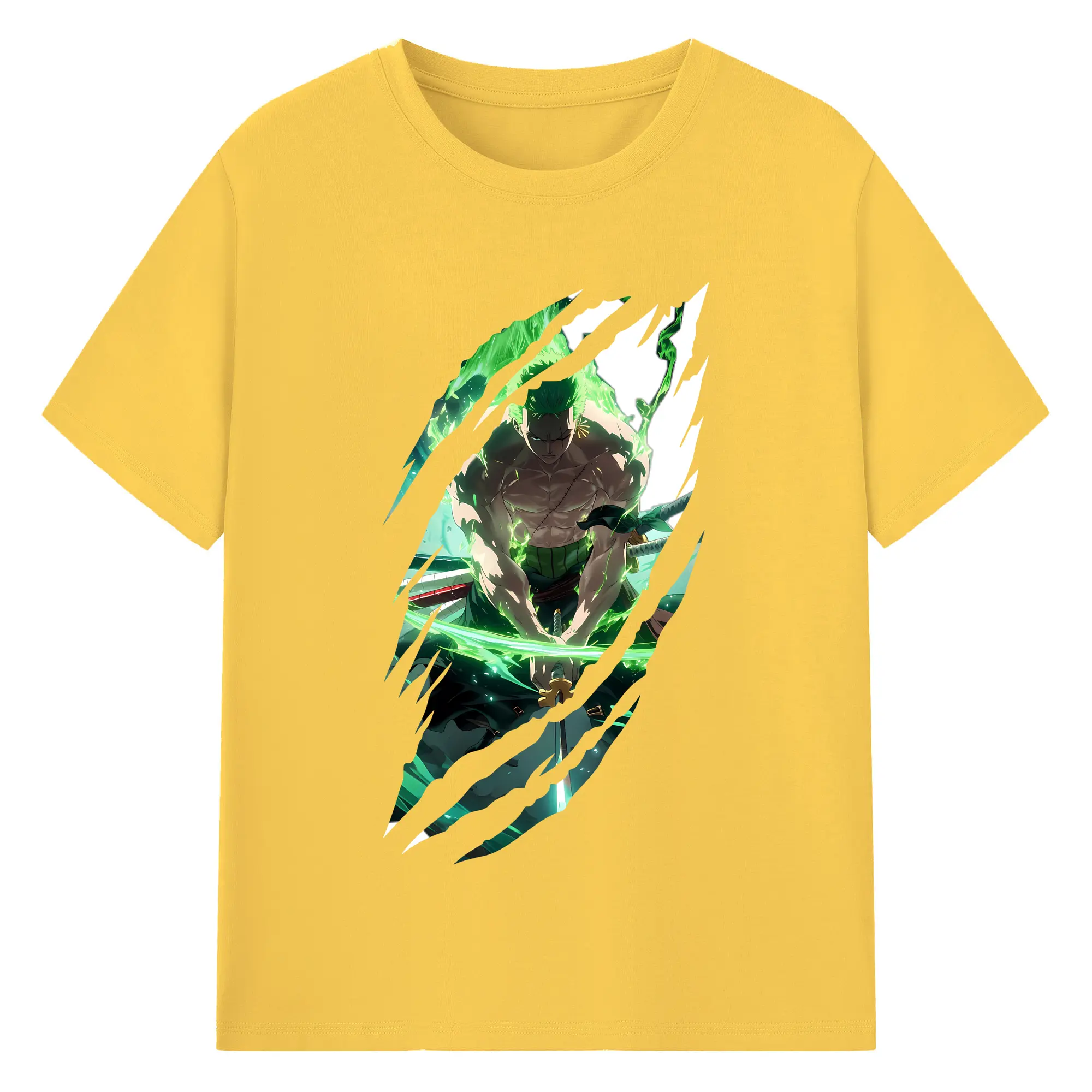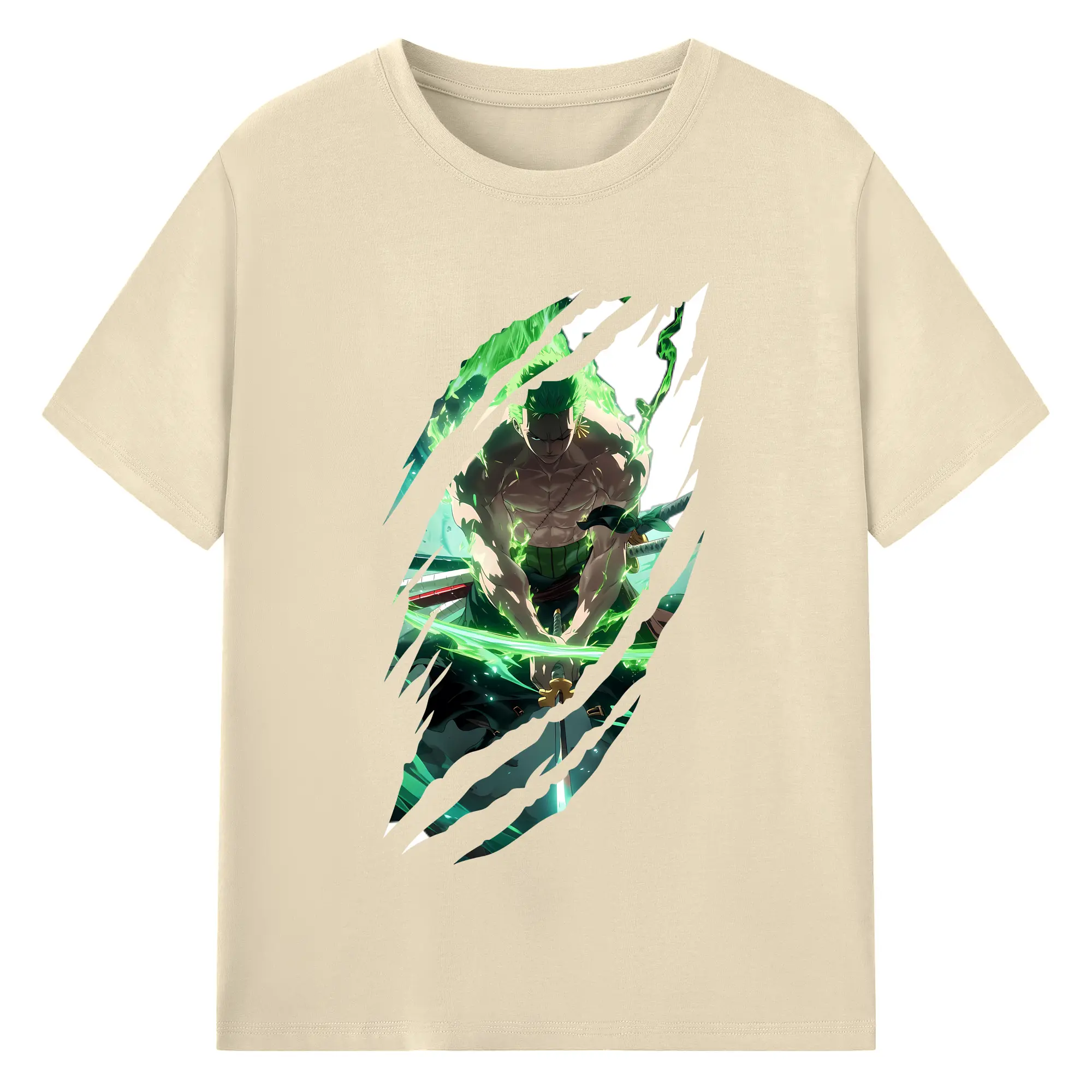 ワンピース グッズ ロロノア・ゾロ - 綿100% ヴィンテージ風 半袖Tシャツ ・ フロントプリント ・ 柔らか肌触り ・ 通気性 快適 ・ スポーツ カジュアル 外出用