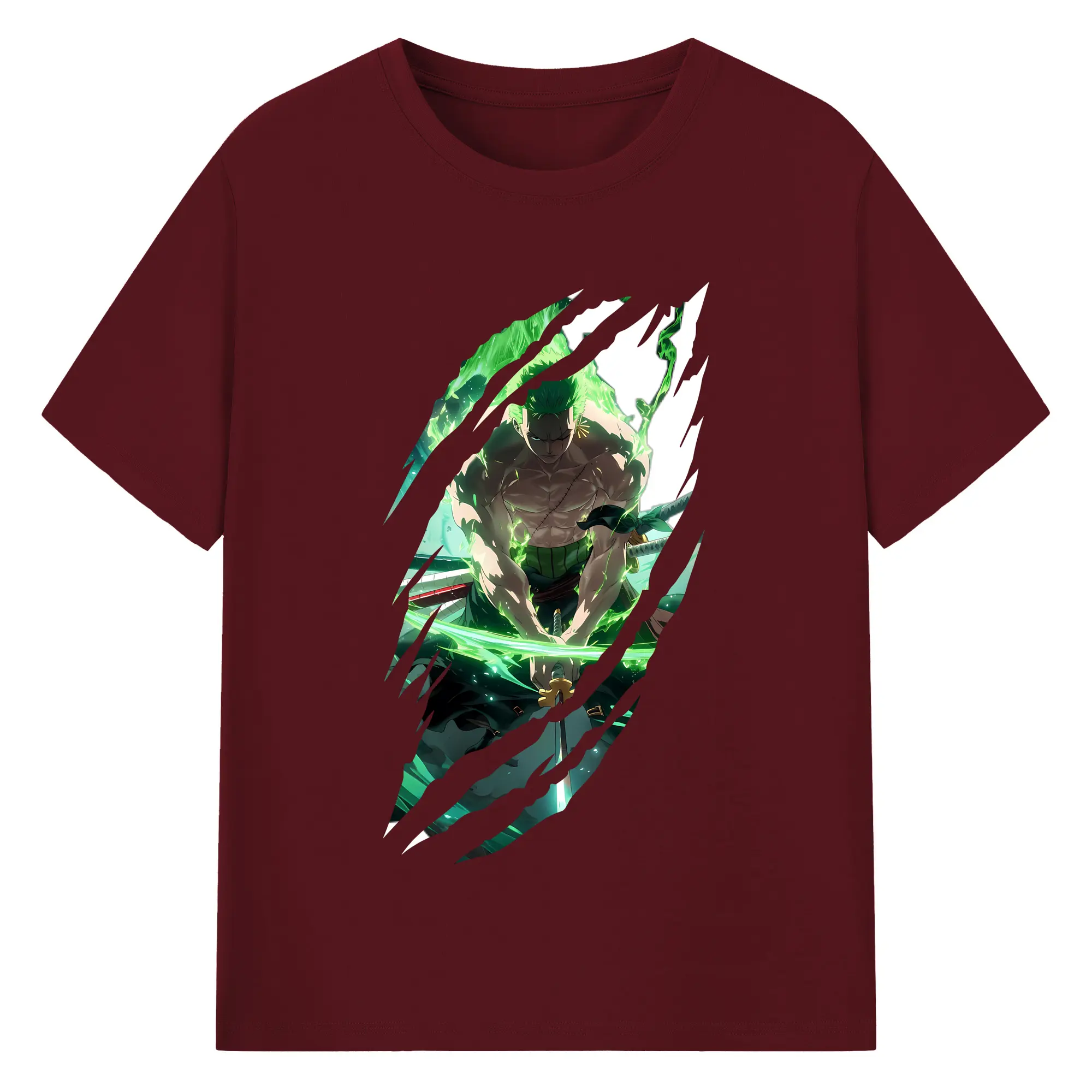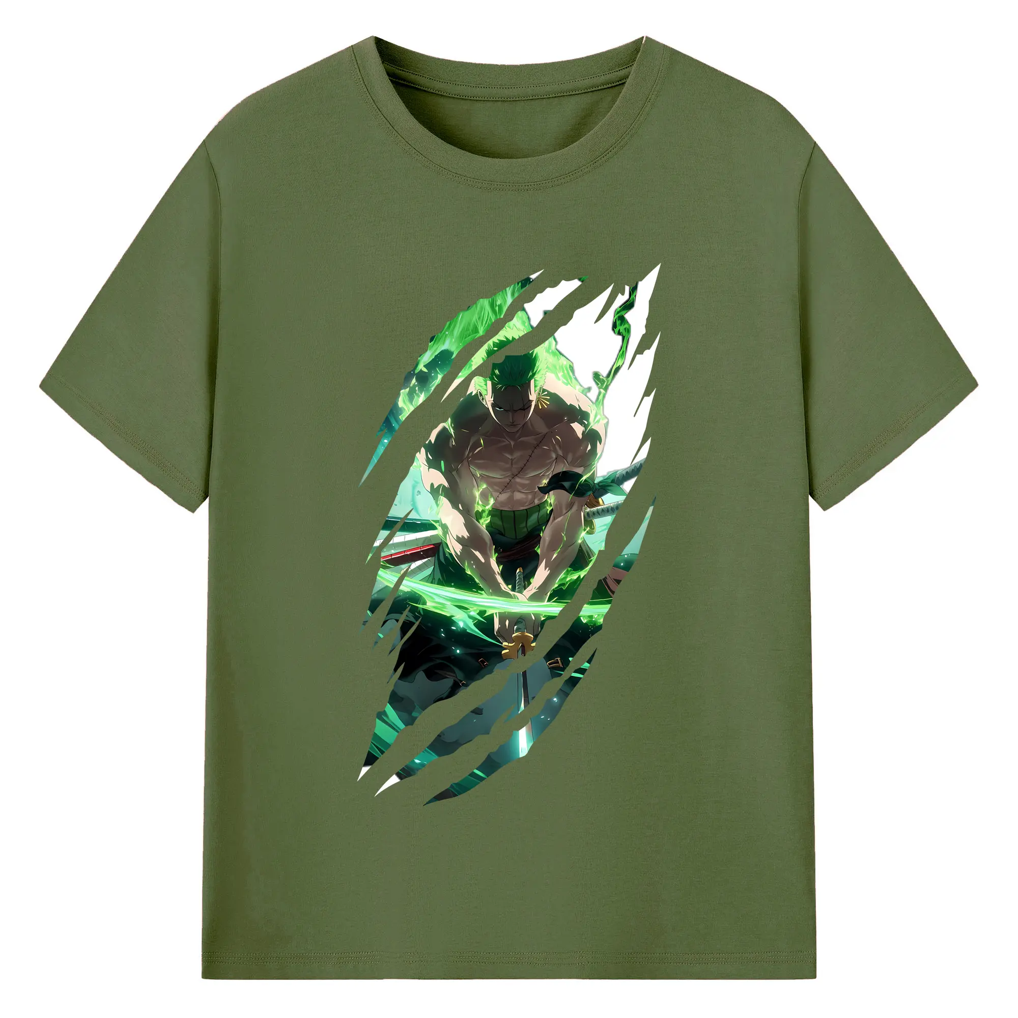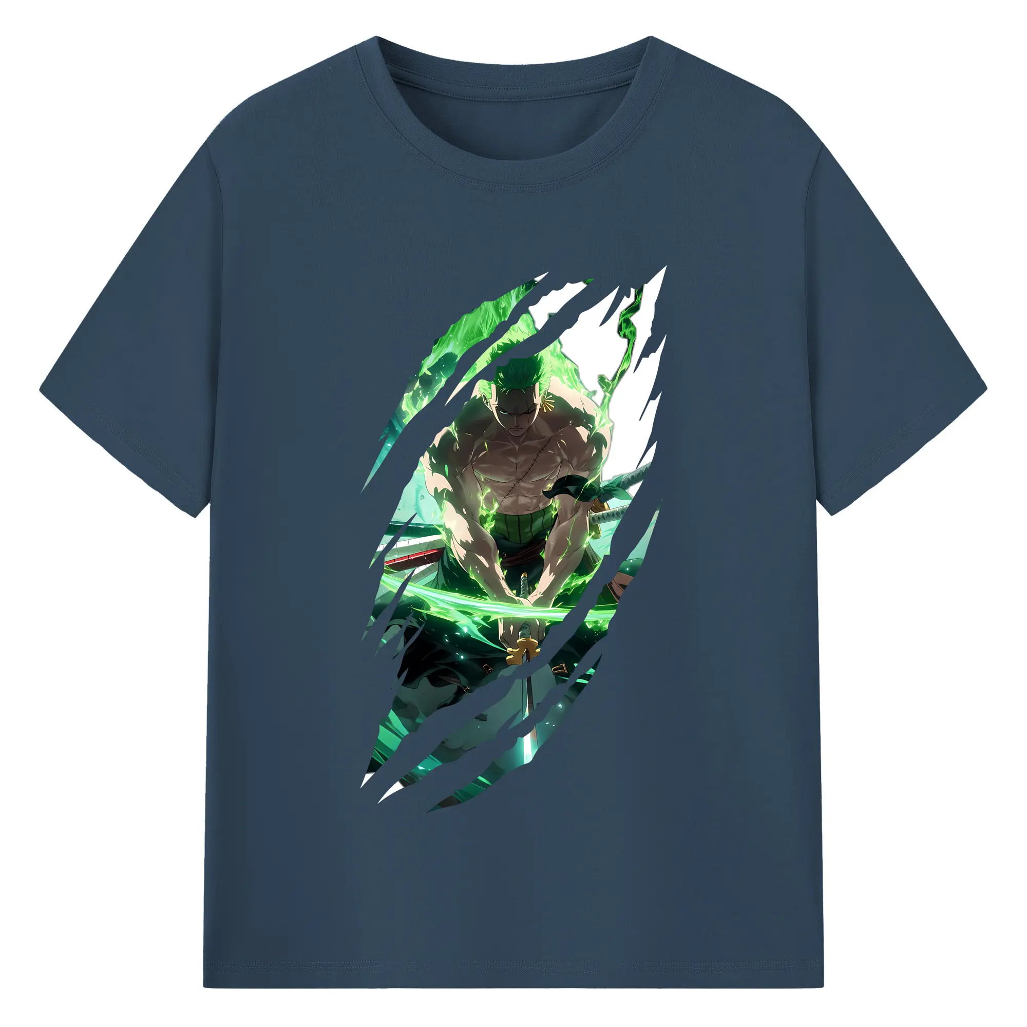 ワンピース グッズ ロロノア・ゾロ - 綿100% ヴィンテージ風 半袖Tシャツ ・ フロントプリント ・ 柔らか肌触り ・ 通気性 快適 ・ スポーツ カジュアル 外出用