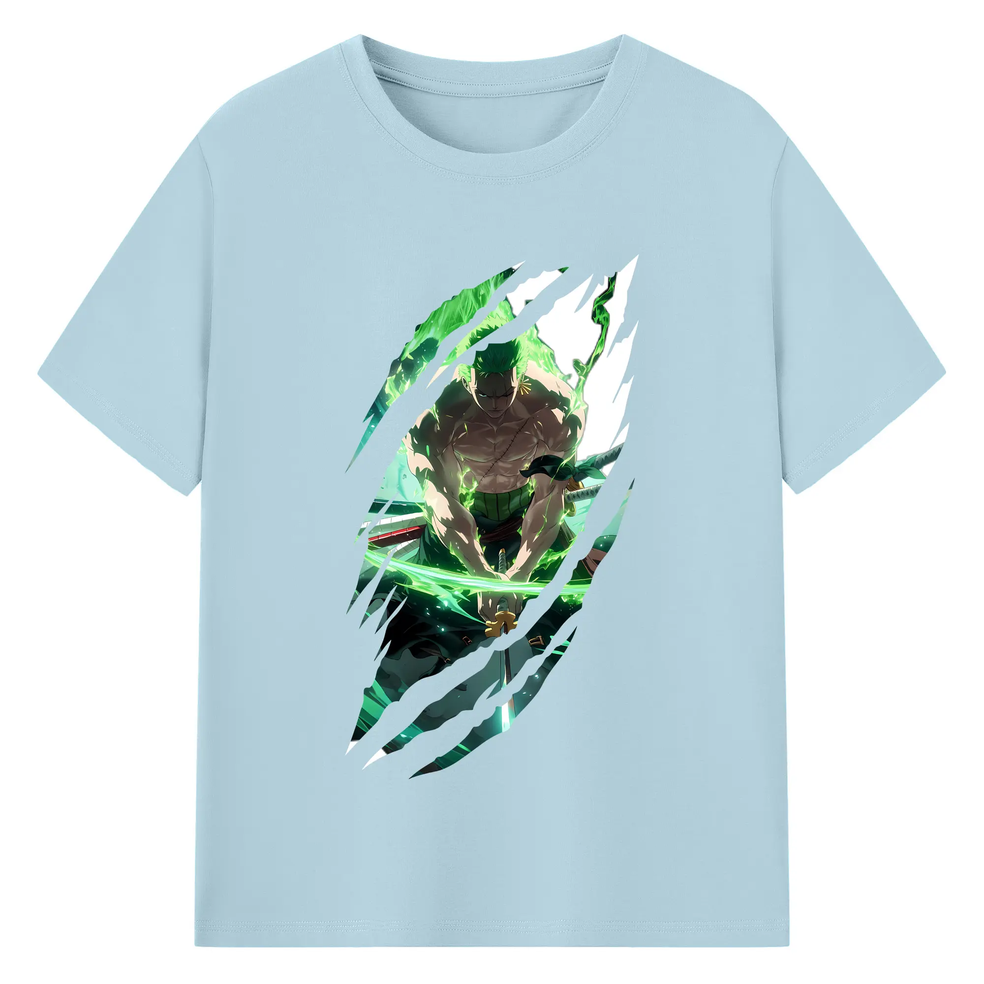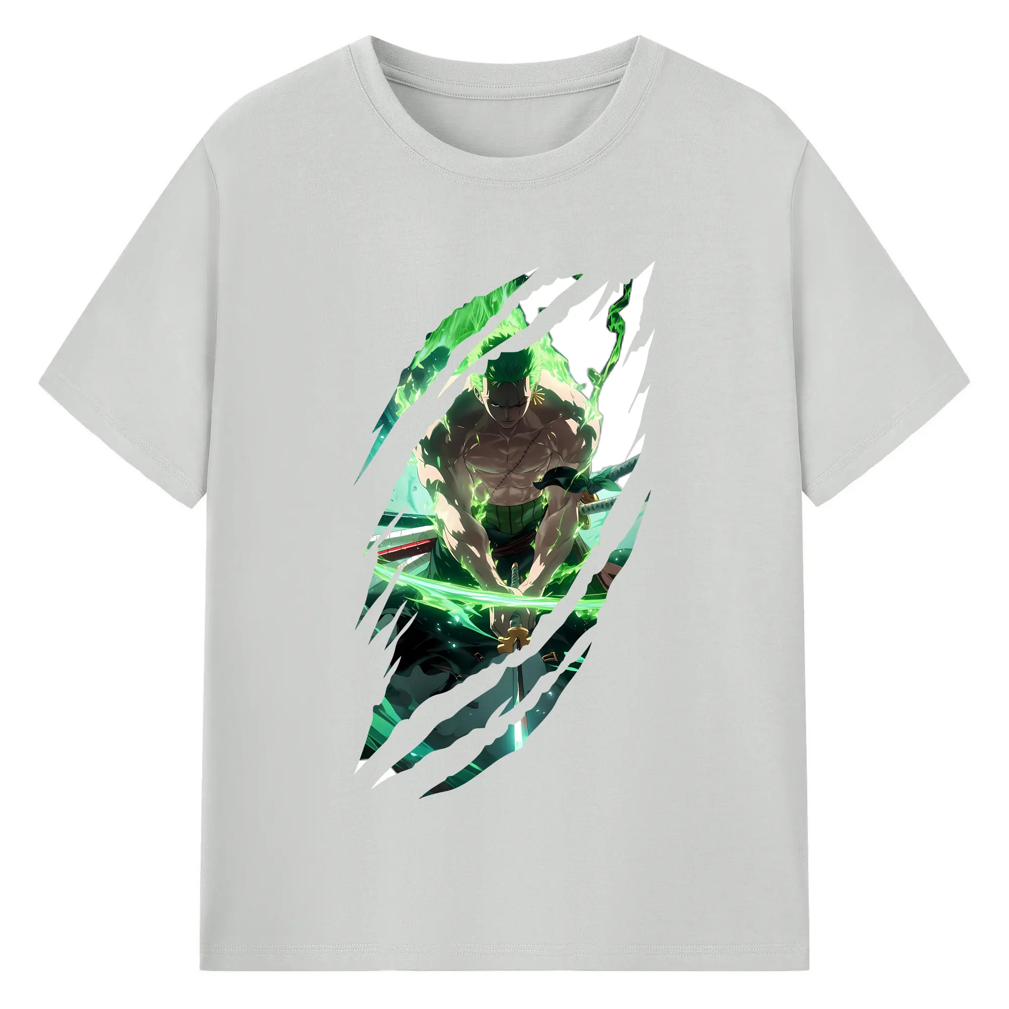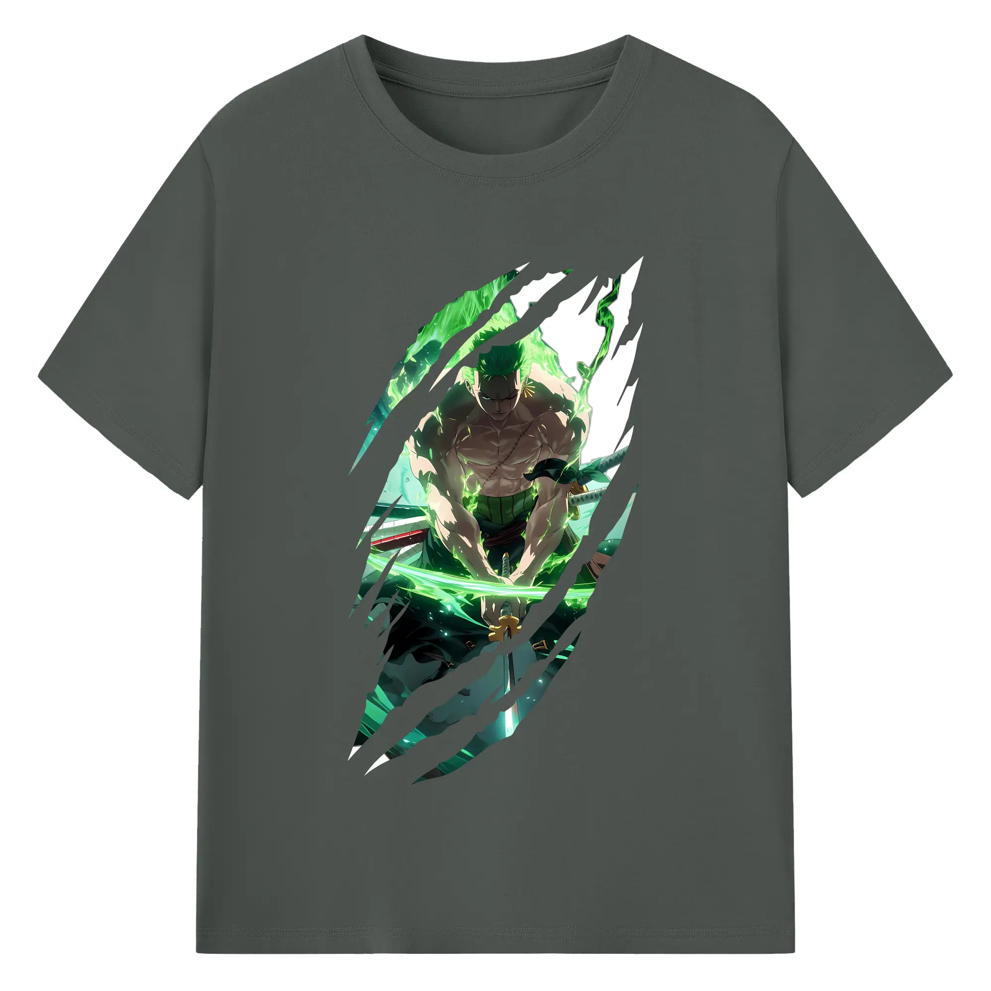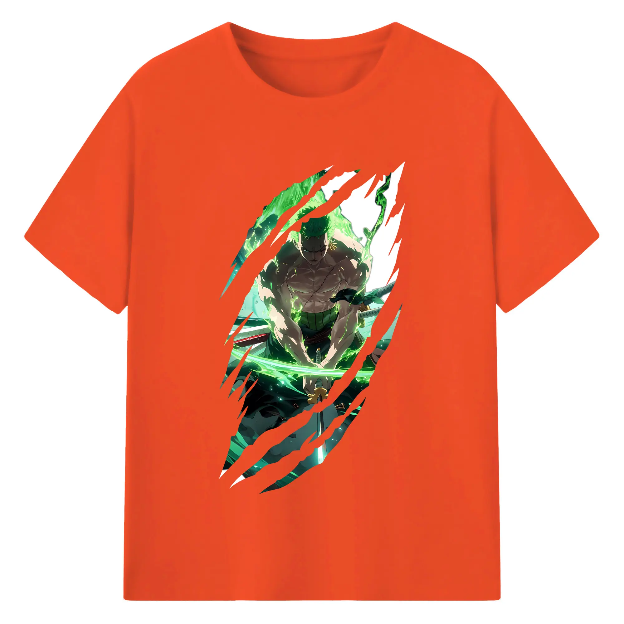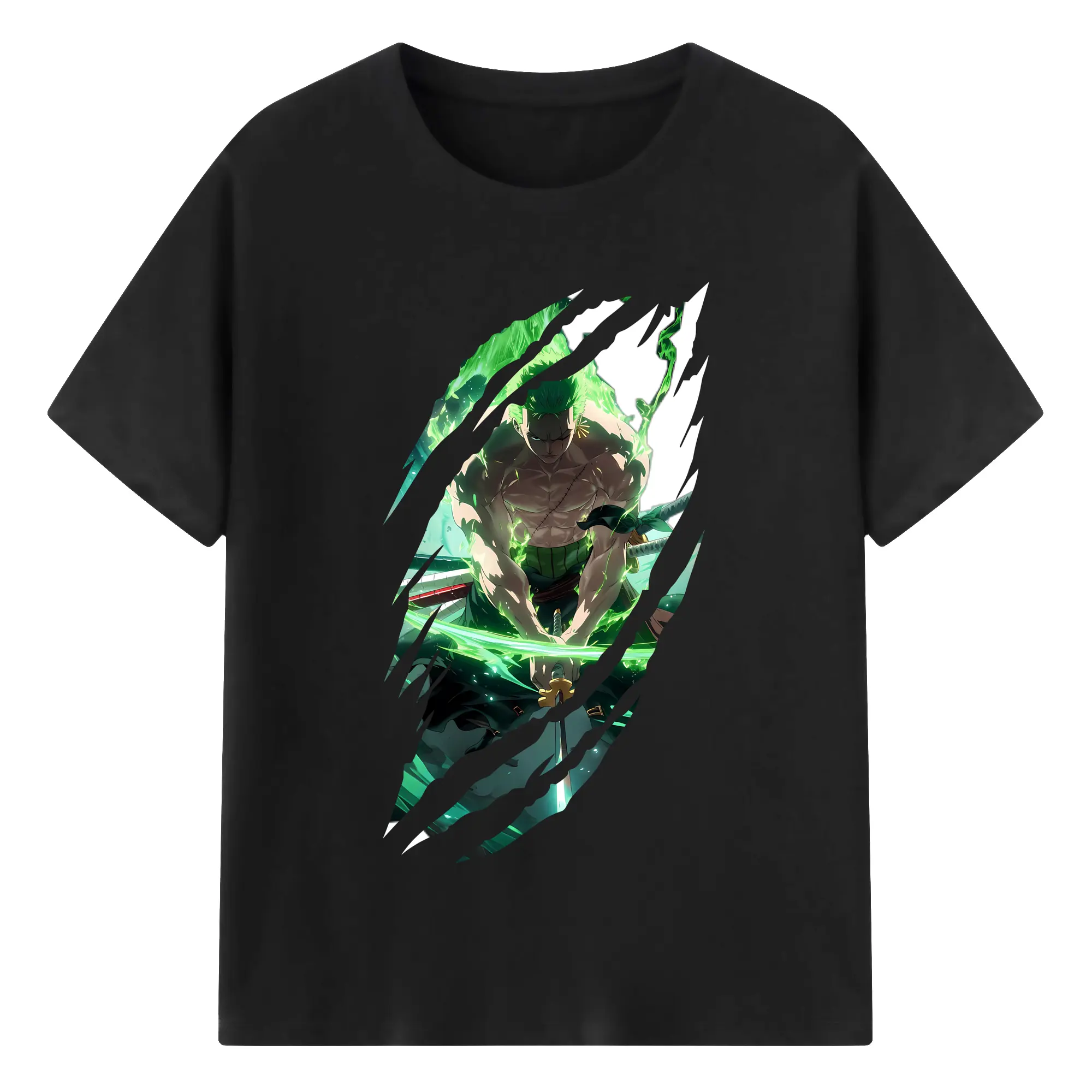 ワンピース グッズ ロロノア・ゾロ - 綿100% 半袖Tシャツ ・ バックプリント ・ 快適 通気性 ・ 日常使い 散歩 スポーツ用