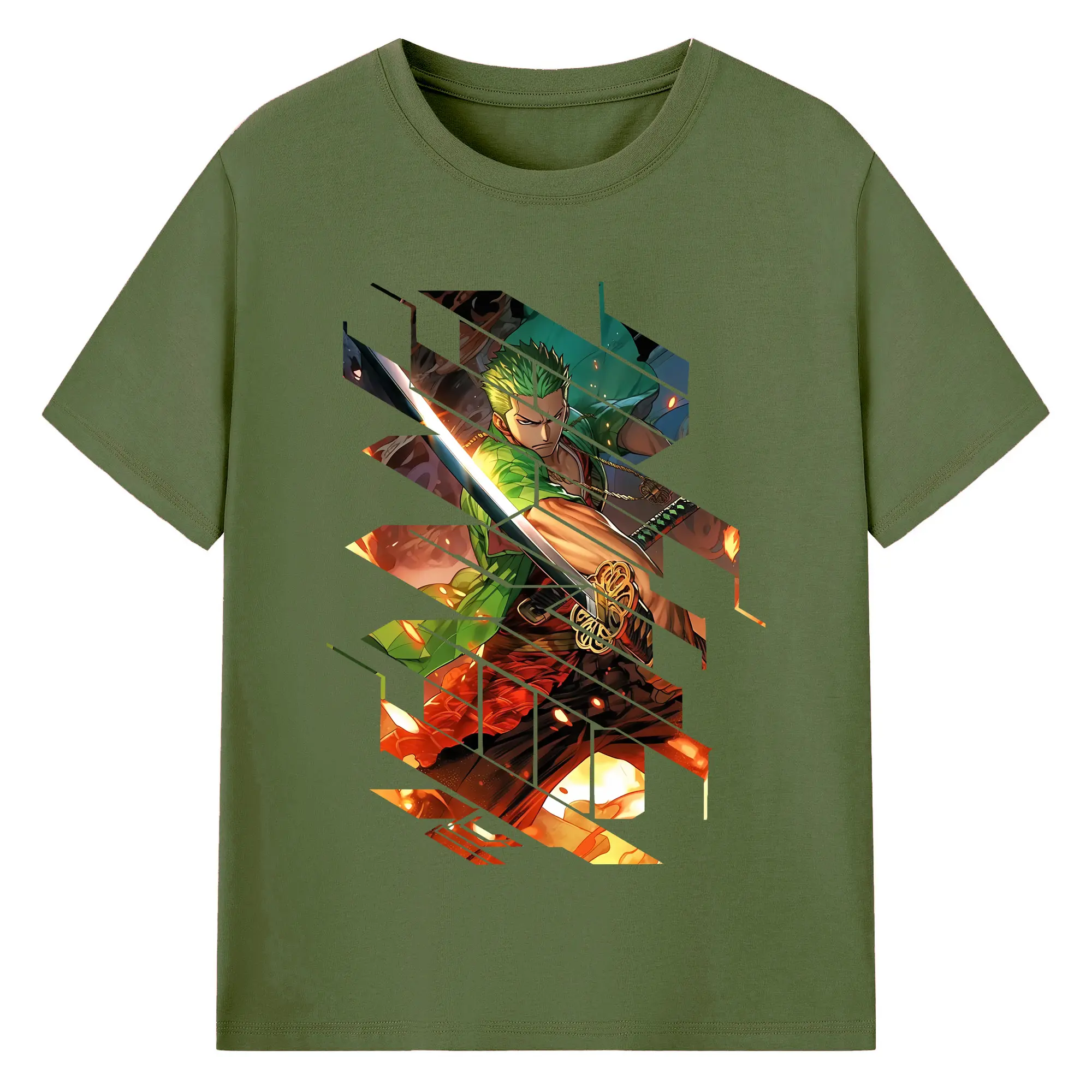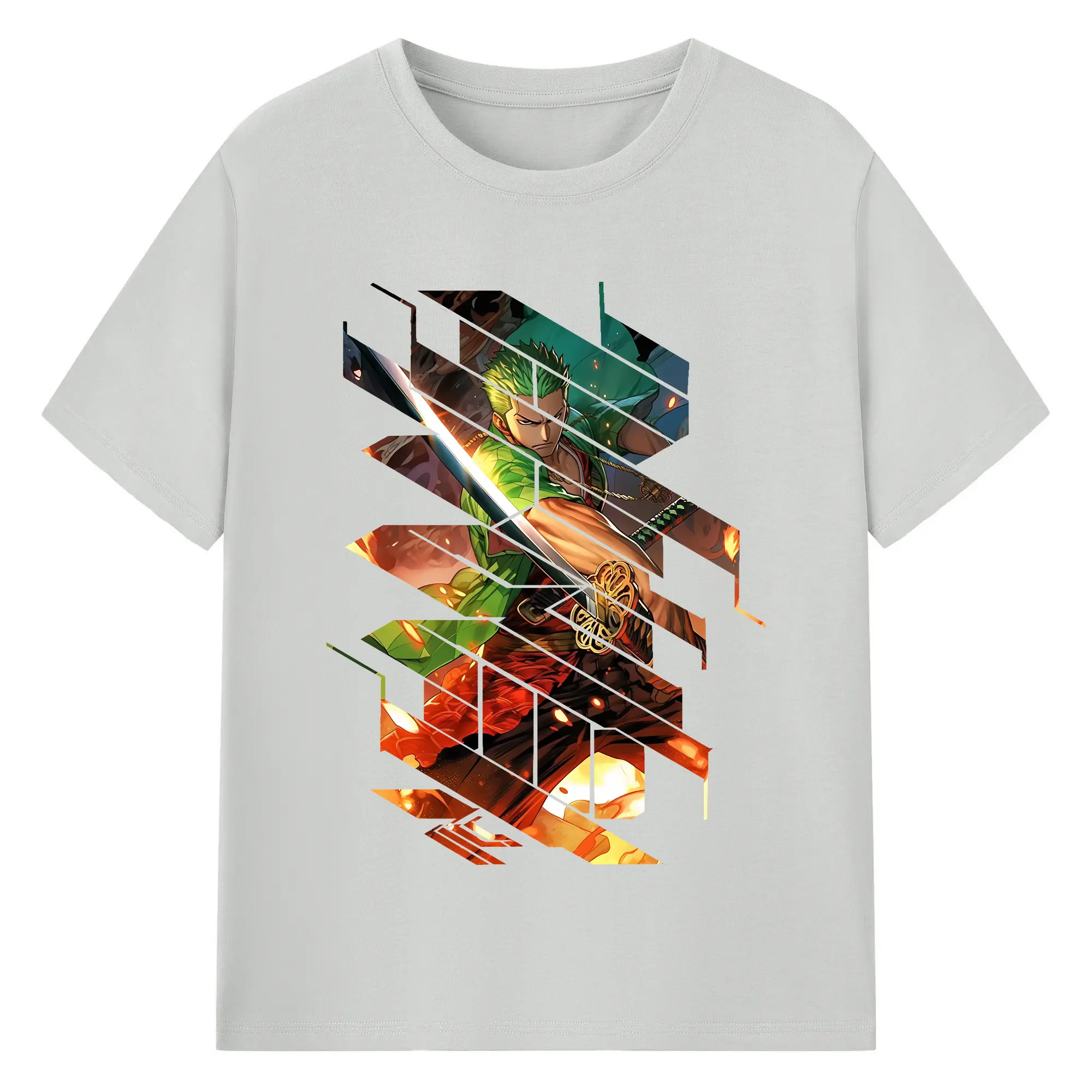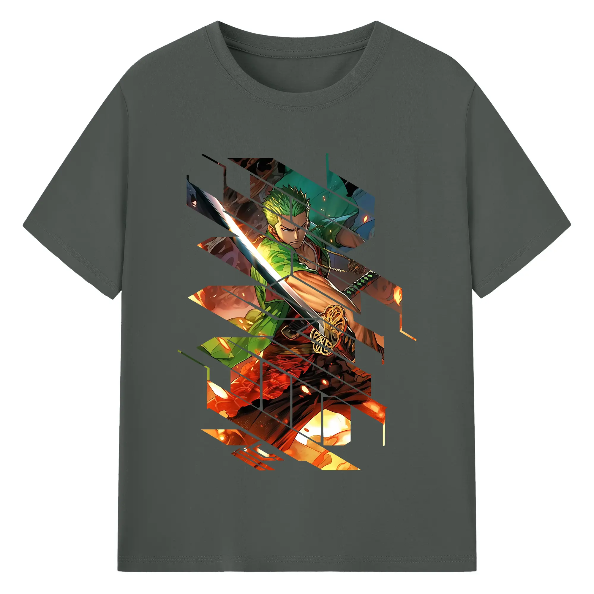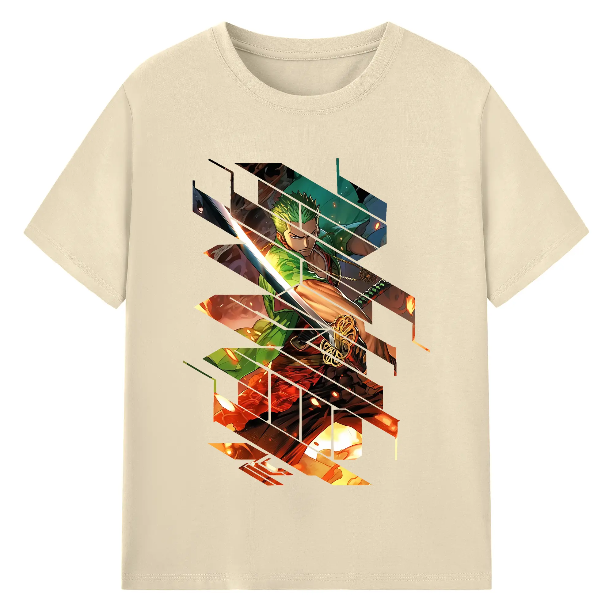 ワンピース グッズ ロロノア・ゾロ - 綿100% 半袖Tシャツ ・ バックプリント ・ 快適 通気性 ・ 日常使い 散歩 スポーツ用