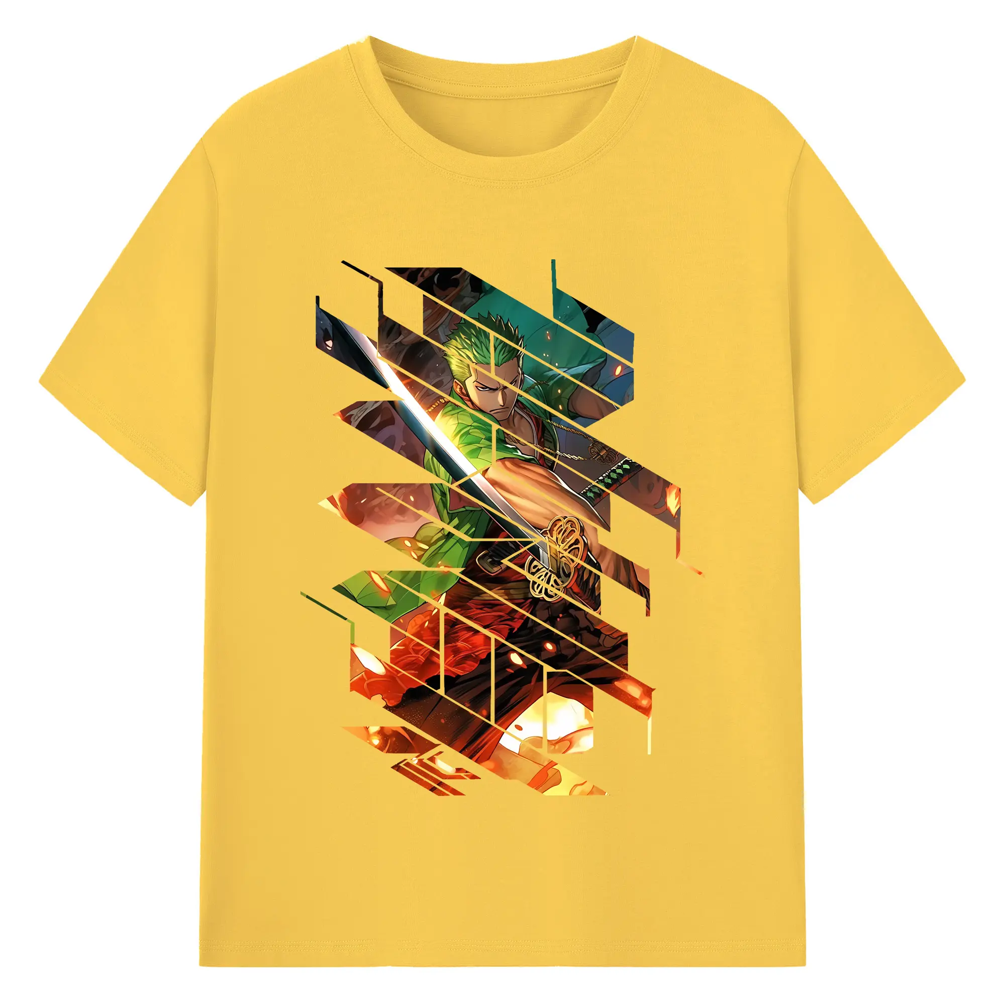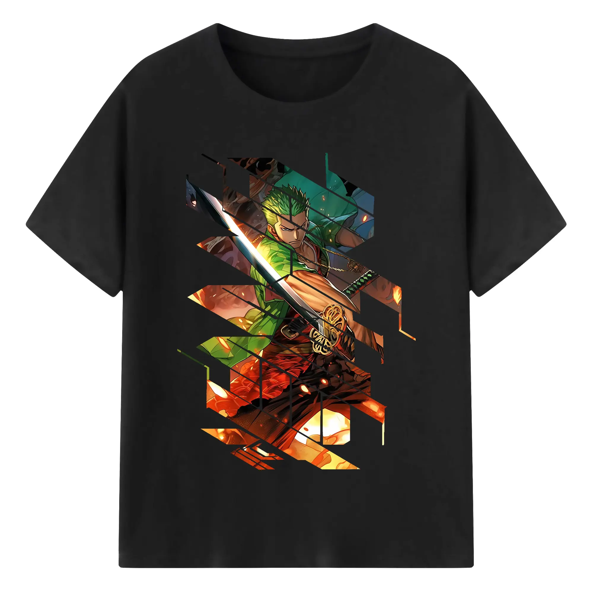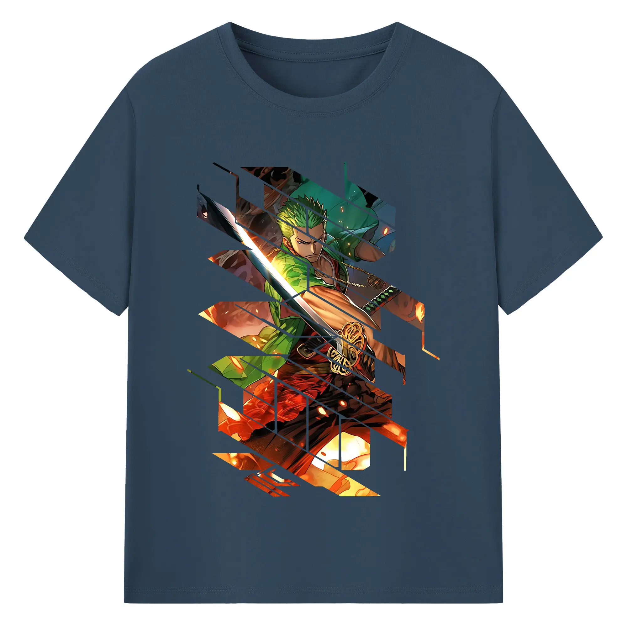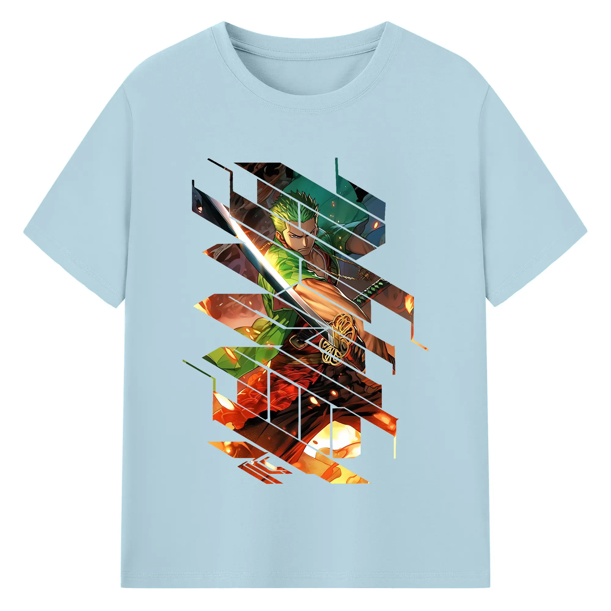 ワンピース グッズ ロロノア・ゾロ - 綿100% 半袖Tシャツ ・ バックプリント ・ 快適 通気性 ・ 日常使い 散歩 スポーツ用